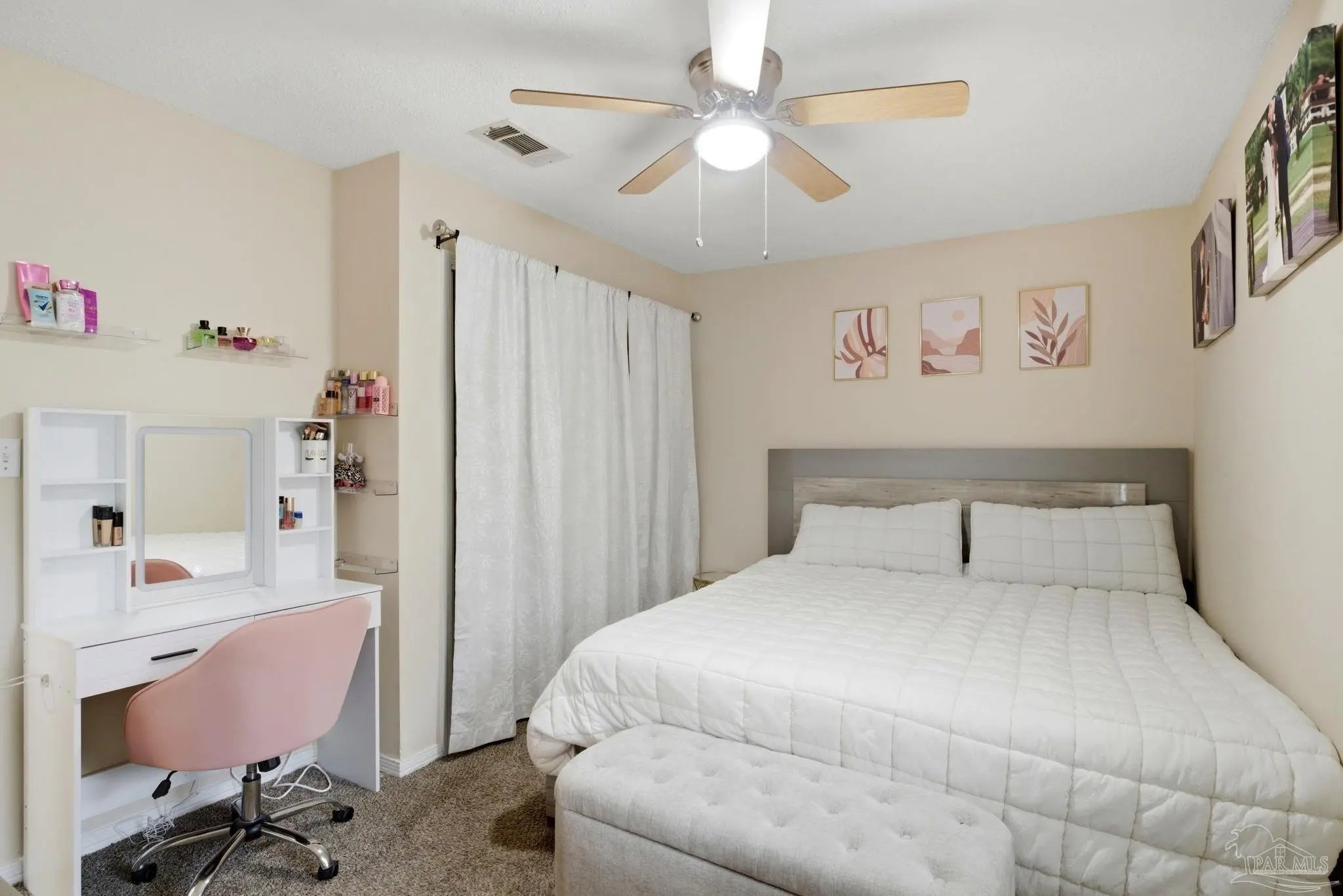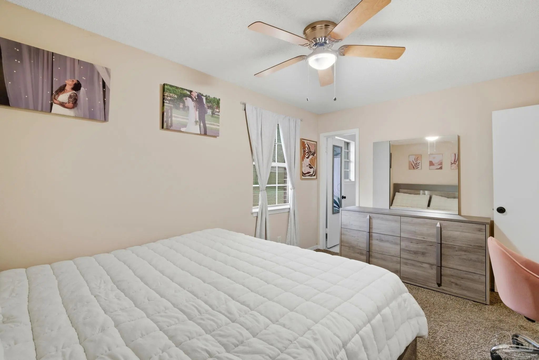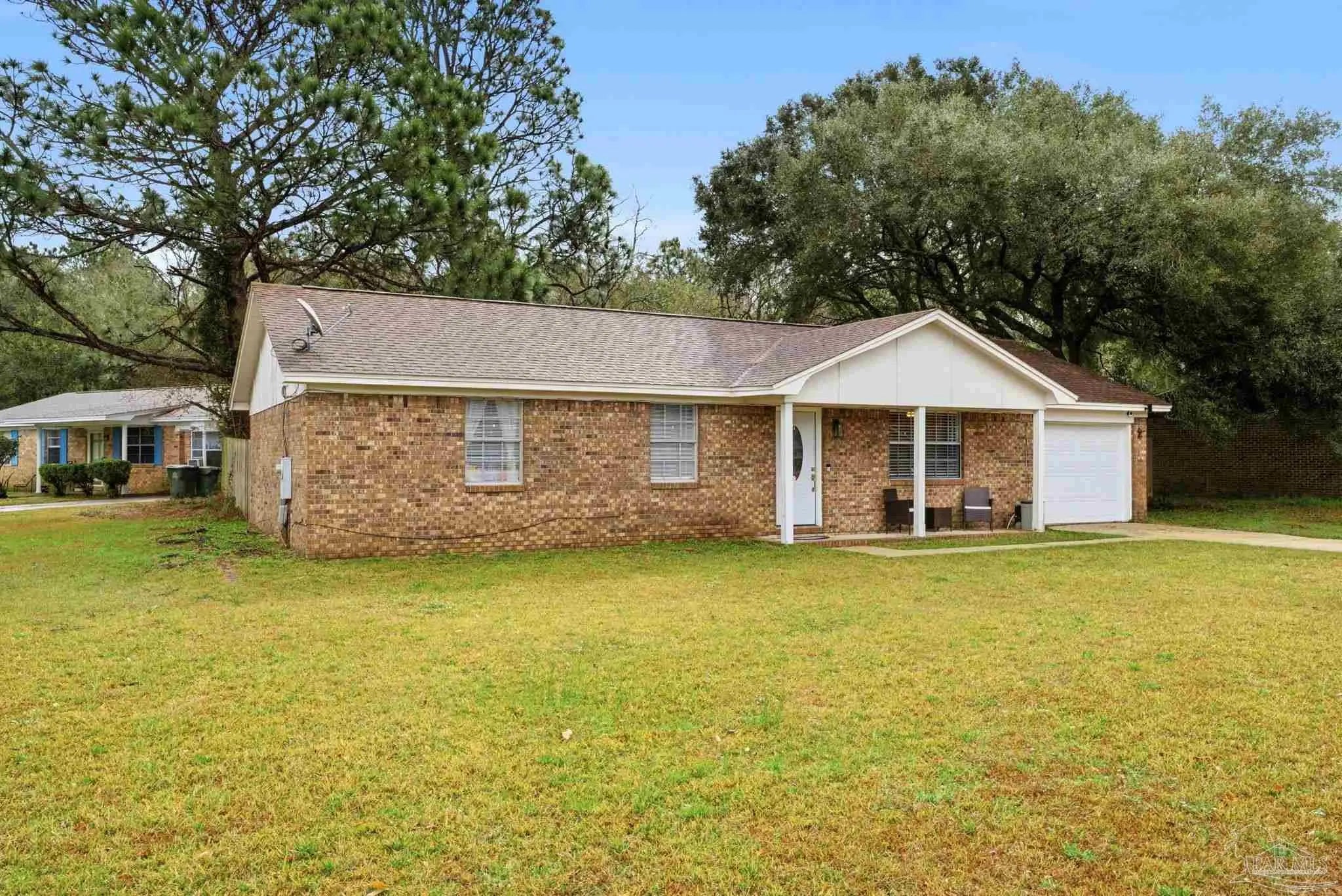 Welcome Home! This charming brick home sits on a spacious corner lot and offers a bright, open feel from the moment you walk inside. Natural light fills the dining, kitchen, and living areas, which flow together for comfortable everyday living. The kitchen features updated countertops and newer appliances, and the home includes luxury vinyl plank flooring in the main living areas, tile in the kitchen and bathrooms, and newer carpet in the bedrooms. The bathrooms have been refreshed with updated countertops, sinks, and tile in the showers. Enjoy a large, fenced backyard with plenty of room to relax. Additional updates include a newer water heater and newer garage door. Conveniently located minutes to NAS Pensacola and Perdido Key, with NO HOA. Schedule your showing today.