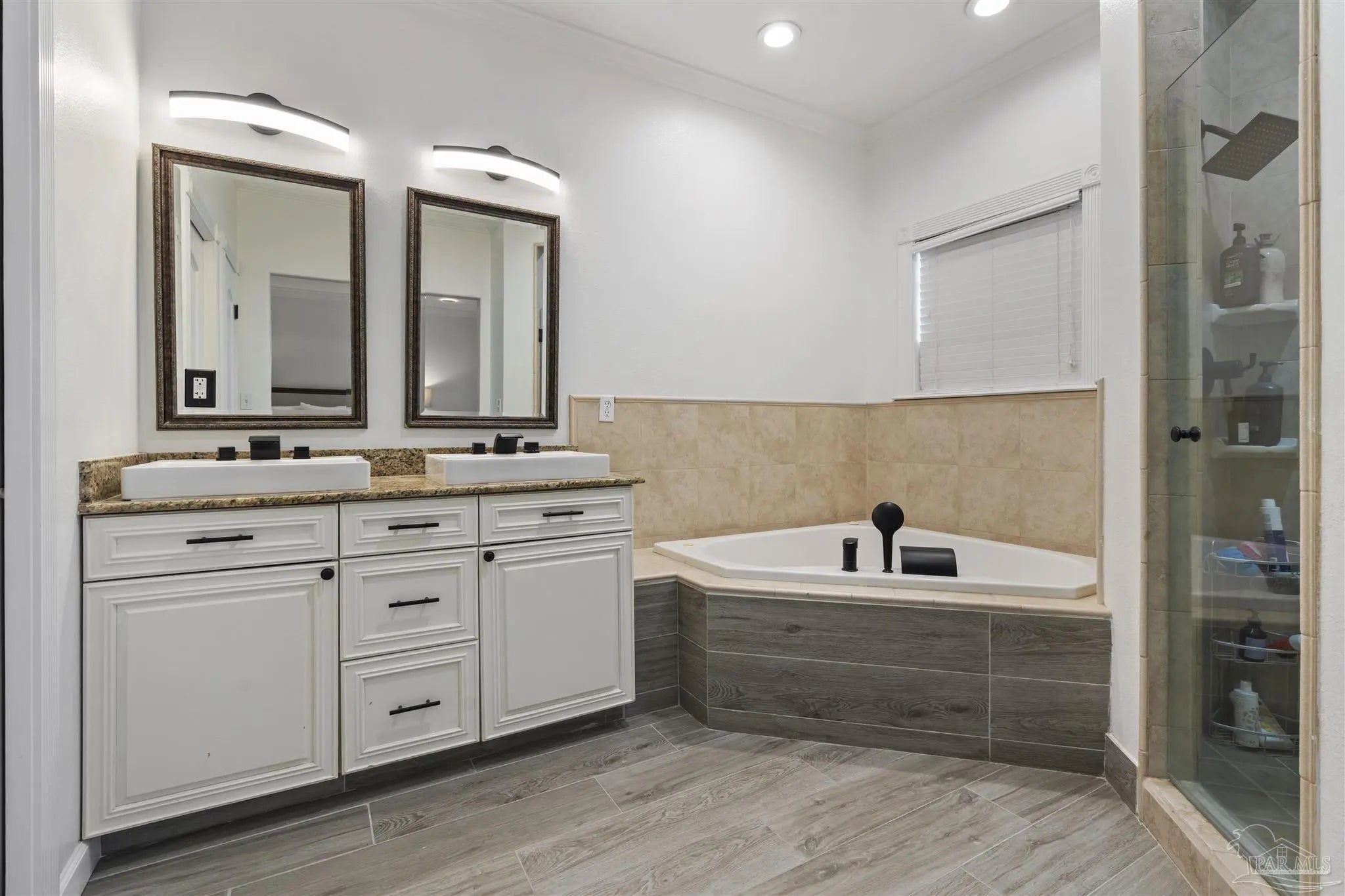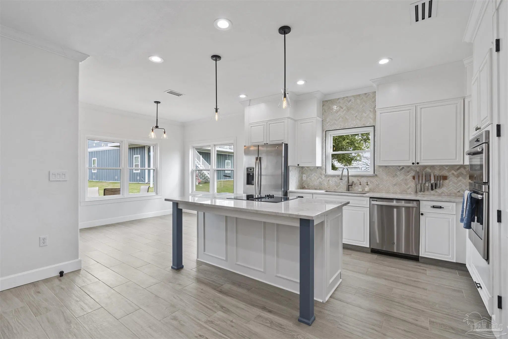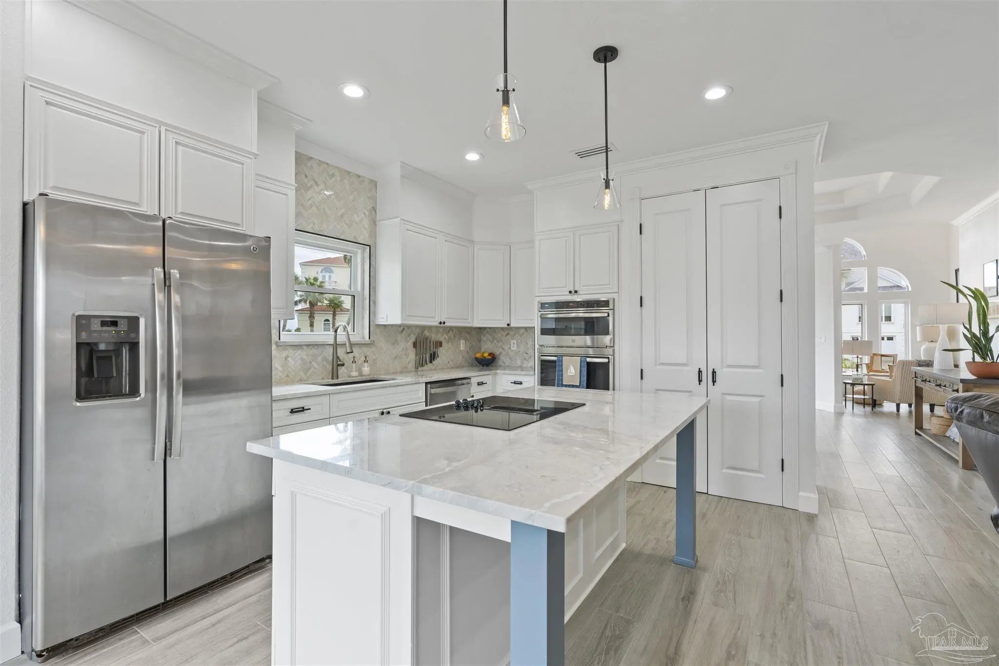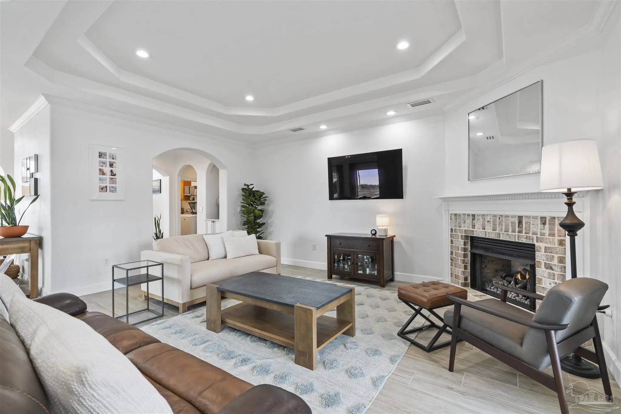 Wake up to panoramic views of Pensacola Bay right from your living room. This beautifully updated 3 bedroom, 2.5 bath home offers 2,368 square feet in the desirable Bay Winds community, perfectly positioned just minutes from downtown Pensacola and less than half a mile to Barrancas Park, Pensacola Country Club, Pensacola Yacht Club, and the marina. Step inside and you’re immediately welcomed by soaring ceilings and an abundance of natural light. The 2023 top-to-bottom remodel truly sets this home apart. You’ll find gorgeous plank tile flooring throughout, professional interior paint, tray ceilings, crown molding, energy-efficient LED lighting, and two updated gas fireplaces that create a warm and inviting feel. The kitchen is both functional and striking, featuring GE Profile appliances, marble countertops, a spacious island, decorative tile backsplash, and beautifully updated cabinetry. The primary suite has been thoughtfully enhanced with custom wood shelving in the walk-in closet and a stunning tile shower for a spa-like retreat. Major updates include a new roof in 2020, tankless water heater in 2022, and a whole-home dehumidifier added in 2023 for year-round comfort. Oversized south-facing windows provide breathtaking bay views, while French doors lead to a covered back patio that’s perfect for relaxing summer evenings. Additional features include a two-car garage, attic storage with plywood flooring, Storm Stoppers hurricane shutters, and so much more. This is a rare opportunity to own a move-in ready waterfront view home in one of Pensacola’s most sought-after locations. Schedule your private showing today before it’s gone.