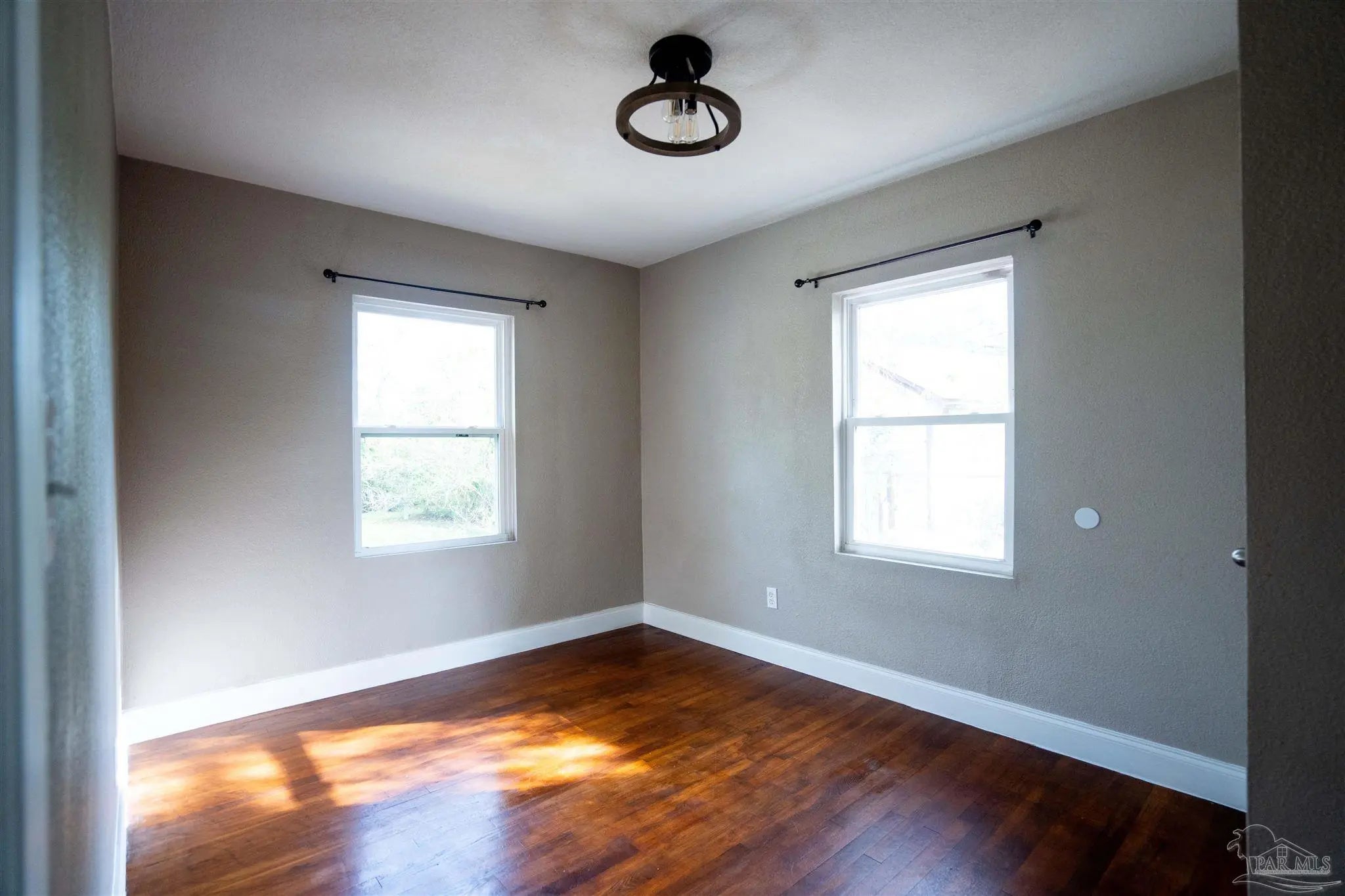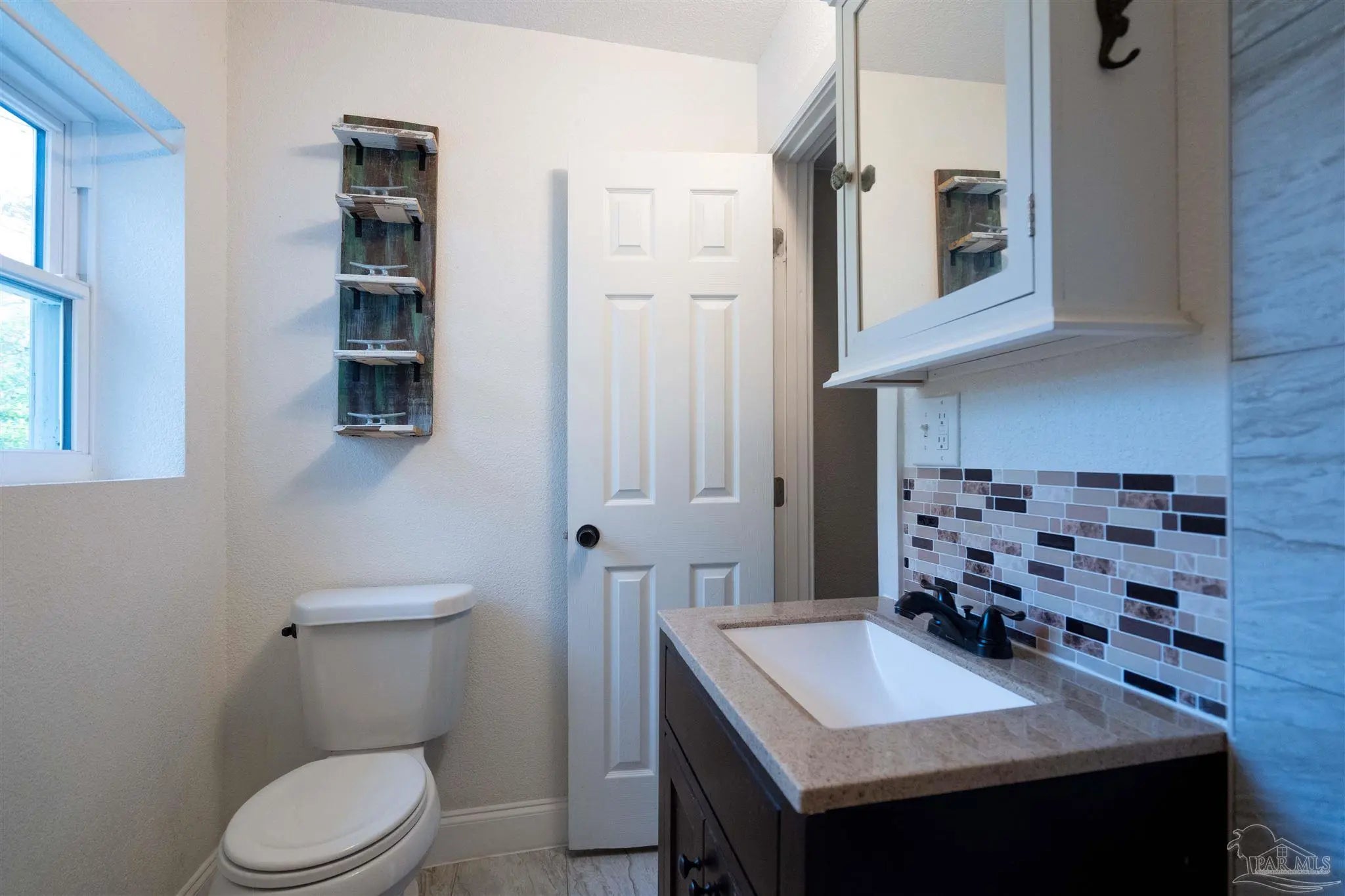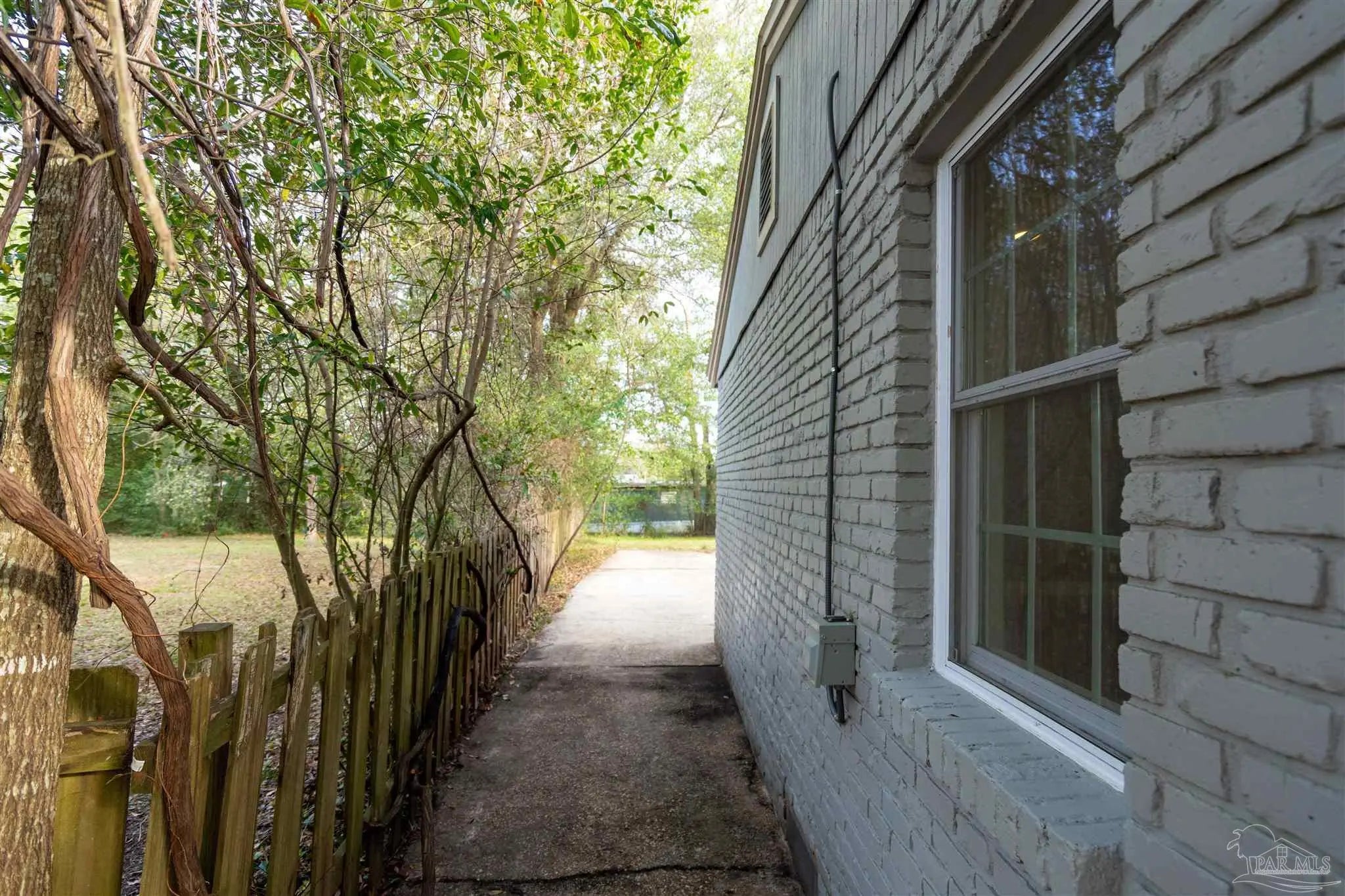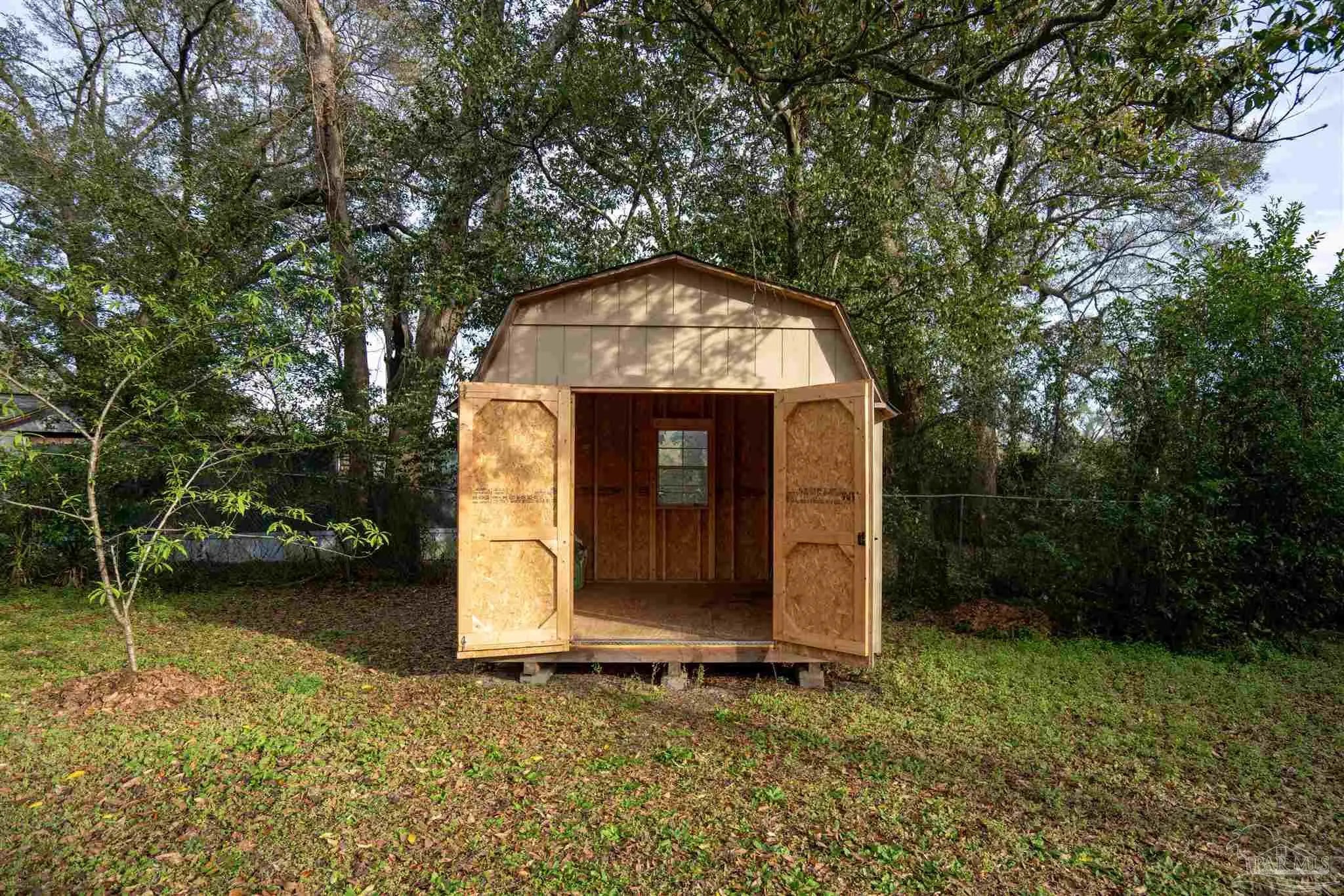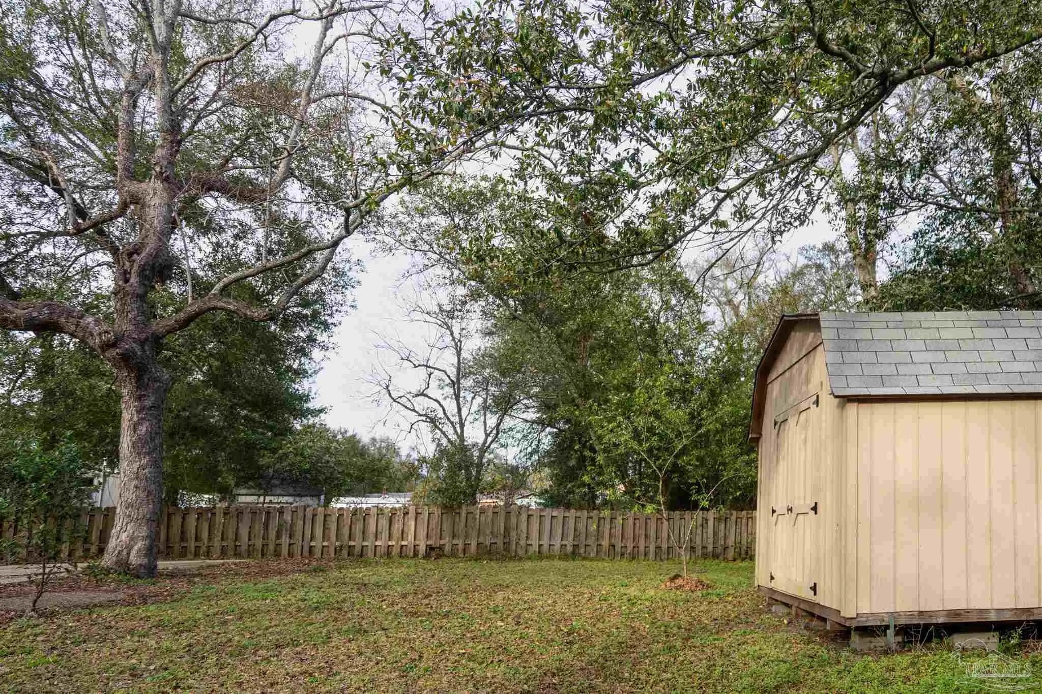 Nestled in an affordable waterfront neighborhood, this charming old-style Florida cottage blends classic Pensacola character with thoughtful modern updates. Built of sturdy brick and block construction, the home features a fresh neutral paint palette accented with touches of turquoise—a subtle nod to the emerald and blue Gulf waters just minutes away. The expansive living and dining room showcases gleaming hardwood floors and striking corner double windows that flood the space with morning light. The updated kitchen offers new appliances, a large stainless sink, and a beautiful tile backsplash, creating a clean, functional workspace. Just off the kitchen, the laundry room opens to an oversized patio perfect for cookouts, gatherings, and enjoying the Florida breeze. Three bedrooms and one classic, tastefully updated bath provide comfortable living, with the front bedroom offering extra flexibility. A large storage building in the backyard adds valuable space for tools, hobbies, or beach gear. With a 2019 roof, past termite treatment with transferable guarantee, and a location just off Navy Blvd—only minutes to Garden Street and downtown—this cottage delivers both peace of mind and the relaxed coastal lifestyle Pensacola is known for.