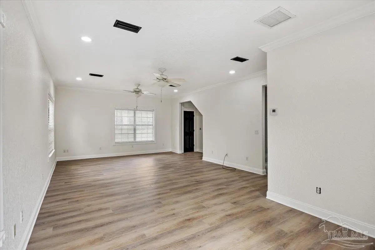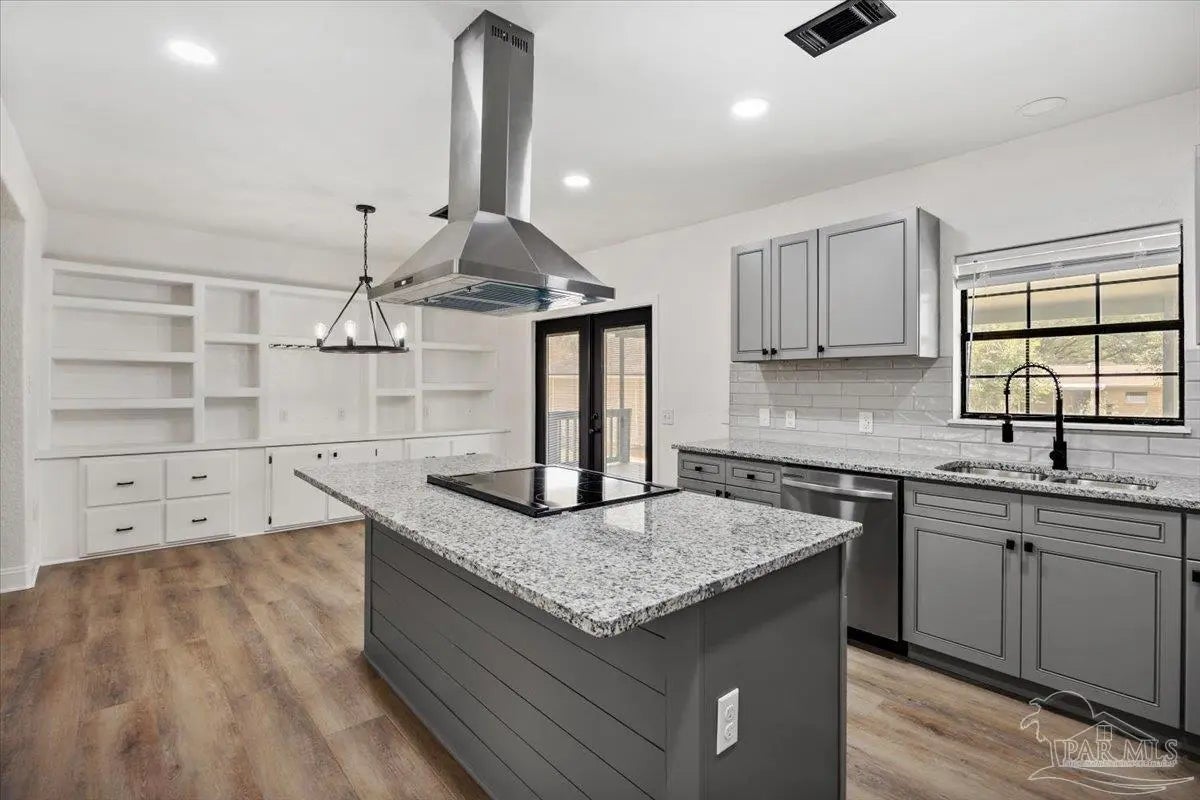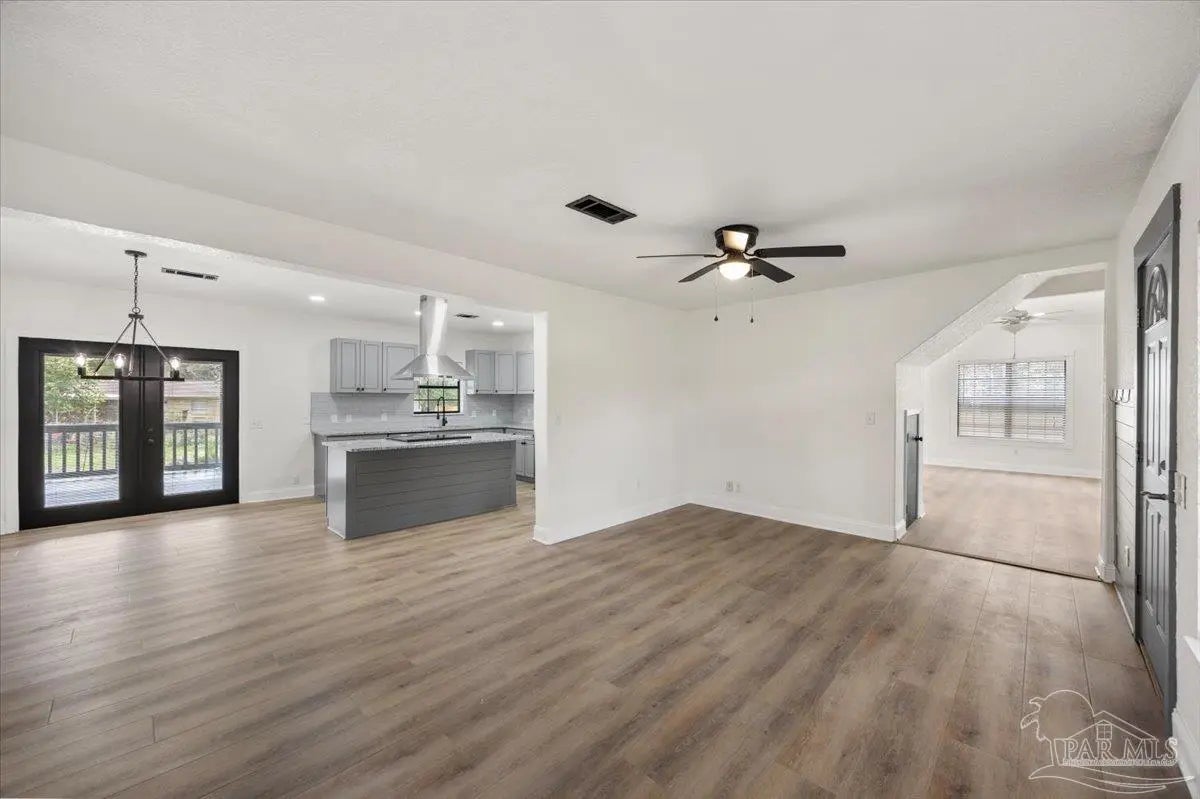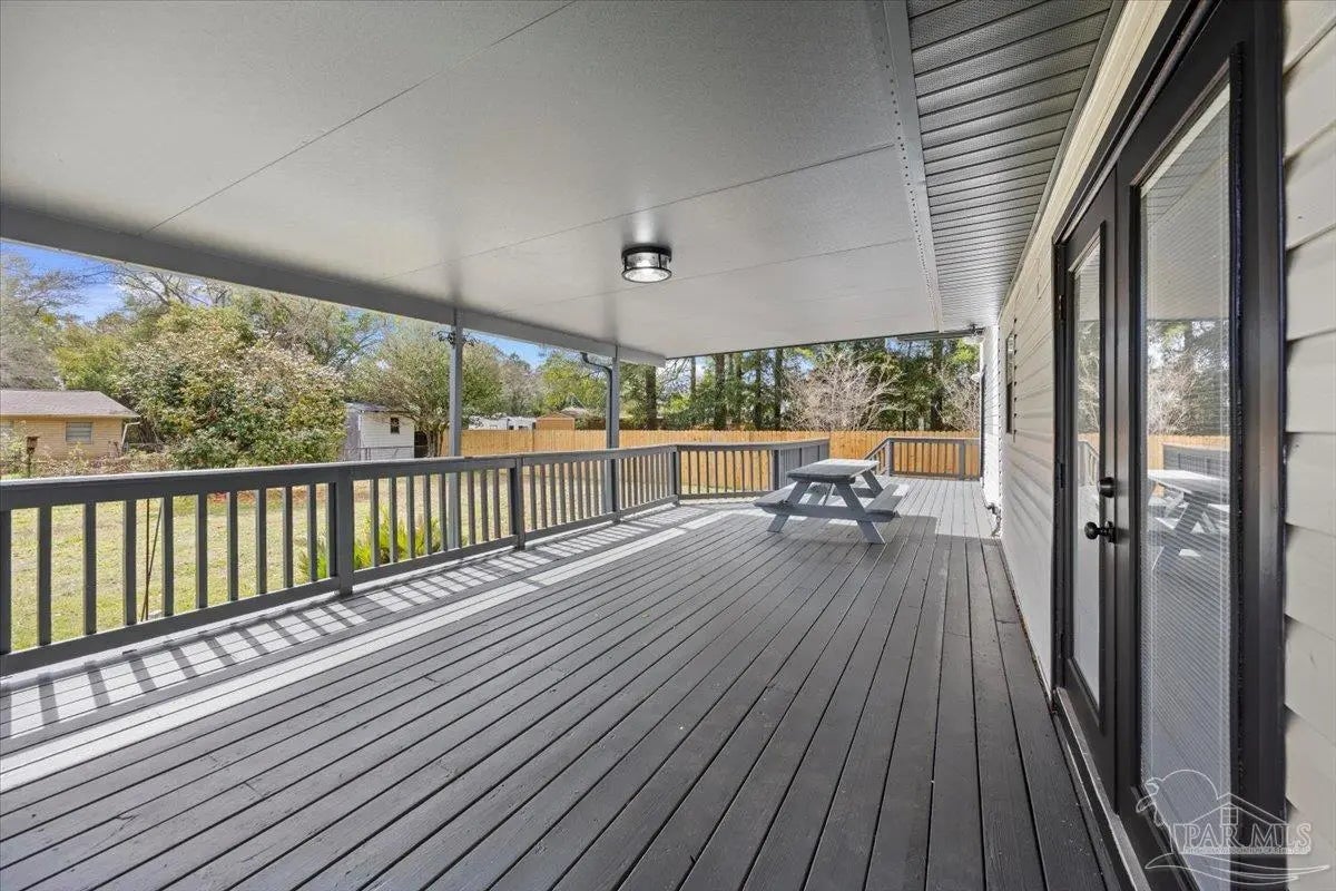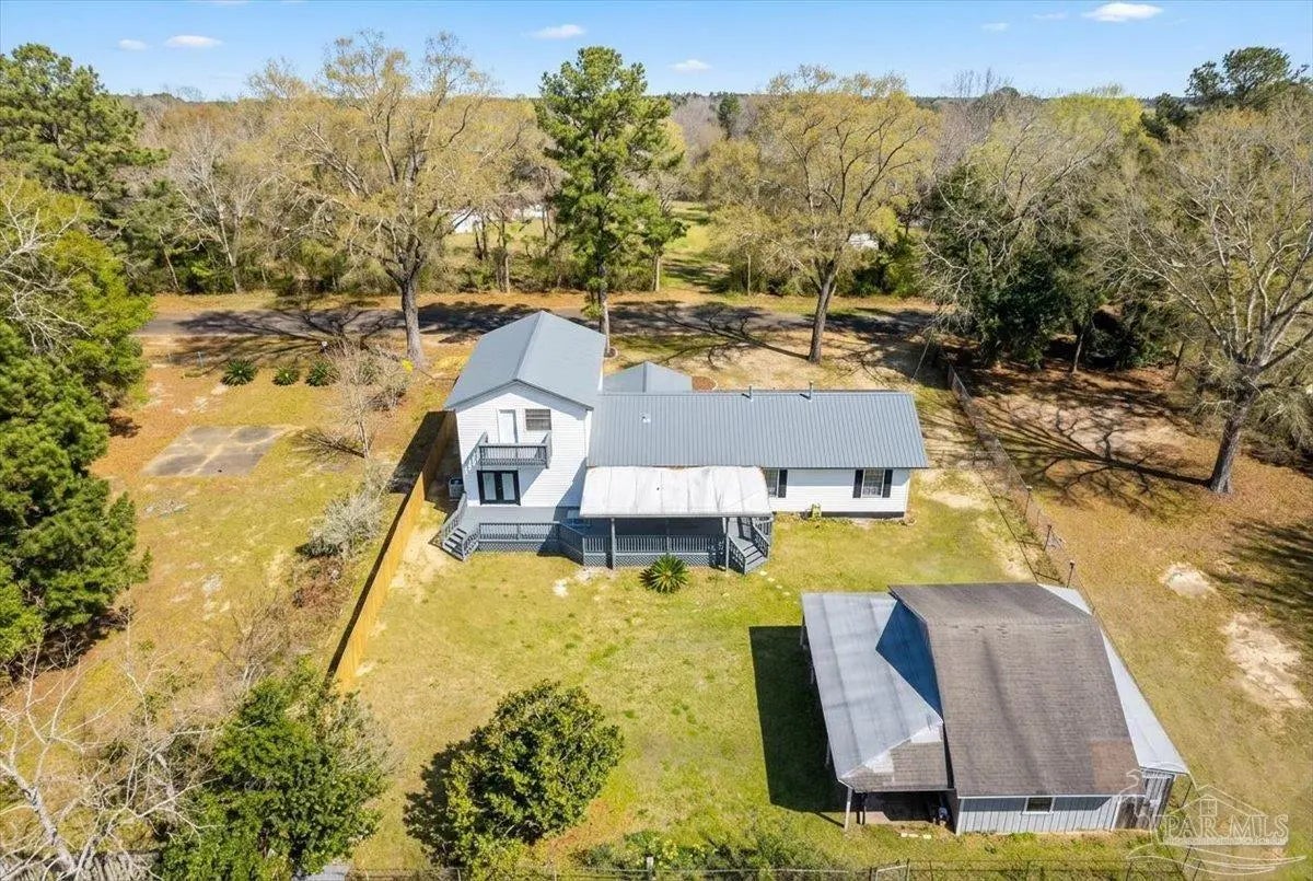 Completely renovated and move-in ready and seller offering Use Your Way Credit, this 4 bedroom, 3 bathroom home offers 2,552 square feet of updated living space plus a separate workshop building with office in the heart of Pace. From the moment you arrive, the new concrete driveway, refreshed exterior, and welcoming front porch set the tone for what’s inside. The interior has been thoughtfully transformed with updated lighting, modern fixtures, fresh finishes, and durable flooring throughout the main living areas. The remodeled kitchen serves as the centerpiece of the home, featuring granite countertops, stainless appliances, subway tile backsplash, updated cabinetry, and a large island with cooktop and vent hood, all opening seamlessly to the dining area with custom built-in cabinetry for added storage and character. Multiple living spaces provide flexibility for entertaining, working from home, or relaxing with family, and French doors lead to an expansive back deck that extends your living space outdoors. The spacious primary suite includes a well-appointed ensuite bath with double vanity, granite countertops, soaking tub, and separate tiled shower. Additional bedrooms are generously sized, and the secondary bathrooms have been updated with stylish, contemporary finishes. The detached workshop building with a small office space adds incredible versatility, offering room for hobbies, equipment, storage, or business use. This property delivers the rare combination of modern renovation, functional layout, and dedicated workspace—all in a convenient Pace location.