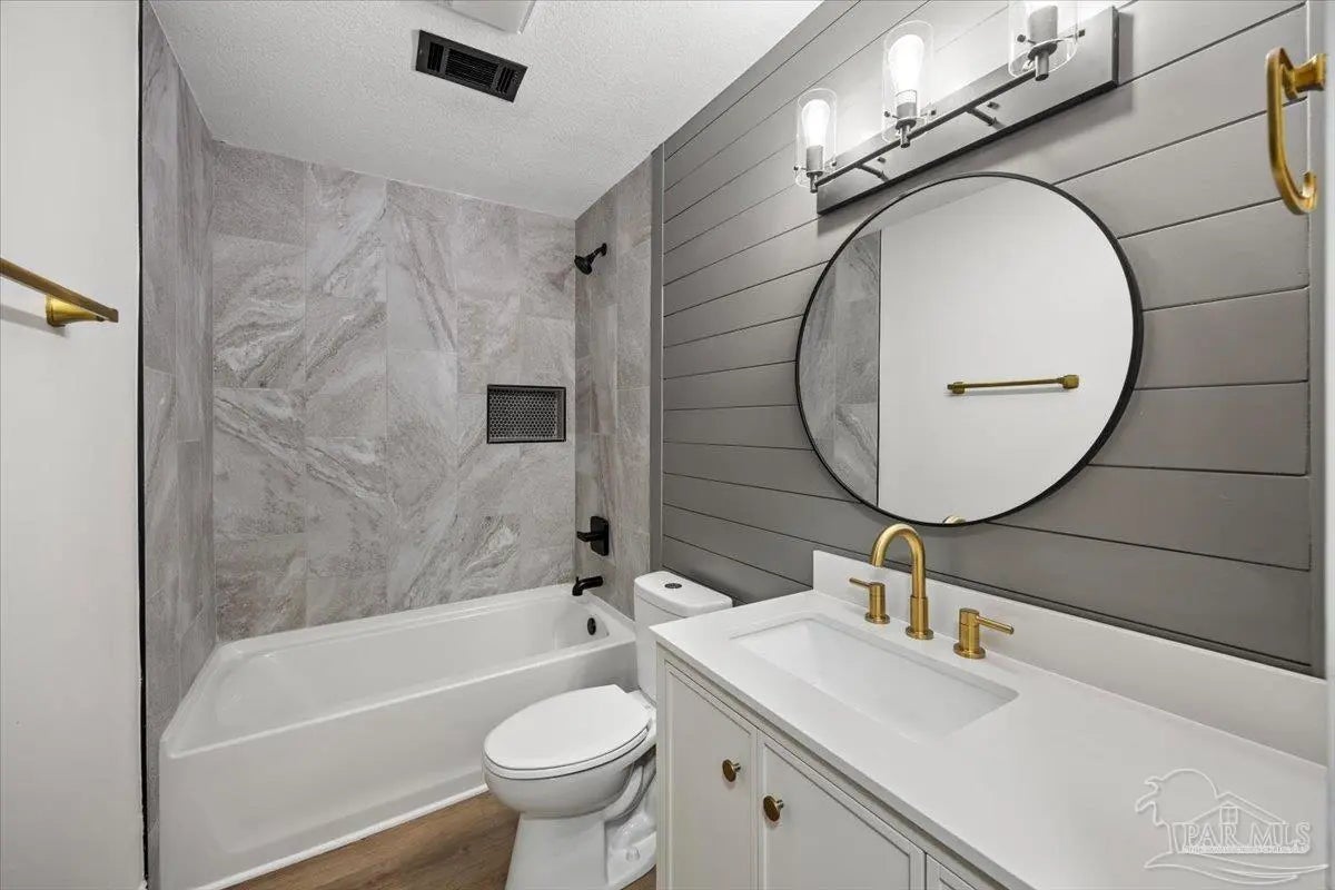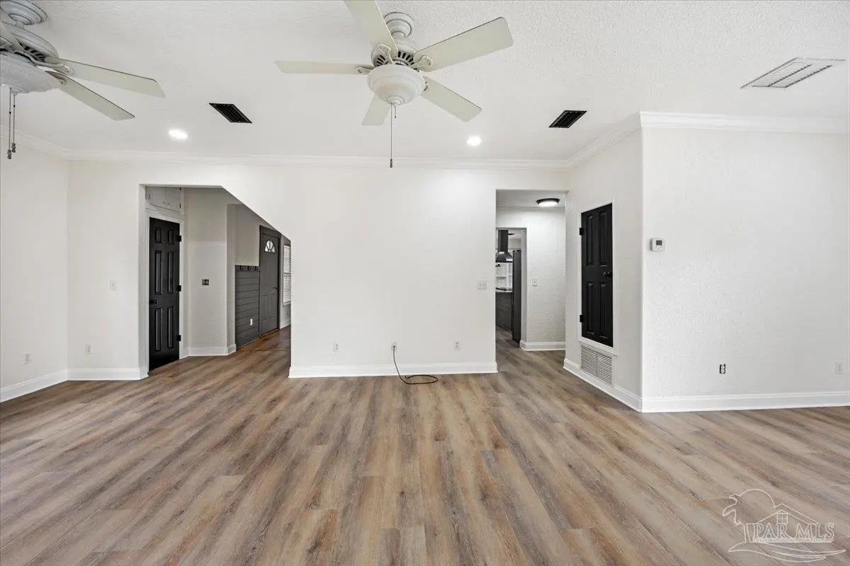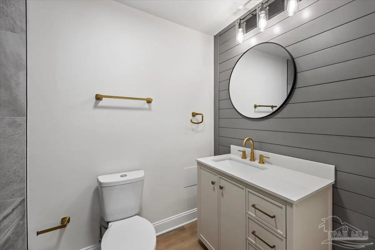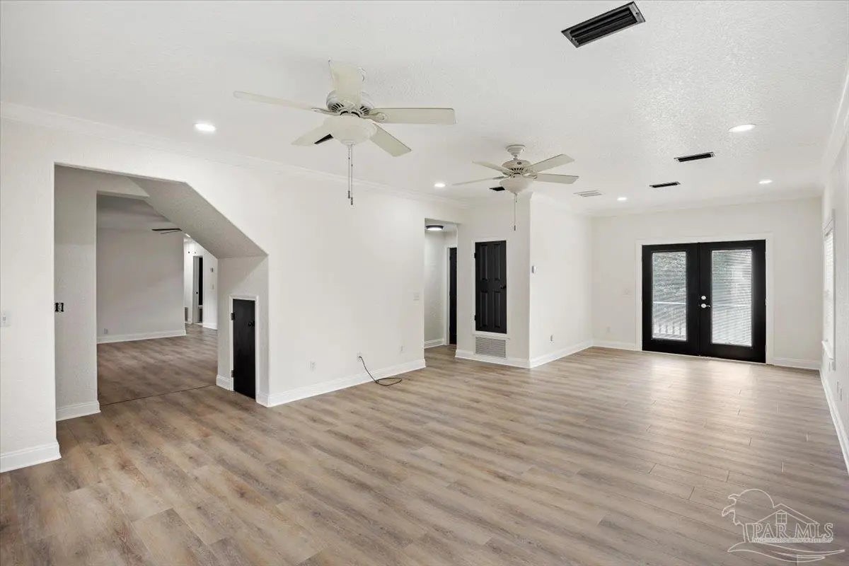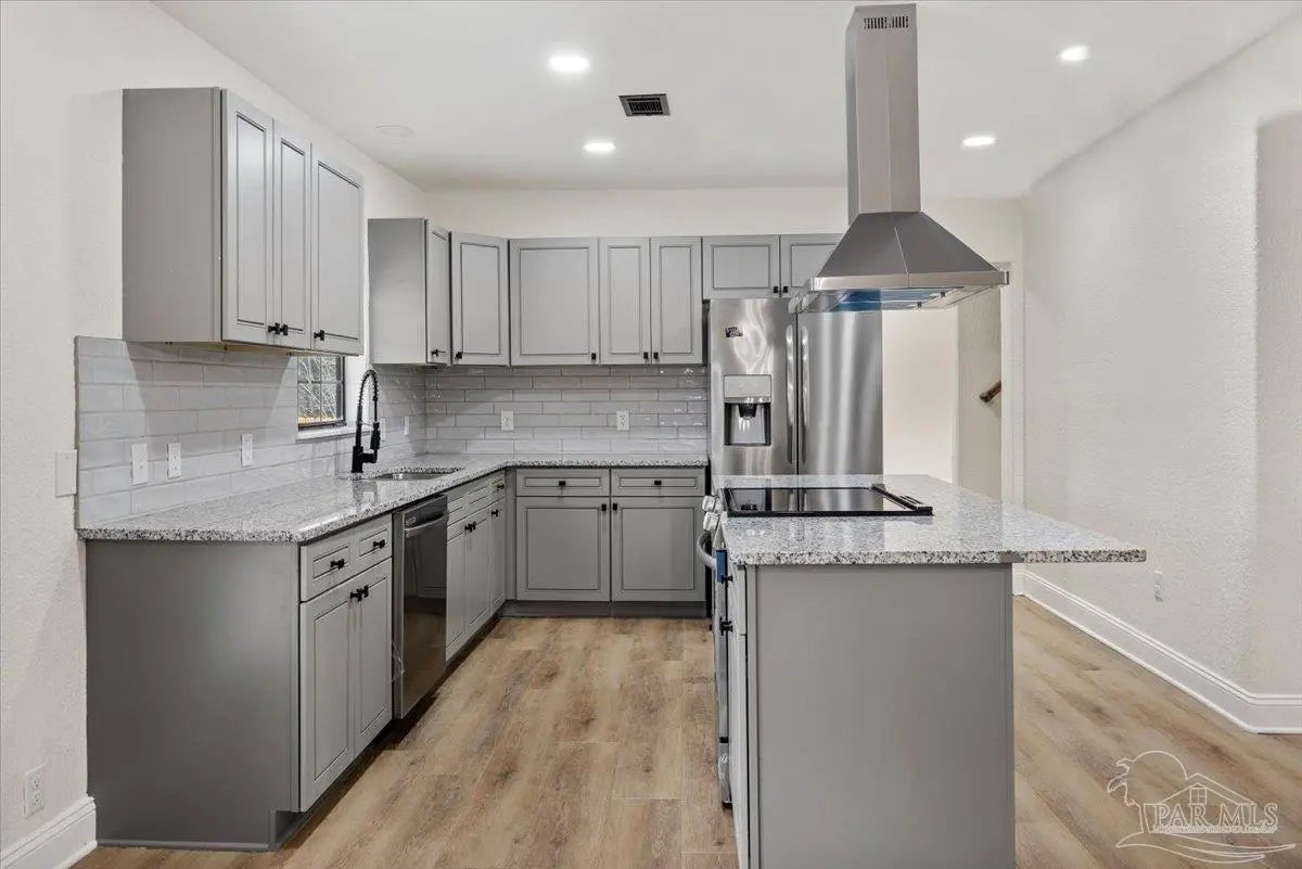 Completely renovated and move-in ready and seller offering Use Your Way Credit, this 4 bedroom, 3 bathroom home offers 2,552 square feet of updated living space plus a separate workshop building with office in the heart of Pace. From the moment you arrive, the new concrete driveway, refreshed exterior, and welcoming front porch set the tone for what’s inside. The interior has been thoughtfully transformed with updated lighting, modern fixtures, fresh finishes, and durable flooring throughout the main living areas. The remodeled kitchen serves as the centerpiece of the home, featuring granite countertops, stainless appliances, subway tile backsplash, updated cabinetry, and a large island with cooktop and vent hood, all opening seamlessly to the dining area with custom built-in cabinetry for added storage and character. Multiple living spaces provide flexibility for entertaining, working from home, or relaxing with family, and French doors lead to an expansive back deck that extends your living space outdoors. The spacious primary suite includes a well-appointed ensuite bath with double vanity, granite countertops, soaking tub, and separate tiled shower. Additional bedrooms are generously sized, and the secondary bathrooms have been updated with stylish, contemporary finishes. The detached workshop building with a small office space adds incredible versatility, offering room for hobbies, equipment, storage, or business use. This property delivers the rare combination of modern renovation, functional layout, and dedicated workspace—all in a convenient Pace location.