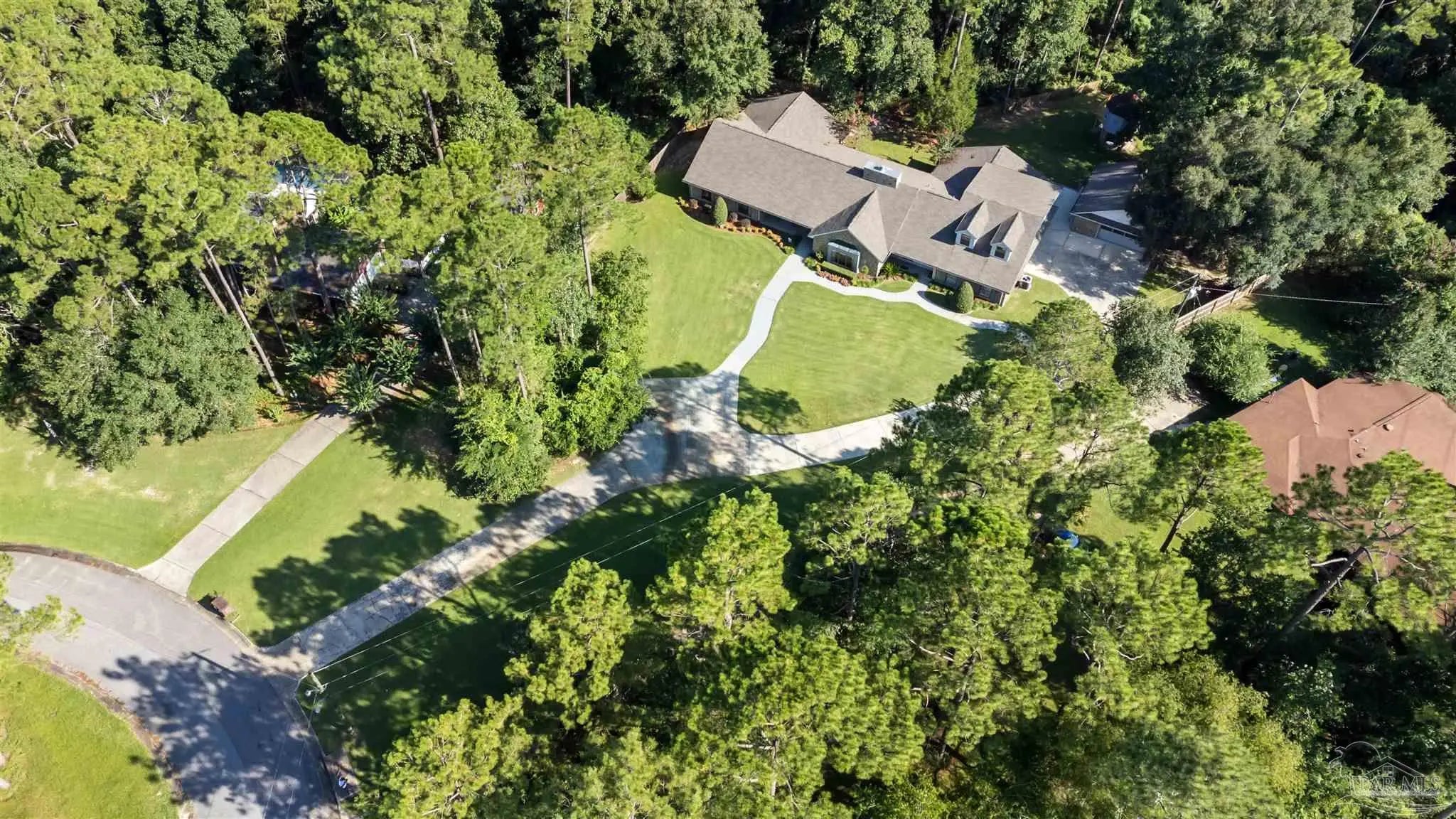 This French Country Ranch estate offers space, flexibility, and timeless curb appeal on 1.5 acres in Pine Forest Estates. The expansive property features 4 bedrooms and 3 full baths in the main home, plus a full bath in the detached garage, totaling over 4,400 square feet of living space. An additional approximately 500 square feet of finished attic space with dormer windows offers incredible potential for a future studio, home office, or guest retreat. Inside, vaulted wood ceilings highlight the sunken living room, and a flex space with double pocket doors provides the perfect setup for an office, music room, or creative studio. The kitchen was updated in 2020 with custom cabinetry, Formica counters, and a mosaic tile backsplash, and the bathrooms were renovated in 2015. Major systems provide peace of mind with a 2023 roof, two HVAC systems (2026 and 2005), and a 2025 water heater in the main home. The septic system has been recently pumped and certified. The detached garage includes its own full bath and wall-mounted AC, creating flexible space for a workshop, studio, or future guest quarters. The mother-in-law suite features separate exterior and interior access along with a kitchenette, making it ideal for multigenerational living or extended guests. Out back, enjoy a fenced yard with a custom-built two-story playhouse, mature trees, and room to roam. Additional highlights include 2x6 framing, hurricane clips, recently serviced double-pane tilt-out windows, oversized gutters with guards, reworked soffit and fascia. Well maintained and full of opportunity, this French Country Ranch is ready for its next chapter.