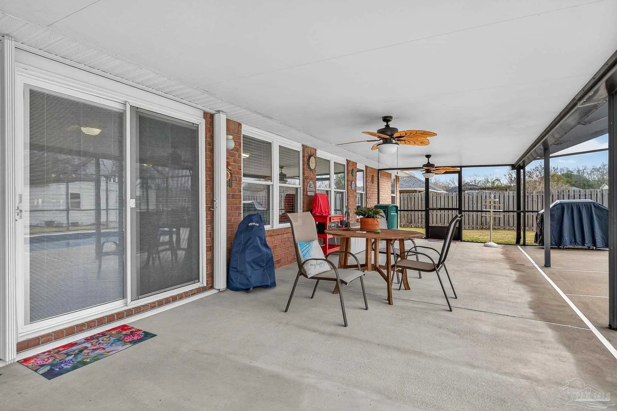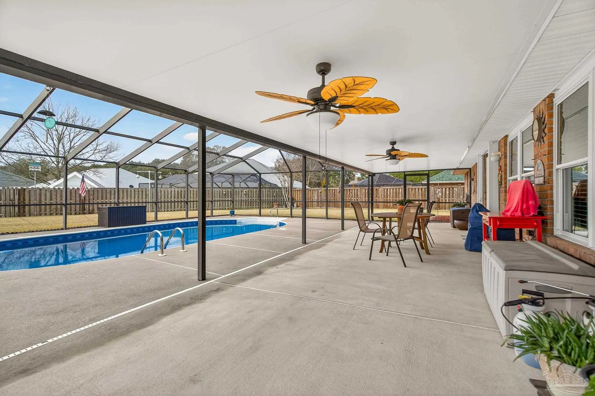 Experience the perfect blend of privacy and outdoor luxury in this stunning 4-bedroom, 3-bathroom split-plan home. Designed with versatility in mind, the layout features a unique private wing for the third bedroom, complete with its own hallway and bathroom—an ideal setup for a mother-in-law suite or a private guest retreat. The interior boasts a beautiful mix of flooring, including gleaming hardwoods in the foyer and main living area, durable tile in the kitchen, bathrooms, and sunroom, and cozy carpet in the bedrooms. Eat in Kitchen is made for a chef with plenty of cabinets, island with power which accommodates 2 bar stools,beautiful Corian counters,elegant back splash, ,pantry and fully equipped kitchen. Step outside to your own backyard oasis. The massive 44' x 13' covered patio flows into a screened-in pool area, perfect for entertaining without the worry of pests. With a new pool liner (2022) , a new pool pump and New Polaris ,this outdoor space is move-in ready for summer. Key Upgrades & Peace of Mind: New Roof (2017), Gutters, Sprinkler system with 5 zones. New Energy-Efficient Windows throughout (including the sliding glass door with built in blinds. Significant insulation added to the attic for maximum energy efficiency and lower utility bills. Whether you're relaxing in the sunroom or hosting a BBQ on the expansive patio, this home offers the space and upgrades you've been looking for. Schedule your showing today!