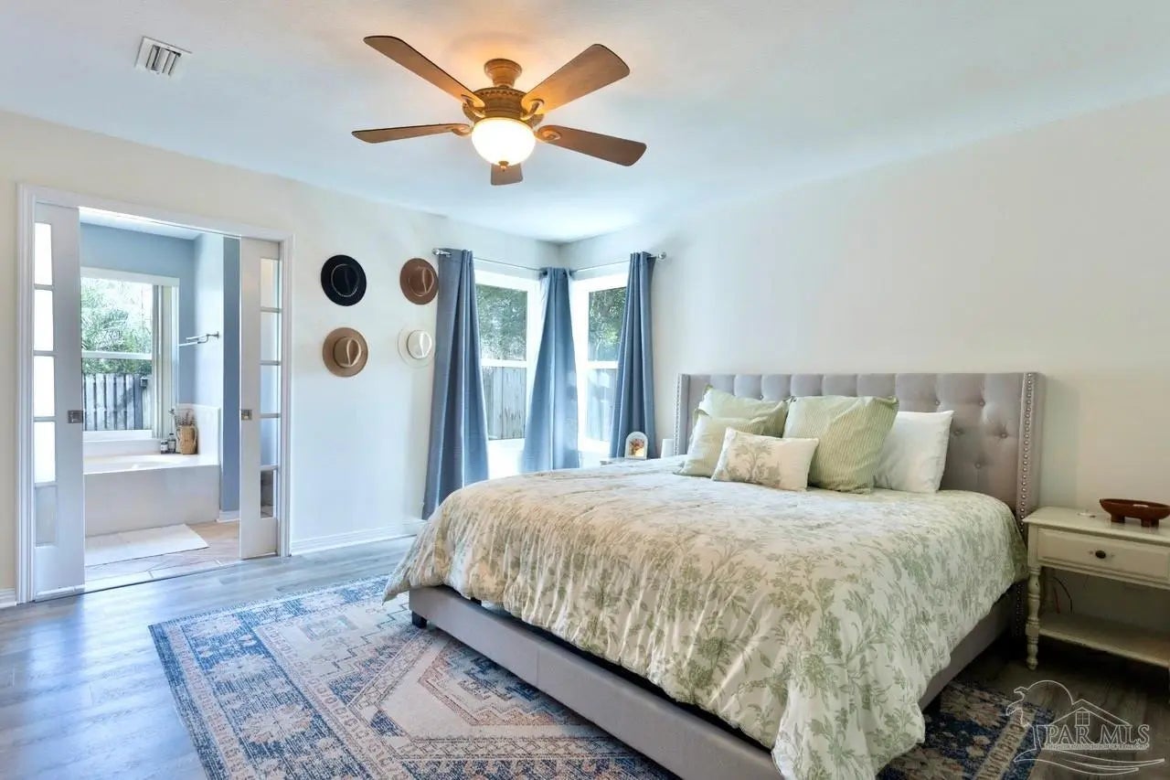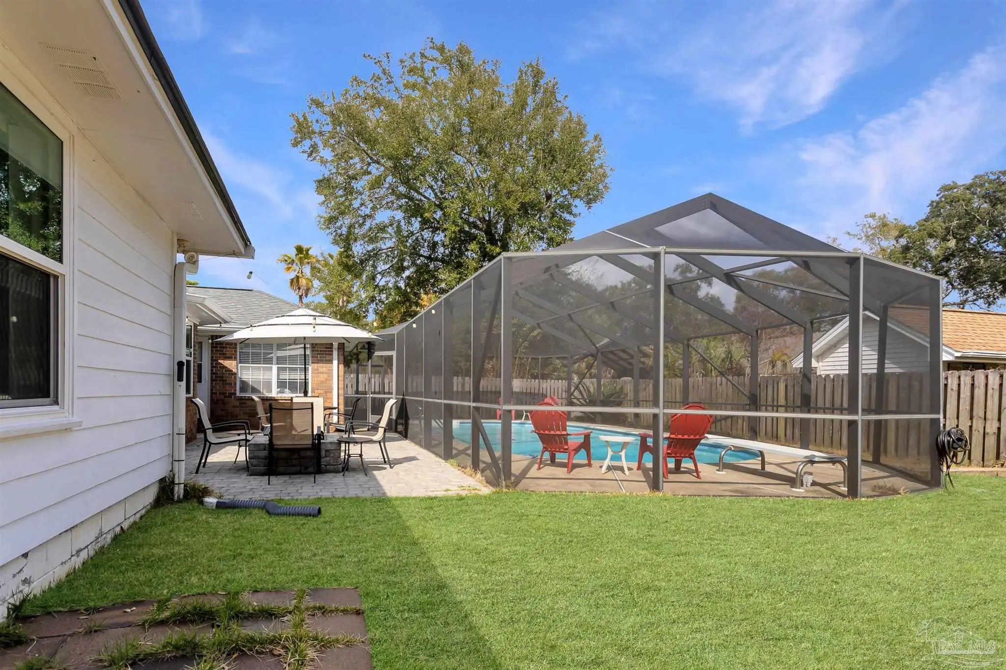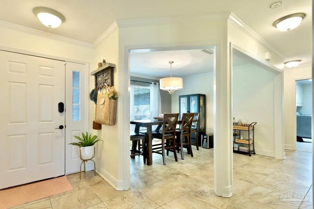 INGROUND HEATED SALTWATER POOL!!! This one-story brick home offers approximately 2,383 square feet with 4 bedrooms and 2 bathrooms. A new roof was installed in June 2023. The HVAC system was replaced in 2020 with a two-stage high-efficiency heat pump and Nest thermostat. Impact-resistant windows and luxury vinyl plank flooring enhance durability and efficiency. ADT system is negotiable. Property currently has a termite bond. The backyard features a privacy fence, sprinkler system, open patio, and a screen enclosed in-ground saltwater pool with heater and variable-speed programmable pump. A sunroom offers flexible additional living space suitable for a home office, exercise area, or secondary living space. Conveniently located by car approximately 12 minutes from downtown Pensacola and about 20 minutes from Pensacola Beach, with access to area shopping, dining, and Gulf Coast beaches.