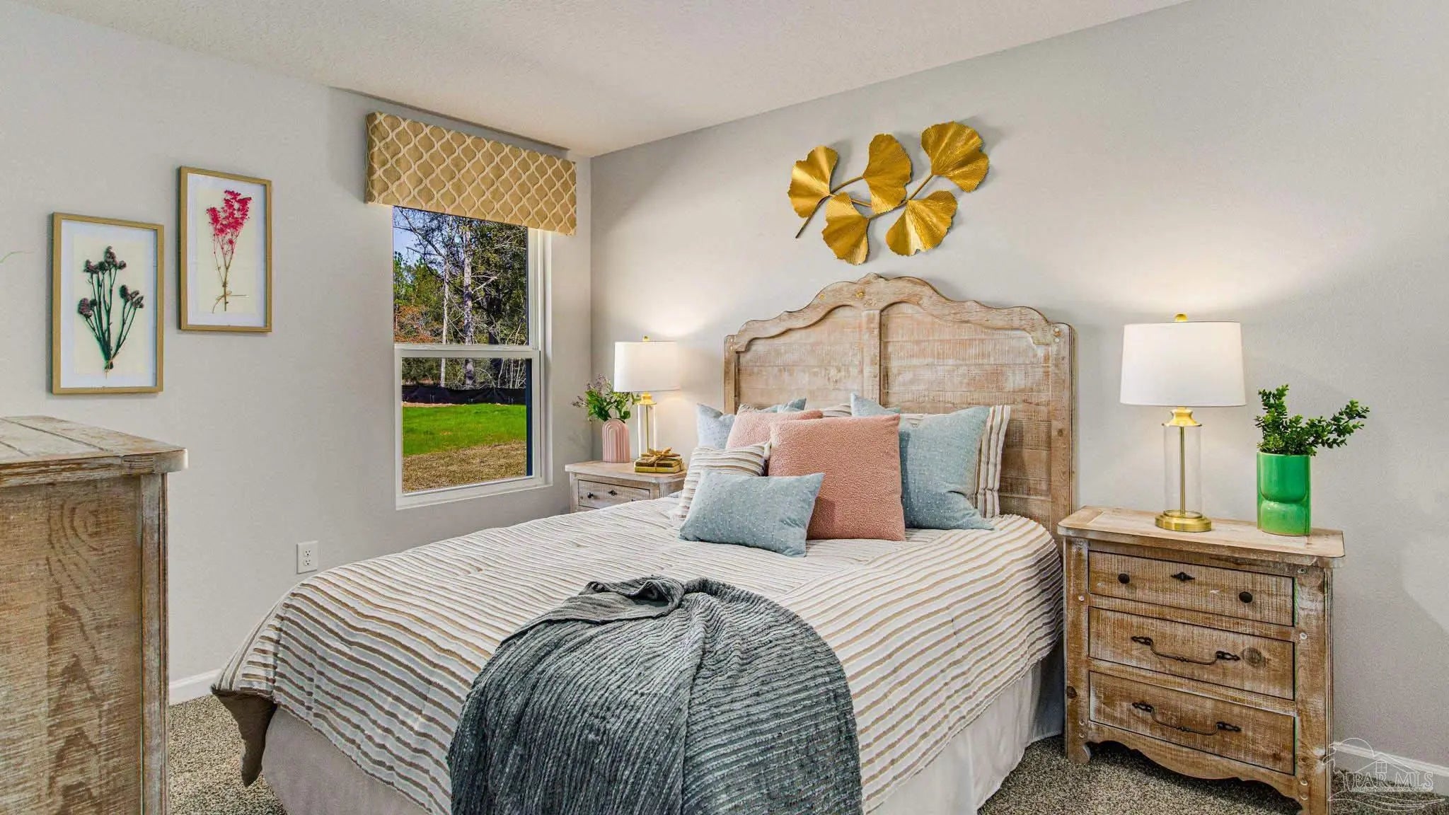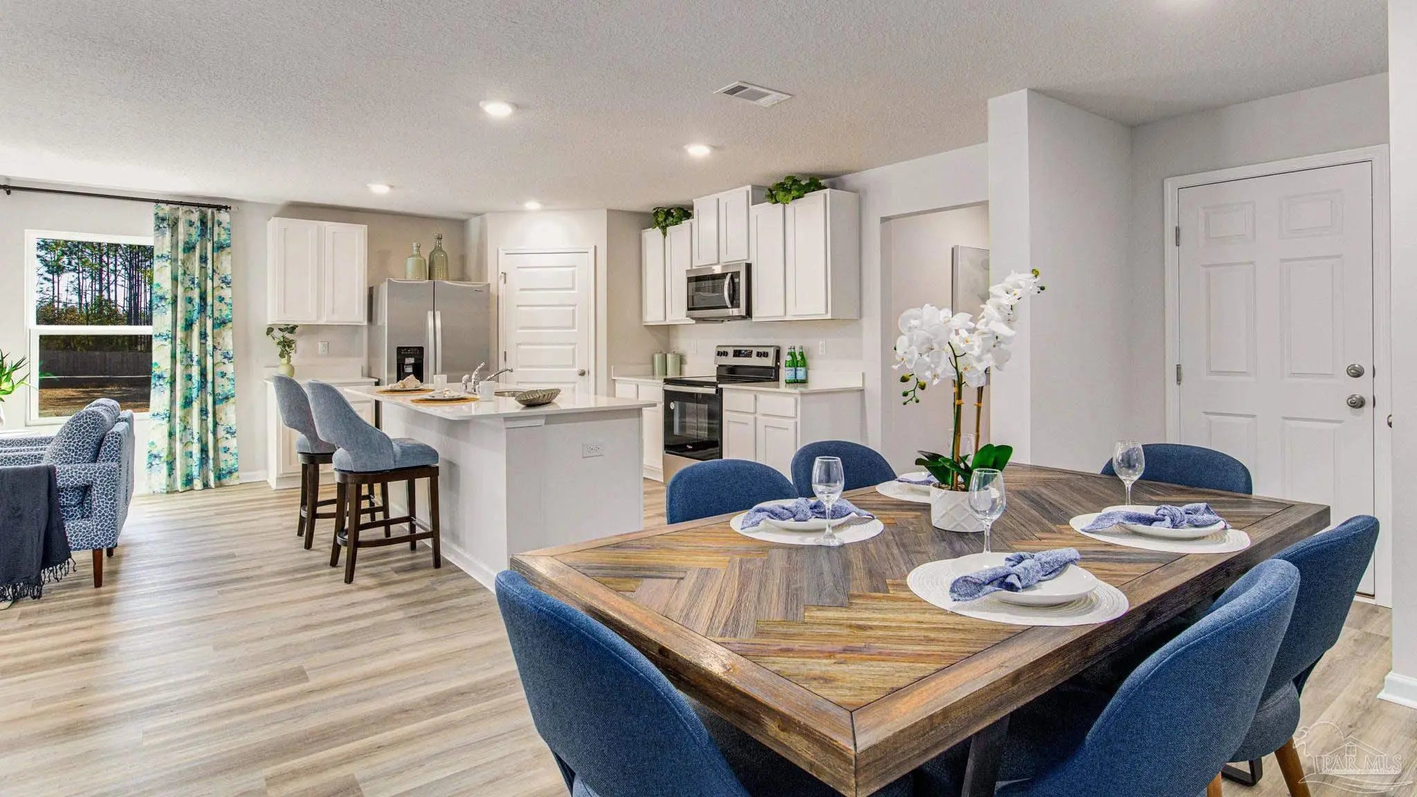River's Cove features a beautiful community pool, community center and playground. The highly desirable spacious Lakeside floorplan provides a well-designed OPEN concept, no wasted space, 5 beds, 3 baths, nice back patio & 2 car garage. All stainless appliances in the kitchen, smooth top range, beautiful countertops in kitchen and baths, quiet dishwasher, built in microwave, spacious dining area & more. Striking wood look flooring, plush carpet in the bedrooms. The Smart Home Connect System has several convenient devices you will enjoy. Also, Fabric Hurricane door and window protection is included. Awesome amenities & stylish curb appeal. Located in a fast-growing area with easy access to the interstate.