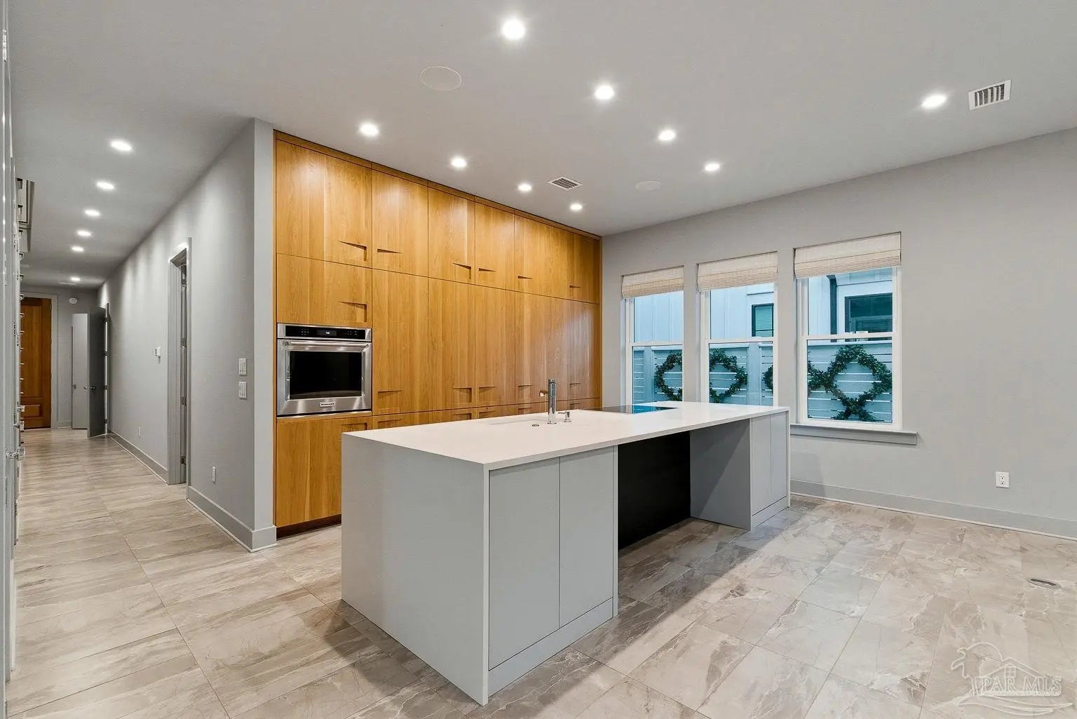 Built in 2022, this exceptional 3-bedroom, 2.5-bath home blends modern design with high-end custom craftsmanship in every detail. From the moment you arrive, the striking 9-foot mahogany front door and upgraded patio/entry pavers set the tone for what’s inside. Step into a light-filled interior featuring 10-foot ceilings on the main level, tile flooring throughout, solid interior doors, square can lighting, and an open-rail concept stairway accented by custom stair railings. The thoughtfully designed floor plan offers both functionality and style, including a flex room/office space on the second level perfect for working from home or play space. The heart of the home is the one-of-a-kind kitchen showcasing custom cabinetry built by Eastburn Cabinetry, including unique two-sided cabinetry that provides exceptional storage capacity. A Sub-Zero refrigerator, upgraded plumbing fixtures, and floor outlets in the living room add both convenience and luxury. Custom window shades throughout the home elevate the overall aesthetic. Retreat to the spacious primary suite featuring custom windows, a large walk-in closet with custom built-ins by Eastburn Cabinetry, and a beautifully appointed bathroom complete with mirrors and a makeup stool. Even the powder room has been elevated with designer wallpaper for a stylish touch. Additional highlights include: Oversized walk-in attic space, Upgraded back door, Pre-wired for generator, Outdoor speakers, Privacy fencing and Western Cedar split rail fencing, Professional landscaping above contract amount by Live Oak Landscaping. Every detail of this home has been carefully curated, offering a rare opportunity to own a truly custom property that stands apart from the rest.