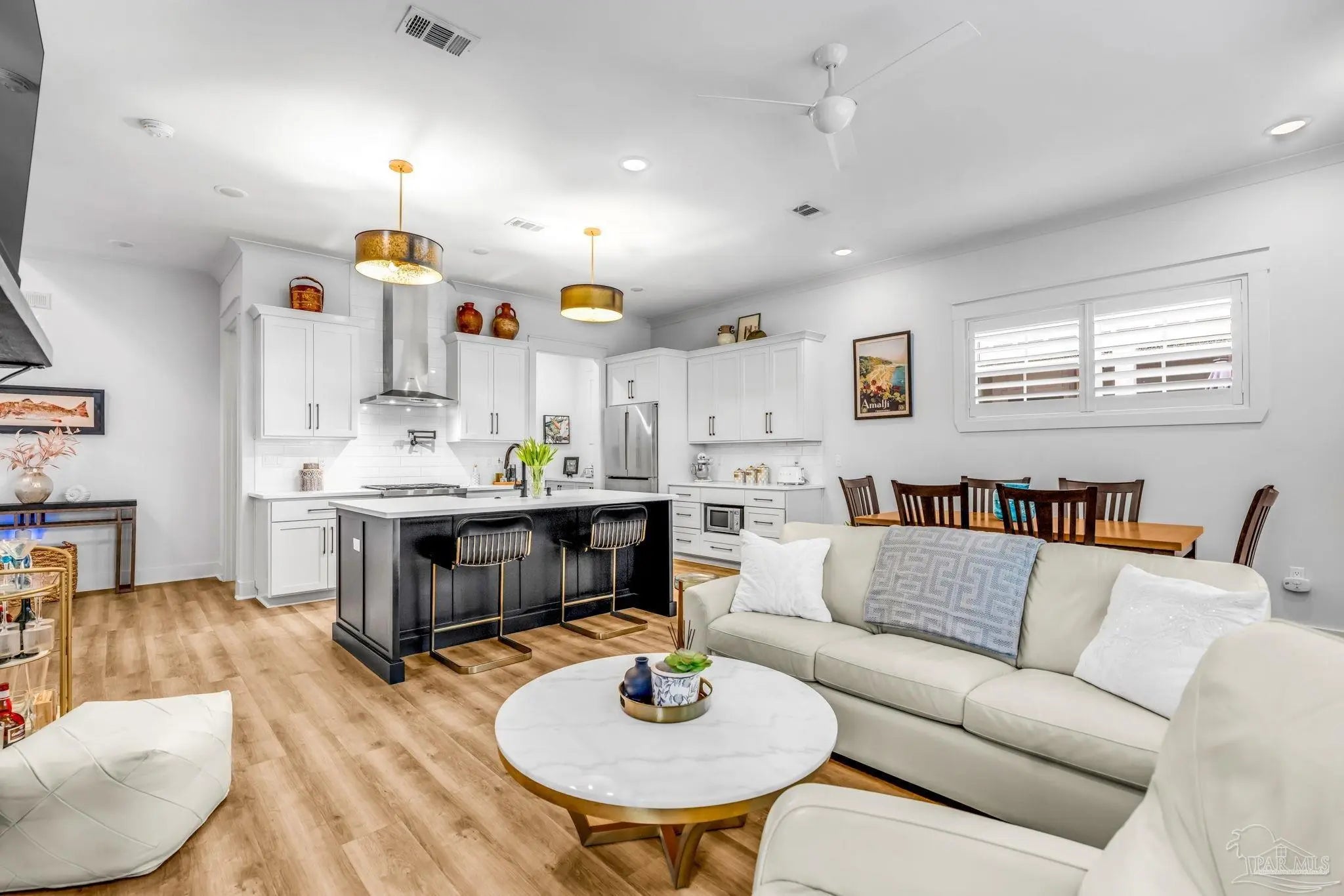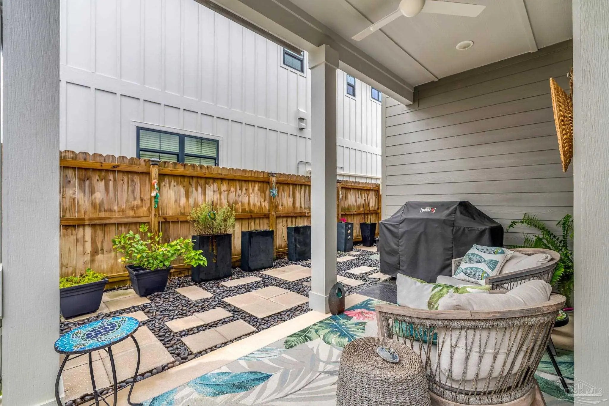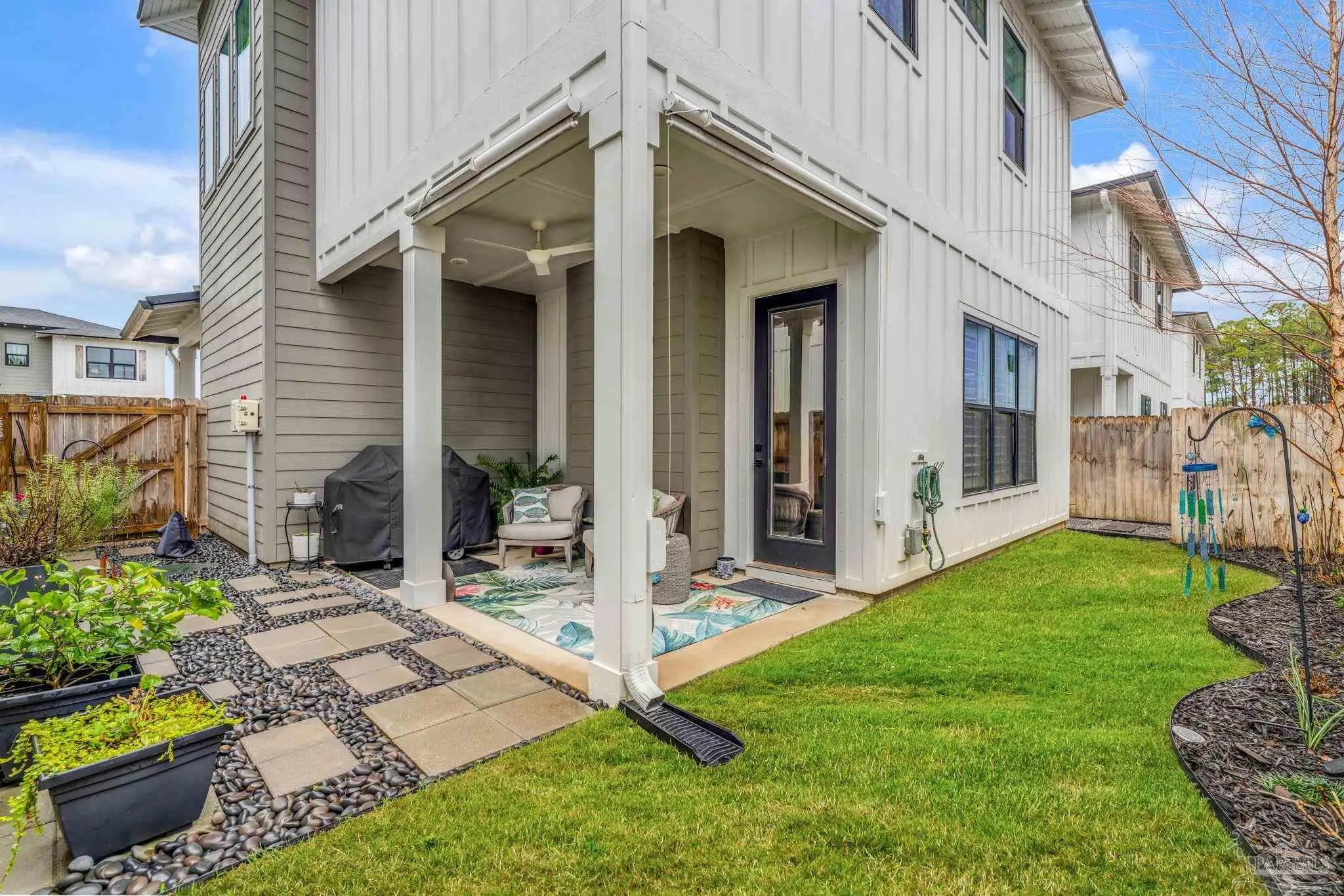Welcome to the coastal community of Redfish Harbor! The community includes resort-style amenities just minutes from the famous white sandy beaches of Perdido Key. This stunning three bedroom, 2.5-bath Craftsman-style home offers high ceilings and an open layout palette ready for your personal touch. LVP plank flooring featured throughout; complemented by upgraded lighting and custom plantation shutters. The showpiece gourmet kitchen includes an oversized island, quartz countertops and a Wolf dual-fuel oven/range. The refrigerator, quiet range hood and dishwasher are all Bosch products. The pot filler, farmhouse sink and abundant storage complete a great experience for any chef. The gas fireplace, framed by a dramatic wood accent, adds architectural character. The primary suite flows into a spa-inspired bath with a walk-in tiled shower, dual vanities, and custom cabinetry. Additional bedrooms are thoughtfully arranged in a Jack-and-Jill configuration. A second-floor laundry adjacent to the primary suite adds efficiency and convenience. Step outside to your private backyard oasis, beautifully landscaped and designed for low-maintenance enjoyment. The covered patio creates a serene setting for relaxing or entertaining and features remote-controlled solar shades and a natural gas connection to the BBQ grill. A 60-amp 220V service in the backyard allows for a future spa. Experience safety and peace of mind with a whole-home generator and electric surge protector. Garage has ample storage and a Carrier AC/heater. Enjoy luxury-style amenities including a community pool, pavilion with fireplace, pickleball courts, communal dock for fishing, and more. Boat slips are available for purchase separately at $39K for property owners. Whether you're seeking a primary residence, coastal retreat or investment opportunity, this home provides beach, boating in a relaxing lifestyle. So many upgrades! Schedule your showing today!