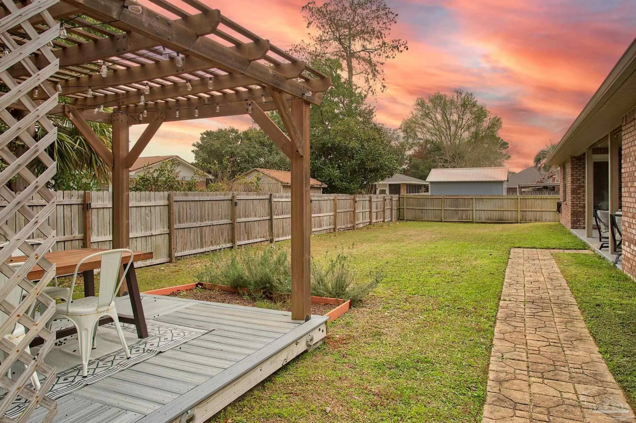 Welcome to this 2018, custom built Villa Venyce home in the heart of Gulf Breeze, Florida! As you enter the home, you will see wood look tile floors throughout the living areas of the home including the bathrooms and laundry rooms. This home features 9 foot ceilings throughout with crown molding in the living room and master bedroom. The formal dining room is off the kitchen which features custom cabinetry, recessed LED lighting, a breakfast bar and nook with a kitchen island that holds a wine fridge. In the master bedroom you will find private access to the backyard, a very spacious living quarters and a beautiful master bathroom with tile floors and an handsome tile shower! Upon entering the backyard, you will find a covered patio and a fully fenced in yard. This energy efficient home features quality Low E vinyl impact resistant windows and a 14 SEER Heat Pump.2022 Roof replacement. In the community of Villa Venyce, you will find canals throughout the neighborhood as well as a park with pavilion, picnic tables, playground and tennis court. It conveniently connects via back roads to Tiger Point golf course as well as shopping, dining, grade A elementary and private schools, churches and healthcare. Pensacola Beach, Navarre Beach, Naval Live Oaks, Military bases, downtown Pensacola and Pensacola International airport are in close proximity to this beautiful home.