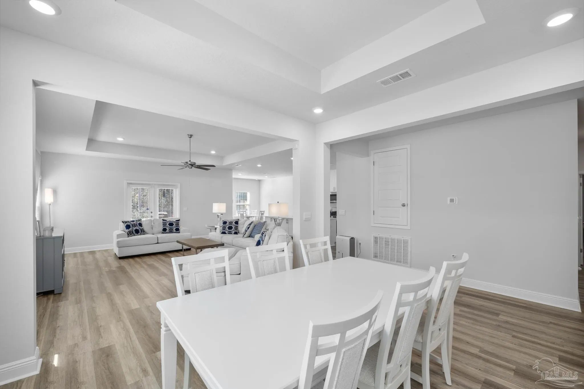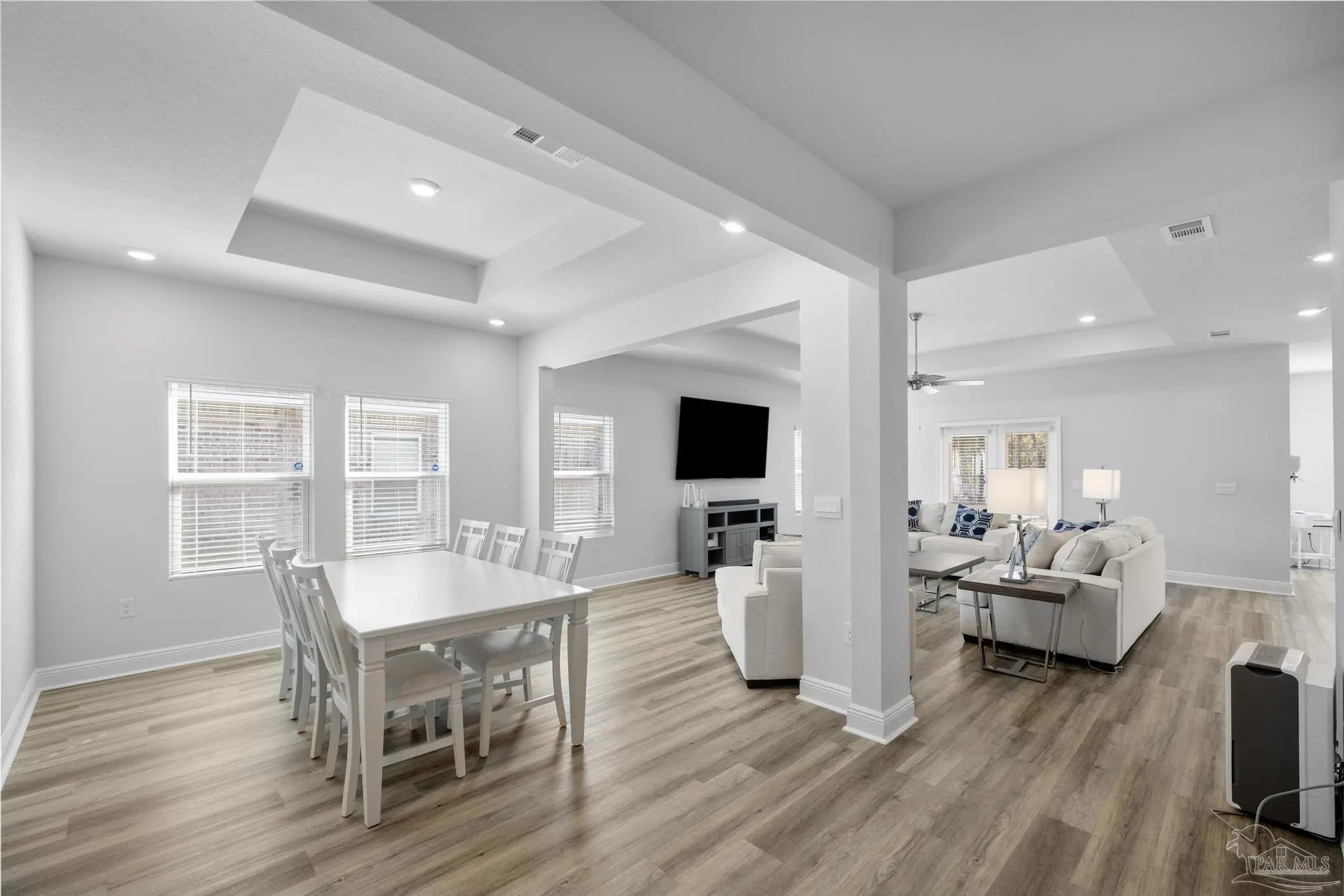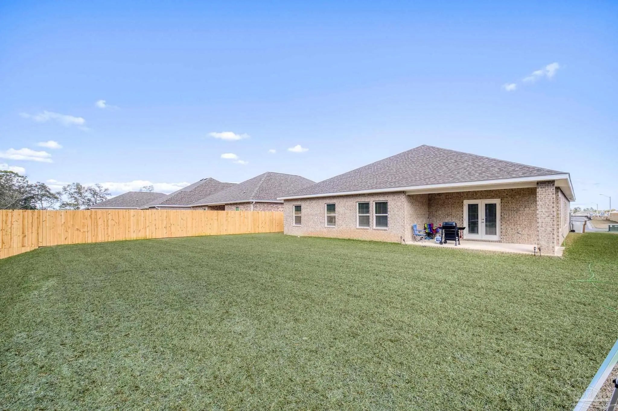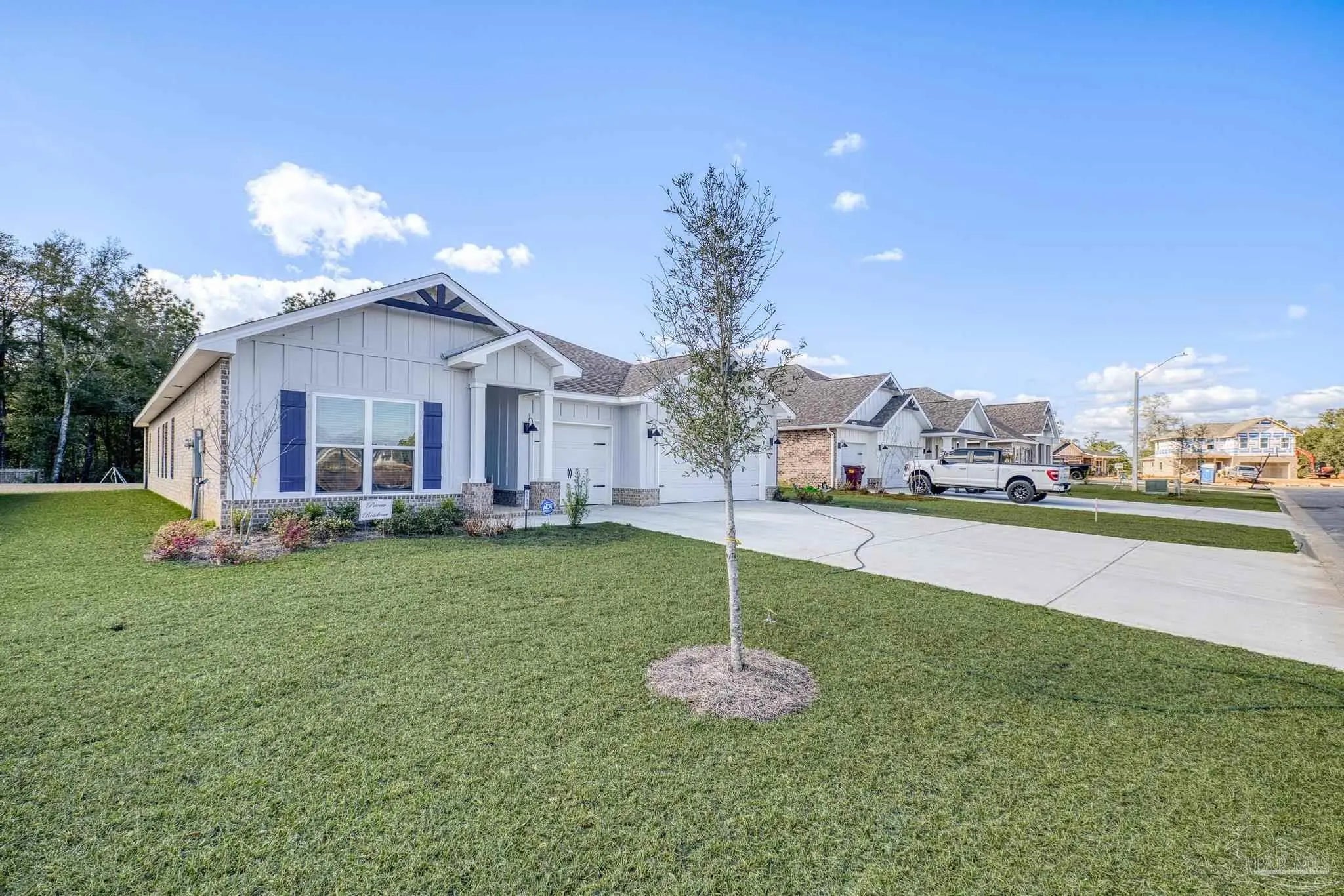 2025-built 4 bedroom, 3.5 bath home offering 2,835 square feet on a 0.26-acre lot in Milton. The layout is designed for both everyday living and entertaining with an open main living area and thoughtful separation between bedrooms and shared spaces. The kitchen overlooks the main living and dining areas and features white cabinetry, a large center island, ample counter space, and a breakfast nook for casual dining. Architectural details including columns and tray ceilings add character to the main living areas. The home includes a spacious primary suite and additional bedrooms with 3.5 total bathrooms, providing flexibility for family, guests, or workspace needs. Outside, a covered patio and dedicated grilling area overlook the backyard with room for outdoor living, entertaining, or play. Located in Milton with convenient access to local schools, shopping, and commuting routes, this home offers modern construction, a functional layout, and space both inside and out.