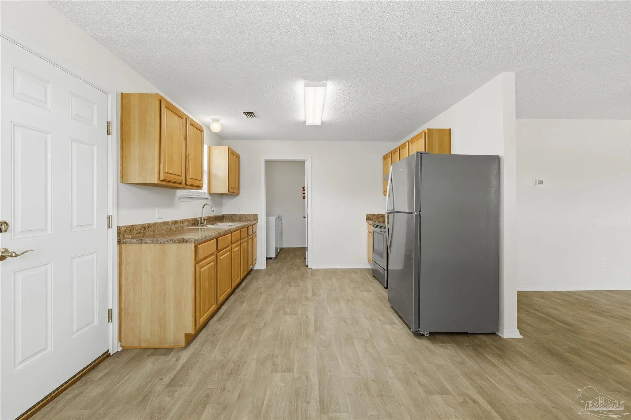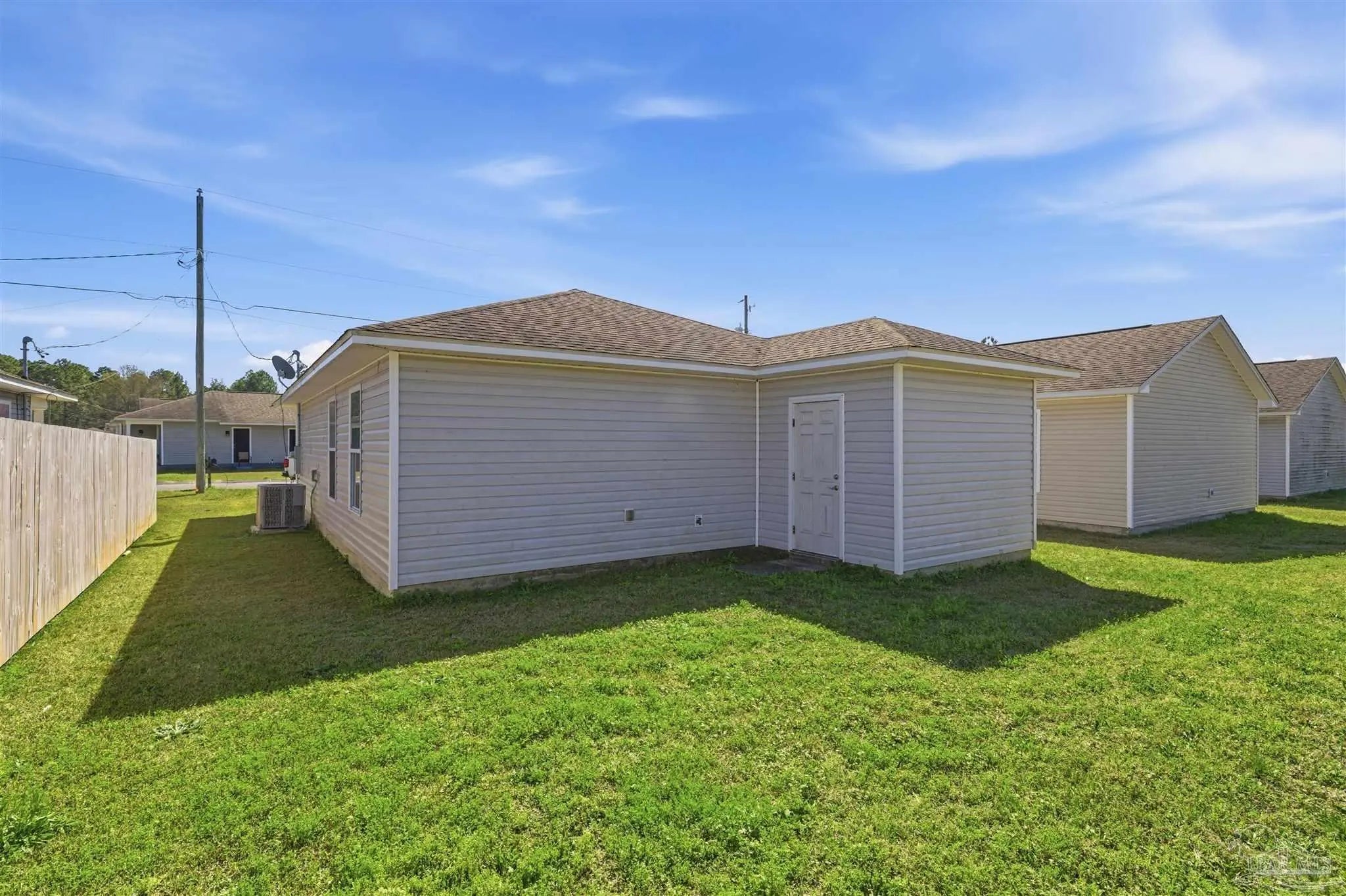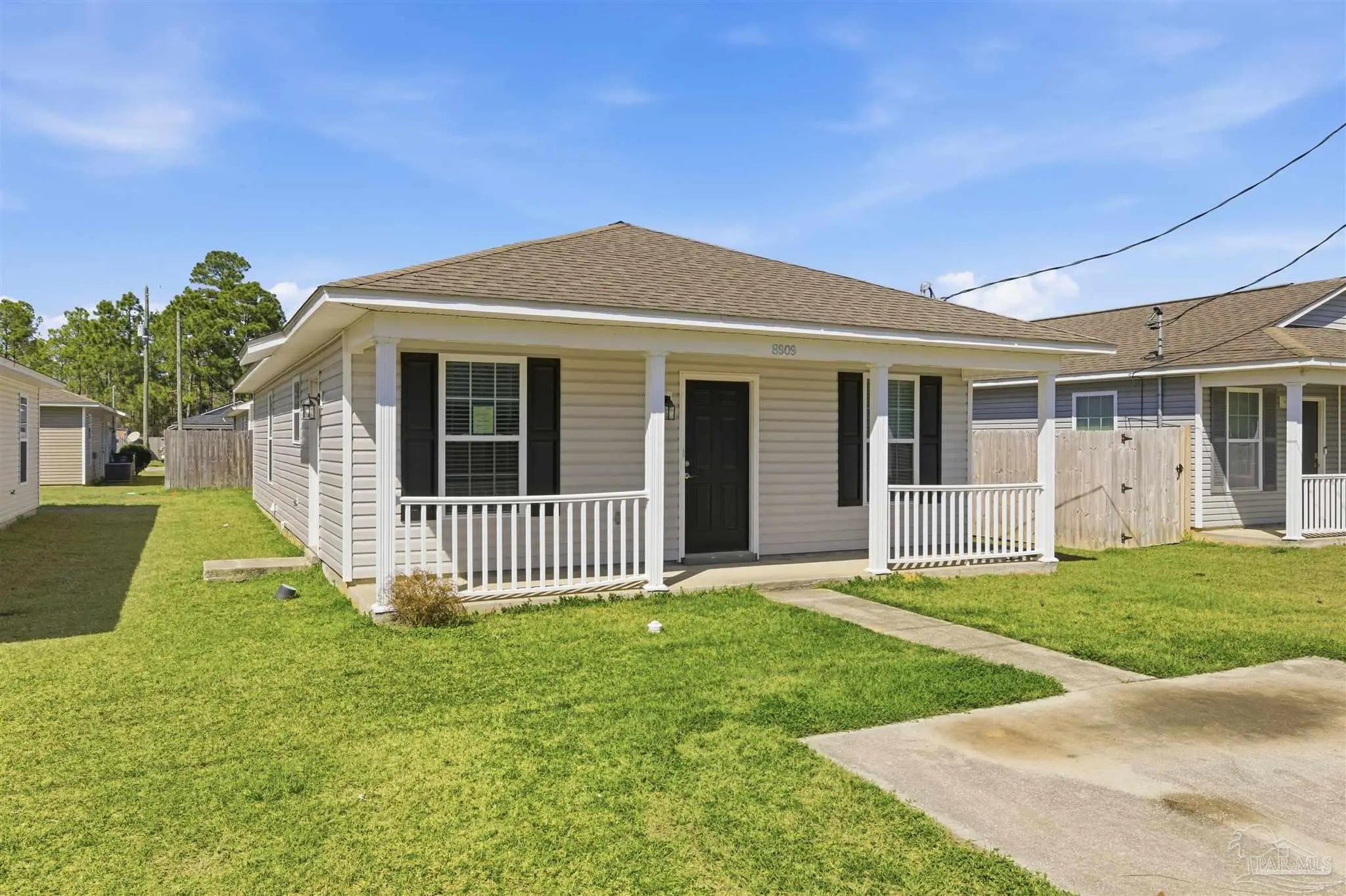 Charming and move-in ready! This 3-bedroom, 2-bath cottage welcomes you with a cozy front porch—perfect for enjoying your morning coffee or relaxing in the evening. Inside, you’ll find a bright open layout where the living and dining areas flow effortlessly into the kitchen, creating an inviting space for everyday living and entertaining. The kitchen features stainless steel appliances, and the home has been updated with luxury vinyl plank flooring throughout for a fresh, modern feel. For added convenience, the washer and dryer are included. This home has room for an office or a playroom, and the primary suite offers a private bath. Conveniently located approximately 10–15 minutes from NAS Pensacola, this home also provides easy access to shopping, dining, and everyday conveniences. This property is part of the Habitat for Humanity program, offering an excellent opportunity for qualified buyers seeking affordable homeownership.