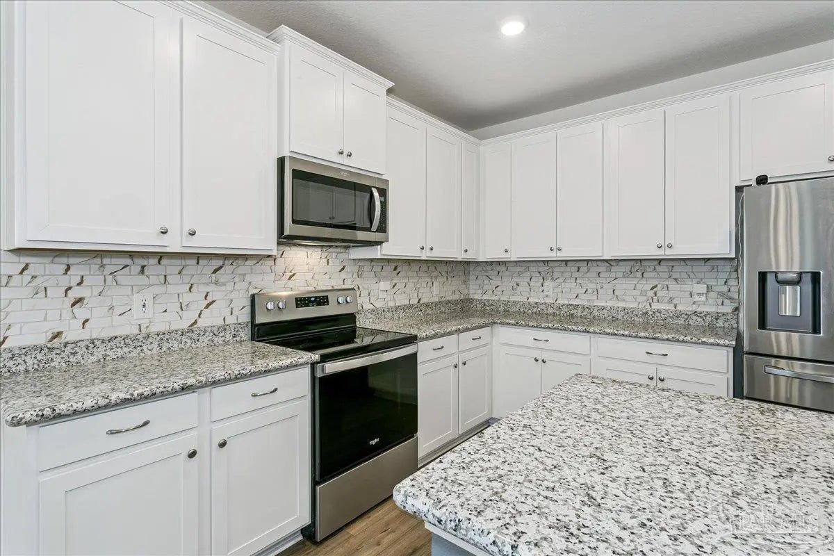 Beautifully maintained 3-bedroom, 2-bath home with a 2-car garage offering space, flexibility, and a prime Pace location. A large bonus room provides versatile options for a home office, second living area, playroom, or hobby space. Conveniently located within walking distance to Pace High School and just minutes from shopping, dining, and medical facilities. Easy commute to Naval Air Station Pensacola and Naval Air Station Whiting Field. This home features stylish updates and valuable energy-efficient upgrades designed for long-term savings. Enjoy added peace of mind with the remaining builder’s structural warranty and fully paid-off solar panels that remain under warranty. The solar system offers significant energy savings while helping offset rising utility costs. Additional efficiency features include smart home compatibility, installed gutters, and an irrigation system utilizing reclaimed water. Inside, the spacious great room showcases luxury vinyl plank flooring, recessed lighting, and ceiling fans, creating a bright and inviting atmosphere. The chef-inspired kitchen is thoughtfully designed for everyday living and entertaining, featuring a large granite center island, stainless steel appliances, motion-sensor under-cabinet lighting, abundant cabinetry, decorative backsplash, and a generous pantry. The private primary suite offers a relaxing retreat with tray ceilings, a spacious walk-in closet, and an ensuite bath complete with dual vanities and an oversized tiled shower. Step outside to a fully fenced backyard designed for year-round enjoyment. The covered patio with ceiling fan provides a comfortable shaded space for outdoor dining or relaxing, while the yard offers room to play, garden, or unwind. With modern upgrades, energy-saving features, and a central location, this move-in ready home offers an exceptional opportunity in Pace.