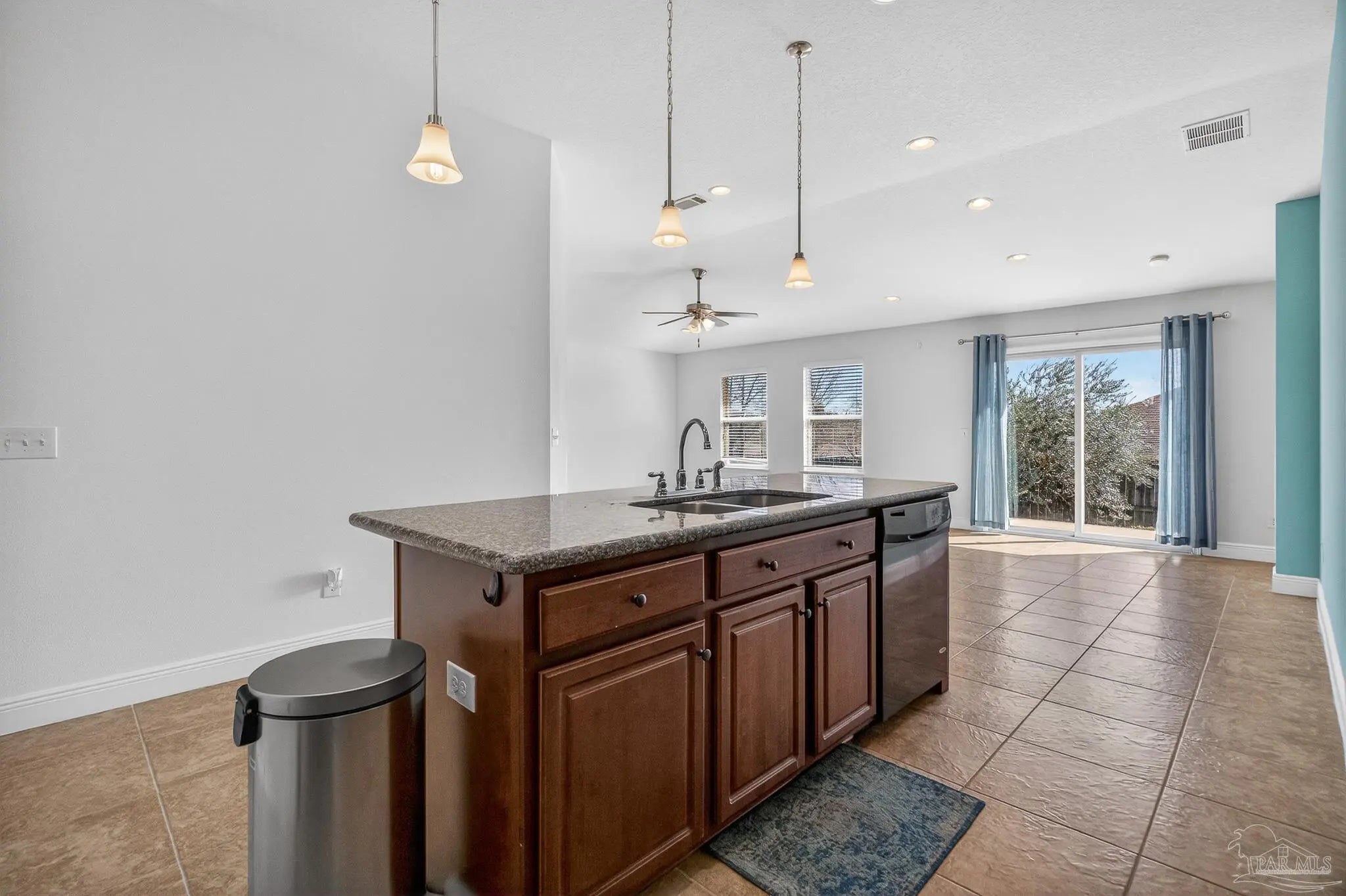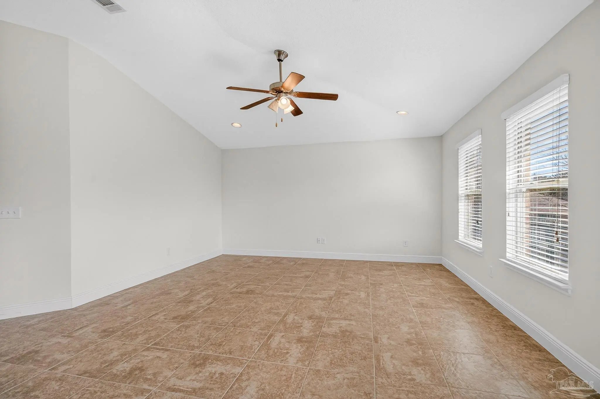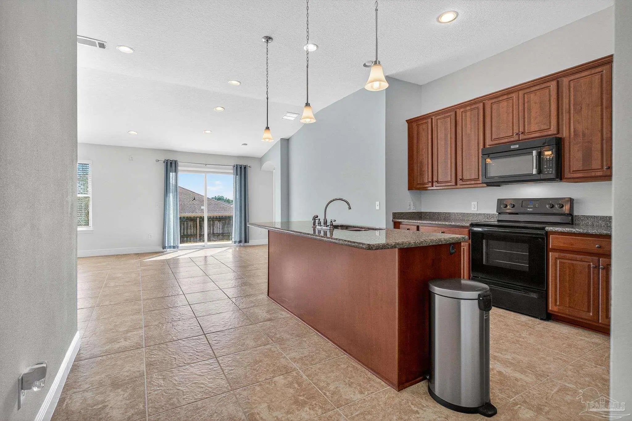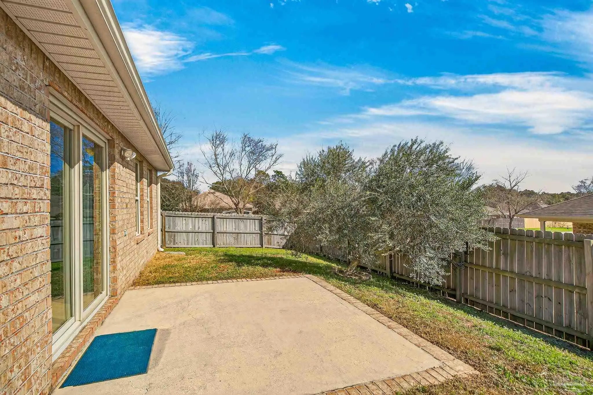 Located on a corner lot in Bon View, this all-brick home offers a comfortable layout, thoughtful details, and a convenient location just minutes from I-10 and about 30 minutes to Pensacola Beach. The heart of the home features an open living, dining, and kitchen space with vaulted ceilings that create an airy feel. A large island anchors the kitchen, complemented by crown-molded cabinetry and a pantry for extra storage. Tile flooring runs throughout the main living areas, laundry room, and bathrooms for durability and easy upkeep. The split bedroom design provides privacy, with two secondary bedrooms and a full bath positioned at the front of the home behind an arched entry. The primary suite is generously sized and includes a tray ceiling, a walk-in closet, and a spacious bath with double vanities, a garden tub, separate shower, and a private water closet. Outdoor spaces are just as inviting. The covered front porch offers shade throughout much of the day, while the fenced backyard features a patio area ideal for grilling or relaxing. Fruit-bearing olive, blueberry, and fig trees add a unique touch to the landscape. Additional highlights include a fully finished two-car attached garage with attic storage and a ¾-horsepower Craftsman opener. Residents of Bon View enjoy annual community gatherings, including Fourth of July celebrations and a neighborhood fall chili cook-off.