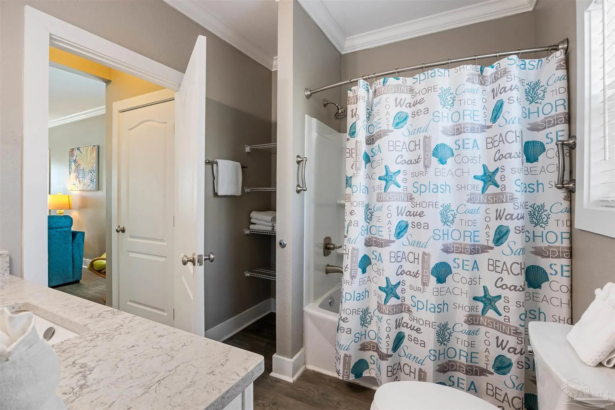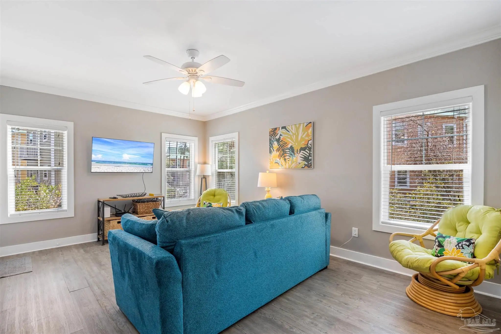 - Baseboards, Ceiling Fan(s), Crown Molding, High Speed Internet