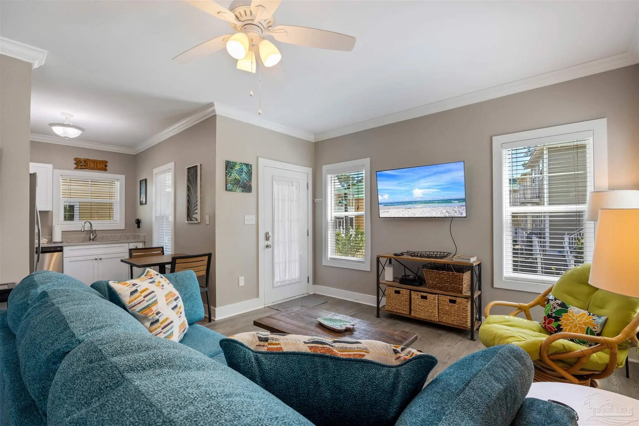 Turnkey Coastal Retreat & Investment Opportunity at Purple Parrot Resort. Discover the ease of owning a fully furnished coastal getaway in one of Perdido Key’s most recognizable resort communities. This attractive one-bedroom, one-bath ground-floor condo at Purple Parrot Village Resort offers the perfect combination of personal enjoyment and income potential, making it an ideal choice for buyers seeking a vacation home that can also perform as a short-term rental. Positioned in a quieter, more secluded section of the resort, this ground-level unit provides a relaxed setting along with the convenience of easy access—no stairs required. The welcoming front porch creates a perfect place to enjoy your morning coffee or unwind in the evening after a day exploring Perdido Key. Inside, the condo has been thoughtfully updated to provide a comfortable and stylish living space. The living area features new furnishings and an inviting layout designed for relaxation after a day at the beach. The spacious bedroom offers a king-sized bed, while the updated bathroom includes a new tub and shower combination with safety bars. The modern kitchen comes fully equipped for preparing meals at home, and an in-unit washer and dryer adds everyday convenience for both owners and guests. Purple Parrot Resort continues to be a favorite among visitors and owners alike, known for its laid-back coastal village atmosphere and impressive amenities. Residents and guests enjoy the 5,000-square-foot lagoon-style outdoor pool with waterfall features, an island hot tub, heated indoor pool, fitness center, saunas, beach volleyball court, and the popular on-site Purple Parrot Tiki Bar. The resort’s welcoming front porches and tropical setting create a social, relaxed environment that keeps visitors returning year after year. Whether you are looking for a personal beach retreat, a flexible investment property, or a combination of both, this ground-floor Purple Parrot condo offers a turnkey opportunity.