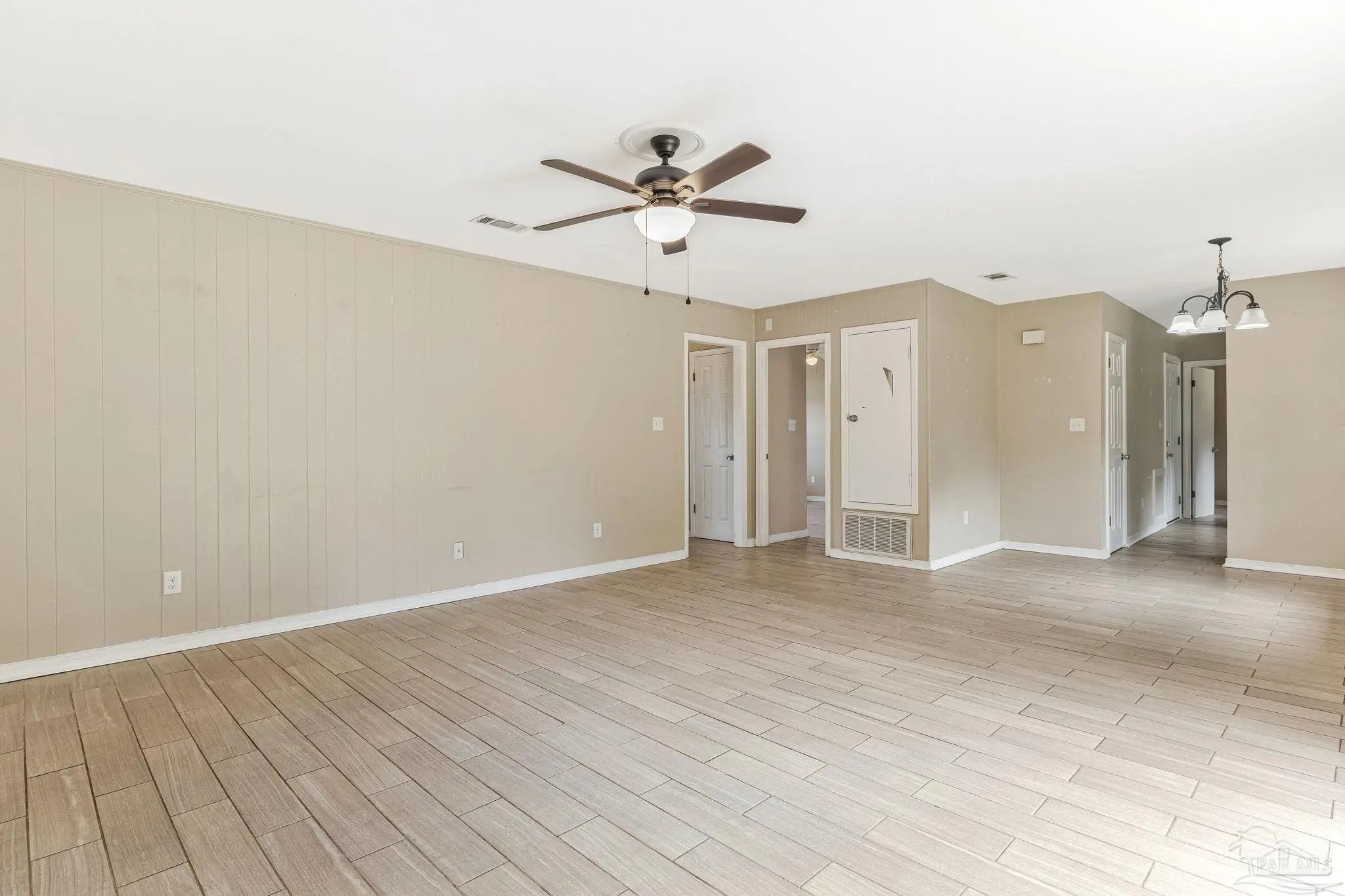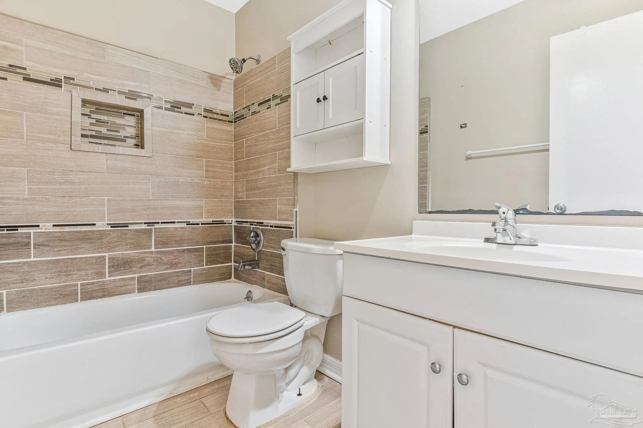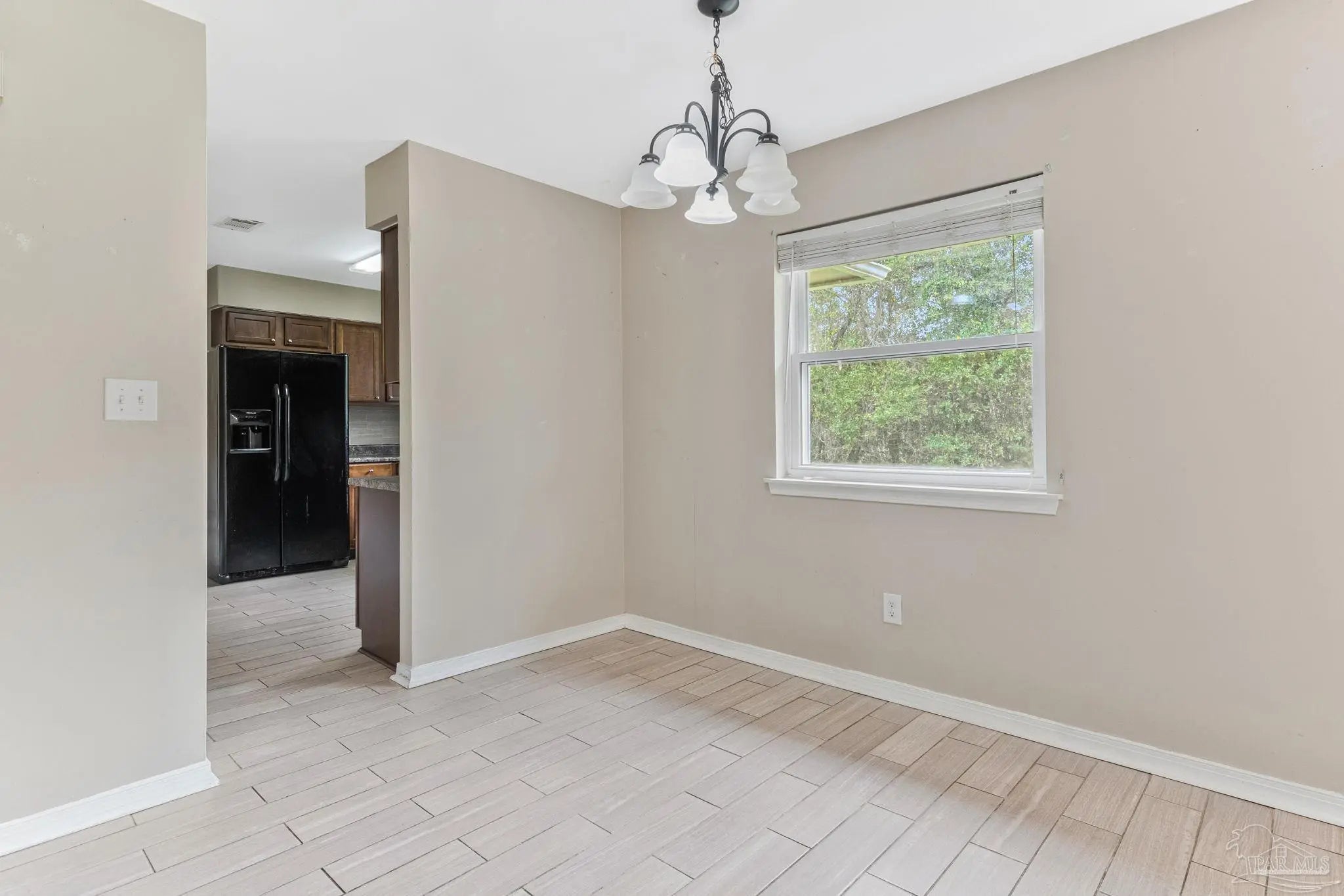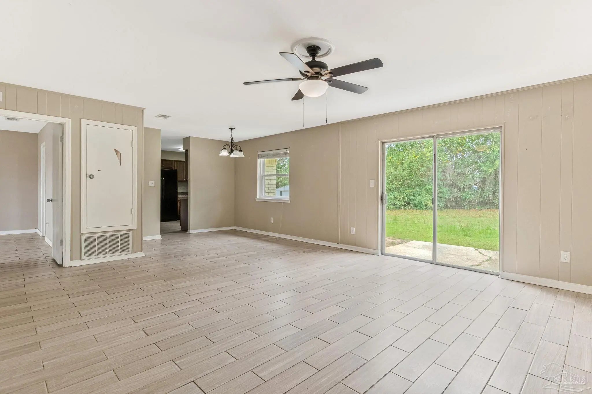 This charming residence features a well-designed floor plan with three bedrooms plus a versatile fourth bedroom or bonus room, perfect for an office or sitting area. Enjoy inviting, open living and kitchen areas, complemented by generous room sizes throughout. The primary bath offers a spacious walk-in shower and cultured marble counters, while the updated hall bath boasts a stylish tile surround, tile floors, and also features cultured marble counters. Double pane windows installed have a transferable warranty and Buyer can pay for transfer at closing. The heart of the home, the remodeled kitchen, shines with attractive wood cabinets and sleek black appliances, including a built-in microwave, smooth-top electric range, dishwasher, and new garbage disposal. An inside laundry room adds to the home's convenience. You'll love the easy maintenance and fresh feel of tile floors throughout all living areas. The home also includes a one-car garage, providing extra storage and convenience. This home boasts recent paint (inside & out), flooring, fixtures, and loads of personality! The HVAC and roof are 9 years old, and the water heater is 10 years old. The expansive yard is almost half an acre, with a portion of the backyard thoughtfully left natural for enhanced privacy. Enjoy the convenience of being within walking distance of the neighborhood park, complete with a playground, basketball court, and track and field. Plus, there's a fenced dog park directly across the street from the main park, making outdoor activities a breeze. This home is also conveniently located to the airport, shopping mall, and hospitals, and is just 10-15 minutes from downtown Pensacola. This home truly offers comfortable living and fantastic value.