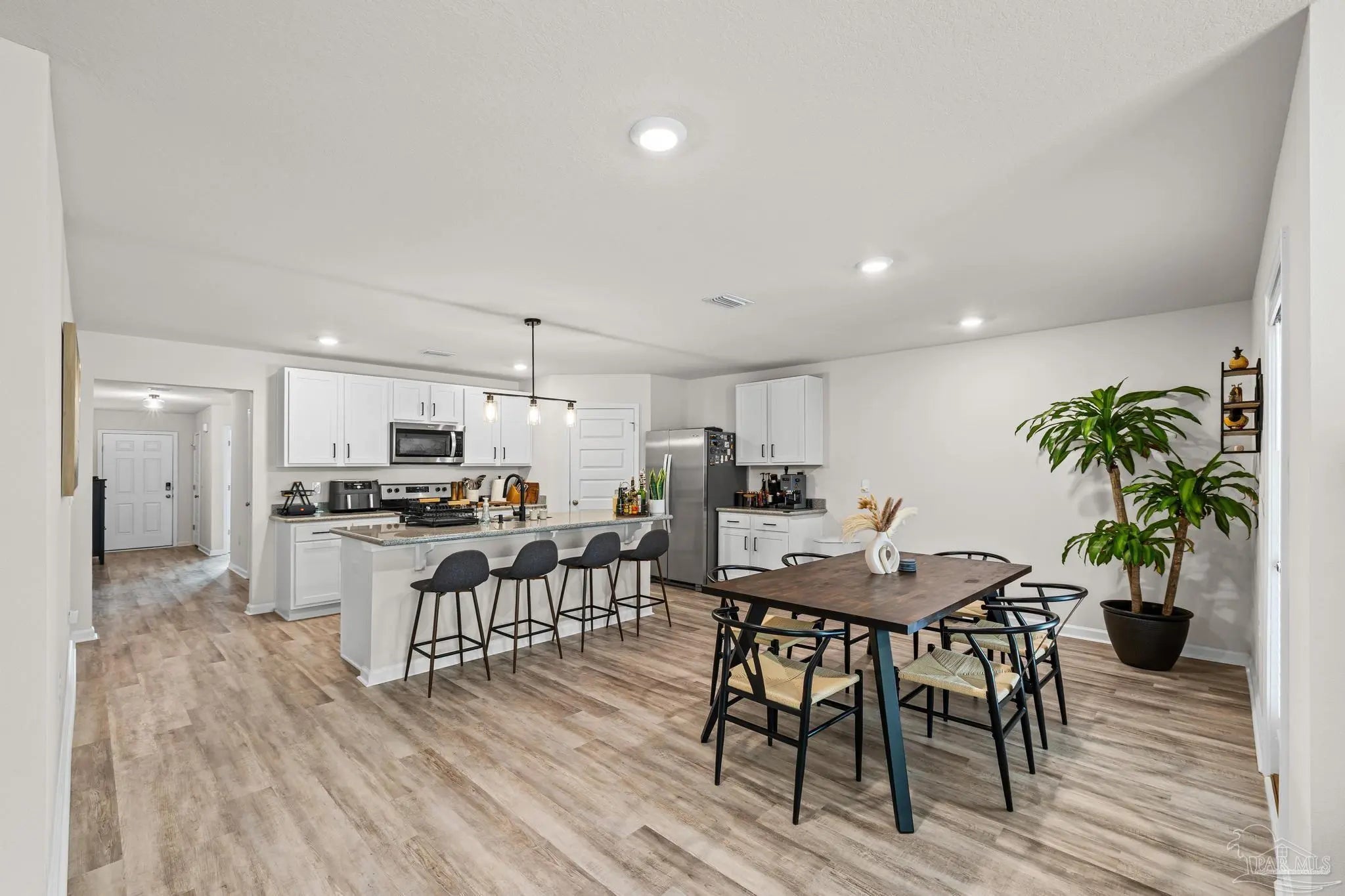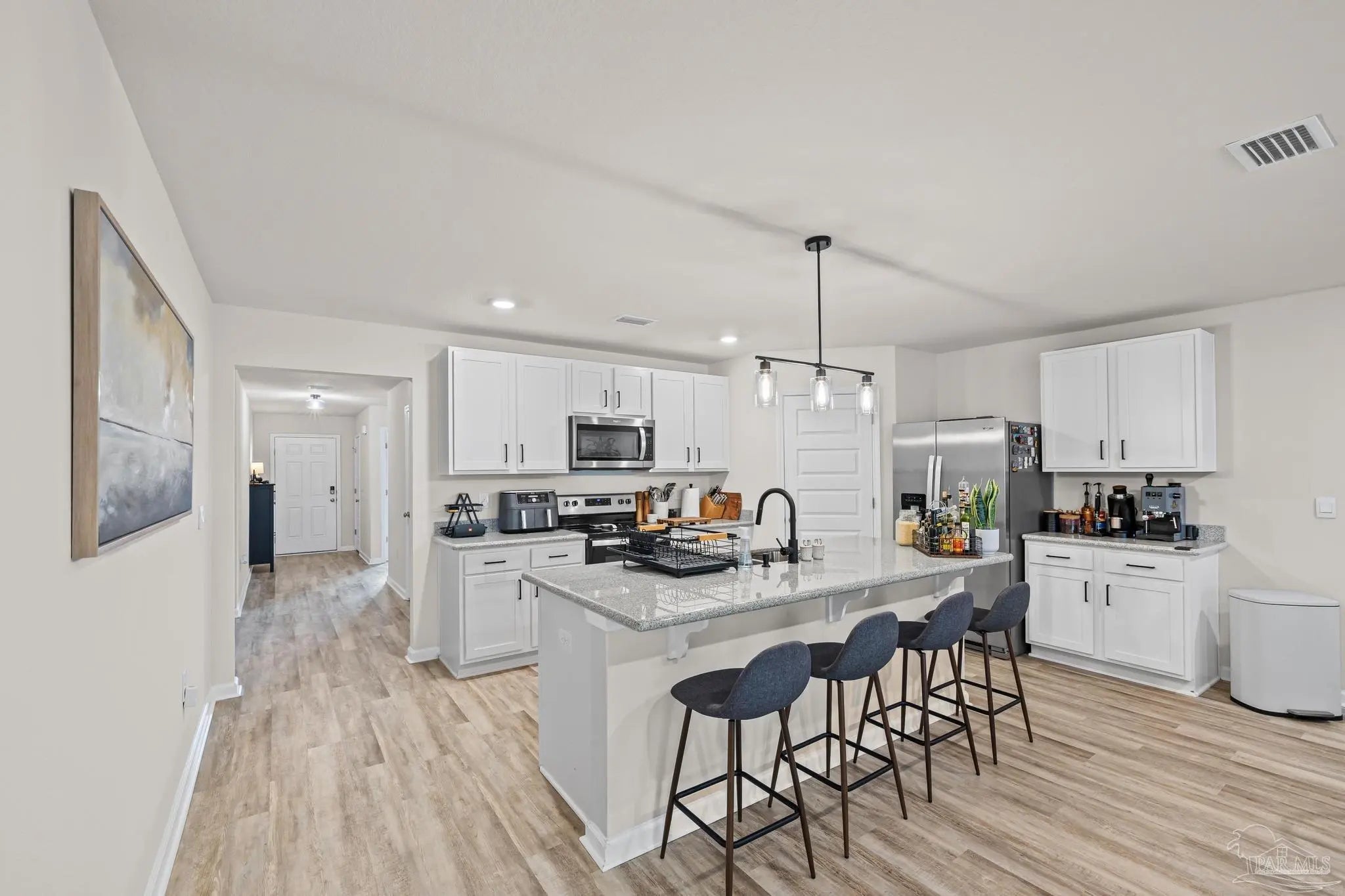 Built in 2023, this well-maintained 4 bedroom, 2 bathroom home offers 1,787 square feet of living space on a .14-acre lot with an open-concept layout designed for both everyday living and entertaining. The living room, dining area, and kitchen flow together to create a central gathering space, while the bedroom layout provides separation and privacy throughout the home. The primary suite features a custom built-in closet system designed to maximize storage and organization. Recent upgrades add both style and functionality, including new bathroom fixtures, custom built-in storage in the garage, and additional attic storage for extra organization. Step outside to a covered back patio overlooking the backyard, offering a comfortable space to relax, grill, or enjoy outdoor gatherings. Conveniently located just 25 minutes from NAS Pensacola, 15 minutes to Interstate 10, and about 35 minutes to the beautiful beaches of Pensacola Beach and Perdido Key.