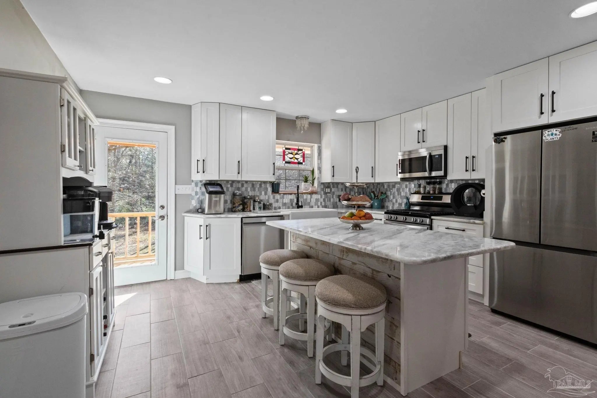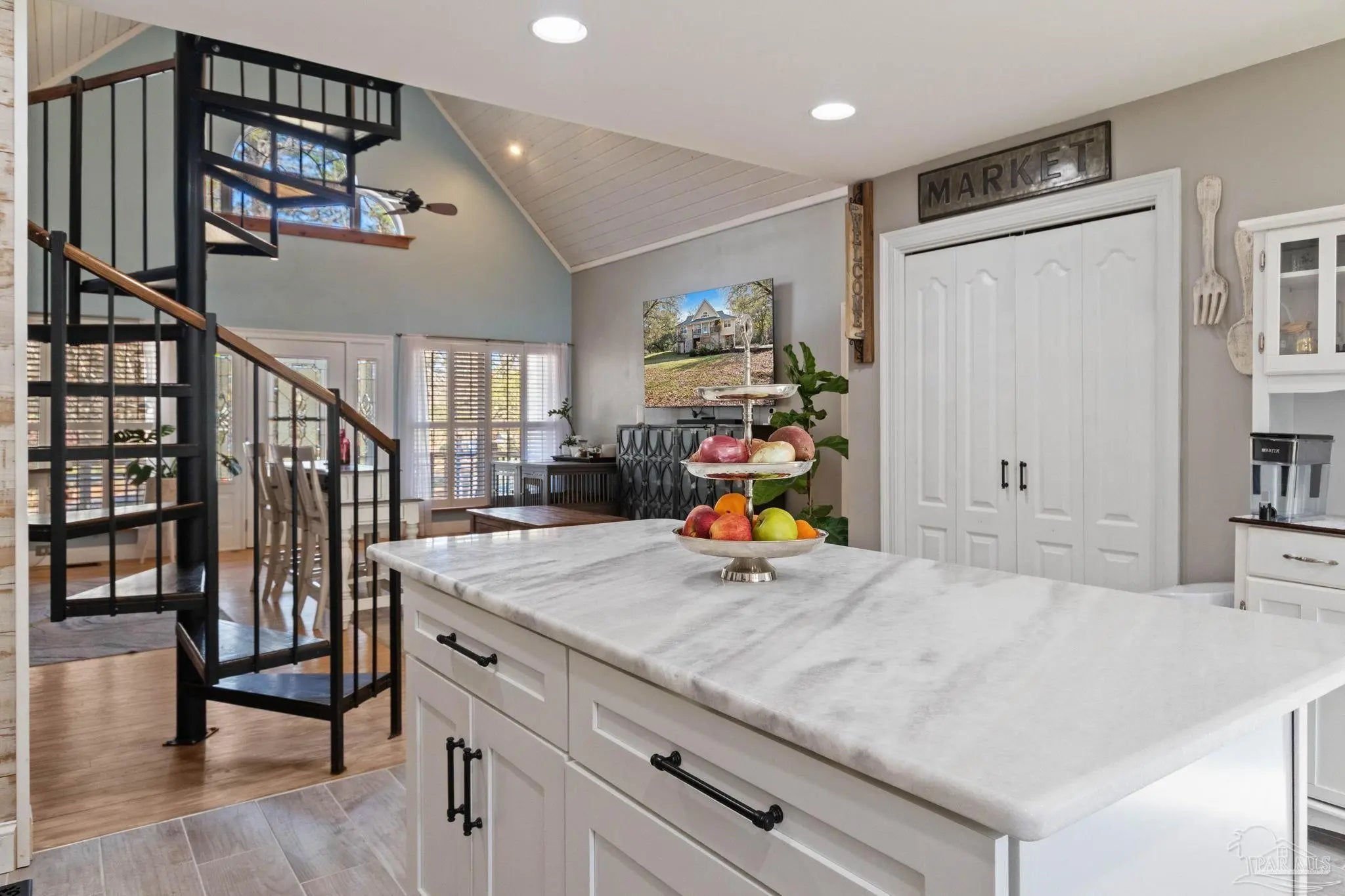 Experience the perfect blend of rustic charm and modern luxury in this stunning, fully renovated retreat situated on nearly two private acres along the serene banks of Sandy Creek. The heart of the home features an open floor plan highlighted by soaring tongue-and-groove cedar ceilings, rich wood floors, and a signature spiral staircase leading to a versatile loft space. You will love the completely updated kitchen, now featuring premium gas appliances and stylish finishes that seamlessly integrate with the home's natural aesthetic. Designed for comfort and efficiency, the residence boasts a split floor plan for maximum privacy, including a spacious primary suite with its own private deck overlooking the water. The primary bath offers a spa-like experience with a separate shower and soaking tub. Practical upgrades abound, including a durable metal roof and a tankless water heater. Whether you’re enjoying the view from the deck or exploring your expansive creek-front lot, this home offers a rare, turn-key sanctuary in a truly picturesque setting. Adjacent lot FSBO. Tour Today!