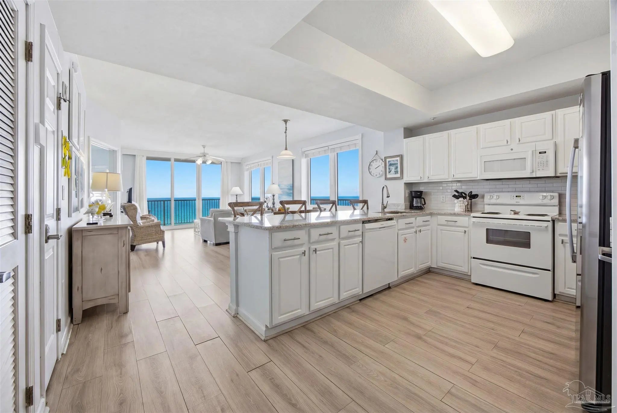 Beautiful 3-bedroom, 3-bath unit located on the 8th-floor west side, complete with its own deeded covered parking space. Enjoy quiet, peaceful views that stretch as far as the eye can see. This Gulf-front condo on Navarre Beach is freshly furnished and equipped with everything you need to begin enjoying coastal living immediately. The spacious wraparound balcony offers front-row seats to the beach and breathtaking sunsets over the Gulf. The deeded garage parking space is conveniently located on the ground floor near the elevators for easy access. The association amenities include a swimming pool, private beach walkover, barbecue and picnic area, fitness center, and more. Call for an appointment to view.