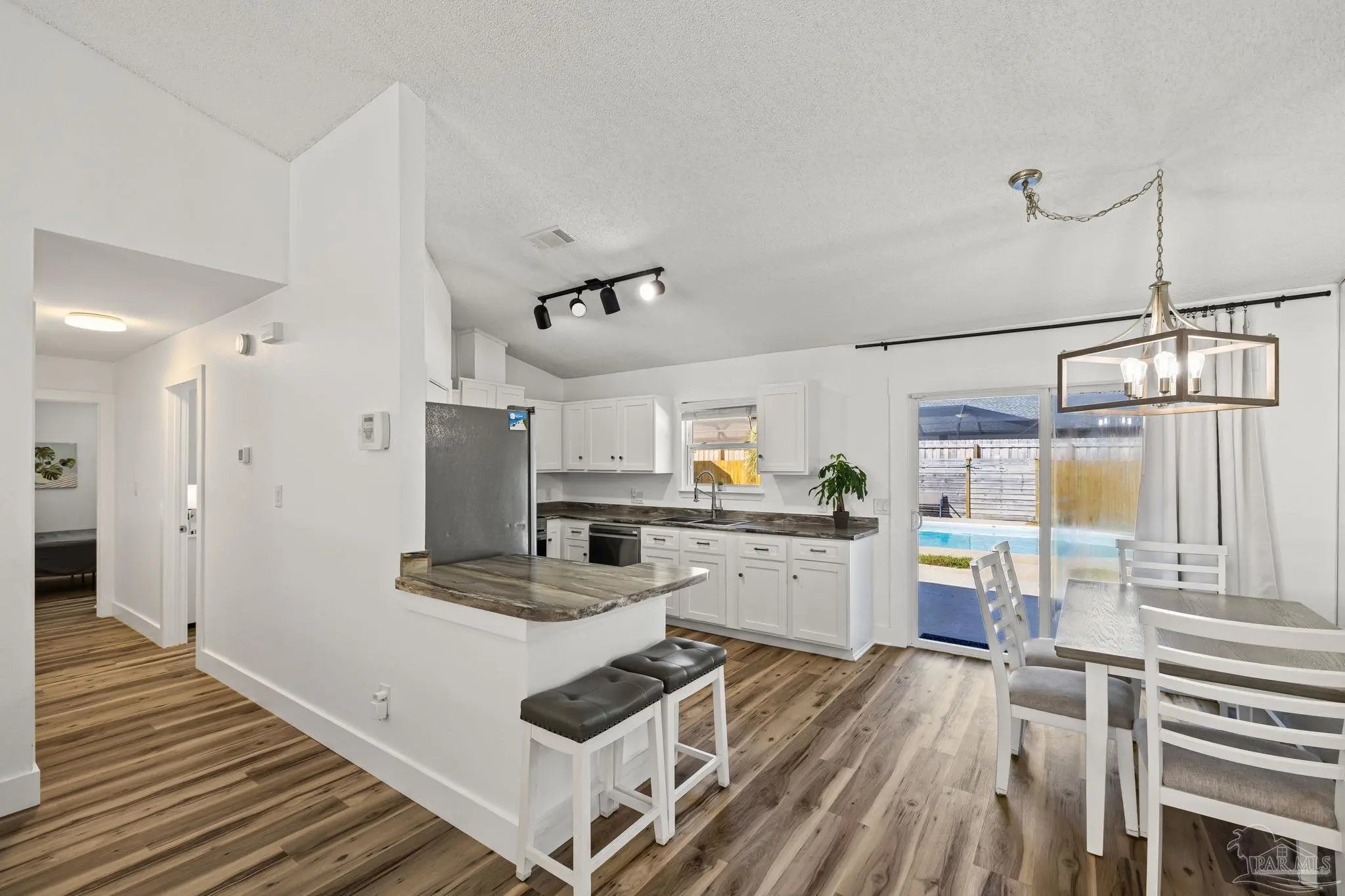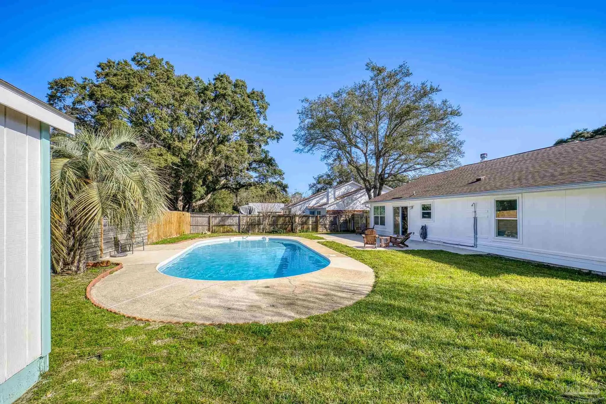 Single-story living, a private pool, and a fully refreshed interior come together in this move-in ready home located in the desirable Sandpiper Village community of Gulf Breeze. Offering 3 bedrooms, 2 full bathrooms, and 1,365 square feet of living space, this well-maintained property sits on a 0.20-acre lot and blends comfort, style, and coastal convenience. Inside, you'll find soft neutral colors, high ceilings, and a bright open floor plan that seamlessly connects the living, dining, and kitchen areas—perfect for everyday living and entertaining. The kitchen features all-white cabinetry, dark complementary countertops, and a convenient breakfast bar for casual meals or gathering with friends and family. Recent interior updates include luxury vinyl plank flooring, fresh paint, new baseboards, updated cabinet faces and hardware, and beautifully remodeled bathrooms with modern tile finishes, creating a clean and cohesive feel throughout. Major system updates provide peace of mind, including a full roof replacement (2020), HVAC system (2021), new windows (2025), and a new pool liner installed in late 2024. Step outside to your private backyard retreat with a fully fenced yard, in-ground pool, and open patio area—ideal for relaxing, grilling, and enjoying Florida afternoons or weekend gatherings. Sandpiper Village residents enjoy access to a neighborhood park and pier, offering scenic water views, fishing, and sunset strolls. Conveniently located near top-rated Gulf Breeze schools, shopping, dining, and just minutes from the white-sand beaches of Pensacola Beach and Navarre Beach, this home offers the best of Gulf Coast living. Whether you're looking for a primary residence, coastal getaway, or investment opportunity, this Gulf Breeze home checks all the boxes.