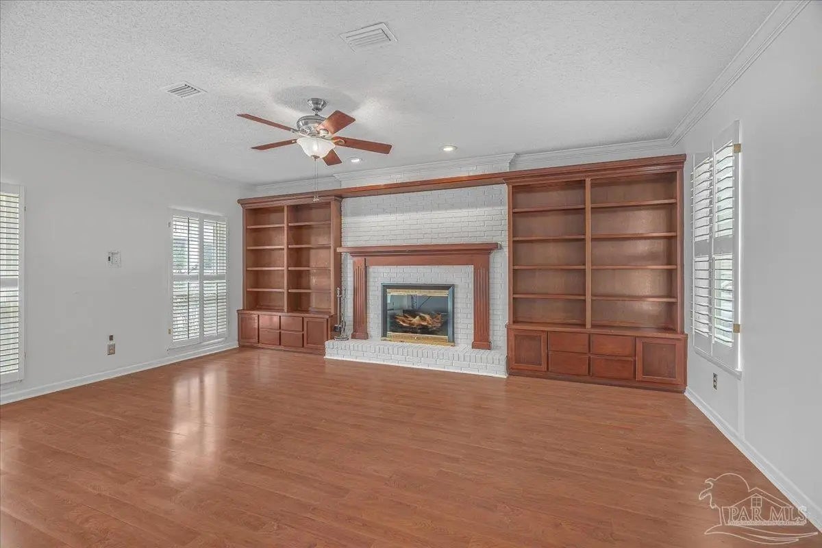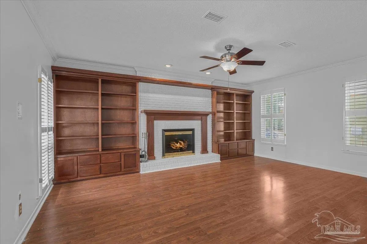 - Bookcases, Ceiling Fan(s), Chair Rail, Crown Molding, Recessed Lighting