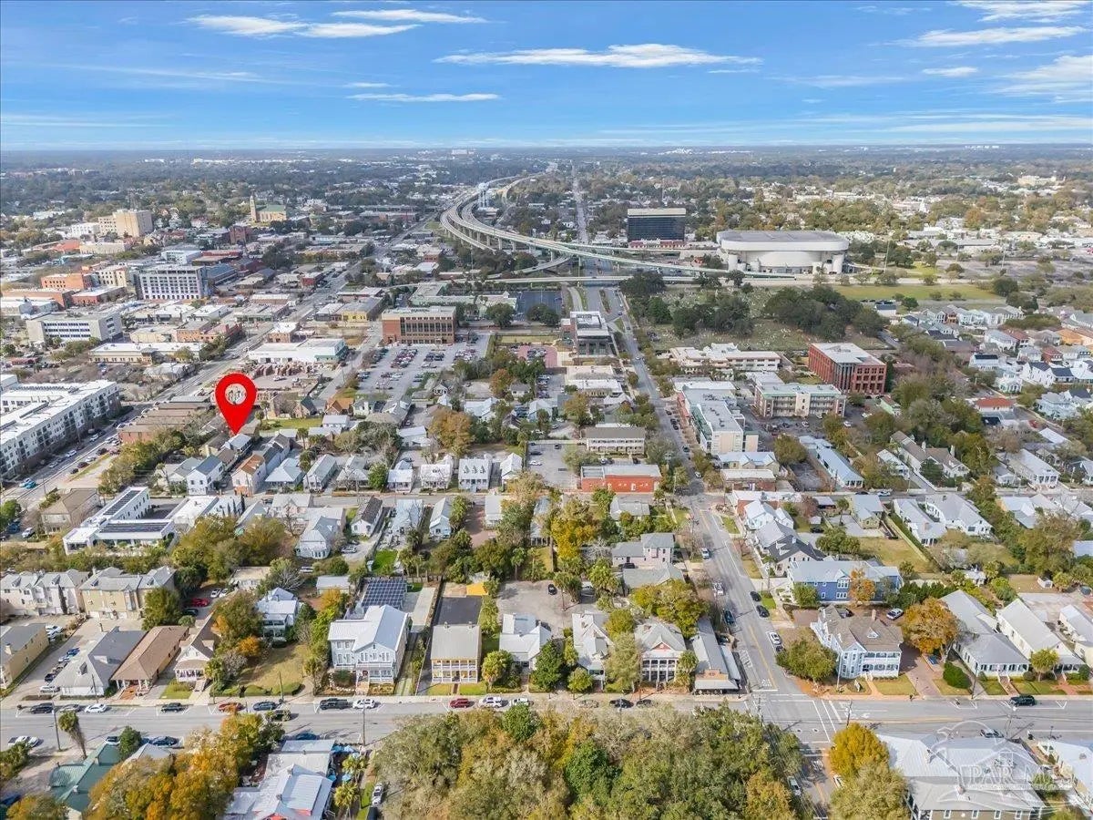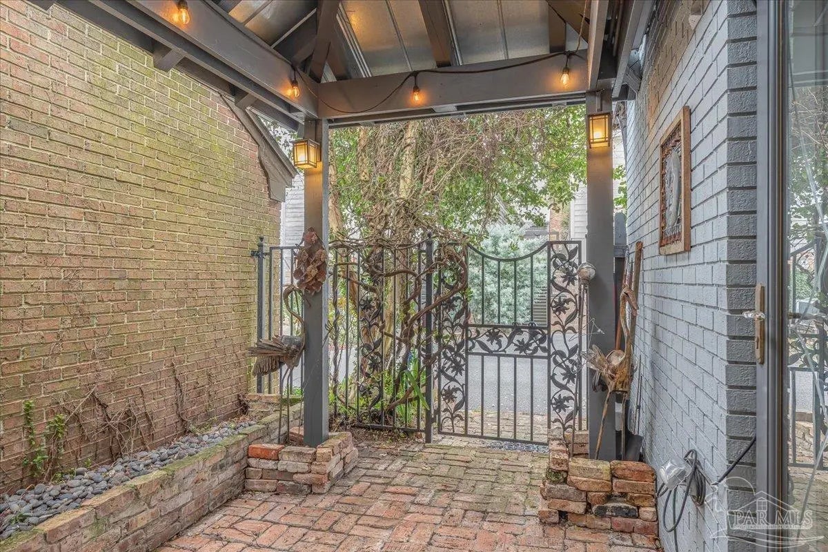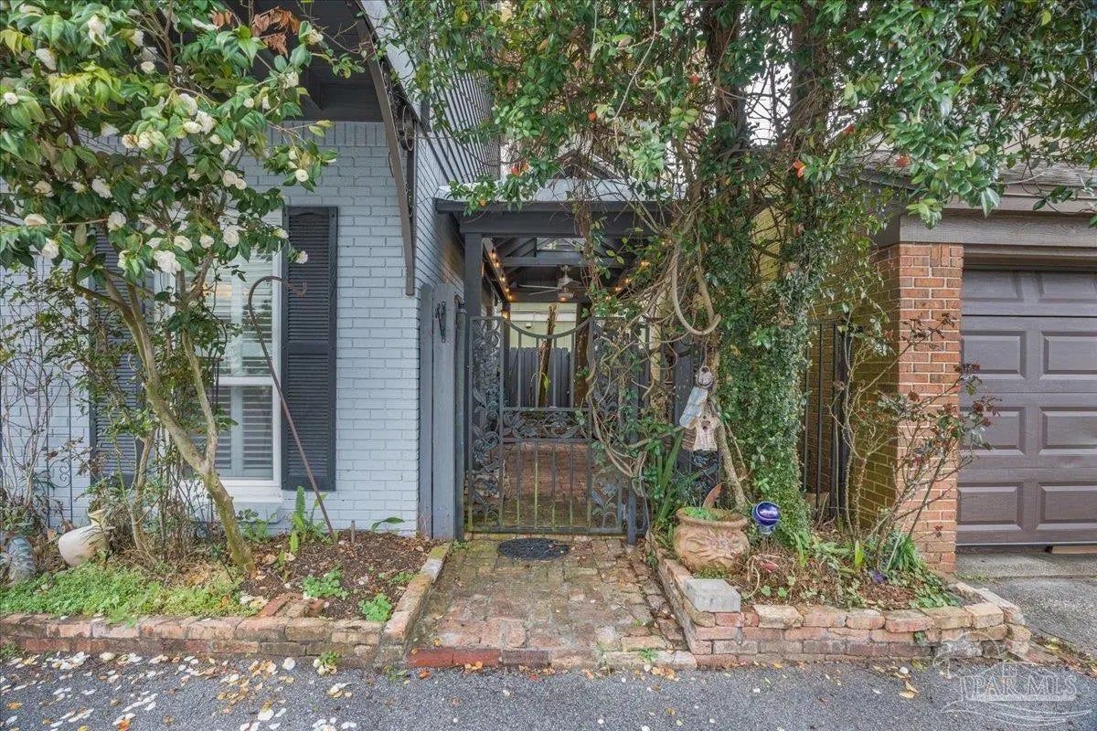If you thought being right in the heart of downtown didn’t allow you to be tucked into a quiet & private community, you’d be mistaken! This charming 2-bedroom, 2.5-bath offers the perfect blend of character, comfort, and unbeatable location. The home feels like a hidden retreat while still being right next to the action—an ideal pied-à-terre or full-time residence. Inside, you’ll find an inviting space filled with natural light thanks to three skylights & extra added windows. There is laminate flooring throughout (no carpet!), crown molding, chair rail detailing in the dining room, and custom lighting. The living room features a cozy wood-burning fireplace and custom built-in bookcases. The kitchen features granite countertops, a pantry, and laundry just off the kitchen, with the washer and dryer conveying. Upstairs there are two generously sized ensuites with oversized closets, walk-in showers, and vessel sinks. Plantation shutters, recessed lighting, and thoughtful touches like kitty doors add personality and practicality. A wrought iron balcony and interior staircase add additional architectural charm. Step outside to a covered patio and bricked courtyard with an arbor and pergola that create a distinctly New Orleans–inspired outdoor living space, perfect for relaxing & entertaining. The home is well cared for with a 2020 metal roof and reinforced balcony, 2018 HVAC system (serviced in 2025), & a 2023 Reme Halo air purification system. It is all electric and impressively energy efficient, with power bills averaging around $160/mo. Constructed with hardcoat stucco, wood, and brick, the property has never experienced water intrusion—even through major storms like Ivan and Sally. Two outdoor sheds convey. Enjoy Palafox Reimagine Project - The New Palafox - which is due to be complete in May 2026. This home has been lovingly cared for by current owners of almost 25 years, and you’d be hard-pressed to find a better spot downtown.