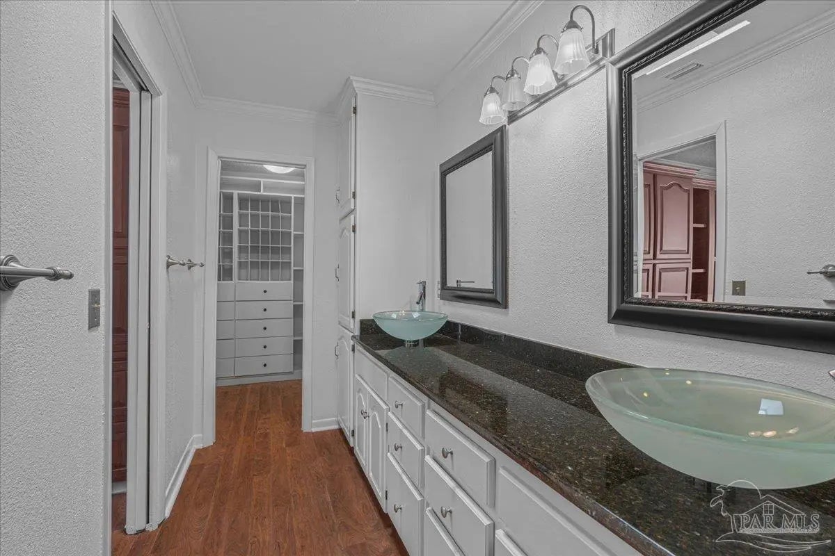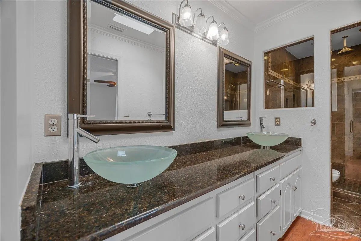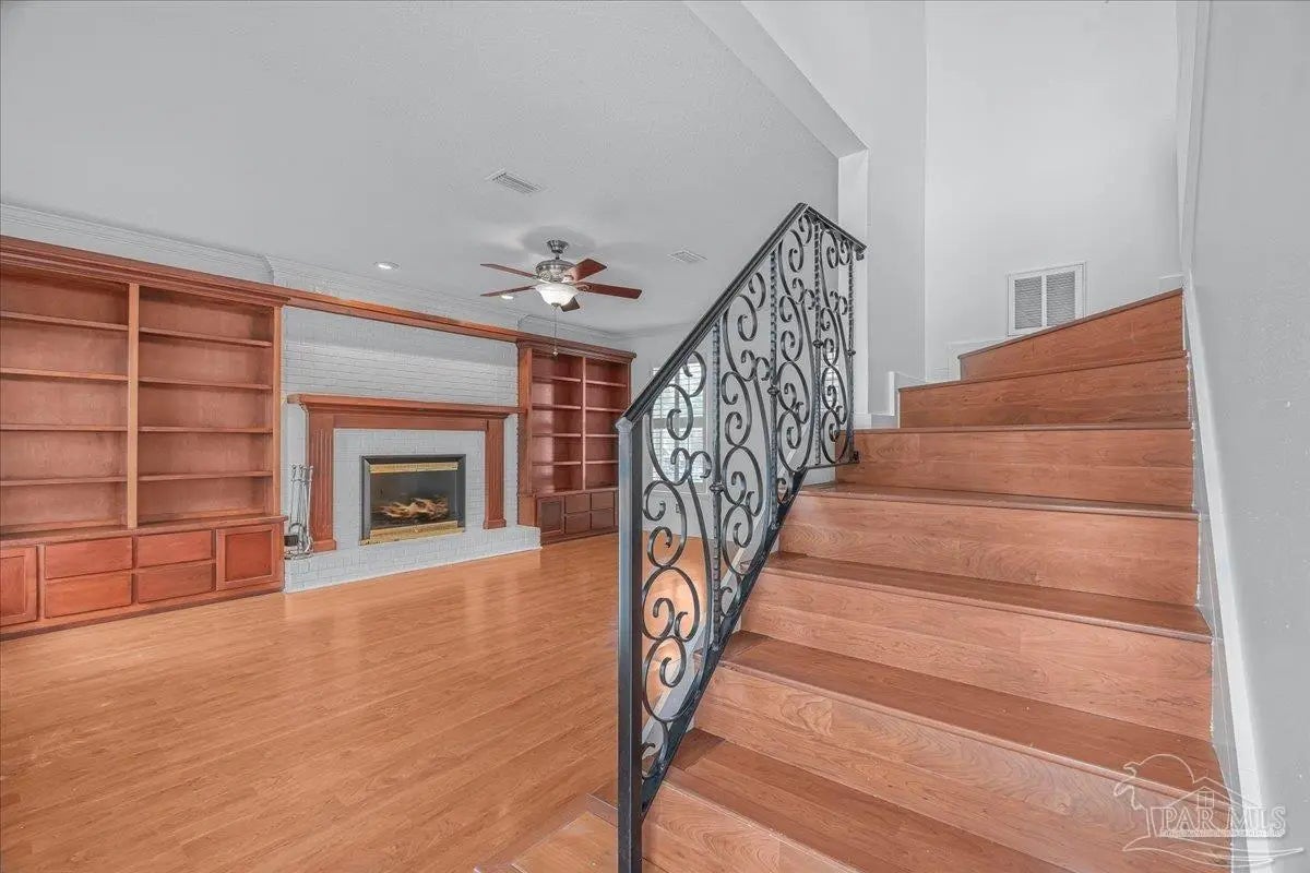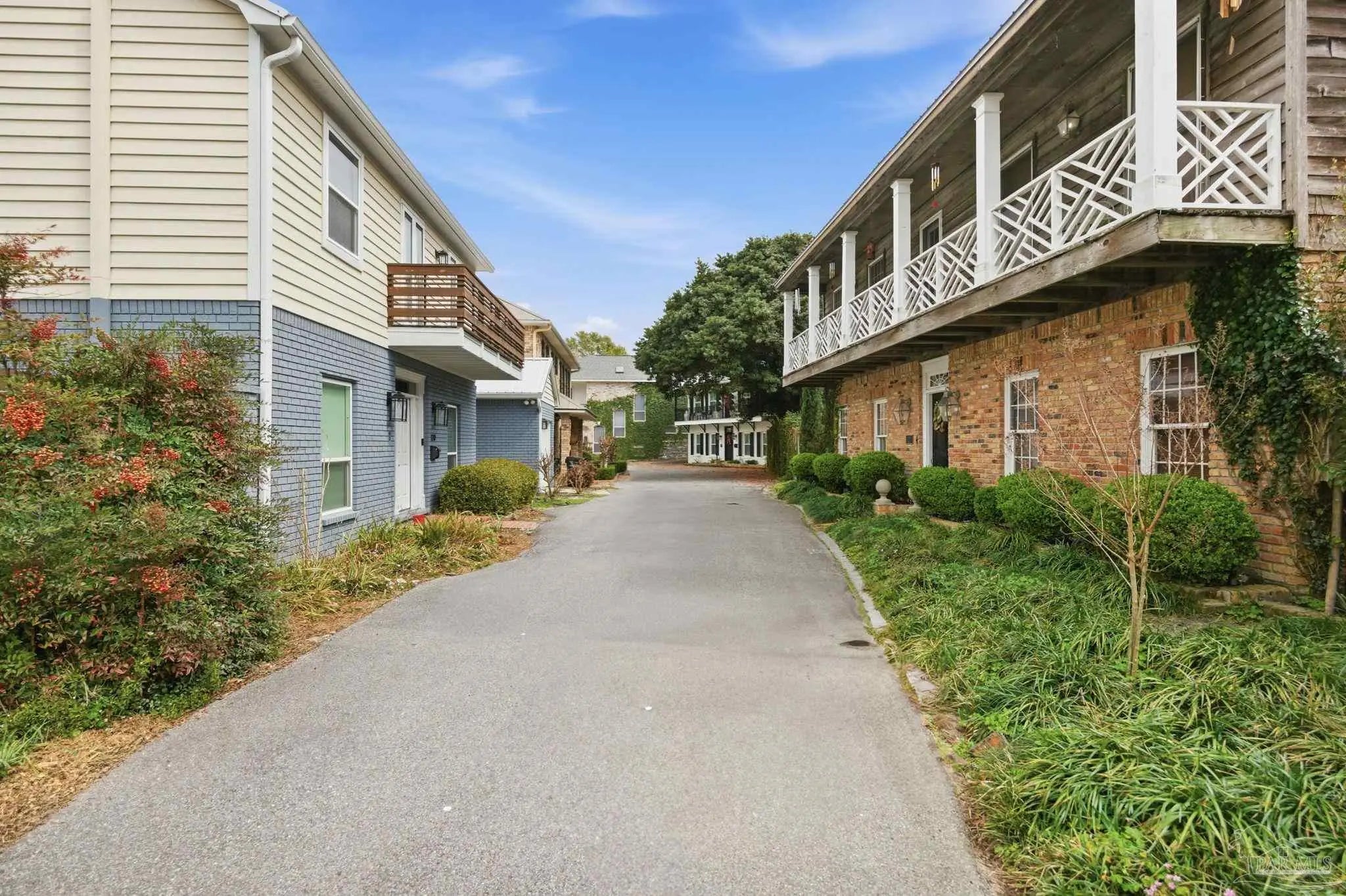 If you thought being right in the heart of downtown didn’t allow you to be tucked into a quiet & private community, you’d be mistaken! This charming 2-bedroom, 2.5-bath offers the perfect blend of character, comfort, and unbeatable location. The home feels like a hidden retreat while still being right next to the action—an ideal pied-à-terre or full-time residence. Inside, you’ll find an inviting space filled with natural light thanks to three skylights & extra added windows. There is laminate flooring throughout (no carpet!), crown molding, chair rail detailing in the dining room, and custom lighting. The living room features a cozy wood-burning fireplace and custom built-in bookcases. The kitchen features granite countertops, a pantry, and laundry just off the kitchen, with the washer and dryer conveying. Upstairs there are two generously sized ensuites with oversized closets, walk-in showers, and vessel sinks. Plantation shutters, recessed lighting, and thoughtful touches like kitty doors add personality and practicality. A wrought iron balcony and interior staircase add additional architectural charm. Step outside to a covered patio and bricked courtyard with an arbor and pergola that create a distinctly New Orleans–inspired outdoor living space, perfect for relaxing & entertaining. The home is well cared for with a 2020 metal roof and reinforced balcony, 2018 HVAC system (serviced in 2025), & a 2023 Reme Halo air purification system. It is all electric and impressively energy efficient, with power bills averaging around $160/mo. Constructed with hardcoat stucco, wood, and brick, the property has never experienced water intrusion—even through major storms like Ivan and Sally. Two outdoor sheds convey. Enjoy Palafox Reimagine Project - The New Palafox - which is due to be complete in May 2026. This home has been lovingly cared for by current owners of almost 25 years, and you’d be hard-pressed to find a better spot downtown.