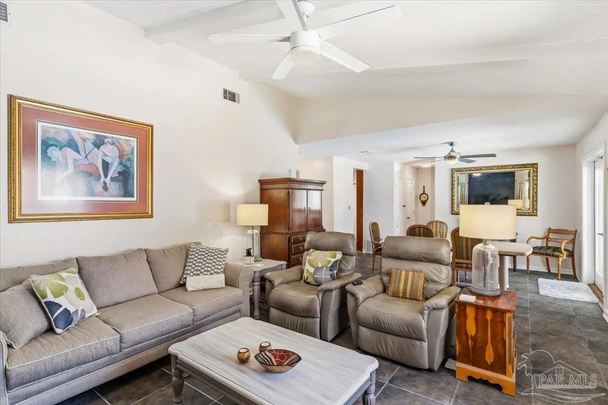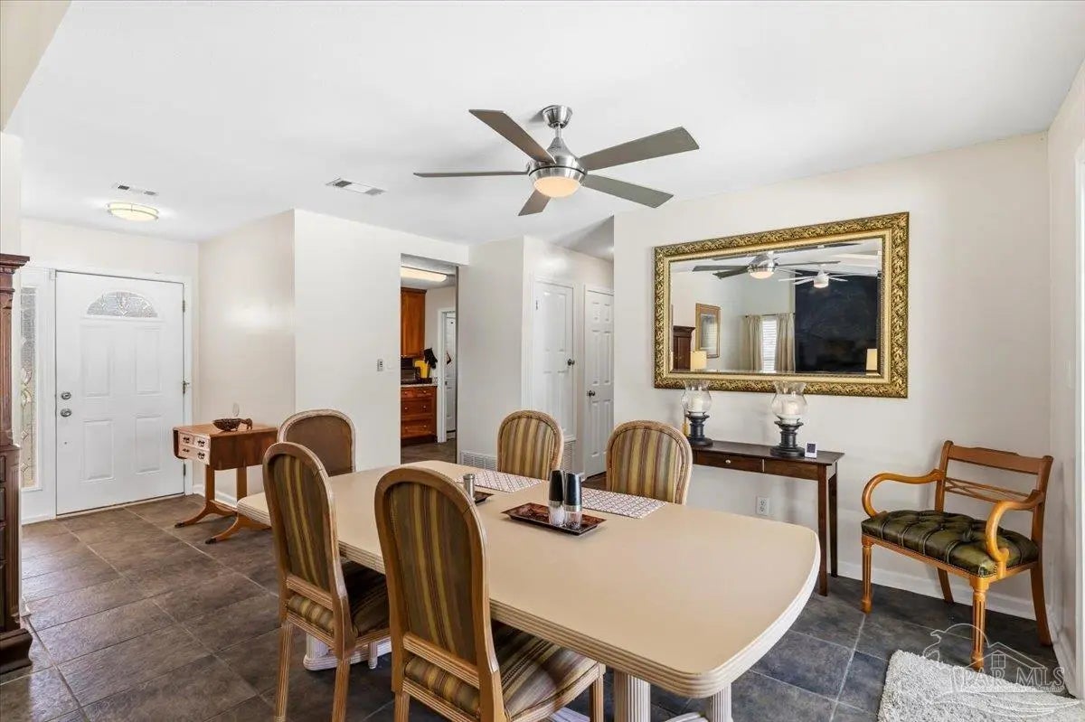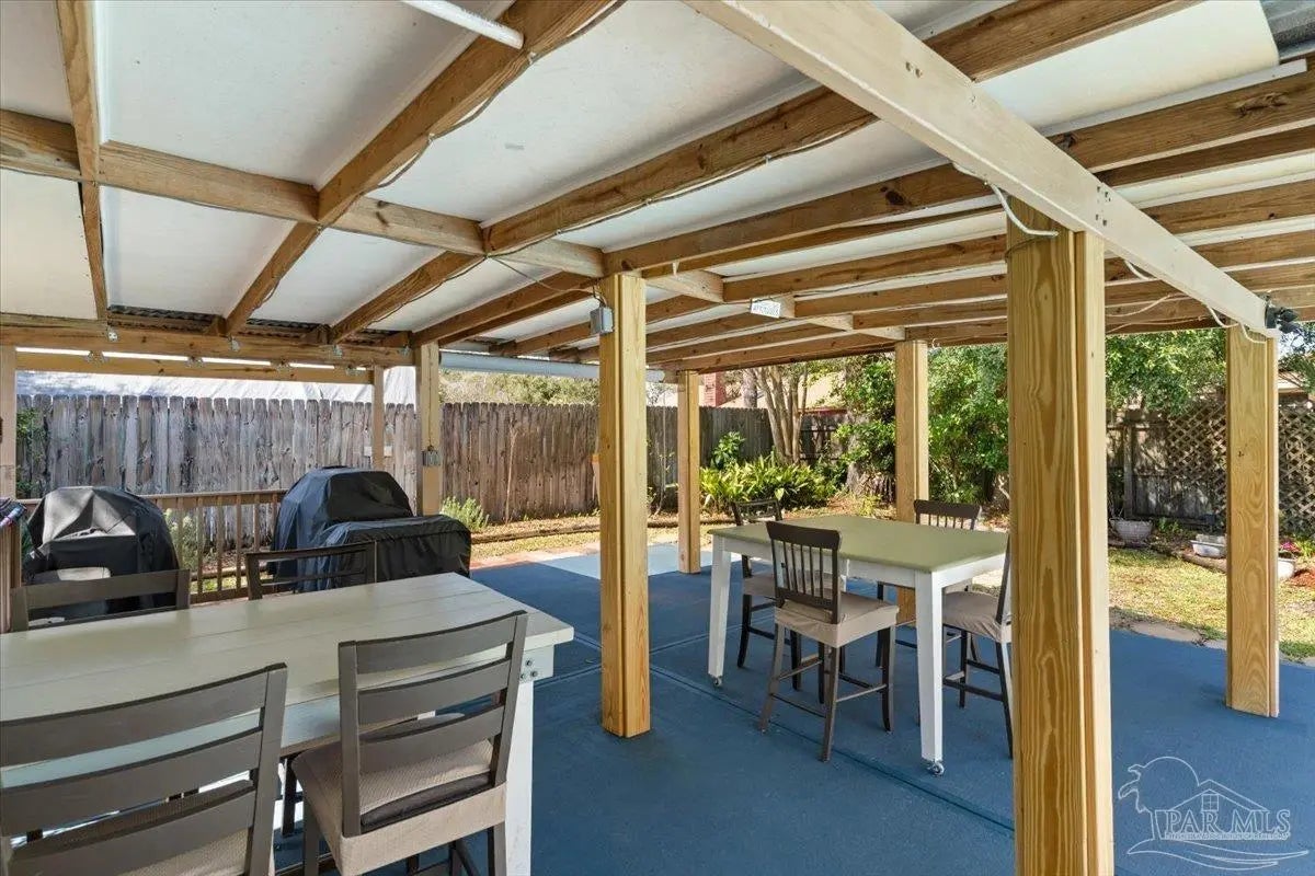 Beautiful corner-lot pool home in the highly sought-after Villa Venyce subdivision! This move-in ready Gulf Breeze home features cathedral ceilings, abundant natural light, and an open, spacious layout designed for comfortable Florida living. Step outside to your private backyard oasis with a sparkling octagon-shaped pool, surrounded by mature tropical landscaping and shady oak trees. Full garden irrigation and well. Garden lights. Garden shed with AC for working area and shed for tractor. Enjoy year-round outdoor living and entertaining from the ~500 sq ft covered deck, perfect for relaxing poolside with family and friends. This well-maintained home includes numerous upgrades and improvements, including: • New privacy fence with three gates (2016) • Extra-wide driveway with extension for boat or RV parking (2015) • Hurricane mitigation upgrades completed through the Rebuild NW Florida Program (2014) including reinforced roof-to-wall connections, roof deck improvements, steel storm shutters for windows and doors, and reinforced garage • Energy-efficient windows (.29 U-Factor) installed (2013) • New A/C system (2014) • Updated master bath tub (2017) • Attic circulation fan for improved energy efficiency • Roof replaced in 2020 • Pool filter sand replaced in 2018 Additional features include a large two-car garage, extra parking space, outdoor gardening shed, and kitchen appliances included. The home has nice countertops in the kitchen and bathrooms and great cabinets. The showers are looking great! Located in the top-rated Santa Rosa County District Schools district, and just minutes from Pensacola Beach, Gulf Breeze Hospital, and the nationally recognized Andrews Institute for Orthopedics & Sports Medicine. Enjoy the best of Gulf Breeze living — poolside relaxation, nearby beaches, excellent schools, and space for your boat or RV.