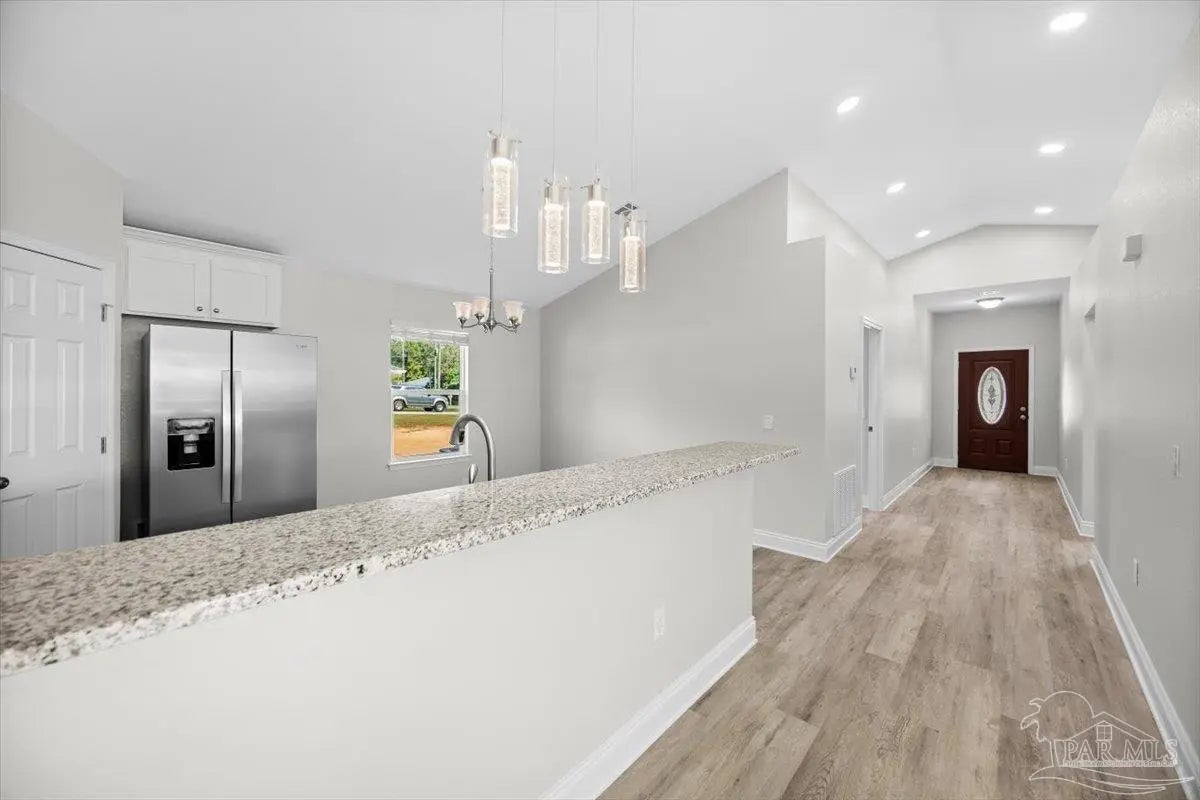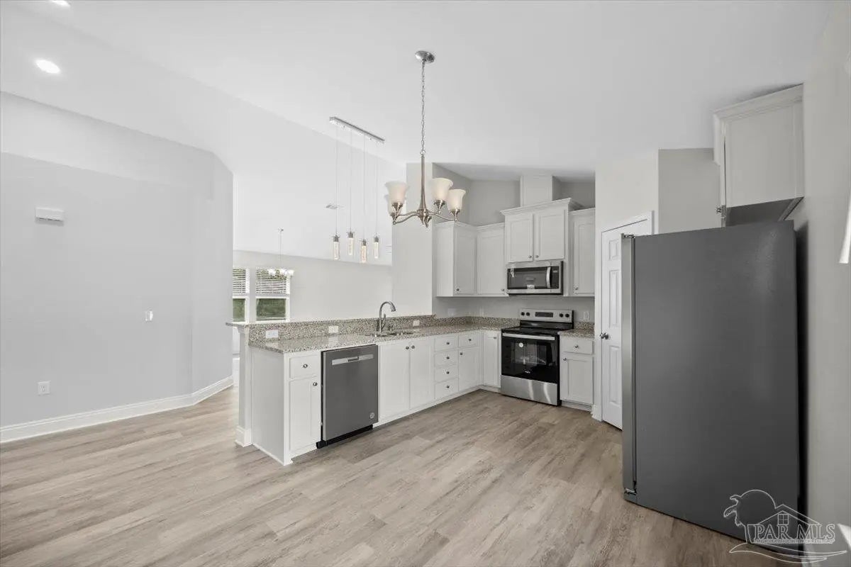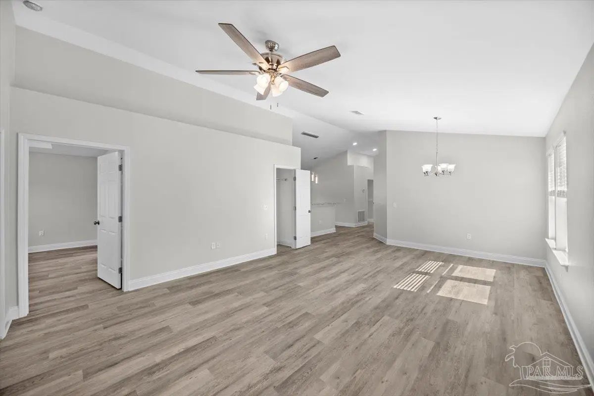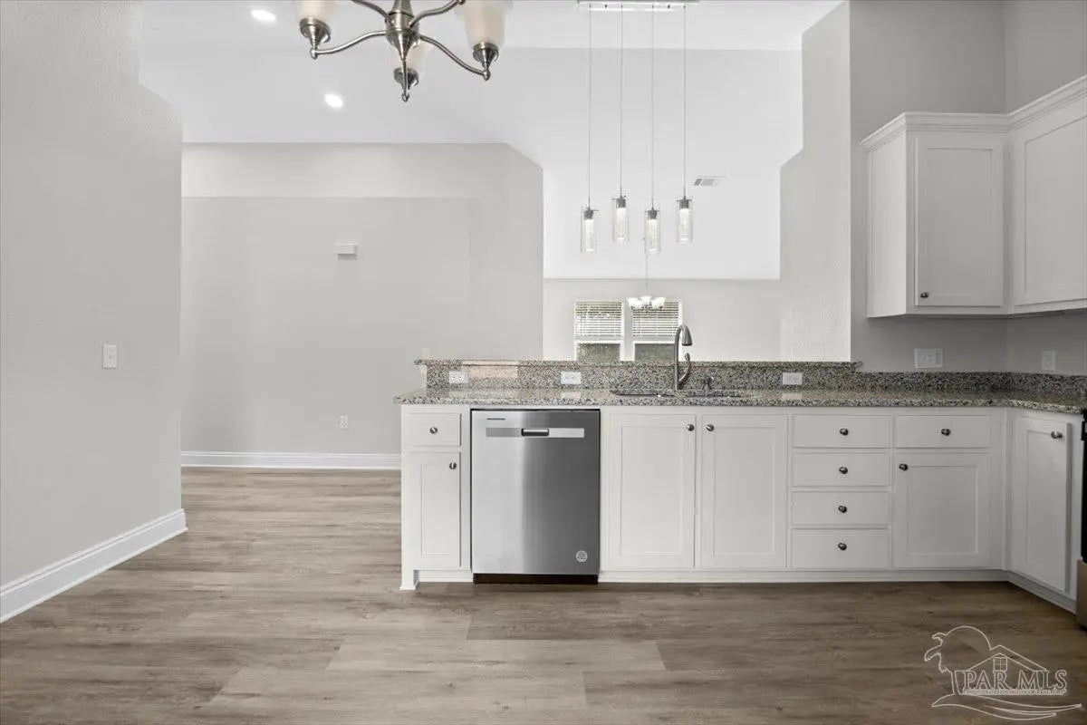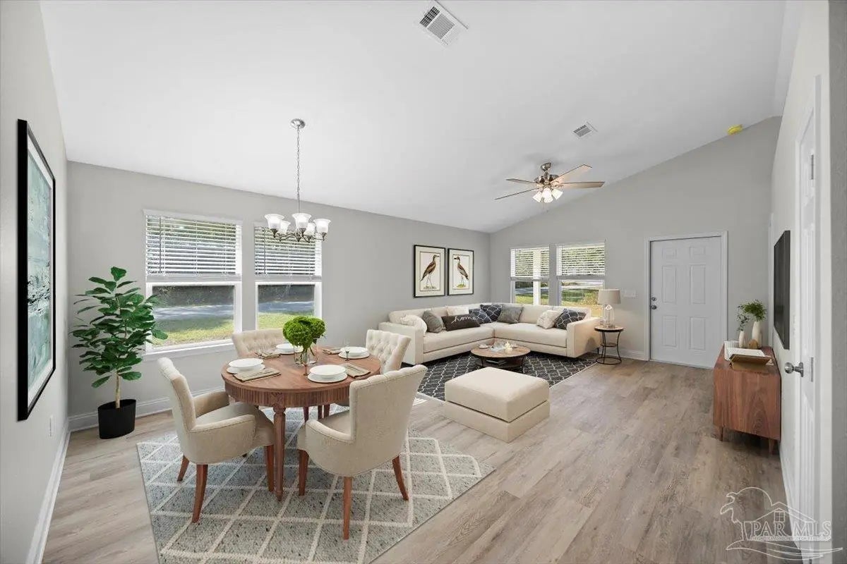 Brand-new home currently under construction in Avalon Beach! Estimated completion May 2026. This thoughtfully designed residence features a bright, open floor plan with soaring cathedral ceilings that create a spacious and welcoming feel. The kitchen is finished with granite countertops, a large breakfast bar, and a breakfast nook—perfect for everyday meals or entertaining family and friends. The split-bedroom layout provides added privacy, with the primary suite located at the rear of the home overlooking the backyard. The primary bathroom offers a walk-in shower and granite countertops, creating a comfortable and stylish retreat. Luxury vinyl flooring runs throughout the home for a modern, low-maintenance finish. Both bathrooms include granite countertops—an upgraded feature not often found in homes at this price point. Built by a trusted local builder known for quality craftsmanship, the home also includes spray-foam insulation and a home warranty for added peace of mind. The spacious great room and separate dining area provide flexible living space for relaxing or hosting guests. Just outside, the covered lanai offers the perfect place to unwind or enjoy evenings in your backyard. Buyers may have the opportunity to select certain finishes, such as flooring, countertop colors, or interior paint, depending on the stage of construction and builder timelines. Located in Avalon Beach, residents enjoy convenient access to public boat ramps and nearby waterways. The home is also just minutes from I-10, downtown Pensacola, and Pensacola Beach (approximately 30 minutes away), making commuting and recreation easy. Photos are from a previously completed home of the same or similar floor plan. Finishes and features may vary.