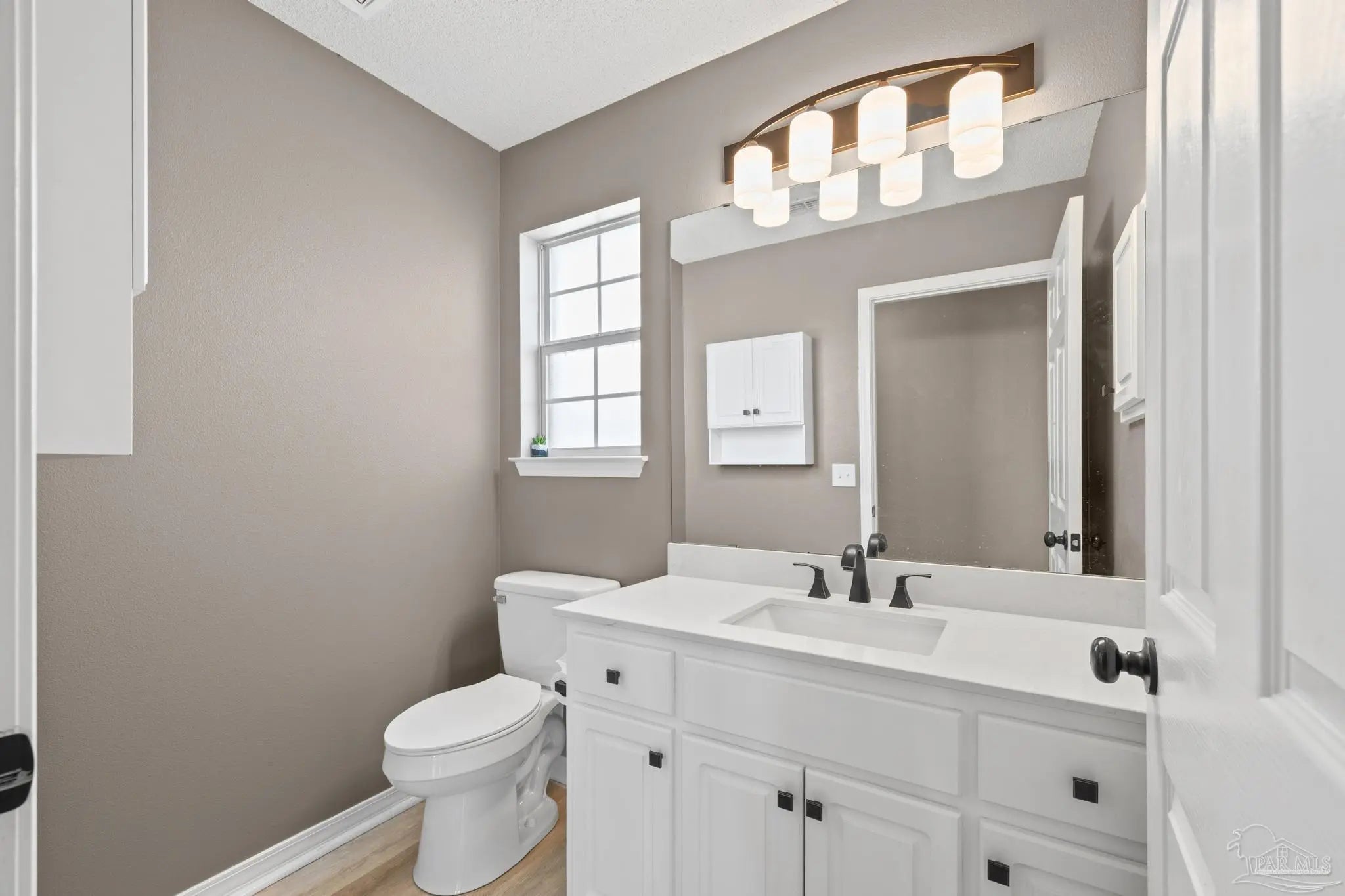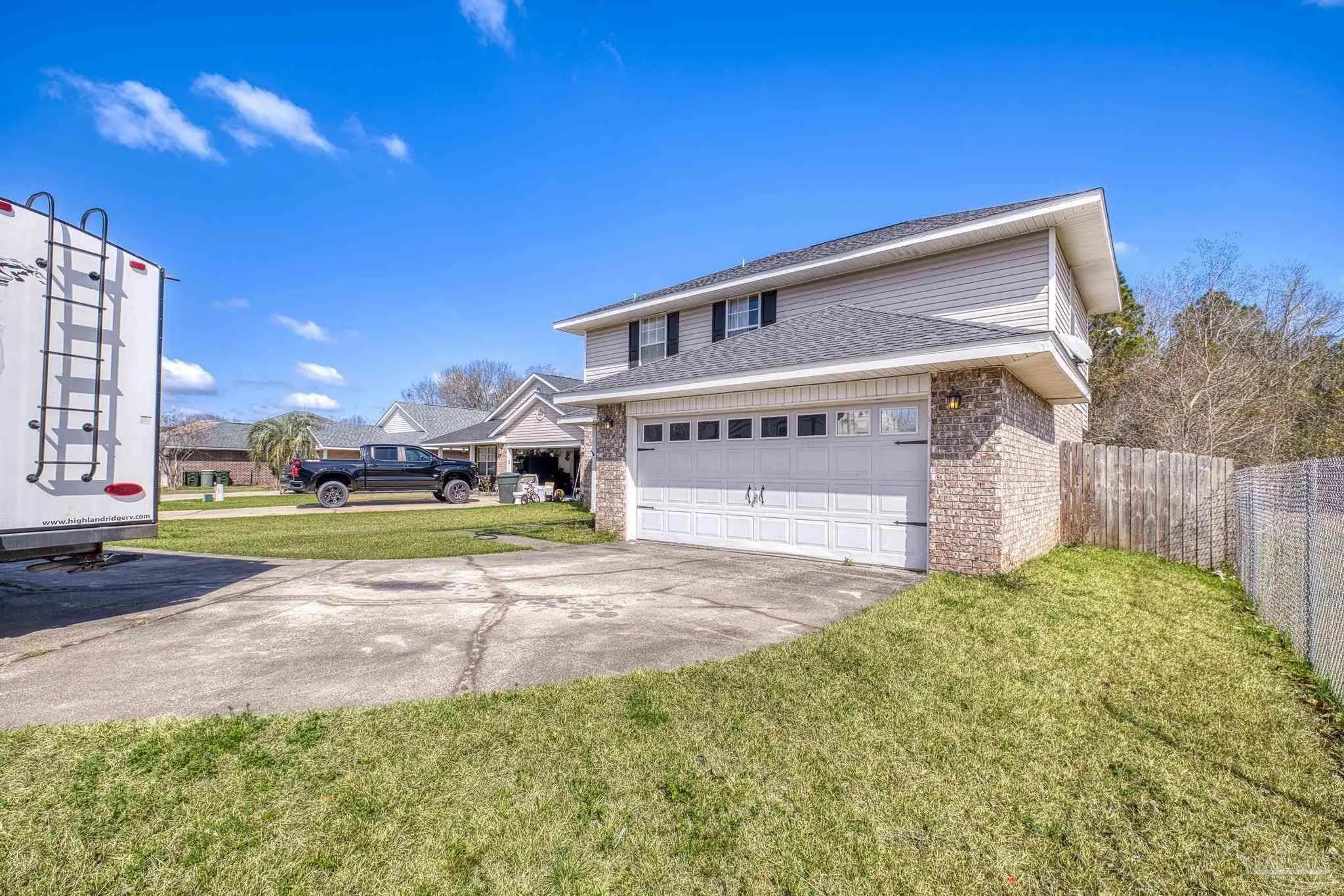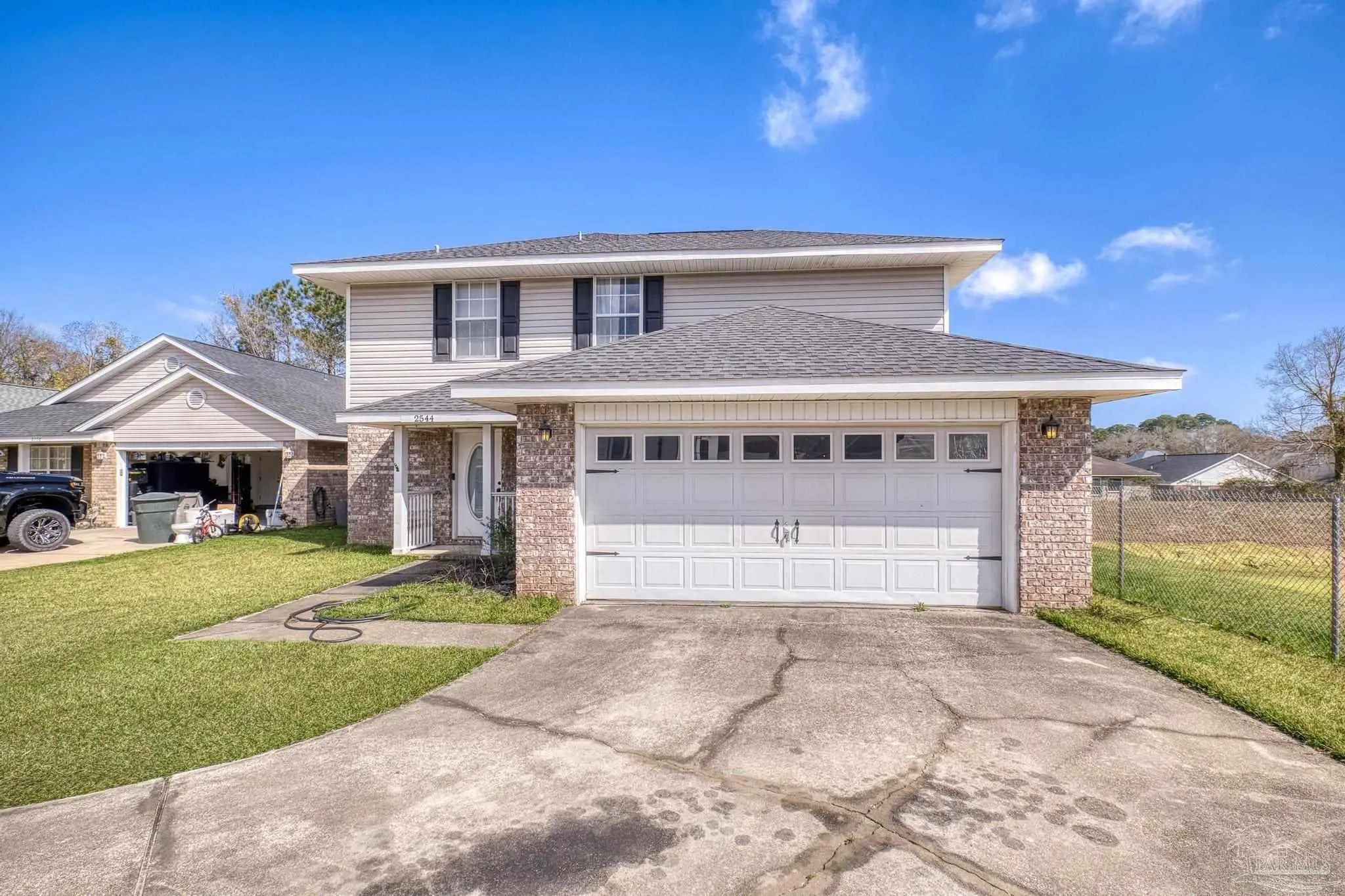 SELLER SAYS “BUY ME”! Low-maintenance AND move-in-ready! Located just 3 miles from I-10 and only 6 miles from the Navy Federal Campus. Arriving at the property, you will immediately notice a 2-car garage, and expansive driveway. Upon entrance notice the new oak stairway to the 2nd floor, a coat closet - for all of the coats you will use once a year - fresh paint, downstairs powder room with new vanity and the abundance of natural light accentuating the open-concept living space. Neutral paint throughout enhances the newly installed "greige" vinyl plank flooring. The large living room showcases a built-in corner electric fireplace with room for your tv atop. Flowing through to the dining area and new kitchen, which has new stainless steel appliances, new whisper close cabinetry, new granite countertops, new tile backsplash and a large pantry. The breakfast bar offers a casual dining space or additional seating for entertaining, complementing the adjacent dedicated dining space. On the second floor, you'll find new flooring, an office or flex room, main suite and two guest bedrooms with large closets. The guest bathroom boasts a low-maintenance fiberglass tub/shower combination, new commode, new vanity and new flooring. The oversized main suite is brightened with a double window and a view of the spacious backyard. Then just before the bath, two separate closets offer ample wardrobe storage. The main bath sports a garden tub/shower combination, new flooring, new commode, and two separate new vanities. The privacy-fenced backyard and covered patio are the perfect places to enjoy the cooler months. There are new light fixtures new door handles, new hardware, new oak stairway and handrail, new flooring throughout and so much more! Roof 2021, water heater 2023