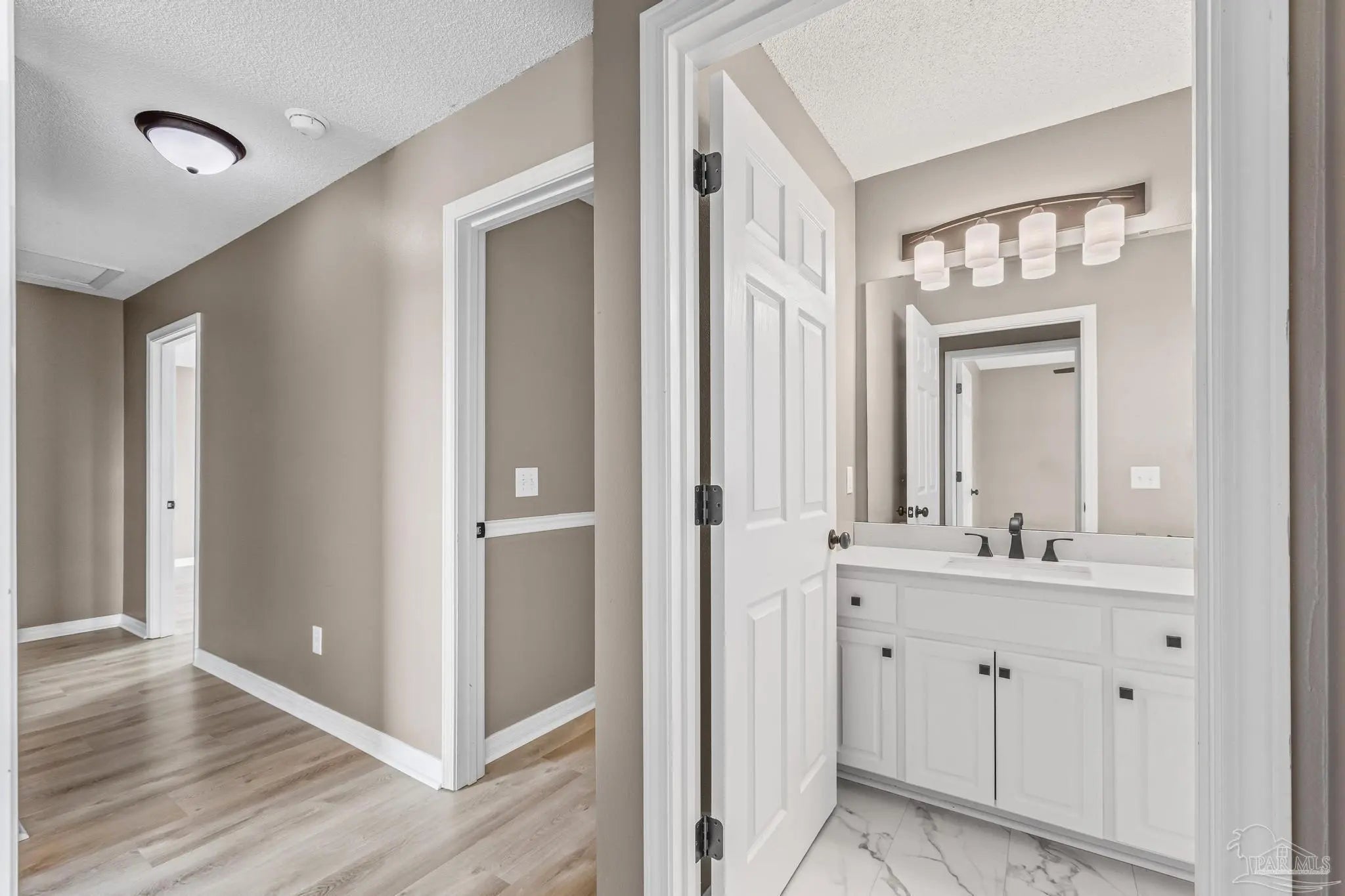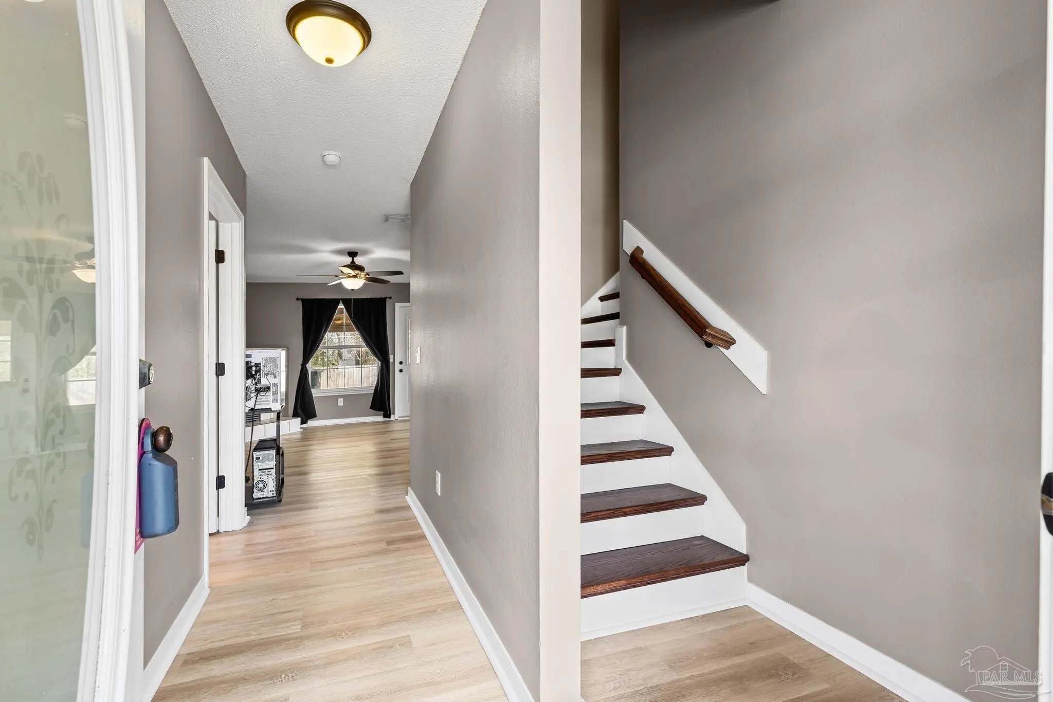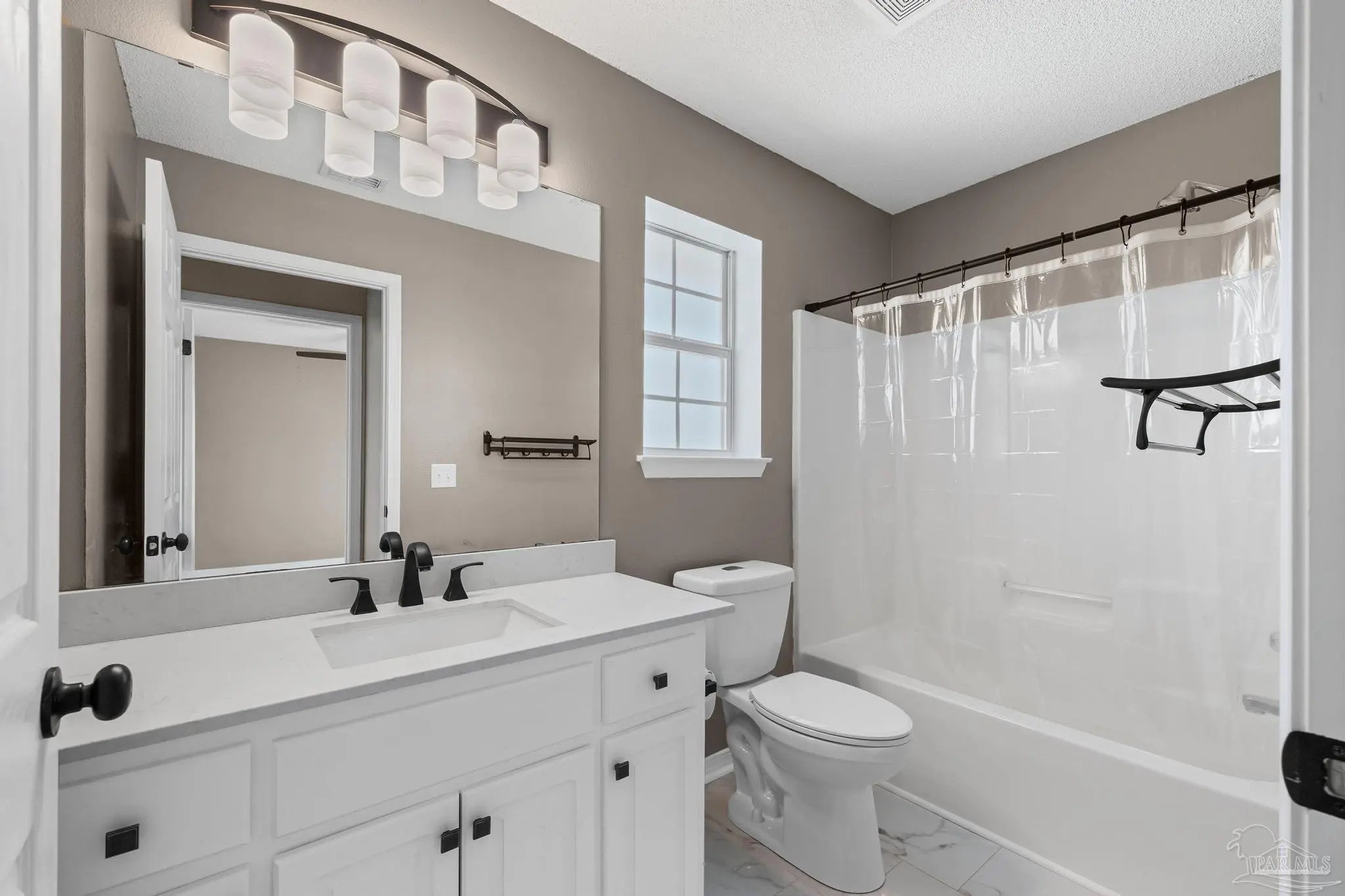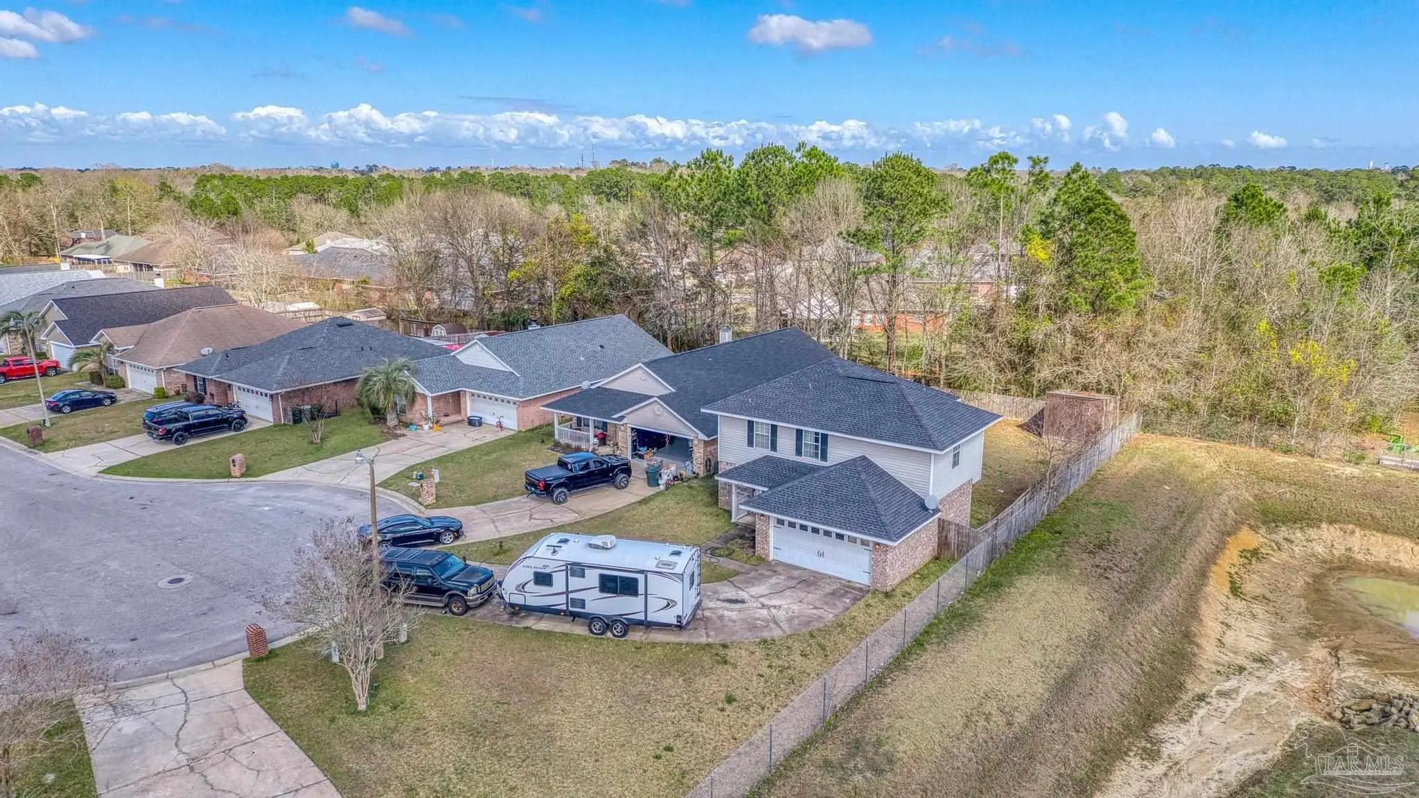 SELLER SAYS “BUY ME”! Low-maintenance AND move-in-ready! Located just 3 miles from I-10 and only 6 miles from the Navy Federal Campus. Arriving at the property, you will immediately notice a 2-car garage, and expansive driveway. Upon entrance notice the new oak stairway to the 2nd floor, a coat closet - for all of the coats you will use once a year - fresh paint, downstairs powder room with new vanity and the abundance of natural light accentuating the open-concept living space. Neutral paint throughout enhances the newly installed "greige" vinyl plank flooring. The large living room showcases a built-in corner electric fireplace with room for your tv atop. Flowing through to the dining area and new kitchen, which has new stainless steel appliances, new whisper close cabinetry, new granite countertops, new tile backsplash and a large pantry. The breakfast bar offers a casual dining space or additional seating for entertaining, complementing the adjacent dedicated dining space. On the second floor, you'll find new flooring, an office or flex room, main suite and two guest bedrooms with large closets. The guest bathroom boasts a low-maintenance fiberglass tub/shower combination, new commode, new vanity and new flooring. The oversized main suite is brightened with a double window and a view of the spacious backyard. Then just before the bath, two separate closets offer ample wardrobe storage. The main bath sports a garden tub/shower combination, new flooring, new commode, and two separate new vanities. The privacy-fenced backyard and covered patio are the perfect places to enjoy the cooler months. There are new light fixtures new door handles, new hardware, new oak stairway and handrail, new flooring throughout and so much more! Roof 2021, water heater 2023