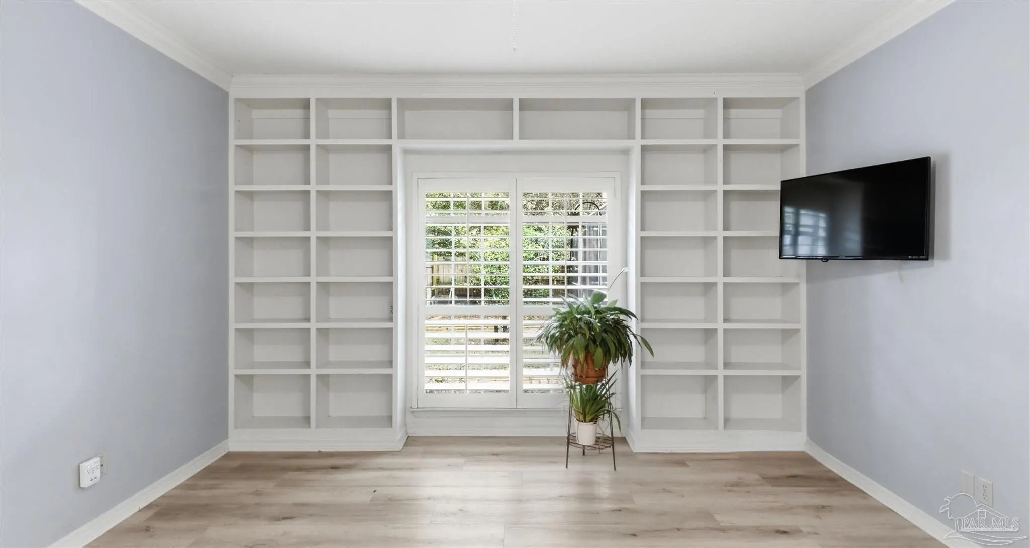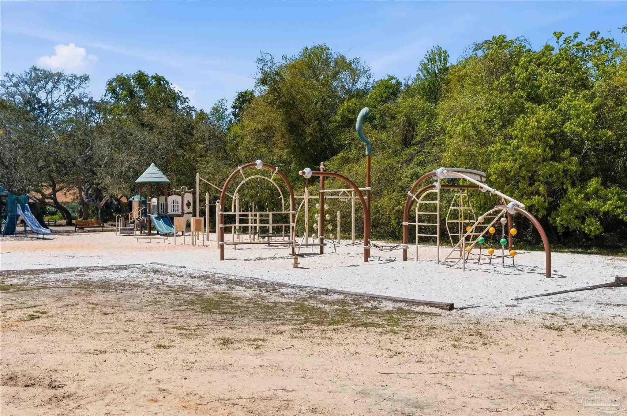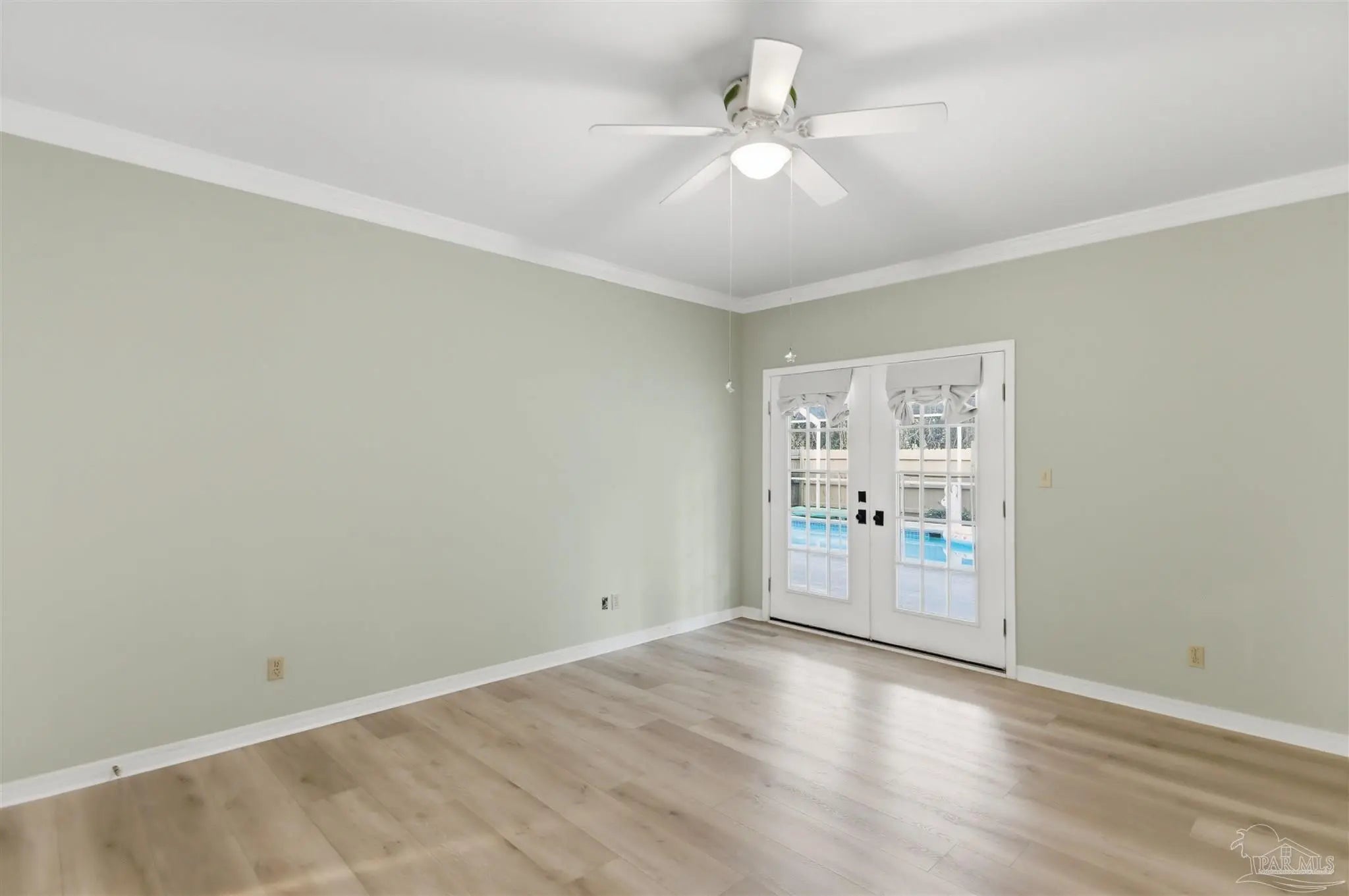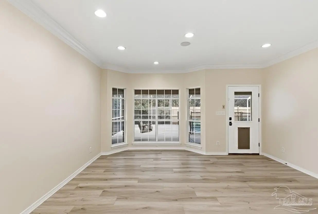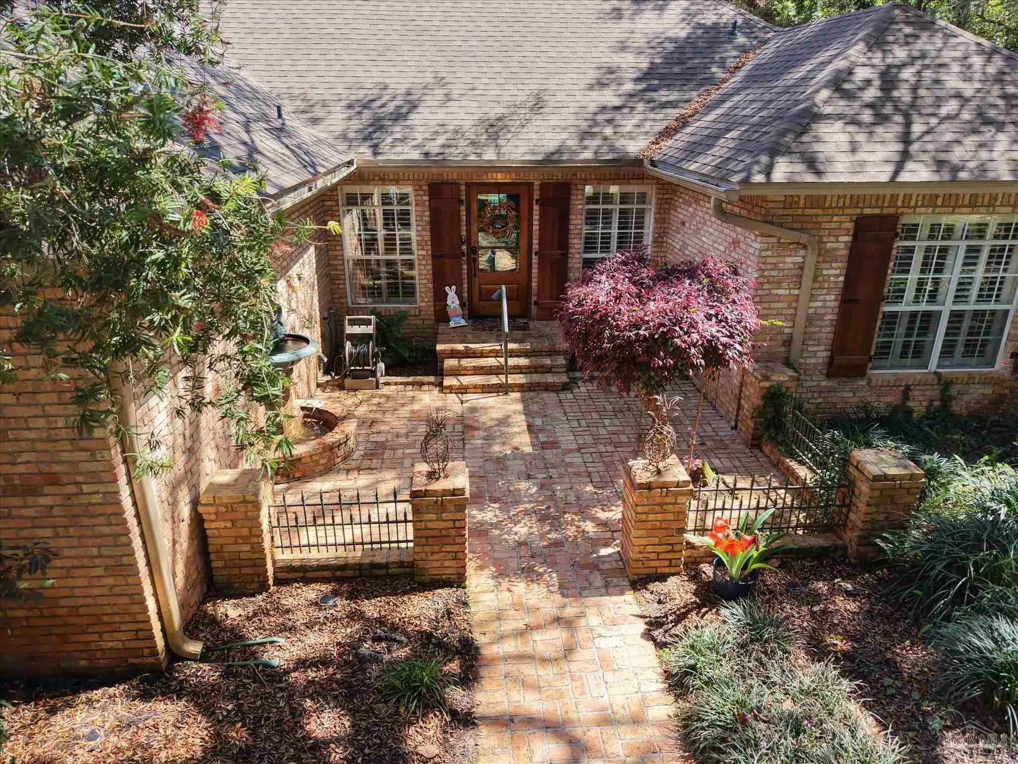Experience the timeless charm of this oversized 3-bedroom, 2-bathroom brick residence nestled under a cooling canopy of Naval Live Oaks. Located in a premier Gulf Breeze neighborhood that prizes its natural beauty, this 2,339 sq. ft. home sits directly across from the Bay and just steps from the National Seashore. The property greets you with a stately circular drive and a brick-paved courtyard entrance inspired by the French Quarter, complete with a soothing fountain. Notice the gorgeous trees and English Ivy that surround the home. The interior is designed for modern living, featuring a master chef’s kitchen with double oven and islands! This area that serves as the heart of the home. The expansive living room provides the perfect area to relax with plenty of room to add a home office. This room as has 4 panel French doors that lead out to the lanai and gunite pool. The Primary Bedroom has custom built in shelving and plantation shutters, and en suite with double vanity and extra cabinetry going into a huge primary closet. The two guest rooms on the other side of the home have plantation shutters also. The one at the front of the home has custom shelving and a Murphy bed which makes the perfect home office space if you don't need the room. The outdoor living space is equally impressive, offering an enclosed pool area with a covered porch and a separate pool house surrounded by lush, mature landscaping. This location is a nature lover's dream, providing immediate access to National Seashore hiking trails and neighborhood parks while remaining conveniently close to A+ rated schools. Best of all, there is no HOA to restrict your lifestyle. This home offers a superior atmosphere and a cooler, shaded environment that makes it a standout choice in the current market. Act quickly, as properties in this specific enclave are highly sought after and rarely remain available for long.
