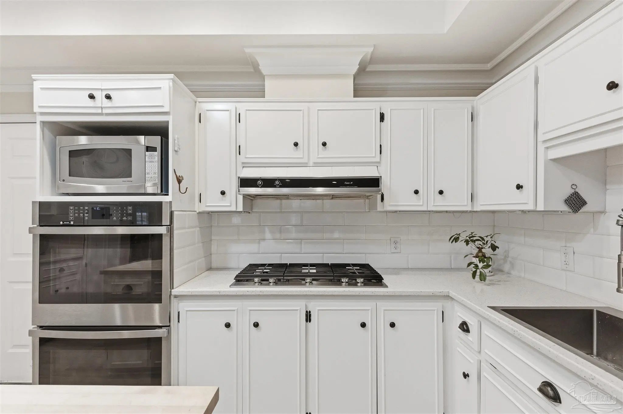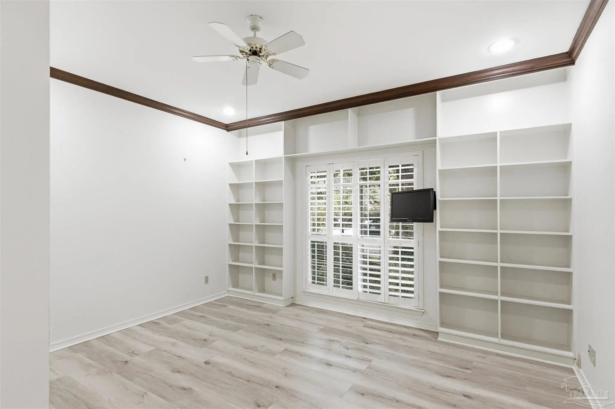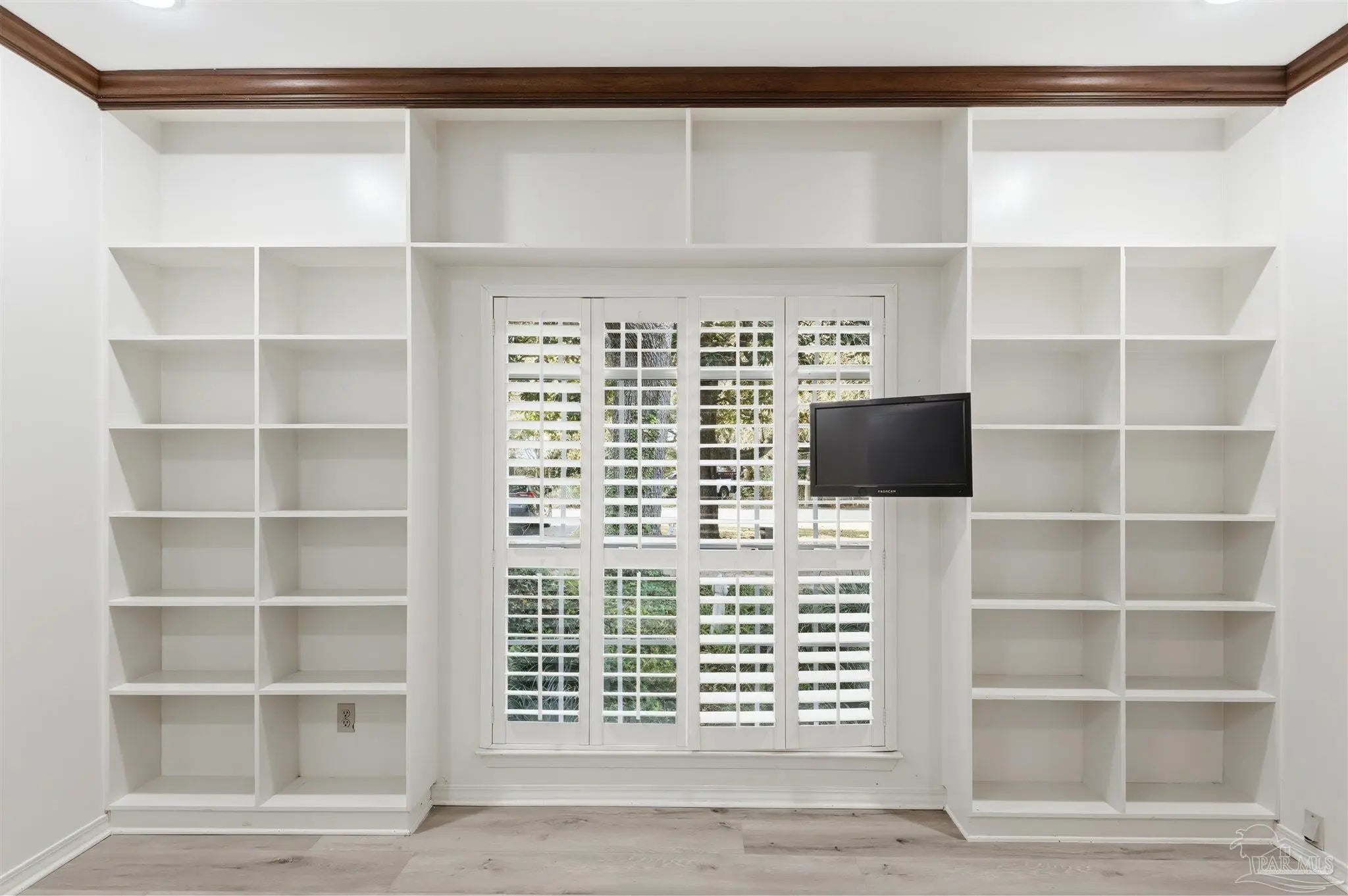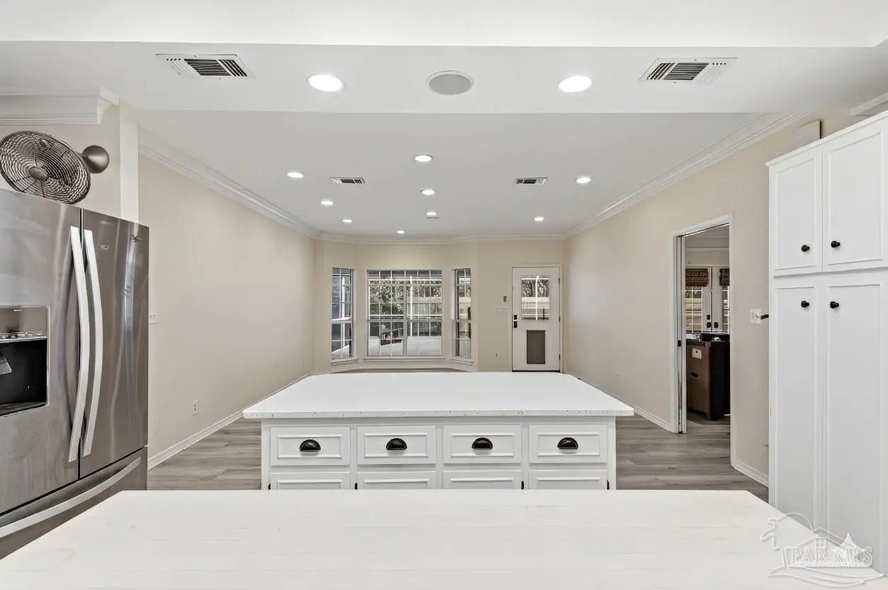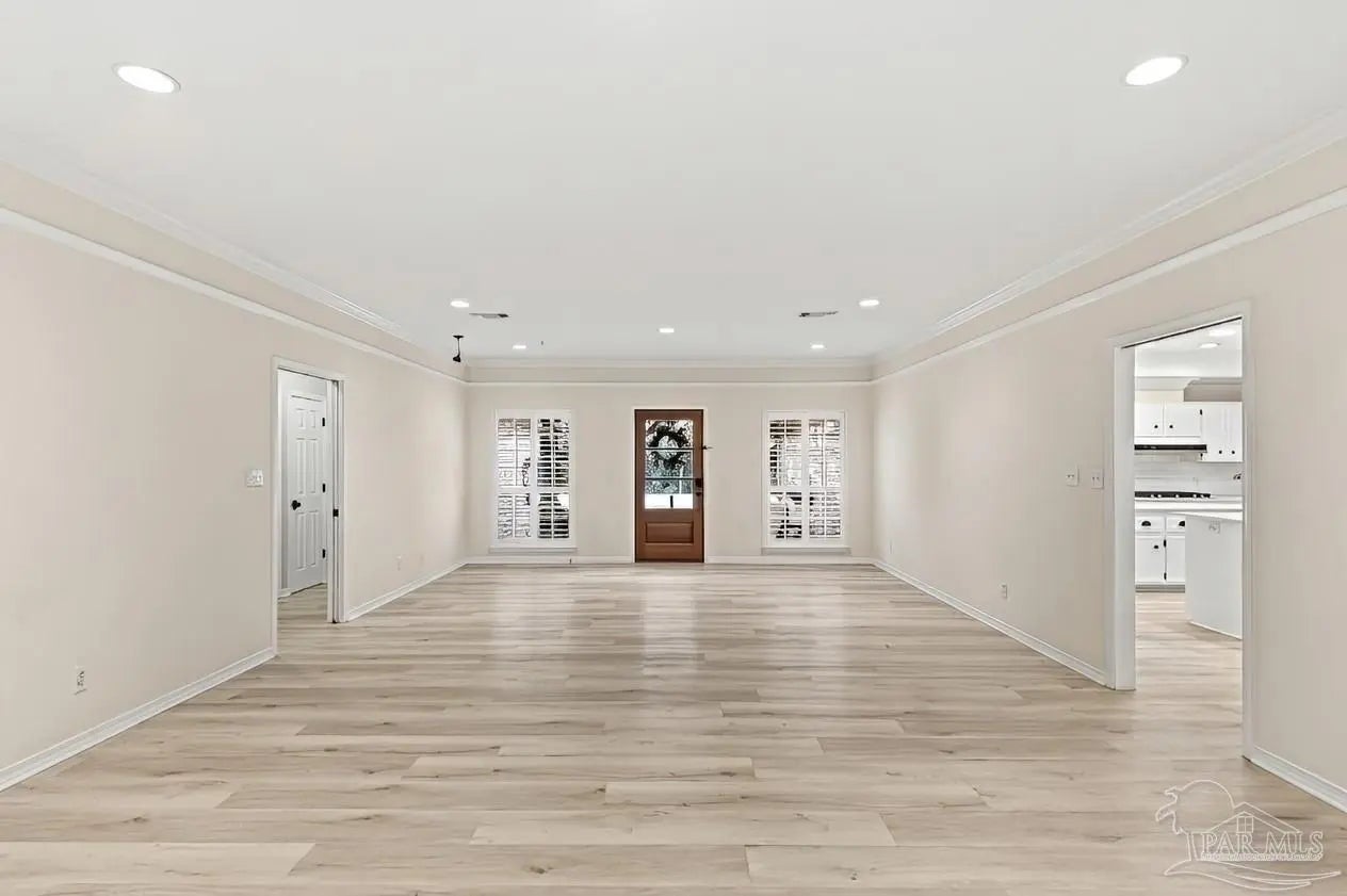 Experience the timeless charm of this oversized 3-bedroom, 2-bathroom brick residence nestled under a cooling canopy of Naval Live Oaks. Located in a premier Gulf Breeze neighborhood that prizes its natural beauty, this 2,339 sq. ft. home sits directly across from the Bay and just steps from the National Seashore. The property greets you with a stately circular drive and a brick-paved courtyard entrance inspired by the French Quarter, complete with a soothing fountain. Notice the gorgeous trees and English Ivy that surround the home. The interior is designed for modern living, featuring a master chef’s kitchen with double oven and islands! This area that serves as the heart of the home. The expansive living room provides the perfect area to relax with plenty of room to add a home office. This room as has 4 panel French doors that lead out to the lanai and gunite pool. The Primary Bedroom has custom built in shelving and plantation shutters, and en suite with double vanity and extra cabinetry going into a huge primary closet. The two guest rooms on the other side of the home have plantation shutters also. The one at the front of the home has custom shelving and a Murphy bed which makes the perfect home office space if you don't need the room. The outdoor living space is equally impressive, offering an enclosed pool area with a covered porch and a separate pool house surrounded by lush, mature landscaping. This location is a nature lover's dream, providing immediate access to National Seashore hiking trails and neighborhood parks while remaining conveniently close to A+ rated schools. Best of all, there is no HOA to restrict your lifestyle. This home offers a superior atmosphere and a cooler, shaded environment that makes it a standout choice in the current market. Act quickly, as properties in this specific enclave are highly sought after and rarely remain available for long.