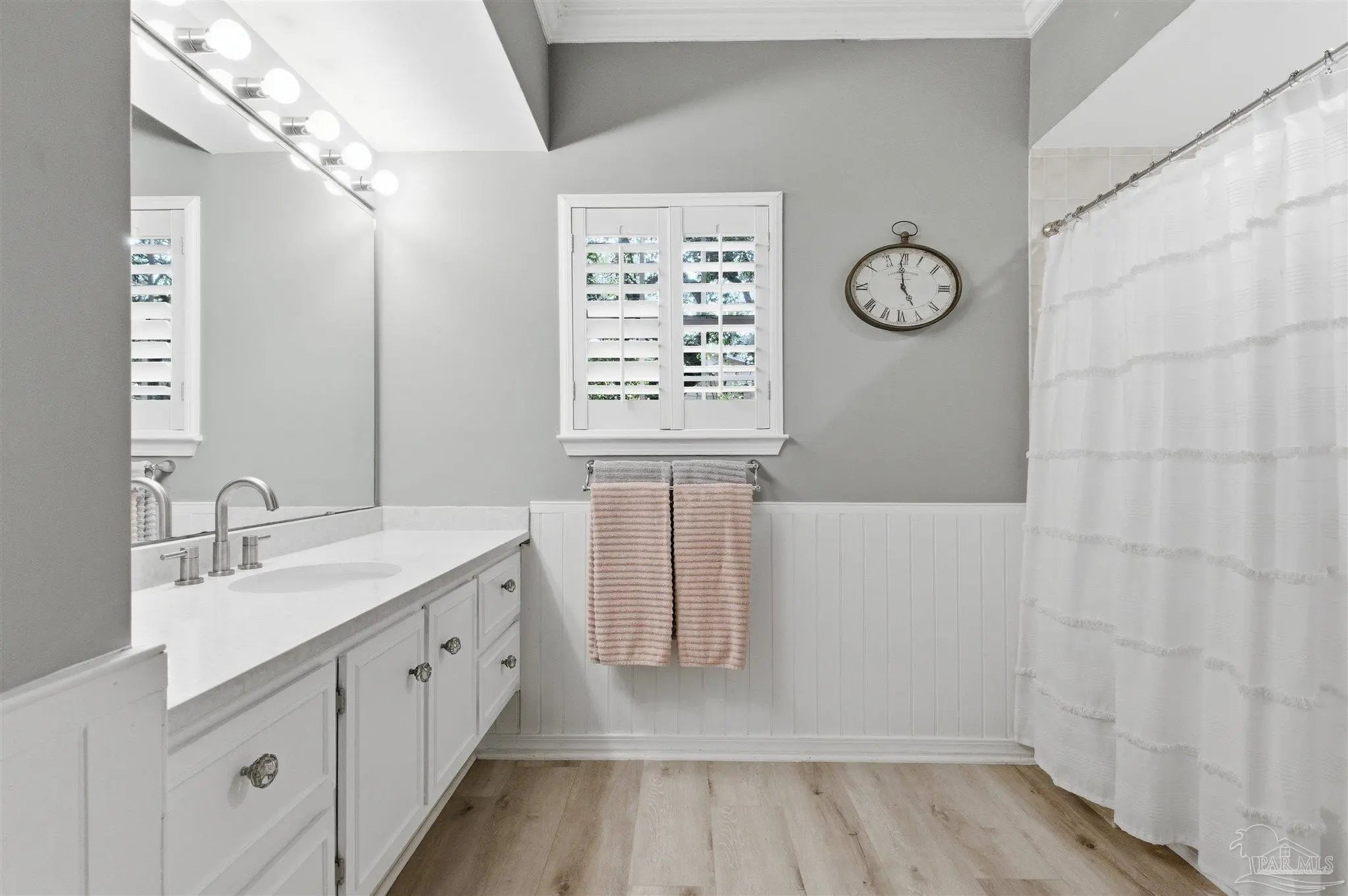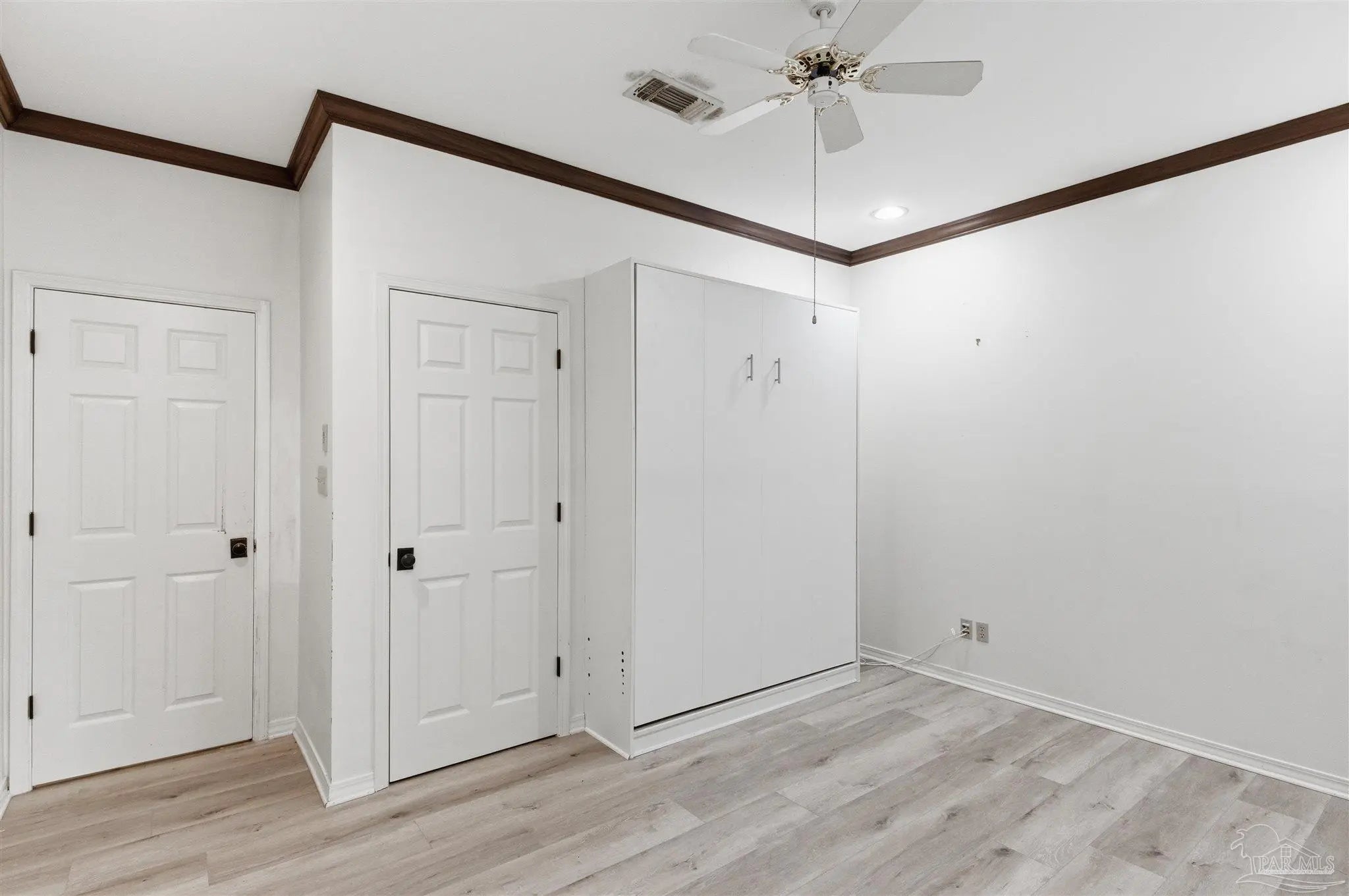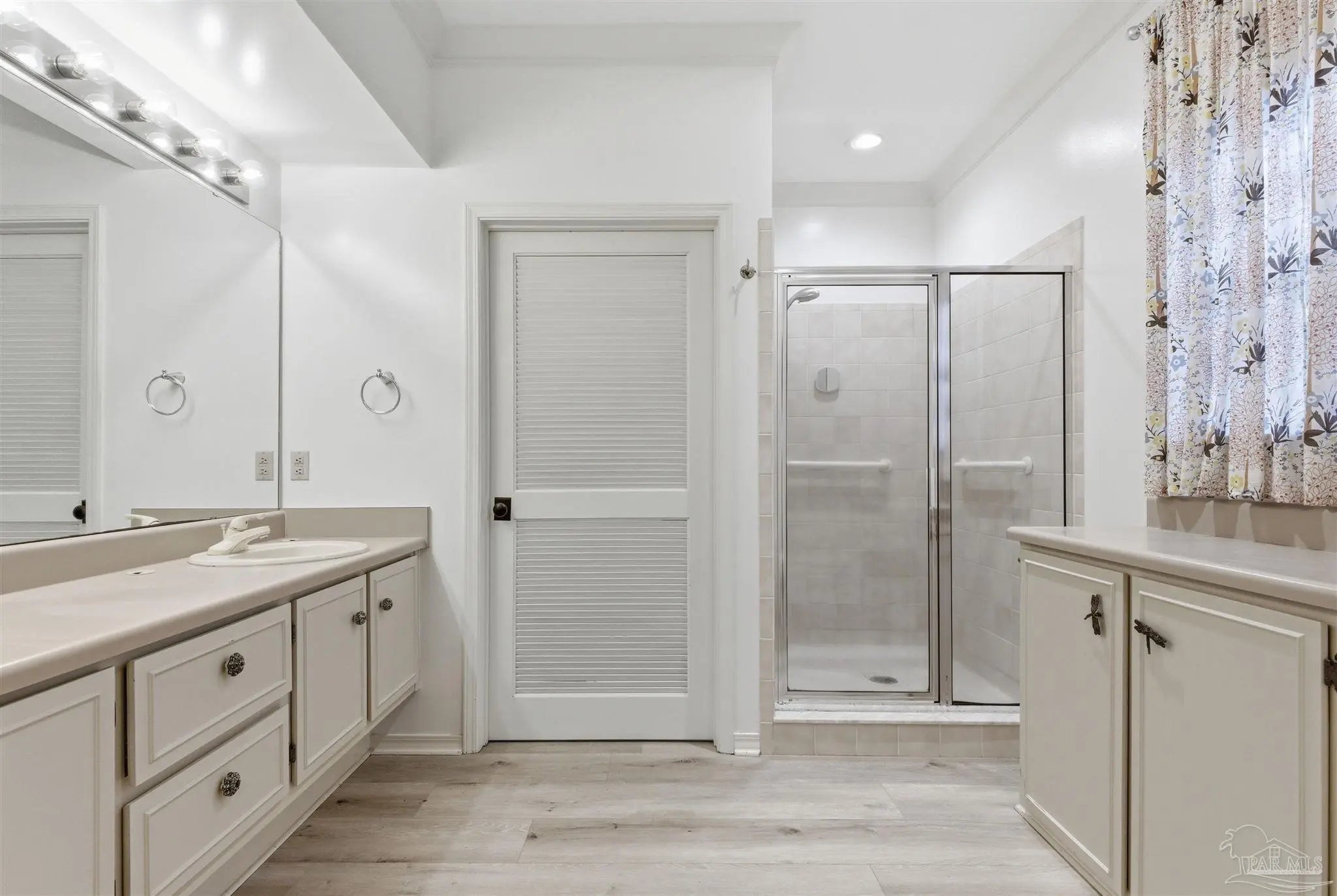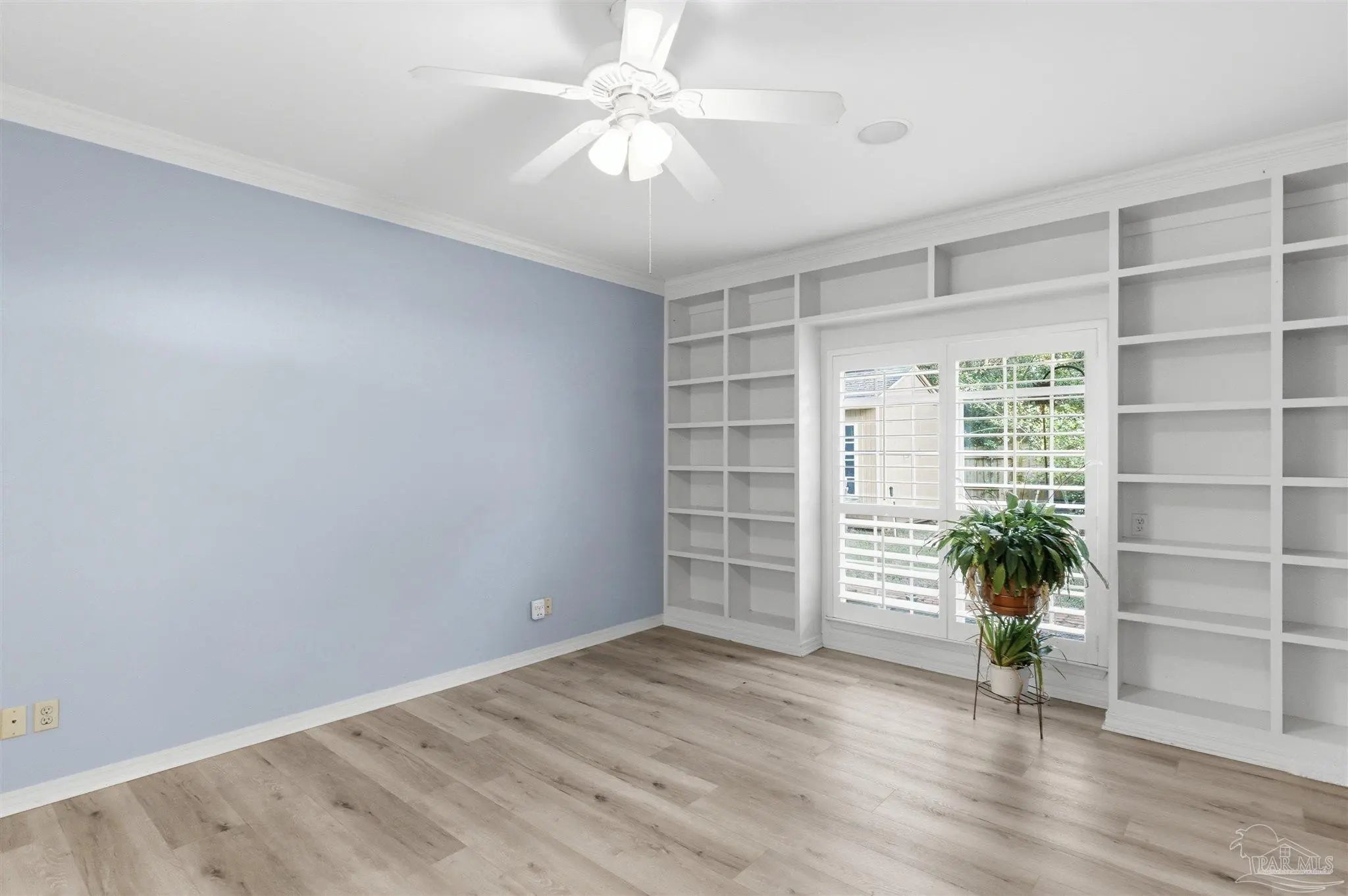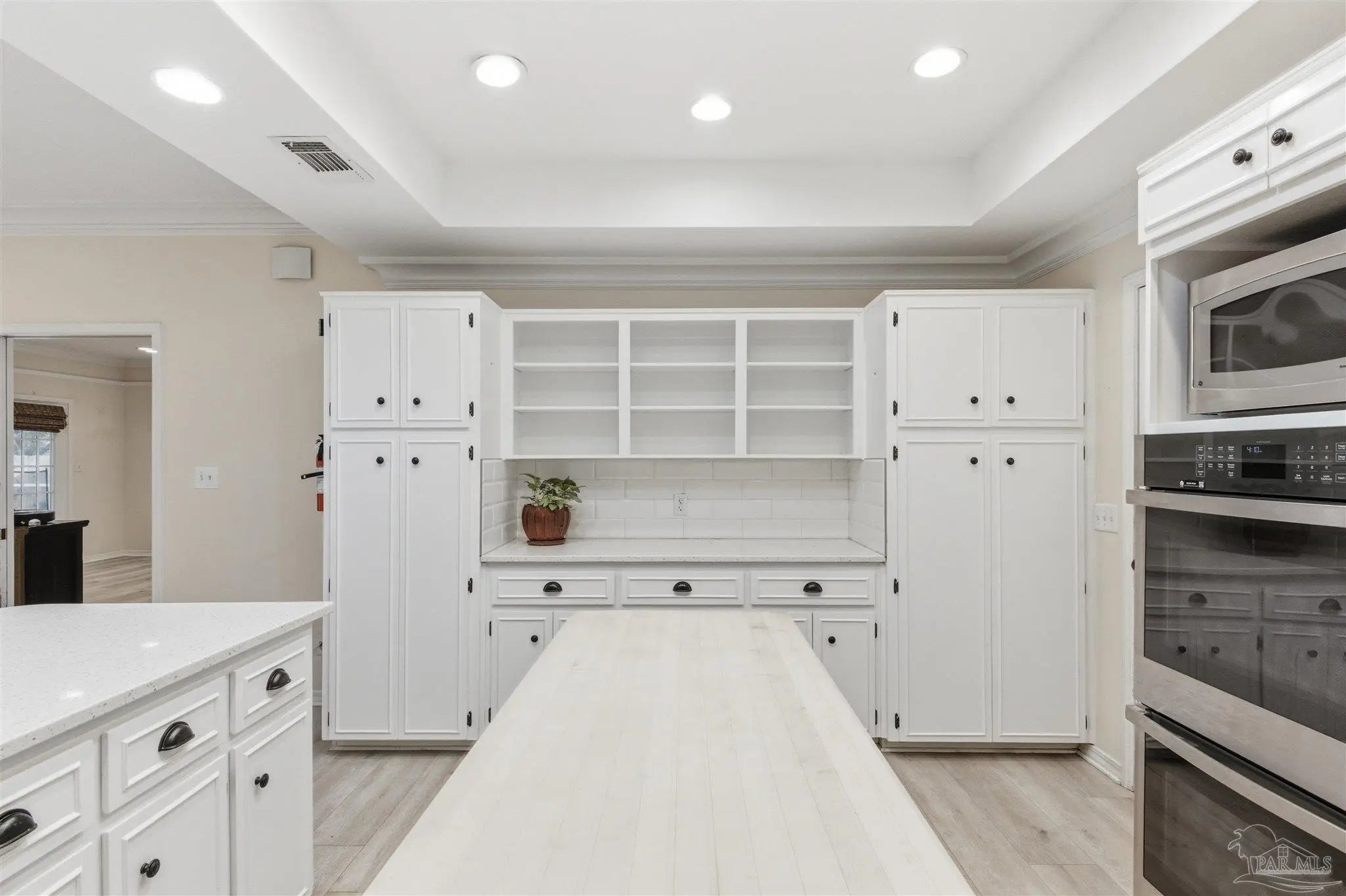 Experience the timeless charm of this oversized 3-bedroom, 2-bathroom brick residence nestled under a cooling canopy of Naval Live Oaks. Located in a premier Gulf Breeze neighborhood that prizes its natural beauty, this 2,339 sq. ft. home sits directly across from the Bay and just steps from the National Seashore. The property greets you with a stately circular drive and a brick-paved courtyard entrance inspired by the French Quarter, complete with a soothing fountain. Notice the gorgeous trees and English Ivy that surround the home. The interior is designed for modern living, featuring a master chef’s kitchen with double oven and islands! This area that serves as the heart of the home. The expansive living room provides the perfect area to relax with plenty of room to add a home office. This room as has 4 panel French doors that lead out to the lanai and gunite pool. The Primary Bedroom has custom built in shelving and plantation shutters, and en suite with double vanity and extra cabinetry going into a huge primary closet. The two guest rooms on the other side of the home have plantation shutters also. The one at the front of the home has custom shelving and a Murphy bed which makes the perfect home office space if you don't need the room. The outdoor living space is equally impressive, offering an enclosed pool area with a covered porch and a separate pool house surrounded by lush, mature landscaping. This location is a nature lover's dream, providing immediate access to National Seashore hiking trails and neighborhood parks while remaining conveniently close to A+ rated schools. Best of all, there is no HOA to restrict your lifestyle. This home offers a superior atmosphere and a cooler, shaded environment that makes it a standout choice in the current market. Act quickly, as properties in this specific enclave are highly sought after and rarely remain available for long.