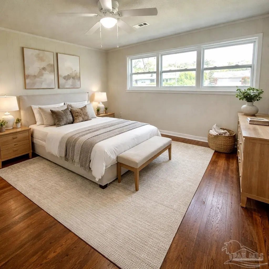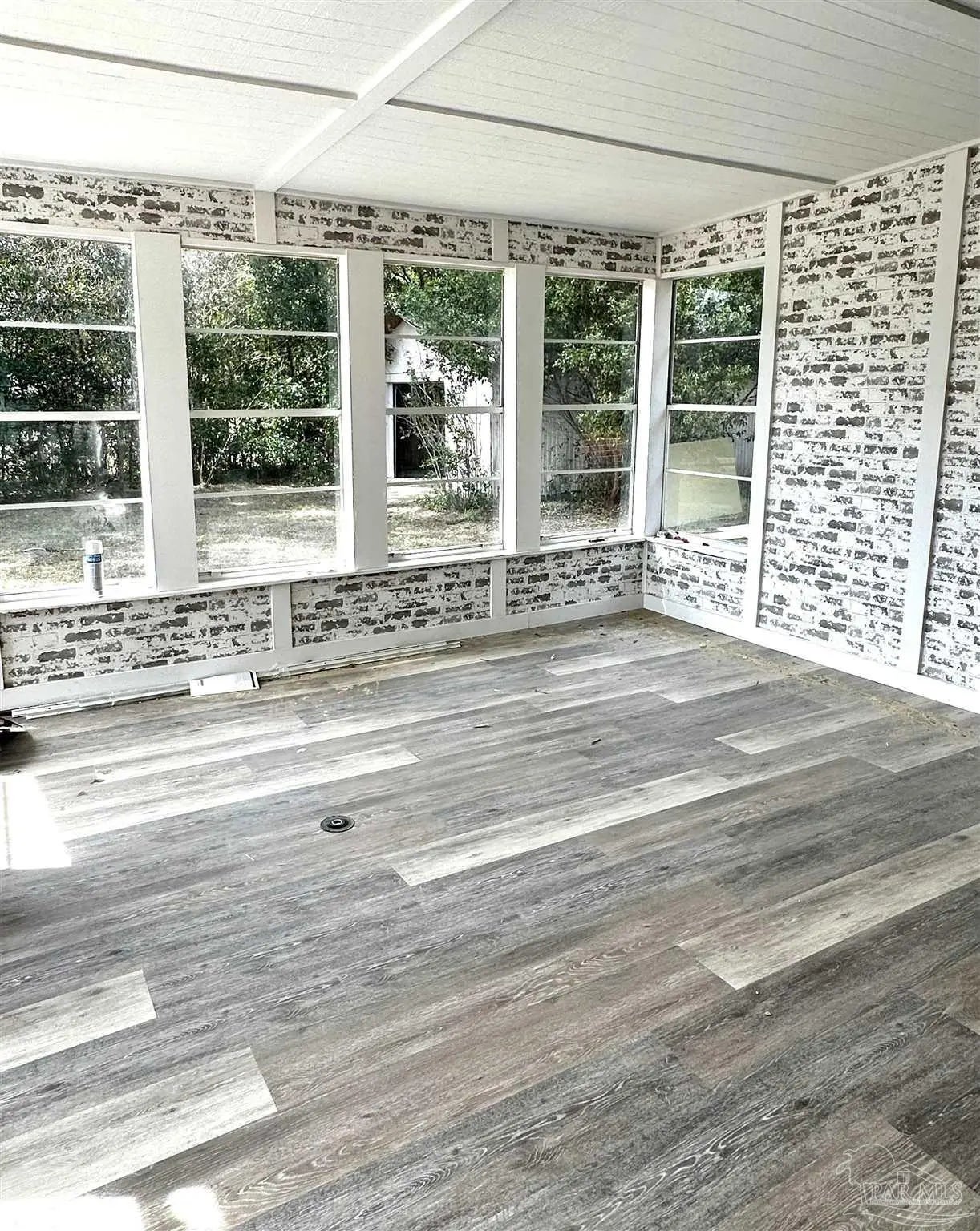 Welcome home to this beautifully renovated brick residence in Pensacola. Offering over 1,500 square feet of comfortable living space, this property features an oversized attached one-car garage, additional poured-slab parking, and a spacious detached two-car garage/workshop in the backyard—perfect for storage, hobbies, or extra vehicles. Enjoy peace of mind with a brand-new roof, newer energy-efficient windows, completely new septic system and an updated hvac unit. Relax on the inviting front porch or unwind in the private rear sunroom overlooking the freshly sodded backyard—ideal for entertaining or quiet evenings at home. Inside, modern finishes shine throughout, including an updated bathroom and a fully renovated kitchen designed for both style and function. Conveniently located with quick access to Naval Air Station Pensacola, The Navy Hospital and Naval Air Station Pensacola Corry Station. Just 10–15 minutes from beautiful Gulf Coast beaches and public boat ramps, this home offers the perfect blend of comfort, convenience, and lifestyle. Make this move-in-ready property your next home!