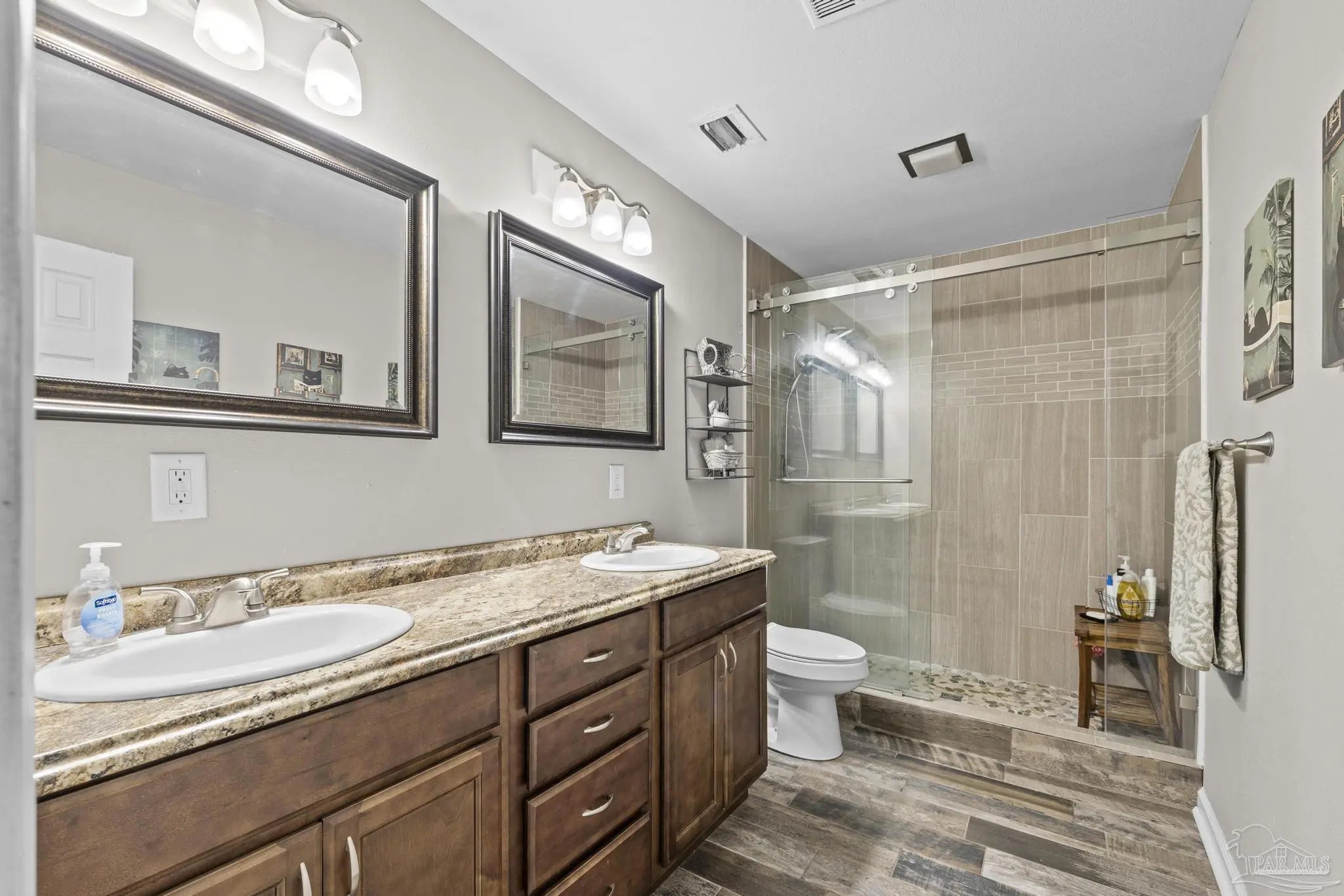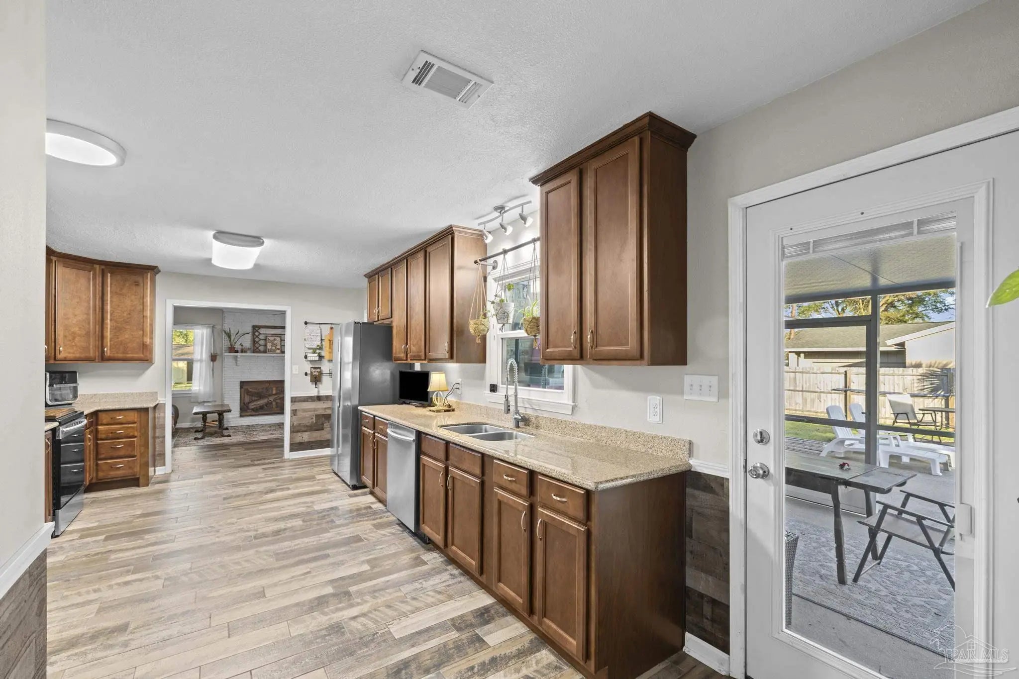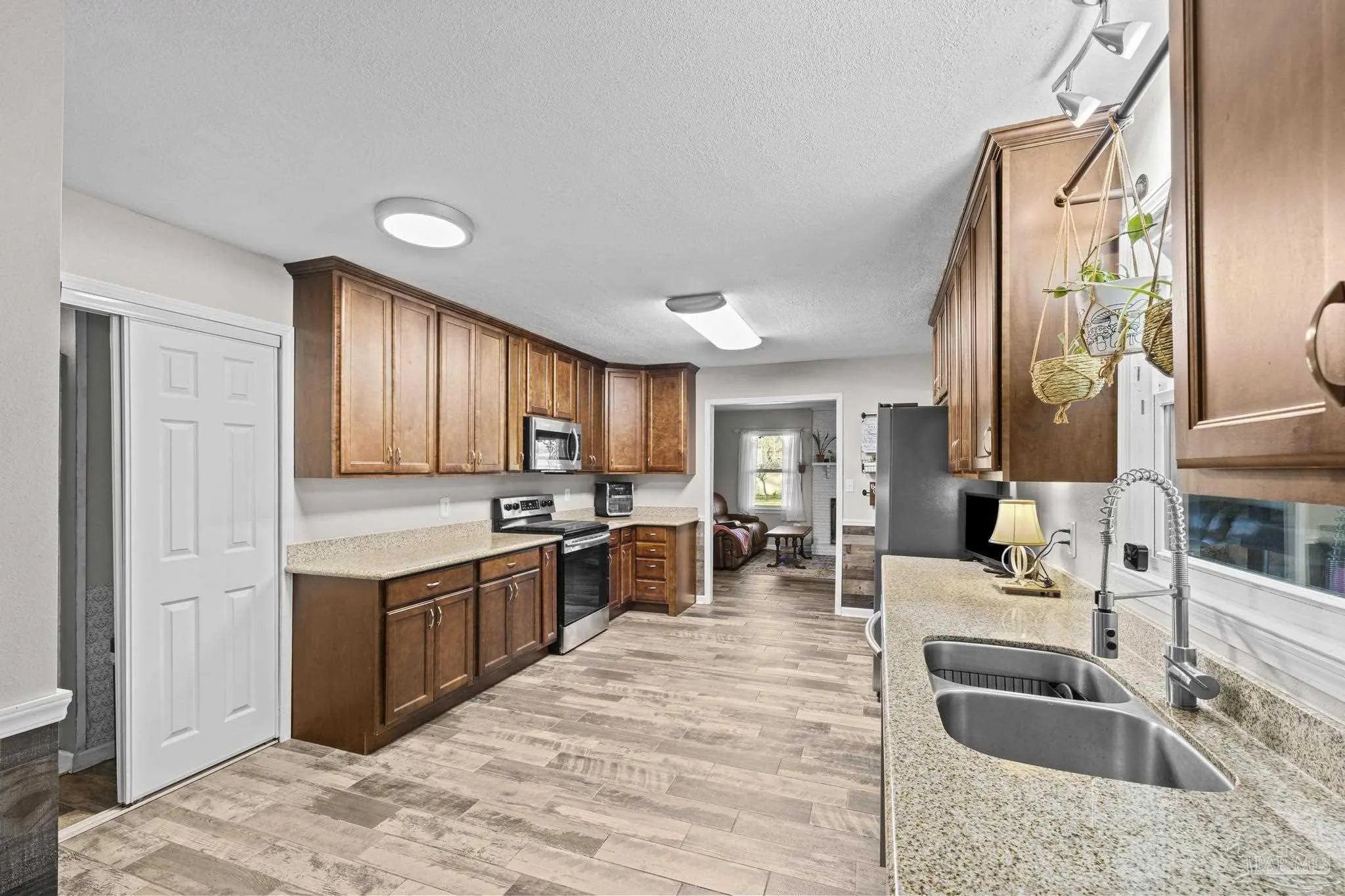 Step into style and comfort in this beautiful 5 Bedroom/2 Bathroom stunning brick pool home nestled in one of Pensacola’s most loved neighborhoods—Scenic Heights. From the inviting front porch to the warmth of the wood-burning fireplace, this residence offers a seamless blend of classic charm and contemporary updates. The heart of the home is a chef’s dream, featuring an expansive kitchen with granite countertops, premium stainless steel appliances, and abundant cabinet space. Elegant wood-look tile flows through the main living areas, kitchen, and updated bathrooms. With five generously sized bedrooms, the floor plan offers exceptional flexibility; the room near the entrance is well-suited for a home office, gym, or guest suite. Experience the ultimate Florida lifestyle in your private backyard sanctuary. Whether you’re hosting a summer barbecue or unwinding by the sparkling pool, the fully fenced yard and 2023 screened patio provide the perfect backdrop for entertaining. A new storage shed (2025) offers extra space for tools and toys. Rest easy knowing the home is equipped with a roof in 2018, an HVAC system in 2019, a 2023 water heater, hurricane impact windows in 2023, and attic foam insulation sprayed in 2024. Located in the heart of NE Pensacola, you are minutes away from the Hitzman soccer complex, local parks, and the scenic waterfront of Escambia Bay. Enjoy a quiet, shaded neighborhood perfect for walking and biking, with the convenience of being 10 minutes from Downtown Pensacola and only 15 minutes from the white sands of Pensacola Beach. Schedule your private showing today and discover why this Scenic Heights gem won't last long!