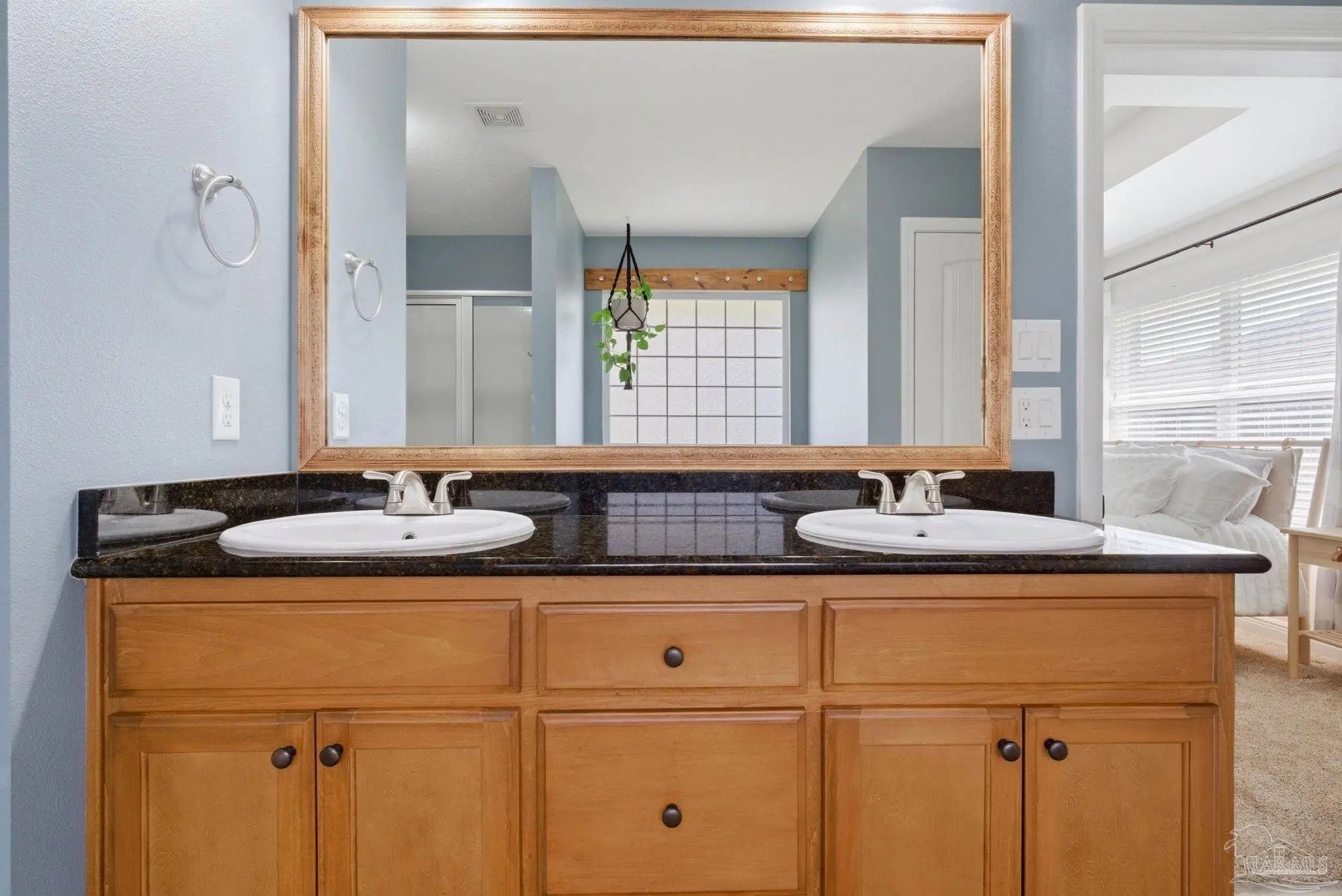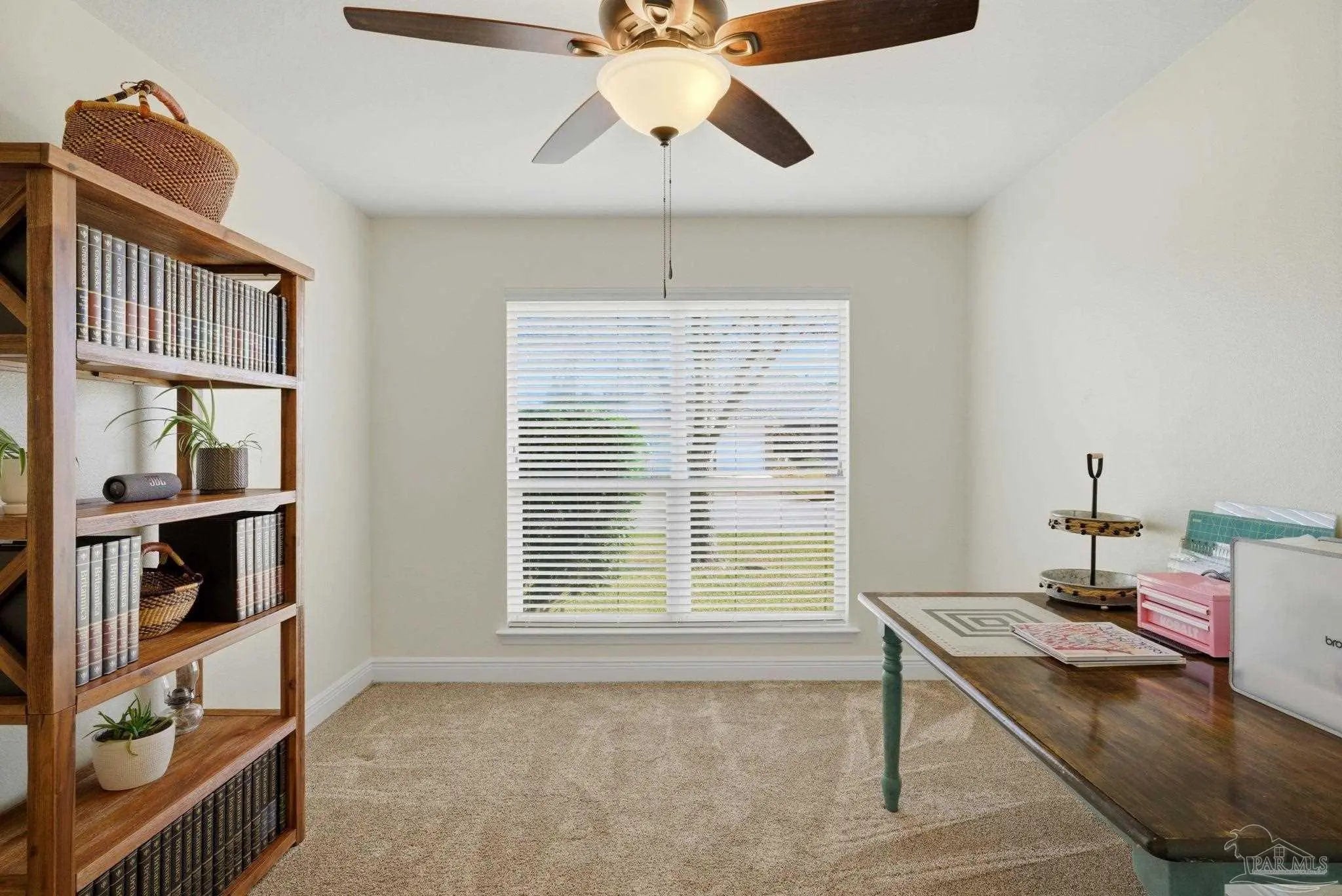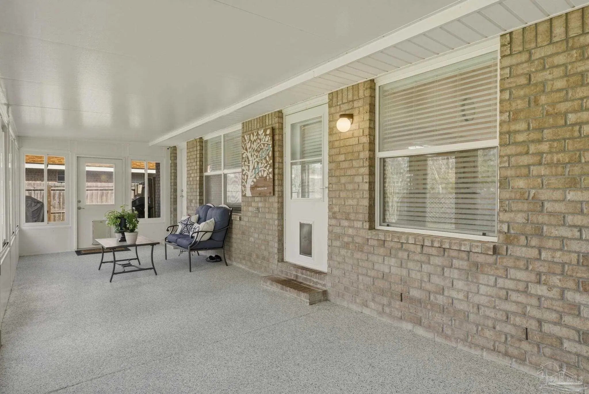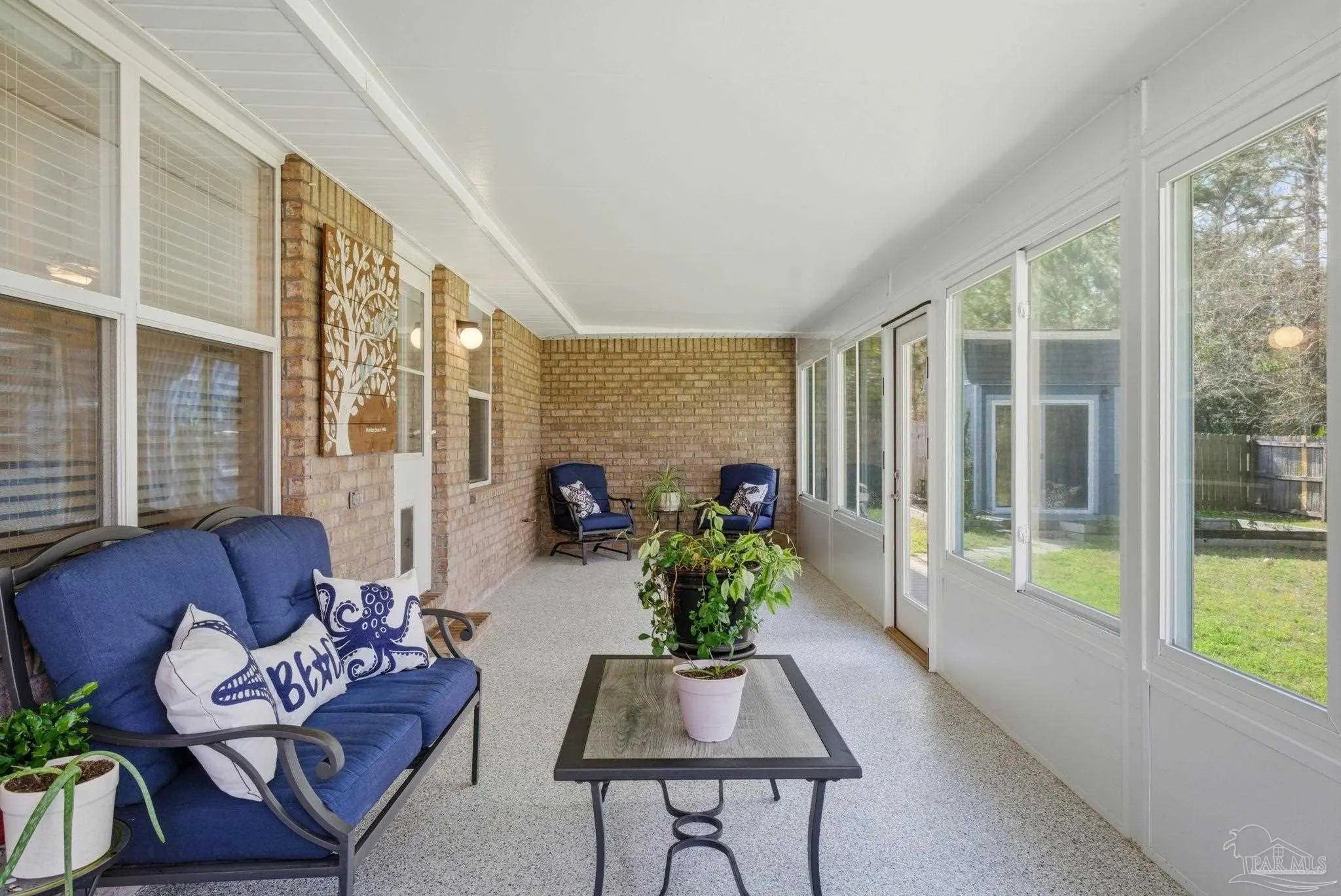 OPEN HOUSE SATURDAY 3/21 @ 10-1! Beautiful all-brick 4 bed, 3 bath home in the highly desirable Manchester subdivision, where wide streets, tidy yards, and a peaceful neighborhood feel. Step inside and you’ll immediately notice the spacious open floor plan with soaring ceilings that give the home a welcoming feel. The great room with wood burning fireplace flows seamlessly into the kitchen, creating the perfect gathering space for game nights, holidays, or simply relaxing at the end of the day. The kitchen truly steals the show, featuring granite countertops with bar top type island, an abundance of cabinetry, a gas cooktop and a bar type island topped with a rich wood countertop that’s perfect for prepping or serving. A walk-in pantry, built-in desk, and cozy breakfast nook overlooking the backyard make this kitchen as functional as it is beautiful. The formal dining room can easily serve as a sitting room, playroom, or game space. The primary suite is generously sized with a dramatic double-tiered ceiling. The bathroom features granite double vanities, a soaking garden tub, separate shower, and two walk-in closets so nobody has to fight over storage space. Outside enjoy a backyard designed for both relaxation and privacy. The home backs up to a greenbelt with no rear neighbors, giving you extra breathing room. Custom front porch welcomes guests, while the spacious insulated sunroom with epoxy flooring is the perfect spot for morning coffee, reading, or watching the rain roll in. The yard features a garden area, privacy fence, sprinkler system, and a unique bonus, a custom air-conditioned studio building tucked in the backyard. With windows and a sliding glass door, this versatile space could be an art studio, home office, game room, workout space or storage. Conveniently located just minutes from Perdido Key’s white beaches, downtown Pensacola, shopping and dining, this home offers the perfect mix of privacy, space, and accessibility. Shed is As Is. VA ASSUMABLE!!