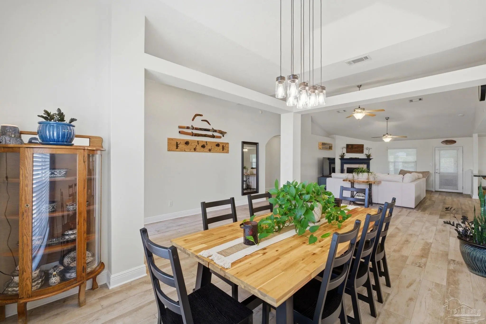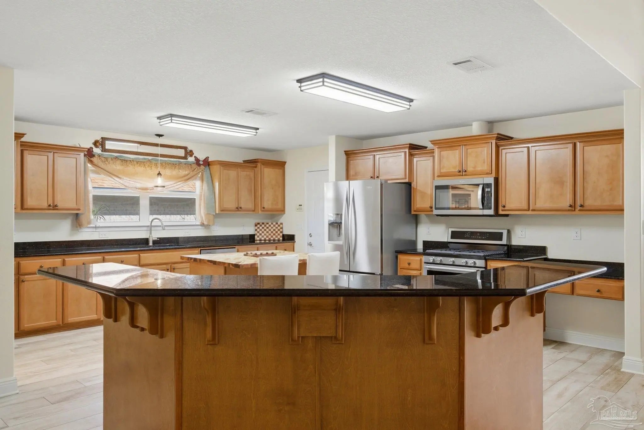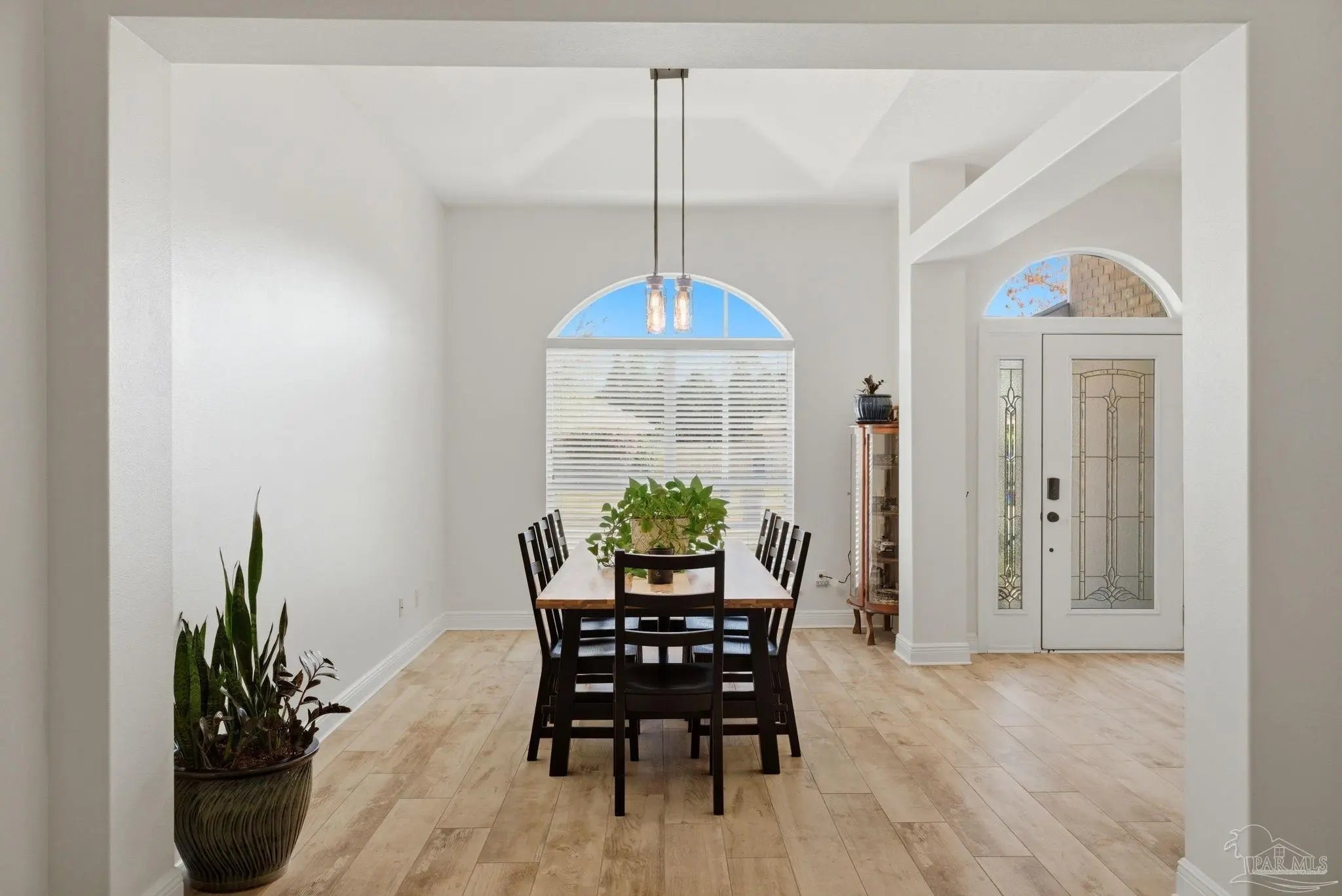 OPEN HOUSE SATURDAY 3/21 @ 10-1! Beautiful all-brick 4 bed, 3 bath home in the highly desirable Manchester subdivision, where wide streets, tidy yards, and a peaceful neighborhood feel. Step inside and you’ll immediately notice the spacious open floor plan with soaring ceilings that give the home a welcoming feel. The great room with wood burning fireplace flows seamlessly into the kitchen, creating the perfect gathering space for game nights, holidays, or simply relaxing at the end of the day. The kitchen truly steals the show, featuring granite countertops with bar top type island, an abundance of cabinetry, a gas cooktop and a bar type island topped with a rich wood countertop that’s perfect for prepping or serving. A walk-in pantry, built-in desk, and cozy breakfast nook overlooking the backyard make this kitchen as functional as it is beautiful. The formal dining room can easily serve as a sitting room, playroom, or game space. The primary suite is generously sized with a dramatic double-tiered ceiling. The bathroom features granite double vanities, a soaking garden tub, separate shower, and two walk-in closets so nobody has to fight over storage space. Outside enjoy a backyard designed for both relaxation and privacy. The home backs up to a greenbelt with no rear neighbors, giving you extra breathing room. Custom front porch welcomes guests, while the spacious insulated sunroom with epoxy flooring is the perfect spot for morning coffee, reading, or watching the rain roll in. The yard features a garden area, privacy fence, sprinkler system, and a unique bonus, a custom air-conditioned studio building tucked in the backyard. With windows and a sliding glass door, this versatile space could be an art studio, home office, game room, workout space or storage. Conveniently located just minutes from Perdido Key’s white beaches, downtown Pensacola, shopping and dining, this home offers the perfect mix of privacy, space, and accessibility. Shed is As Is. VA ASSUMABLE!!