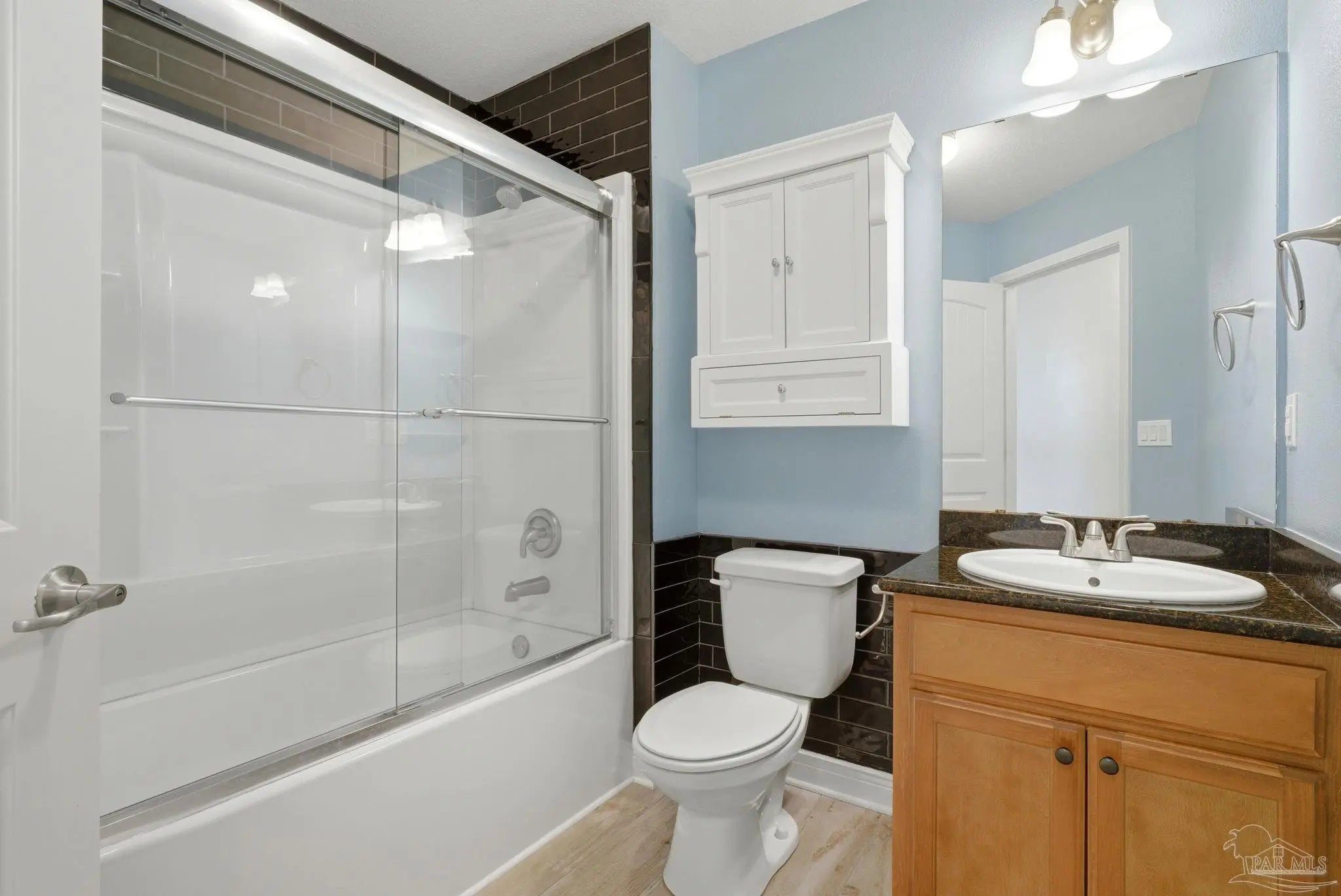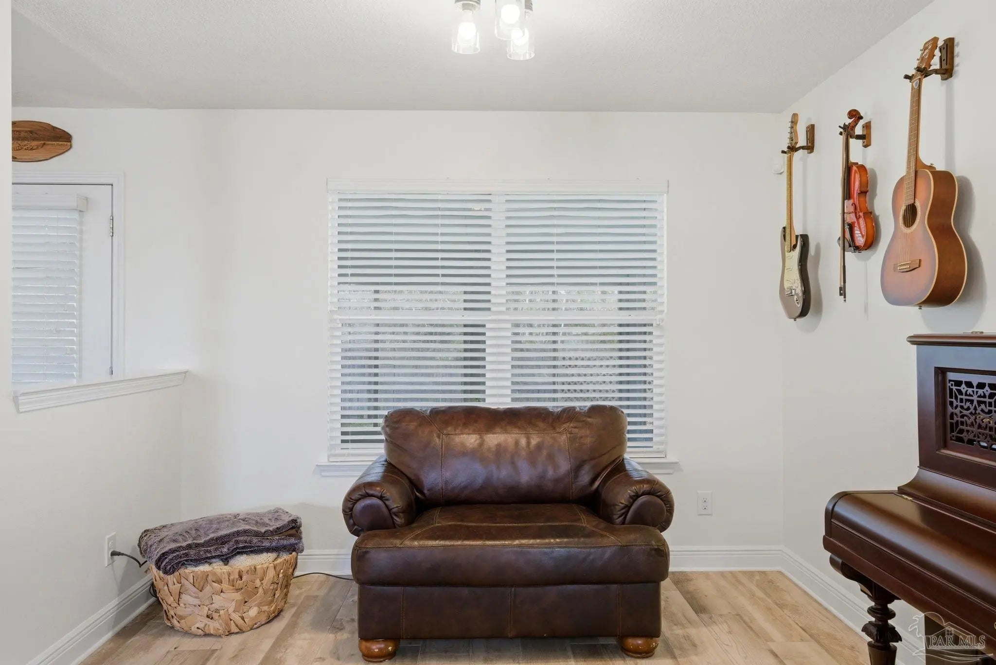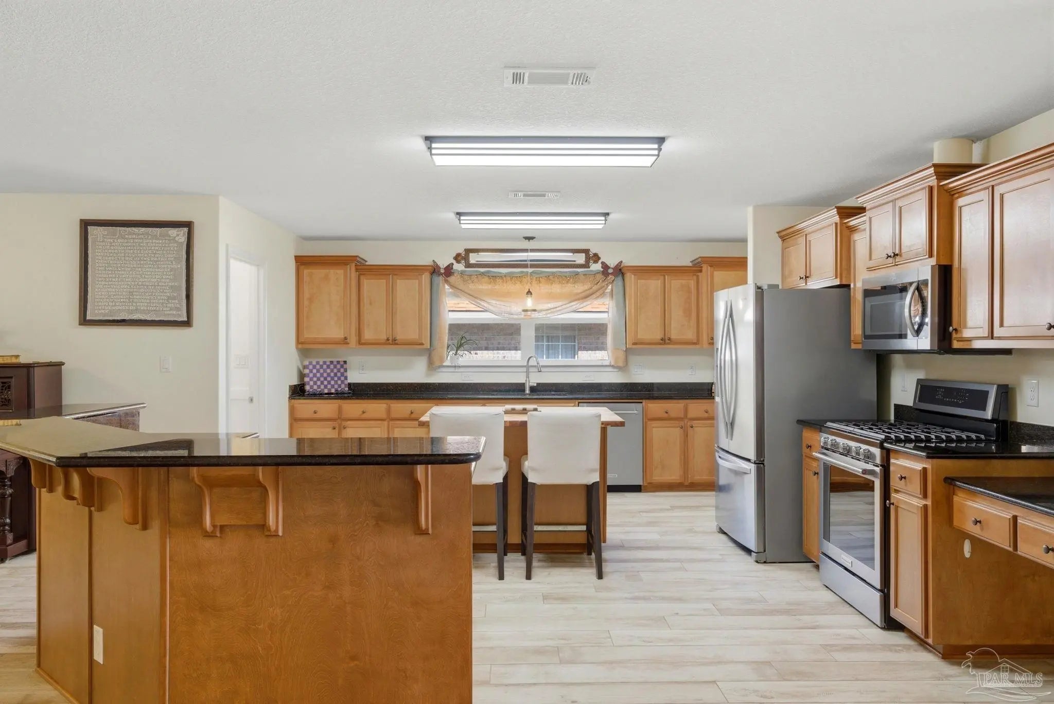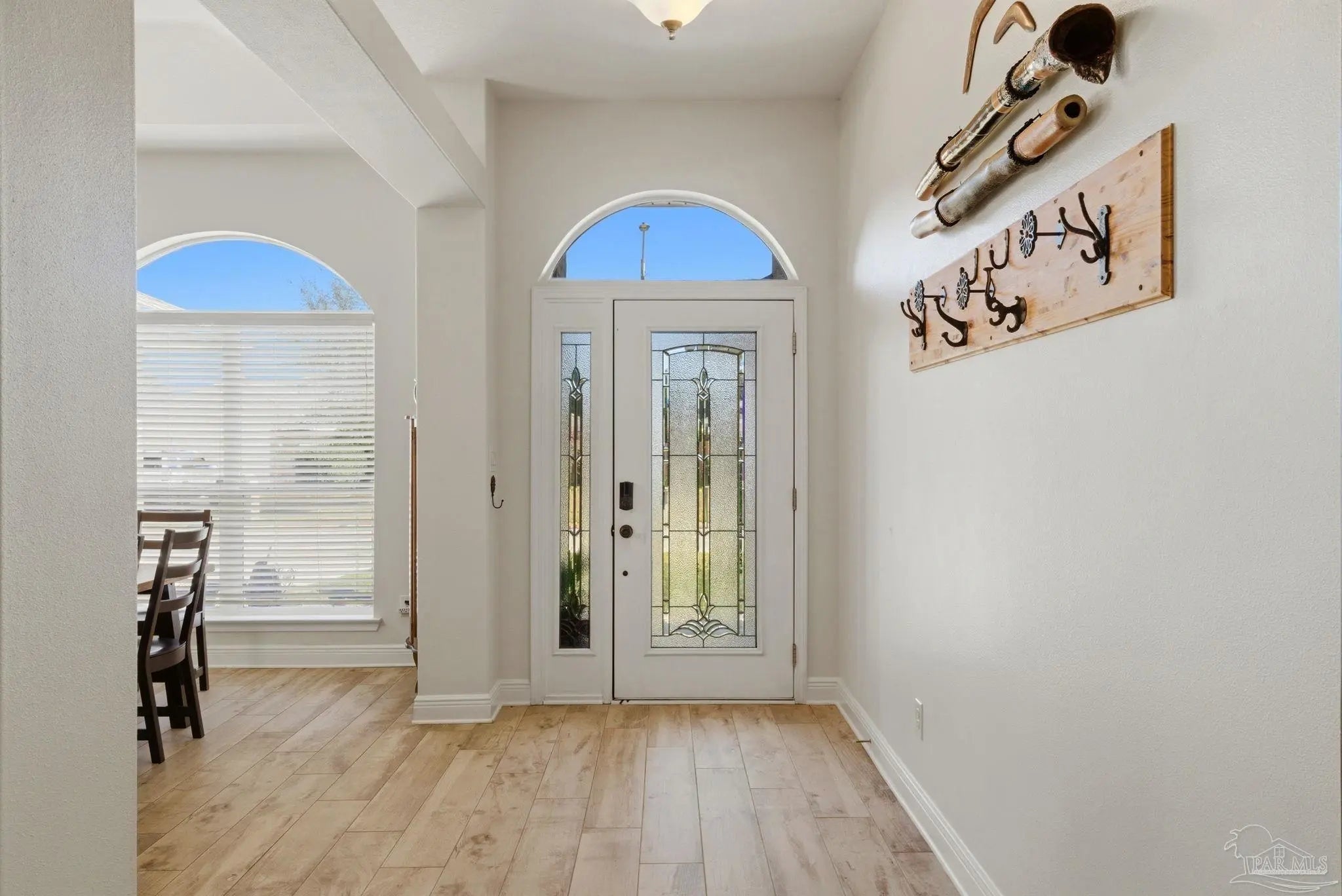 OPEN HOUSE SATURDAY 3/21 @ 10-1! Beautiful all-brick 4 bed, 3 bath home in the highly desirable Manchester subdivision, where wide streets, tidy yards, and a peaceful neighborhood feel. Step inside and you’ll immediately notice the spacious open floor plan with soaring ceilings that give the home a welcoming feel. The great room with wood burning fireplace flows seamlessly into the kitchen, creating the perfect gathering space for game nights, holidays, or simply relaxing at the end of the day. The kitchen truly steals the show, featuring granite countertops with bar top type island, an abundance of cabinetry, a gas cooktop and a bar type island topped with a rich wood countertop that’s perfect for prepping or serving. A walk-in pantry, built-in desk, and cozy breakfast nook overlooking the backyard make this kitchen as functional as it is beautiful. The formal dining room can easily serve as a sitting room, playroom, or game space. The primary suite is generously sized with a dramatic double-tiered ceiling. The bathroom features granite double vanities, a soaking garden tub, separate shower, and two walk-in closets so nobody has to fight over storage space. Outside enjoy a backyard designed for both relaxation and privacy. The home backs up to a greenbelt with no rear neighbors, giving you extra breathing room. Custom front porch welcomes guests, while the spacious insulated sunroom with epoxy flooring is the perfect spot for morning coffee, reading, or watching the rain roll in. The yard features a garden area, privacy fence, sprinkler system, and a unique bonus, a custom air-conditioned studio building tucked in the backyard. With windows and a sliding glass door, this versatile space could be an art studio, home office, game room, workout space or storage. Conveniently located just minutes from Perdido Key’s white beaches, downtown Pensacola, shopping and dining, this home offers the perfect mix of privacy, space, and accessibility. Shed is As Is. VA ASSUMABLE!!