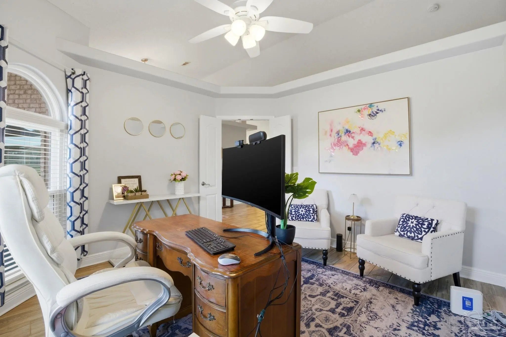 - Baseboards, Ceiling Fan(s), Crown Molding, Office/Study