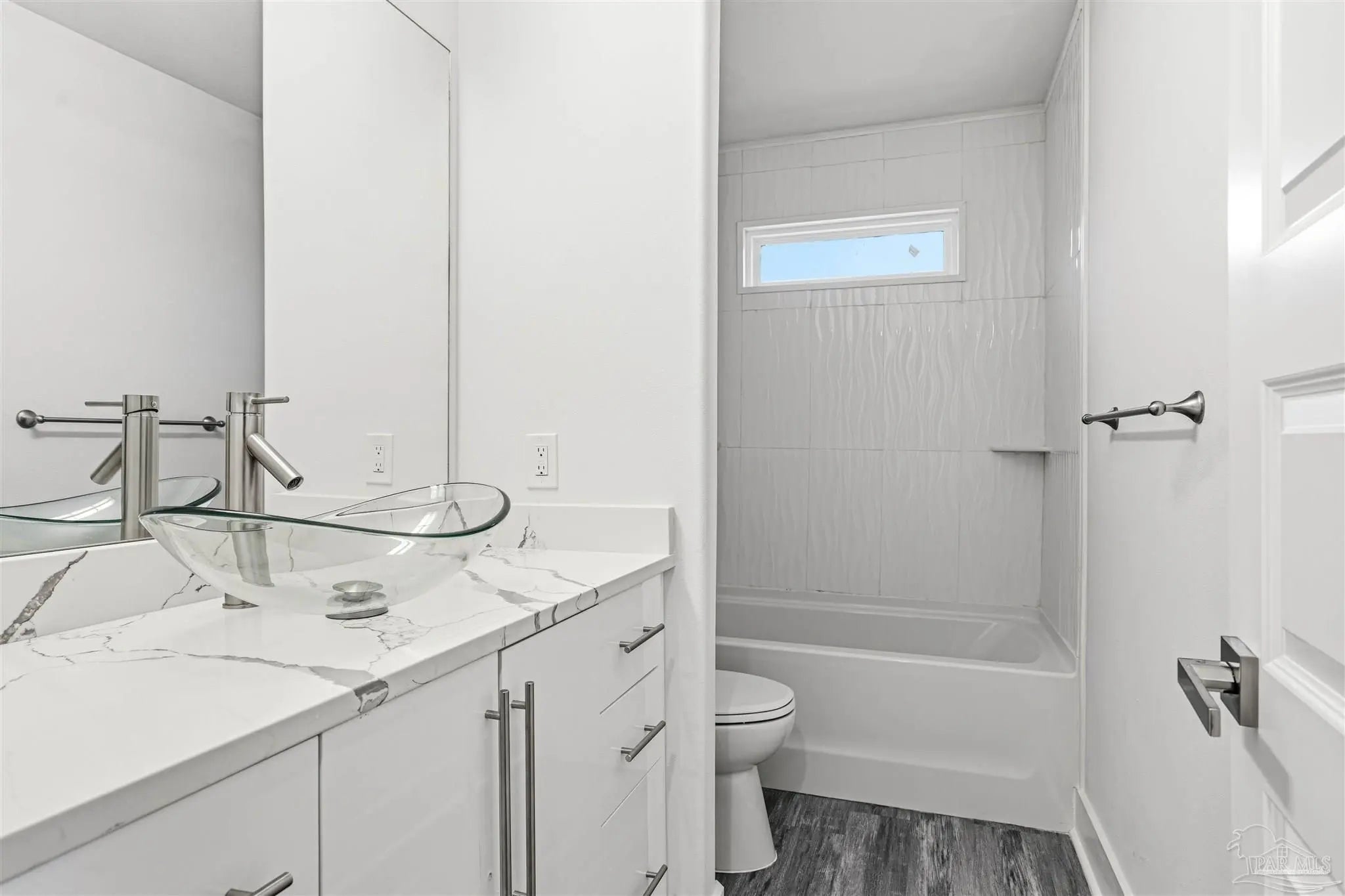 Modern design meets everyday functionality at 4446 Old Antioch Road, a thoughtfully crafted home located just 10 minutes south of I-10, offering both convenience and contemporary style. Set on a 0.32 acre homesite with no HOA, this 5 bedroom, 3.5 bath residence spans over 2,200 square feet and displays a clean European inspired aesthetic with sleek finishes and an open concept layout designed for comfortable living. The main living space flows seamlessly into a striking kitchen featuring glossy modern cabinetry, quartz countertops, stainless steel appliances, and a large center peninsula that anchors the space. The primary suite is privately positioned on the first floor, offering a spa inspired retreat complete with a freestanding soaking tub, double vessel vanities, and a beautifully finished tile shower. Upstairs, four additional bedrooms provide flexibility for family, guests, or home office space. While one of the bedrooms functions as a true secondary suite with its own private ensuite bath, and an additional full bathroom serves the remaining rooms. Outside, the fully fenced backyard offers privacy and space to relax, while the generous front yard enhances the home's curb appeal and sense of openness. Old Antioch Road is defined by modern finishes, a spacious layout, and a location designed for convenience. Positioned just minutes from the interstate, Crestview amenities, and access to Eglin Air Force Base, this home offers a seamless blend of style, comfort, and connectivity in one of Crestview’s most accessible locations.