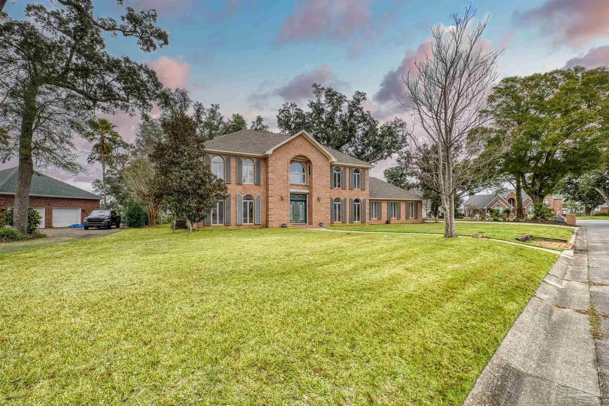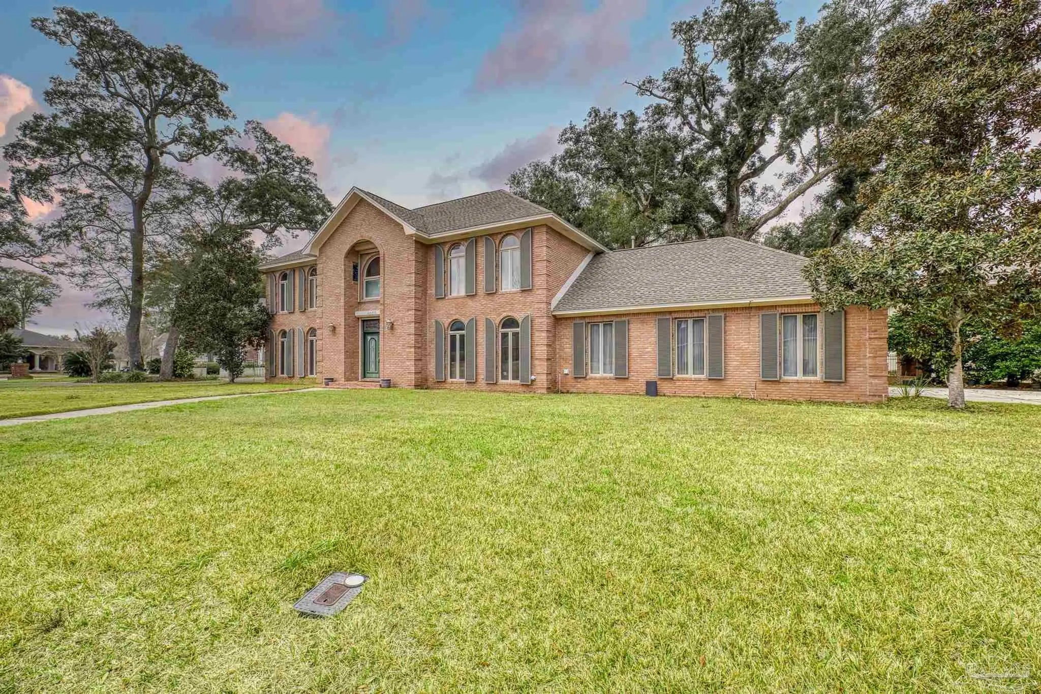 Estate sale 4/9 1-5, 4/10 9-3 and 4/11 9-3. Interior photos will be added after sale. This well-maintained, one-owner custom home offers generous living spaces, timeless design, and beautiful views of Escambia Bay from its .39-acre lot. The main level features a formal living room and dining room, a dedicated office, a comfortable den, and an eat-in kitchen, creating an ideal layout for both everyday living and entertaining. Upstairs, three bedrooms and a guest bathroom provide ample space for family or visitors. The luxurious primary suite spans a large portion of the second floor and includes a spacious sitting room, a private dressing area, and a vanity, offering a true retreat. While the home has been lovingly cared for, it is ready for updating—an excellent opportunity for a buyer to personalize and modernize a solidly built property in a desirable location. With its classic layout, generous square footage, and bay-view setting, this property presents exceptional potential for its next owner.