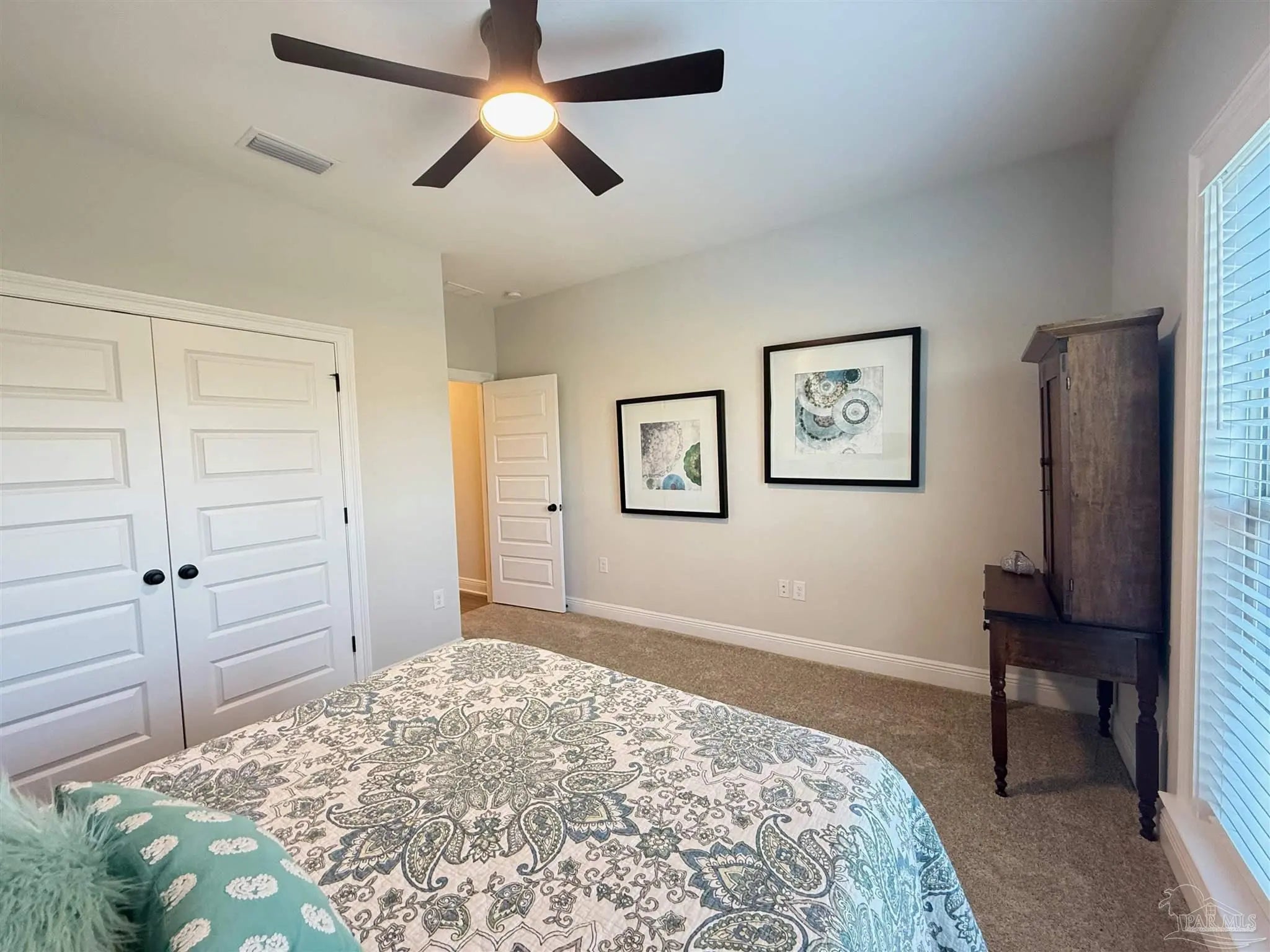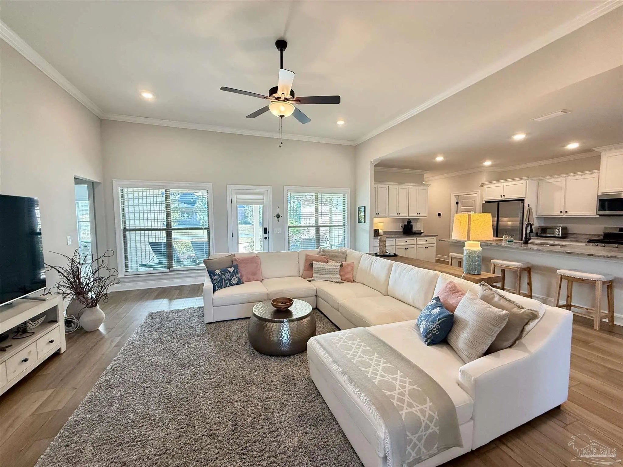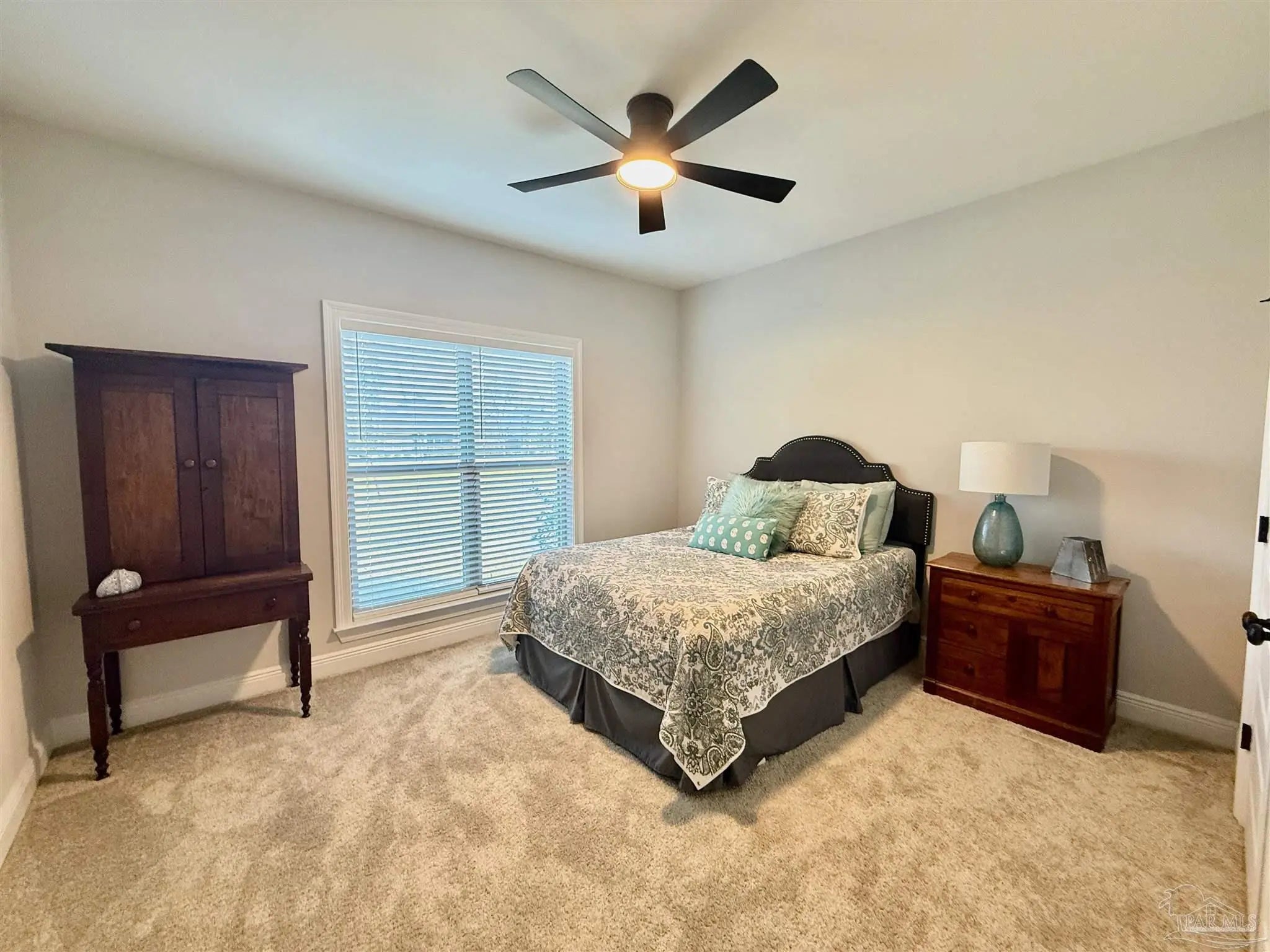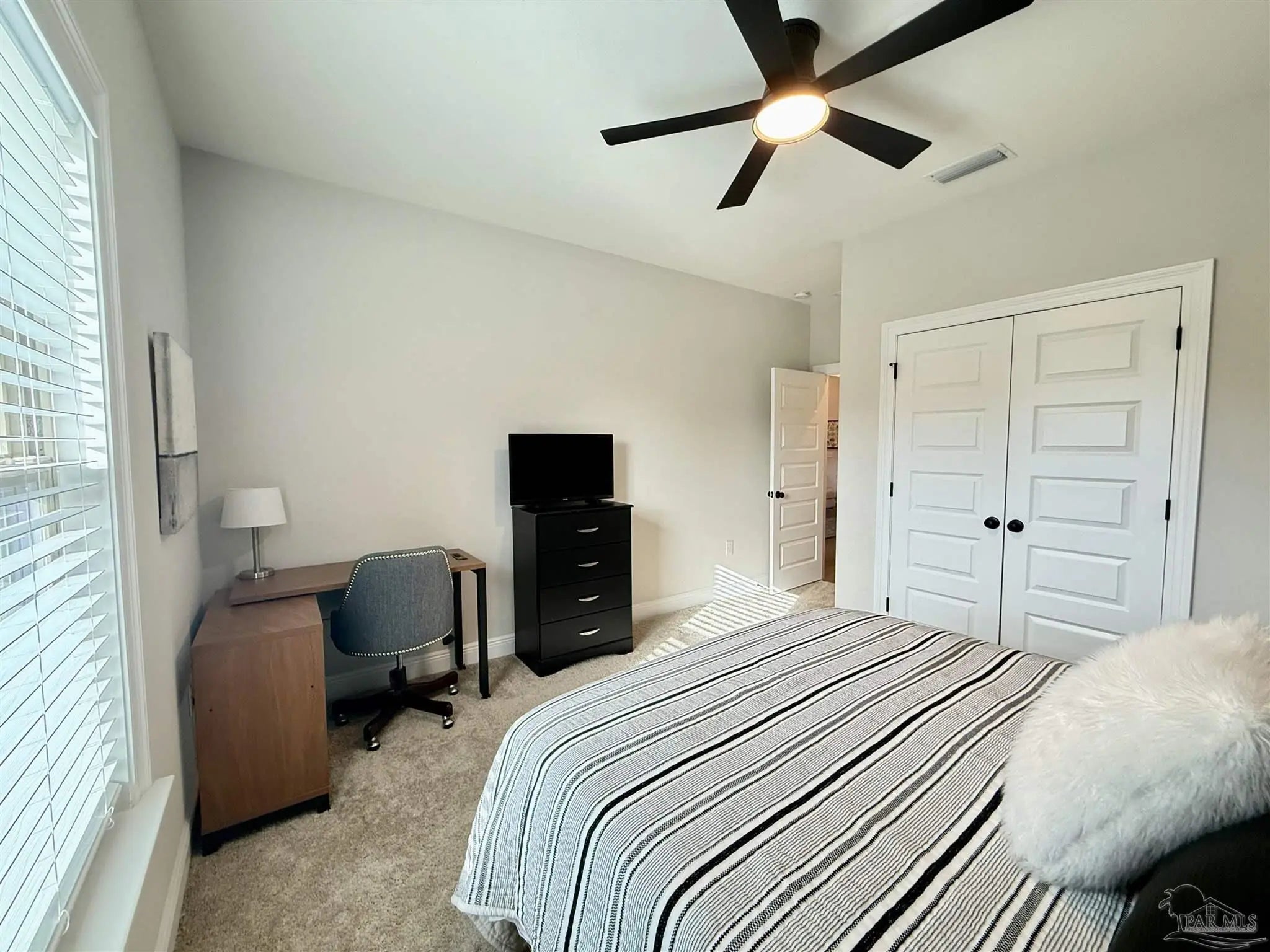 Welcome to the beautifully designed Berryhill plan built in 2022. This better-than-new home in Yellow River Ranch offers a great living space with 4 bedrooms plus a flex space and 3.5 baths, providing the perfect blend of functionality, style and comfort. From the moment you enter, you'll appreciate the open and inviting layout ideal for both everyday living and entertaining. The spacious kitchen flows seamlessly into the living and dining areas, creating a bright central gathering space. The flex space offers incredible versatility and can easily serve as a home office, playroom, or guest space to fit your lifestyle. The private primary suite provides a peaceful retreat with oversized bath, generous closet and walk-thru laundry. The additional bedrooms are perfectly sized with one bedroom having its own ensuite. Step outside and you will find a huge covered back porch, perfect for grilling and hanging out. Yellow River Ranch is a charming master-planned community surrounded by natural beauty. The neighborhood itself boasts common green spaces galore, a community pool, playground, pickleball courts, and a tennis/basketball court. Yellow River Ranch offers easy access to I 10 (exits 28 and 31), Pensacola, Eglin AFB, and the white sand beaches of Pensacola Beach and Navarre. Nearly new construction without the wait, this home combines modern design, space to grow, and a fantastic location!