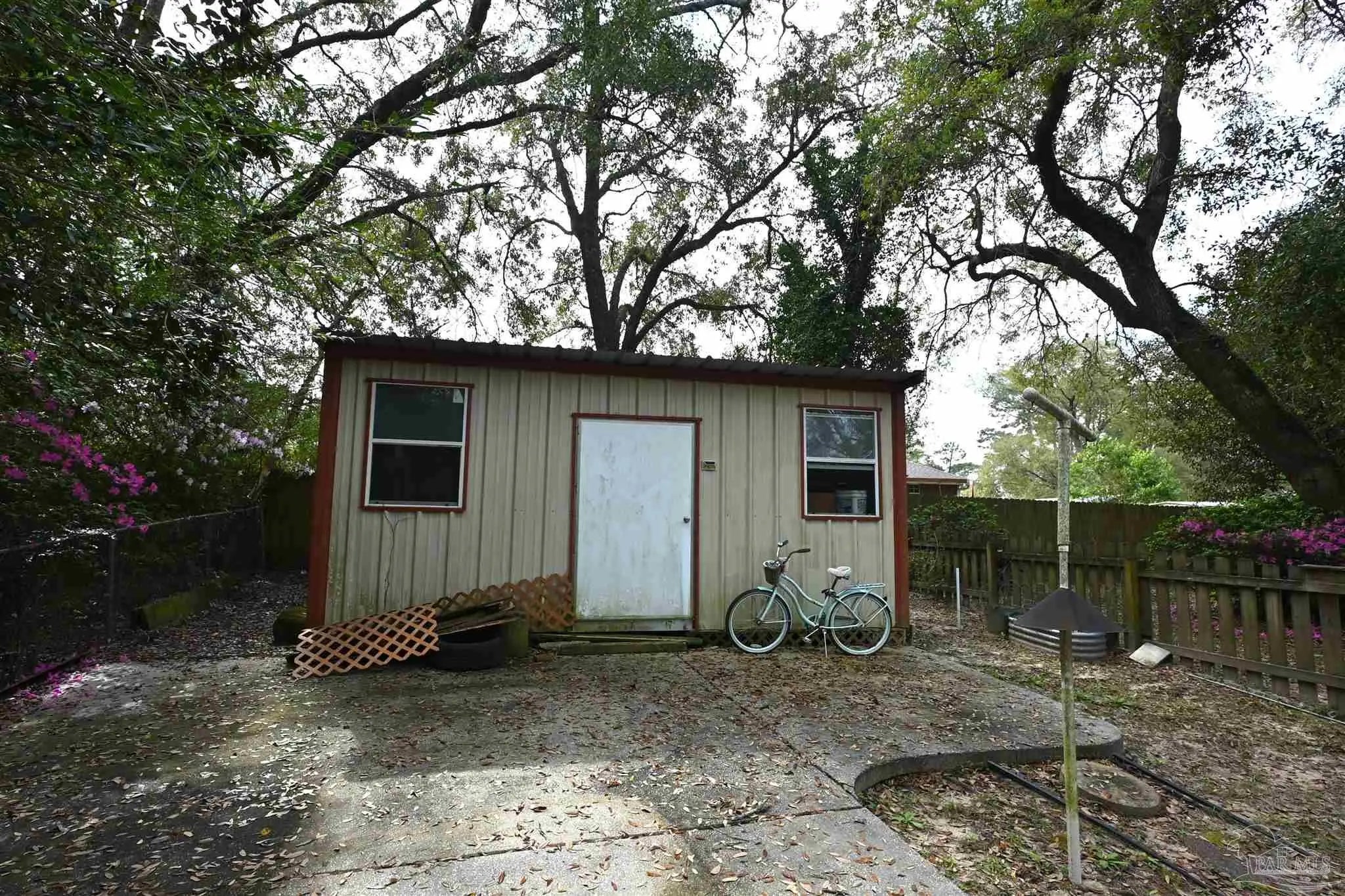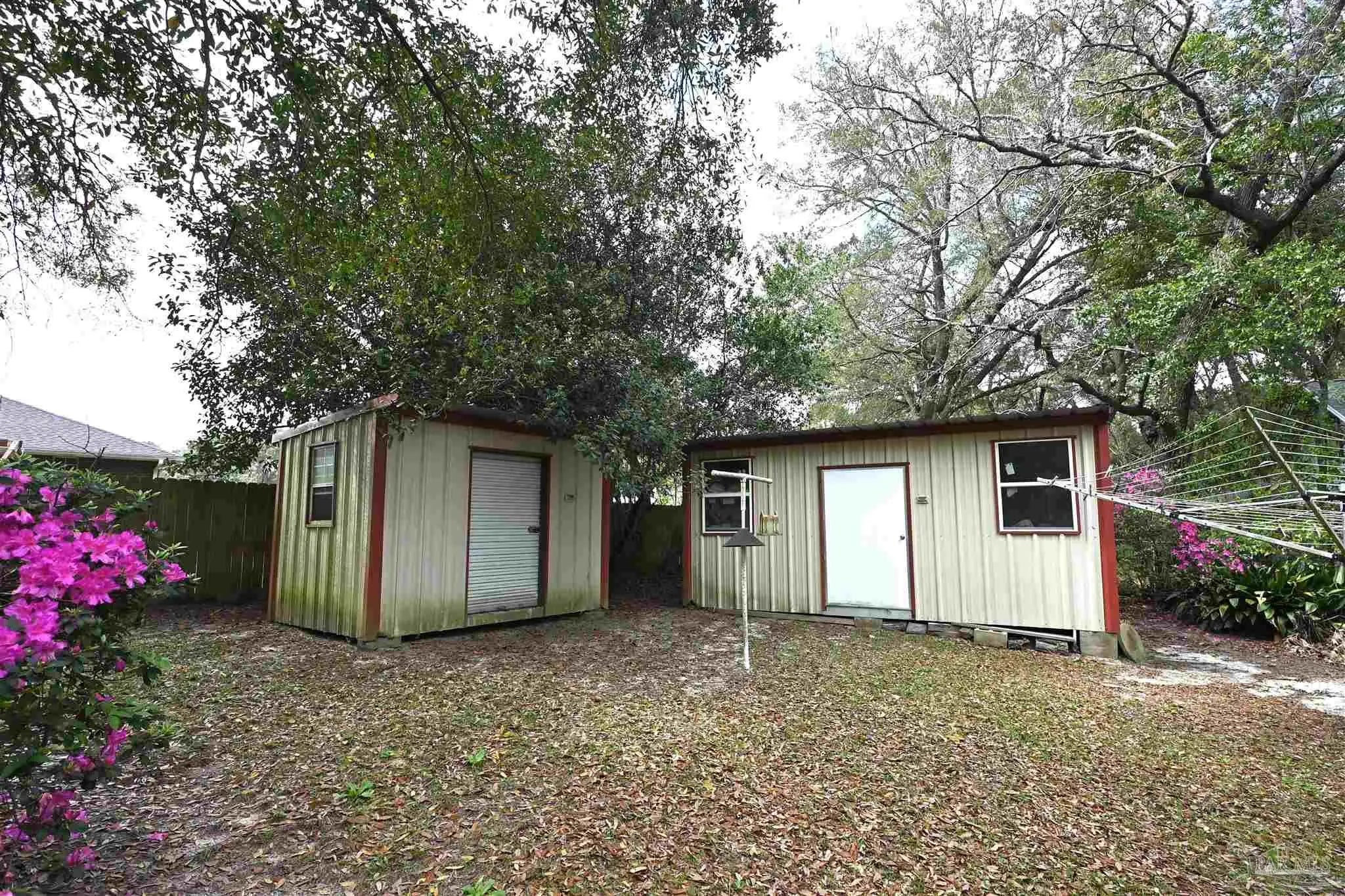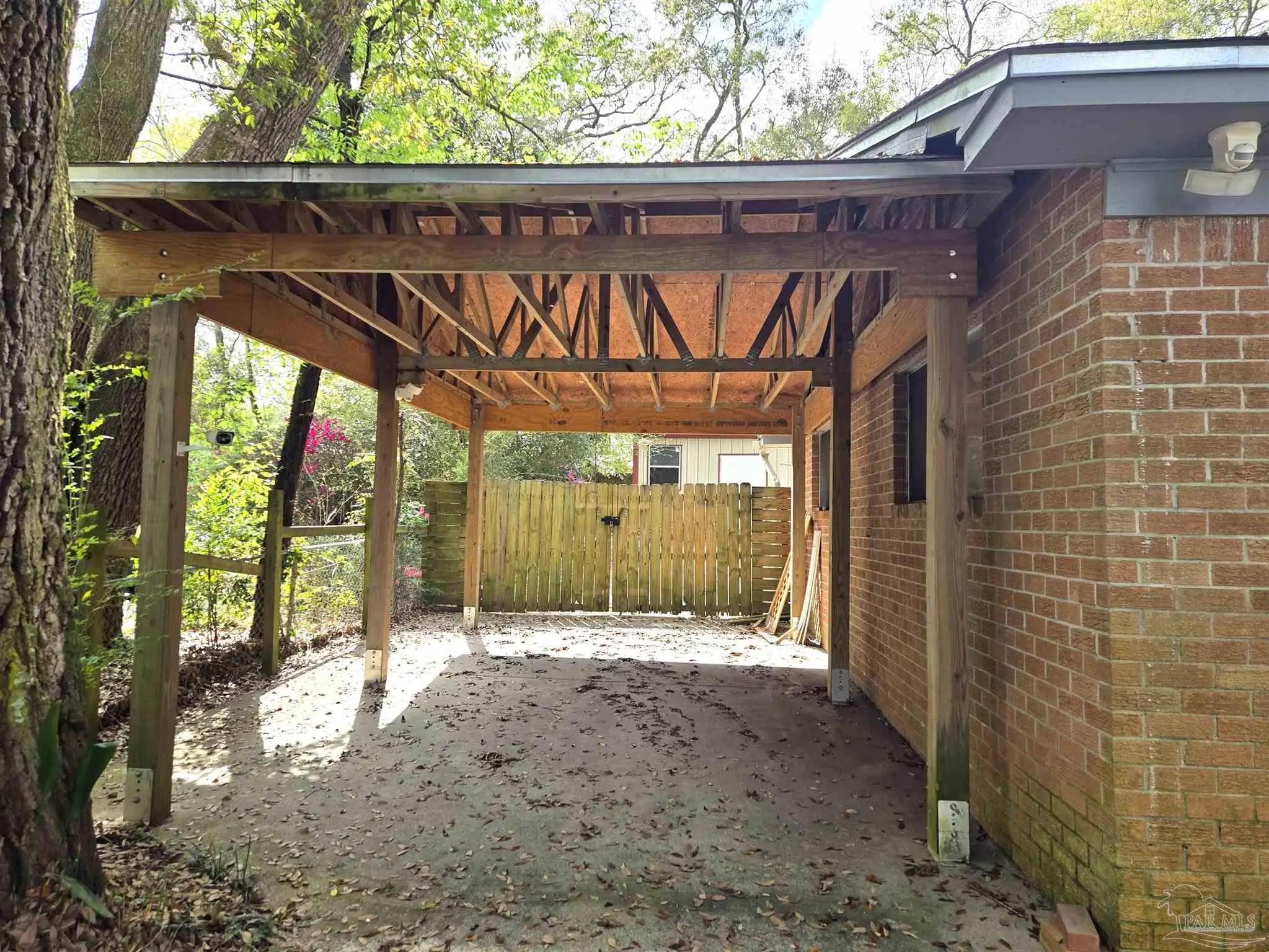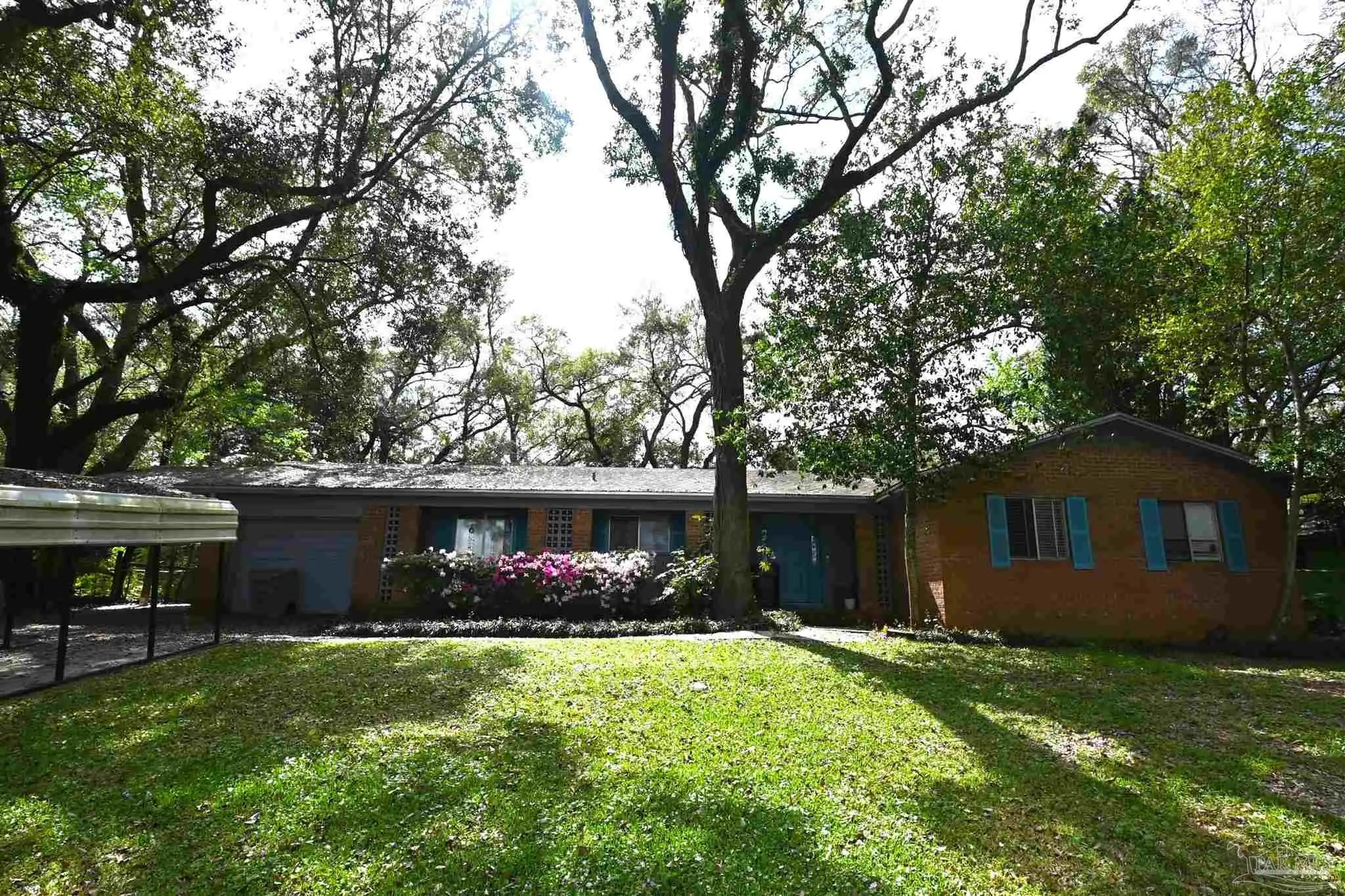 This all brick home is located on a beautiful lot with mature oak trees in a great neighborhood of other very nice homes. 3 bedrooms, 2 baths and over 1500 sq ft of living space. There are tile floors throughout the home - no carpet! There are 2 large main living areas - a living/dining combo and a den. The kitchen features painted wood cabinets, tile countertops, and stainless and black appliances. All bedrooms are a nice size, and the primary bedroom has tile floors, windows overlooking the back yard and an adjoining bath with a walk-in closet and walk-in shower. Central AC and gas heat plus a newer gas water heater. There is a large fenced yard with mature hardwood trees, several storage buildings and an open patio. There is a covered wooden deck, and attached carport, plus a separate covered parking area. With a full price offer, the seller will replace the roof prior to closing. This is a great buy and will sell fast! Call for an appt to see!