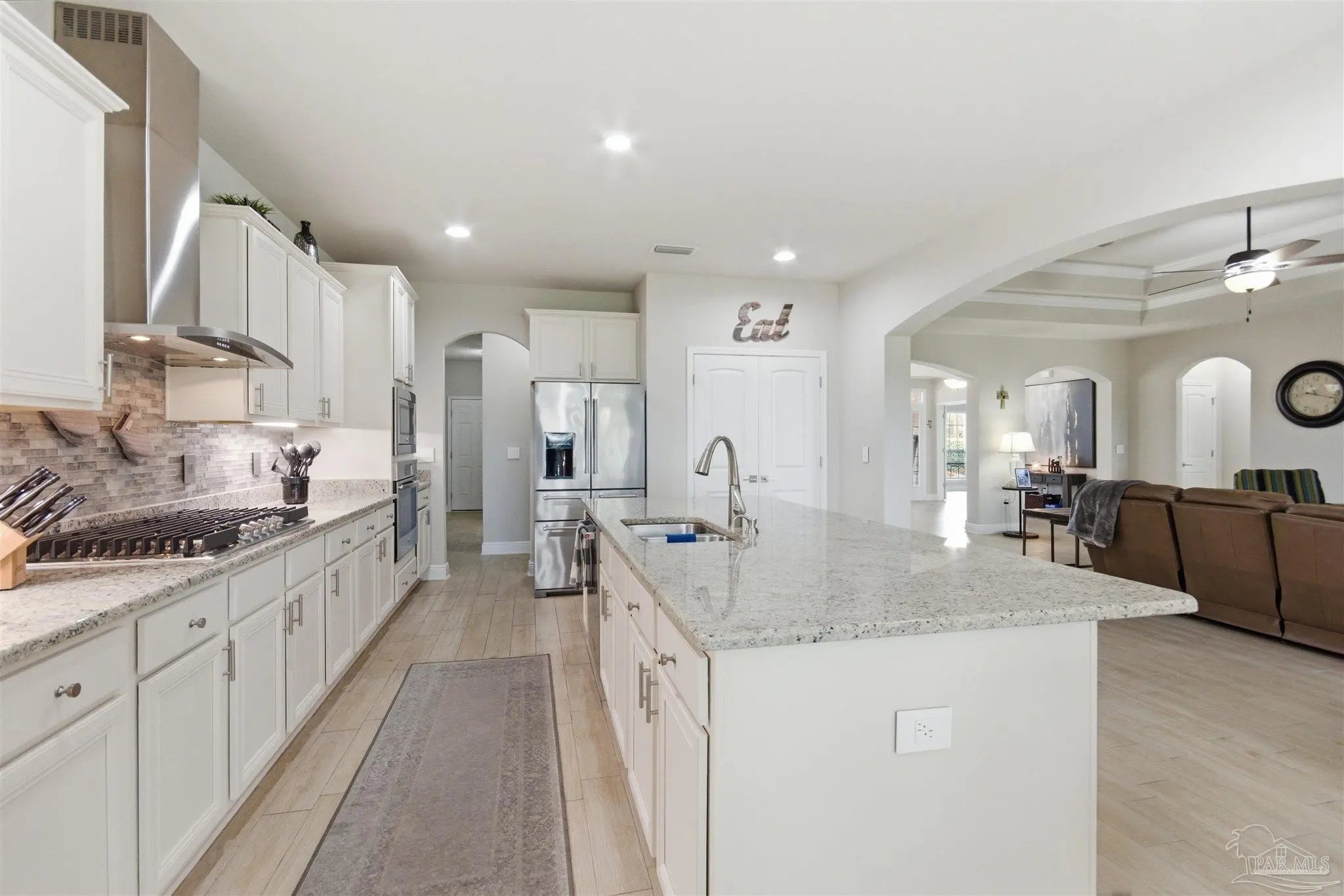 Come make this home the start of your new chapter. This home has comfort, space, and endless possibilities. This beautiful 4-bedroom, 3-bath residence sits on a generous 0.51-acre lot and features a highly desirable split floor plan along with a 2-car garage—perfect for families and those who love to entertain. Step inside to discover tiled flooring throughout the main living areas, including the living room, dining room, kitchen, and a versatile bonus room. This flexible space can easily be transformed into a home office, playroom, or even a fifth bedroom to suit your needs. The oversized primary suite is a true retreat, offering ample space for a king-size bed and a cozy reading nook. Elegant tray ceilings, a new ceiling fan, and private patio access add to the appeal. The en-suite bathroom is designed for relaxation, featuring a tiled walk-in shower, double vanity, soaking tub, separate water closet, updated fixtures, and a custom walk-in closet that truly impresses. At the heart of the home, the kitchen shines with a large island ideal for morning coffee or casual gatherings. Enjoy an eat-in breakfast area, a natural gas cooktop installed in 2025, built-in oven and microwave, and updated hardware throughout. The split floor plan offers privacy and convenience, with a Jack-and-Jill bedroom and bathroom just off the kitchen, plus an additional bedroom with its own separate bathroom—perfect for guests or extended family. All bedrooms feature updated ceiling fans and refreshed finishes. This home is packed with valuable upgrades for peace of mind, including a Generac generator (2024), tankless water heater, and natural gas installation (2025). Additional perks include a transferable termite bond, ongoing pest control, and a serviced HVAC system maintained twice yearly. Combining space, comfort, and thoughtful updates, large fenced in back yard, large back patio to enjoy. This home is truly move-in ready and waiting for its next chapter—make it yours today.