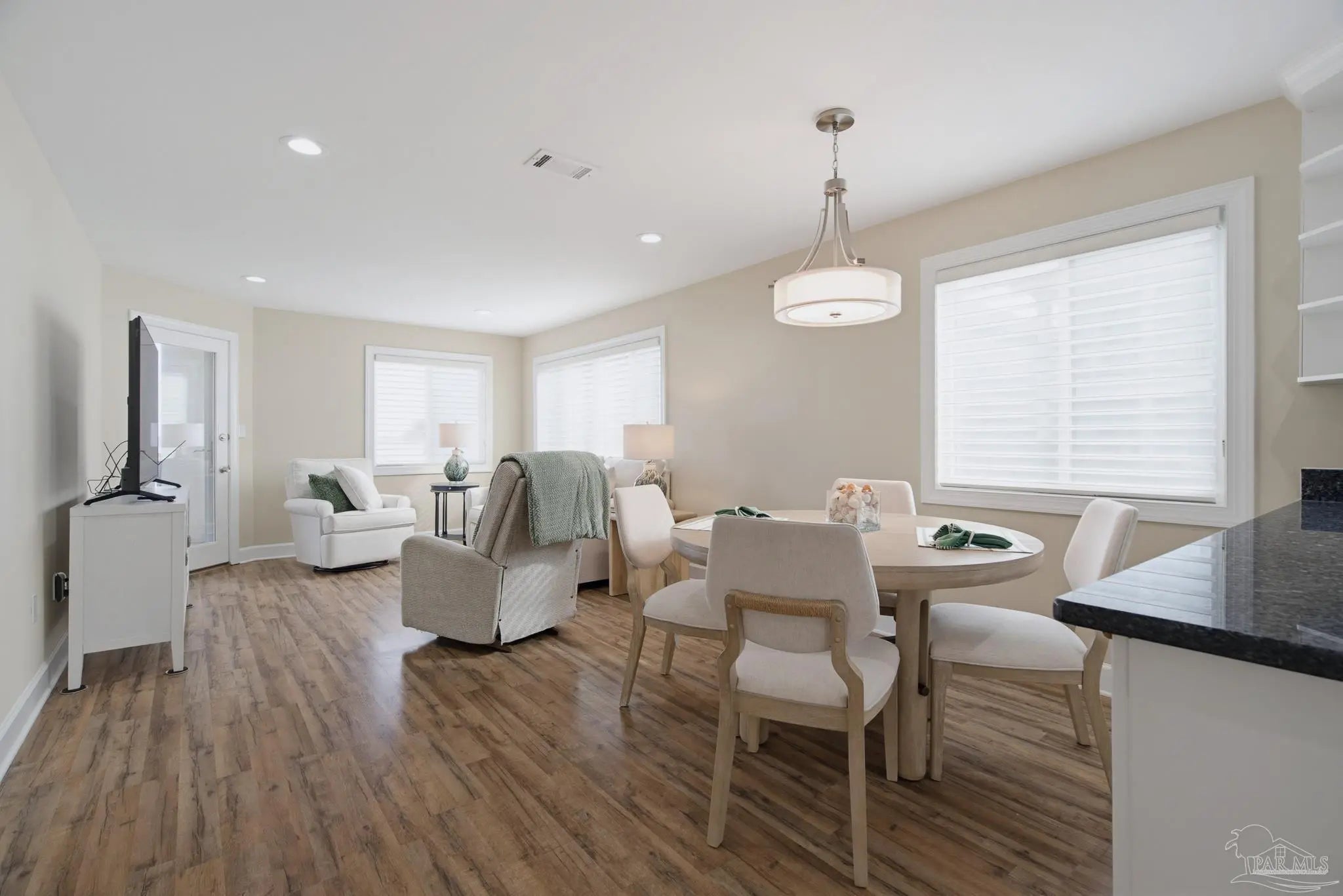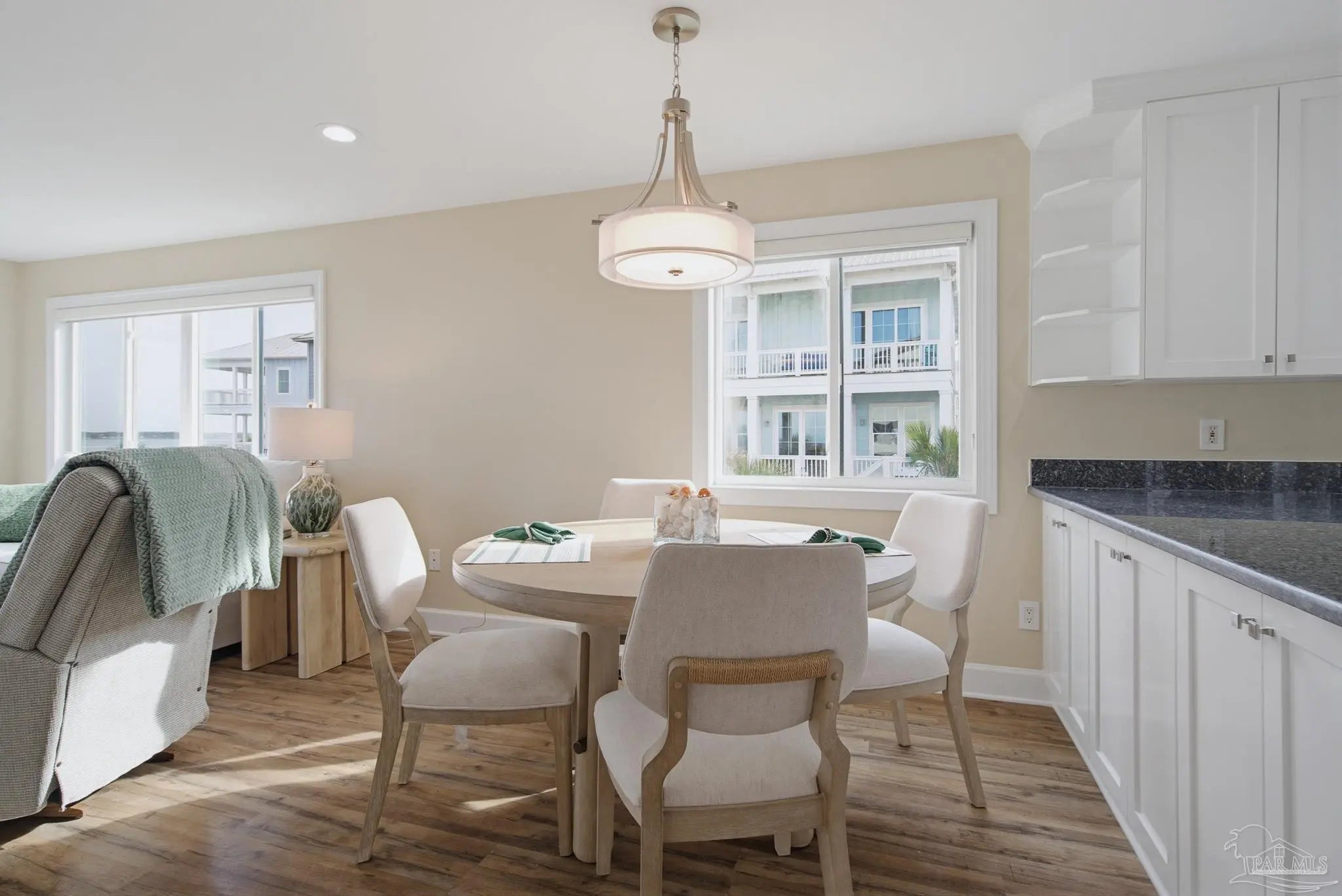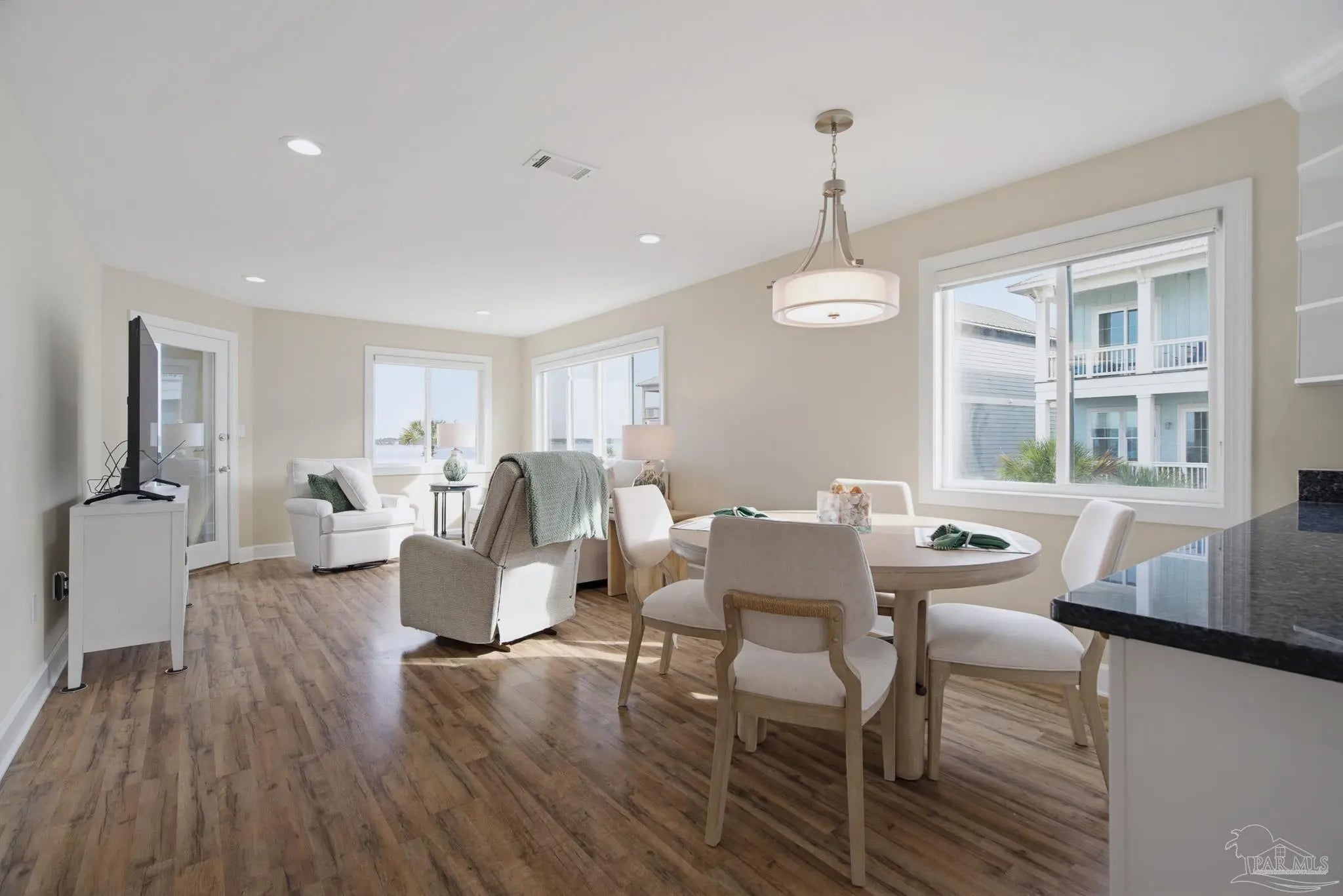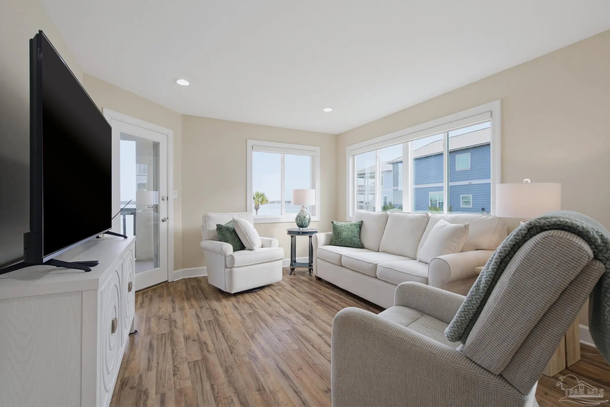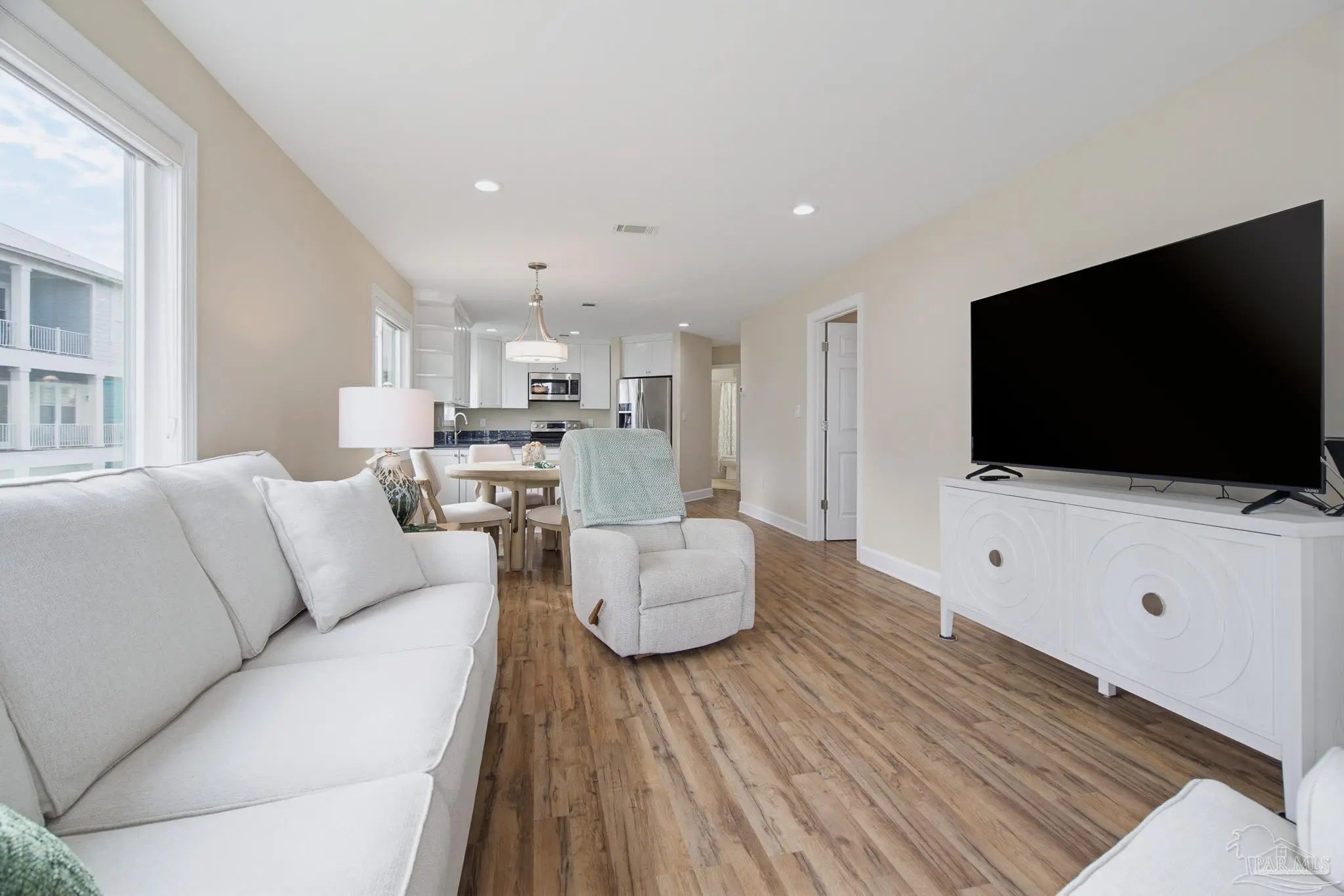 Enjoy a redefined standard of coastal living in this premier corner unit at Sunset Harbor. This beautifully appointed 2-bedroom, 2-bathroom waterfront condo overlooks the tranquil Santa Rosa Sound, offering an exceptional blend of comfort, style, and quintessential Florida charm. As a rare corner residence, the home is wrapped in additional windows that fill the living spaces with natural light, coastal breezes, and peaceful water views. The open-concept floor plan is ideal for entertaining—whether you’re hosting indoors or relaxing outside on the covered balcony. Warm luxury vinyl flooring and a soothing neutral color palette create an inviting and serene atmosphere throughout. Just a short walk away, you'll find the Gulf of Mexico and the Gulf Islands National Seashore, making sunrise or sunset strolls part of your daily routine. Sunset Harbor residents also enjoy private dock and pier access, perfect for fishing, dolphin watching, or simply unwinding by the water. A resort-style pool completes the community’s coastal-resort feel. Come experience why Navarre Beach is known as “Florida’s Best Kept Secret.” Whether you're seeking a high-performing short-term rental, a relaxing vacation escape, or a forever slice of paradise, this exceptional corner unit at Sunset Harbor is truly the Emerald Coast dream.