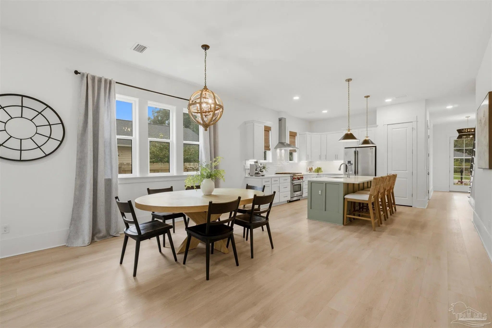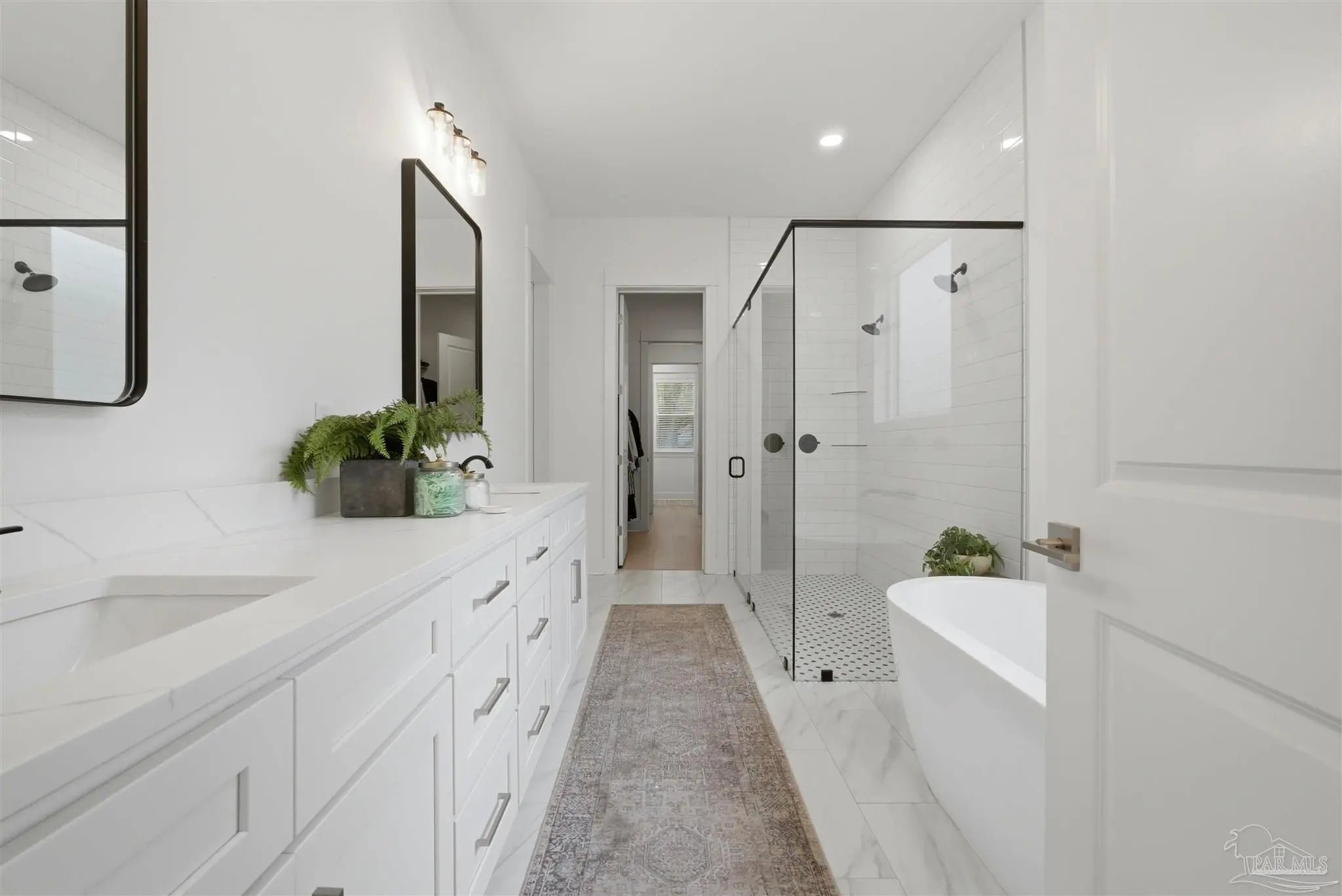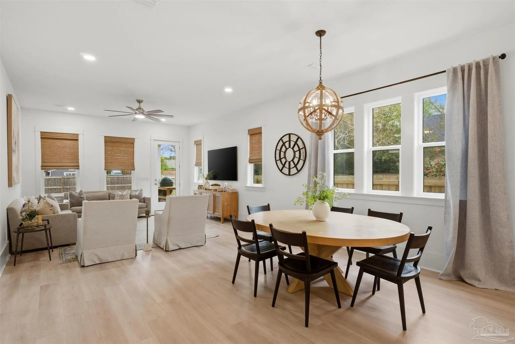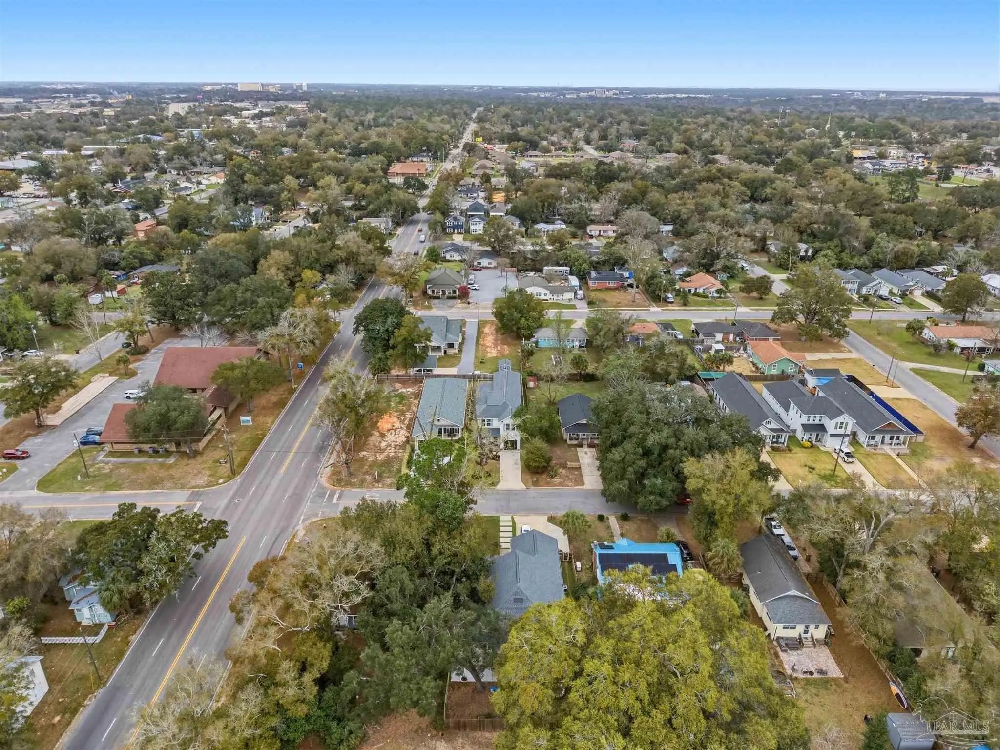 In the heart of East Hill, where tree lined streets, neighborhood parks, and local favorites create one of Pensacola’s most beloved communities, this home captures the easy rhythm of the neighborhood perfectly. Morning walks to grab coffee or pastries, evenings meeting friends at nearby restaurants, and a quick drive down 9th Avenue to downtown or the mall. It is the kind of location people fall in love with and never want to leave. From the street, the curb appeal immediately stands out with lush Empire Zoysia sod, irrigation, and a beautifully finished exterior. Step inside and you are welcomed by 10 foot ceilings and a bright, open layout that immediately feels inviting. The family room, dining area, and kitchen flow seamlessly together, creating a spacious gathering space designed for everyday living and effortless entertaining. The kitchen anchors the room with quartz countertops, modern finishes, and a gas Wolf range with oven that will make any home chef smile. Just off the family room, a large covered patio extends the living space outdoors and overlooks a spacious, fully fenced backyard with a 6 foot privacy fence and gate. It is the perfect setting for outdoor dinner or weekend gatherings. The primary suite on the main level offers a private retreat with a recessed ceiling and sitting area, along with French doors that open directly to the covered patio. The spa inspired bath features a freestanding soaking tub, oversized double head shower, private water closet, and a walk in closet that conveniently connects to the laundry room, blending comfort and thoughtful design. Upstairs you will find four additional bedrooms and two full bathrooms, both featuring double vanities and tub and shower combos with tile extending to the ceiling. One of the bedrooms is oversized with a vaulted ceiling and its own back porch, offering incredible flexibility as a second primary suite, bonus room, home theater, or playroom. Enjoy East Hill Living!