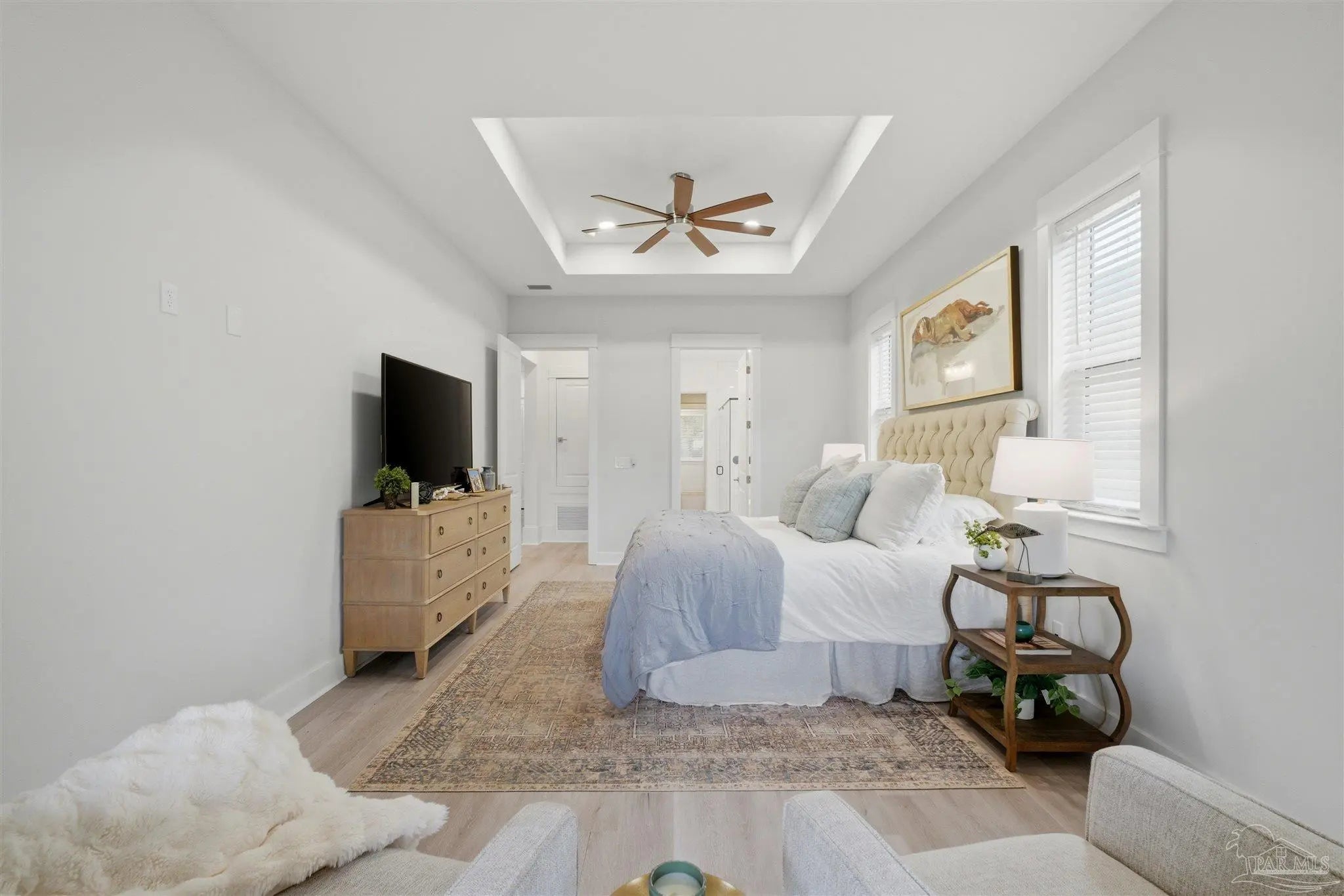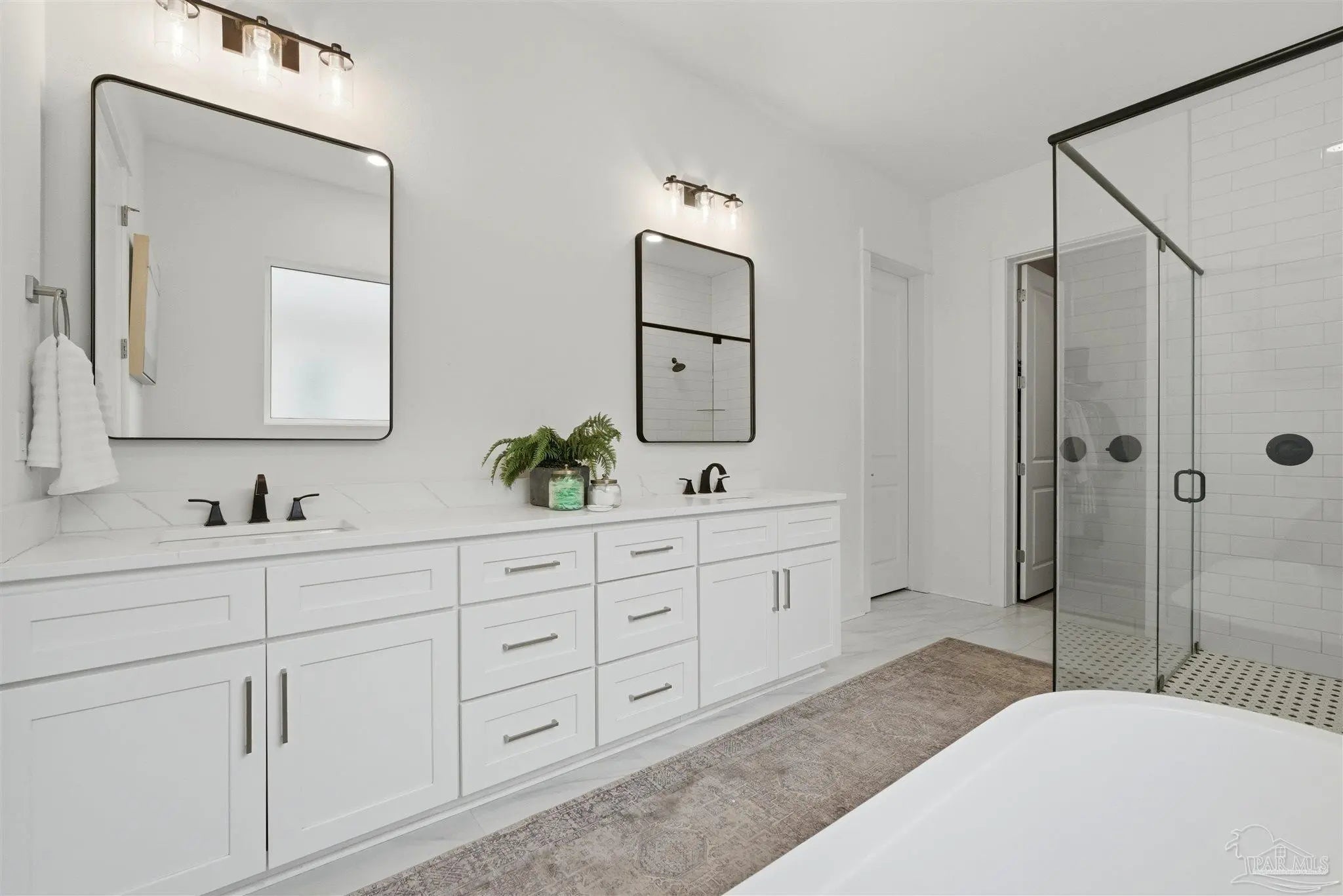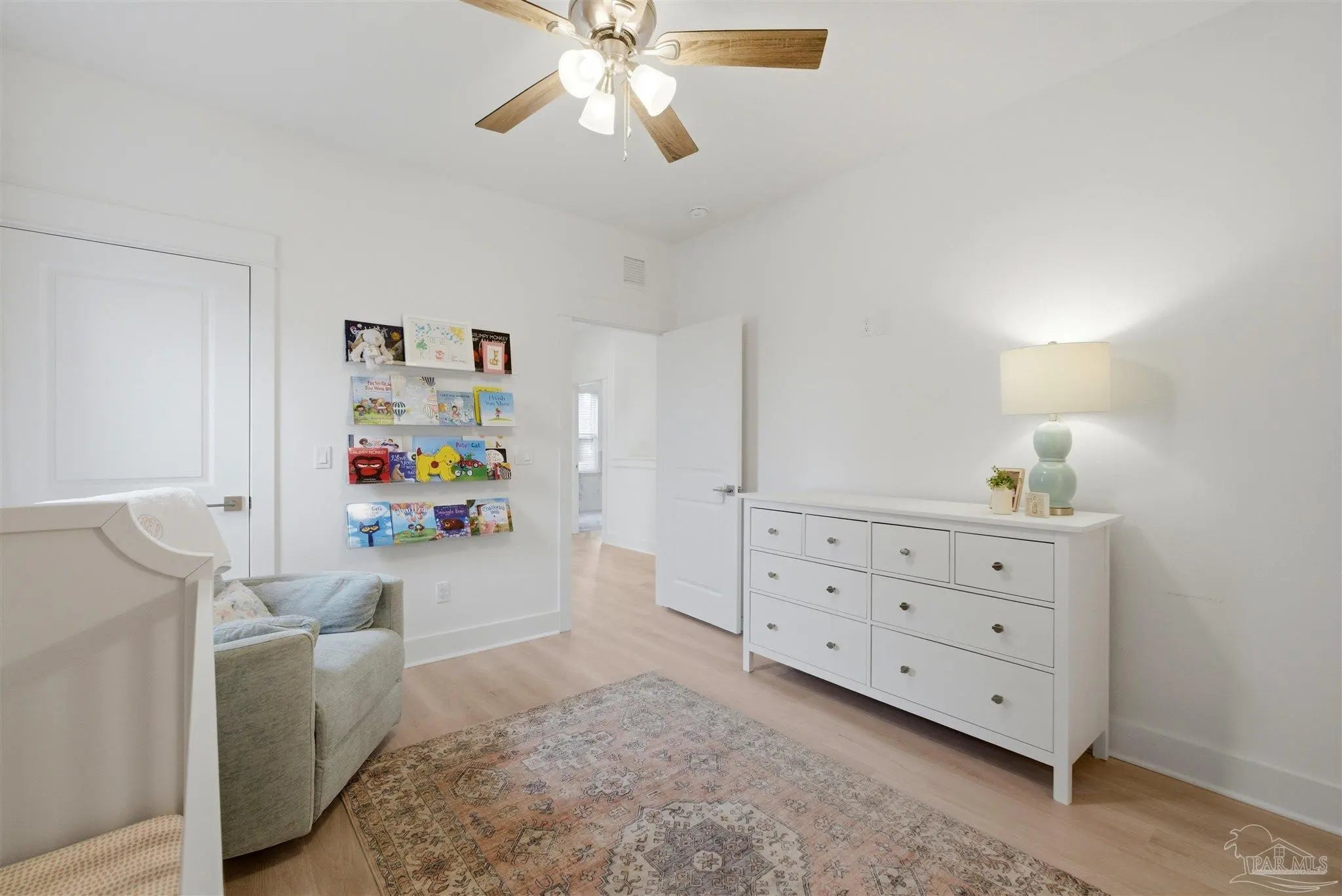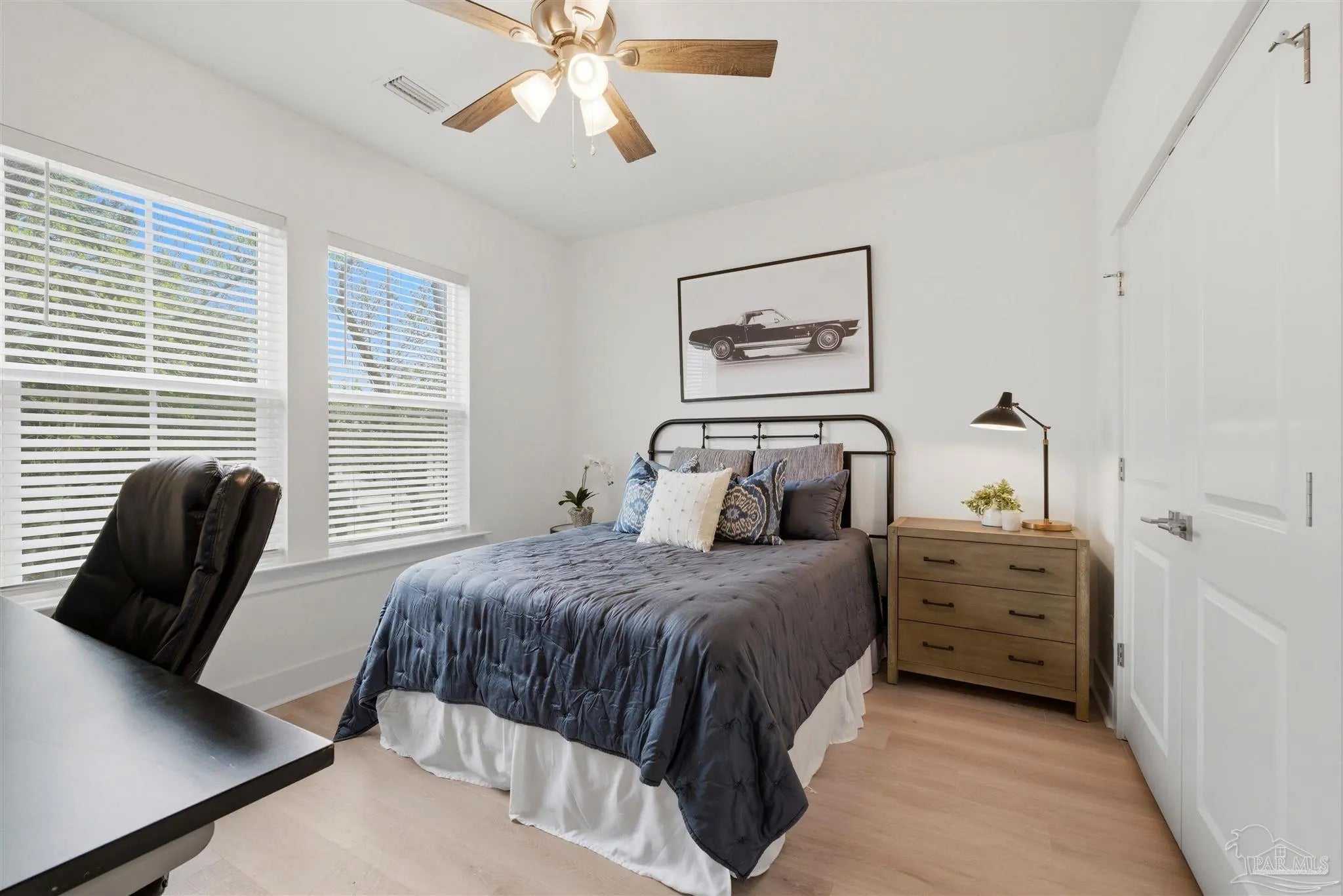 In the heart of East Hill, where tree lined streets, neighborhood parks, and local favorites create one of Pensacola’s most beloved communities, this home captures the easy rhythm of the neighborhood perfectly. Morning walks to grab coffee or pastries, evenings meeting friends at nearby restaurants, and a quick drive down 9th Avenue to downtown or the mall. It is the kind of location people fall in love with and never want to leave. From the street, the curb appeal immediately stands out with lush Empire Zoysia sod, irrigation, and a beautifully finished exterior. Step inside and you are welcomed by 10 foot ceilings and a bright, open layout that immediately feels inviting. The family room, dining area, and kitchen flow seamlessly together, creating a spacious gathering space designed for everyday living and effortless entertaining. The kitchen anchors the room with quartz countertops, modern finishes, and a gas Wolf range with oven that will make any home chef smile. Just off the family room, a large covered patio extends the living space outdoors and overlooks a spacious, fully fenced backyard with a 6 foot privacy fence and gate. It is the perfect setting for outdoor dinner or weekend gatherings. The primary suite on the main level offers a private retreat with a recessed ceiling and sitting area, along with French doors that open directly to the covered patio. The spa inspired bath features a freestanding soaking tub, oversized double head shower, private water closet, and a walk in closet that conveniently connects to the laundry room, blending comfort and thoughtful design. Upstairs you will find four additional bedrooms and two full bathrooms, both featuring double vanities and tub and shower combos with tile extending to the ceiling. One of the bedrooms is oversized with a vaulted ceiling and its own back porch, offering incredible flexibility as a second primary suite, bonus room, home theater, or playroom. Enjoy East Hill Living!