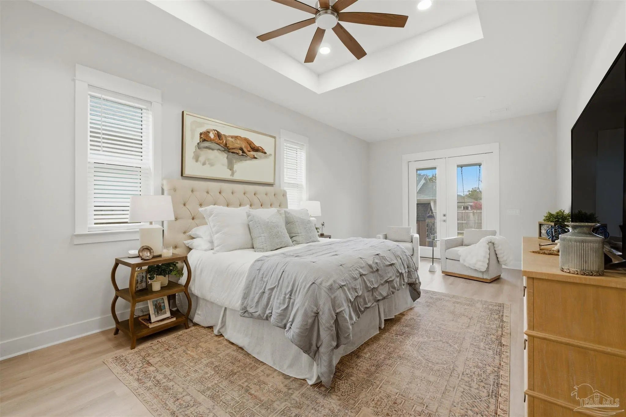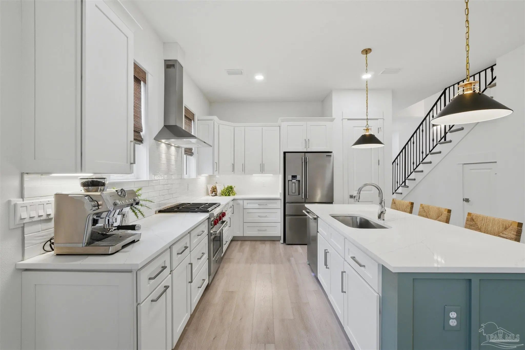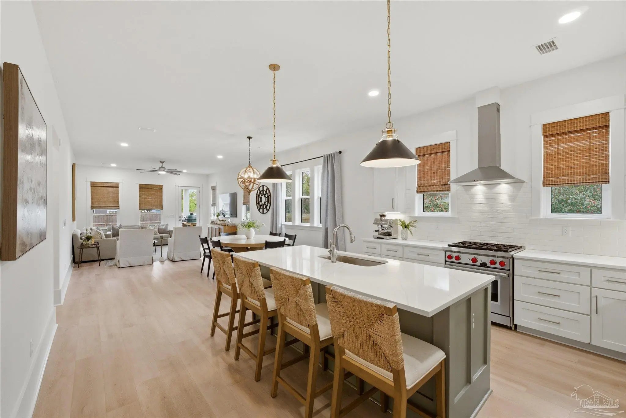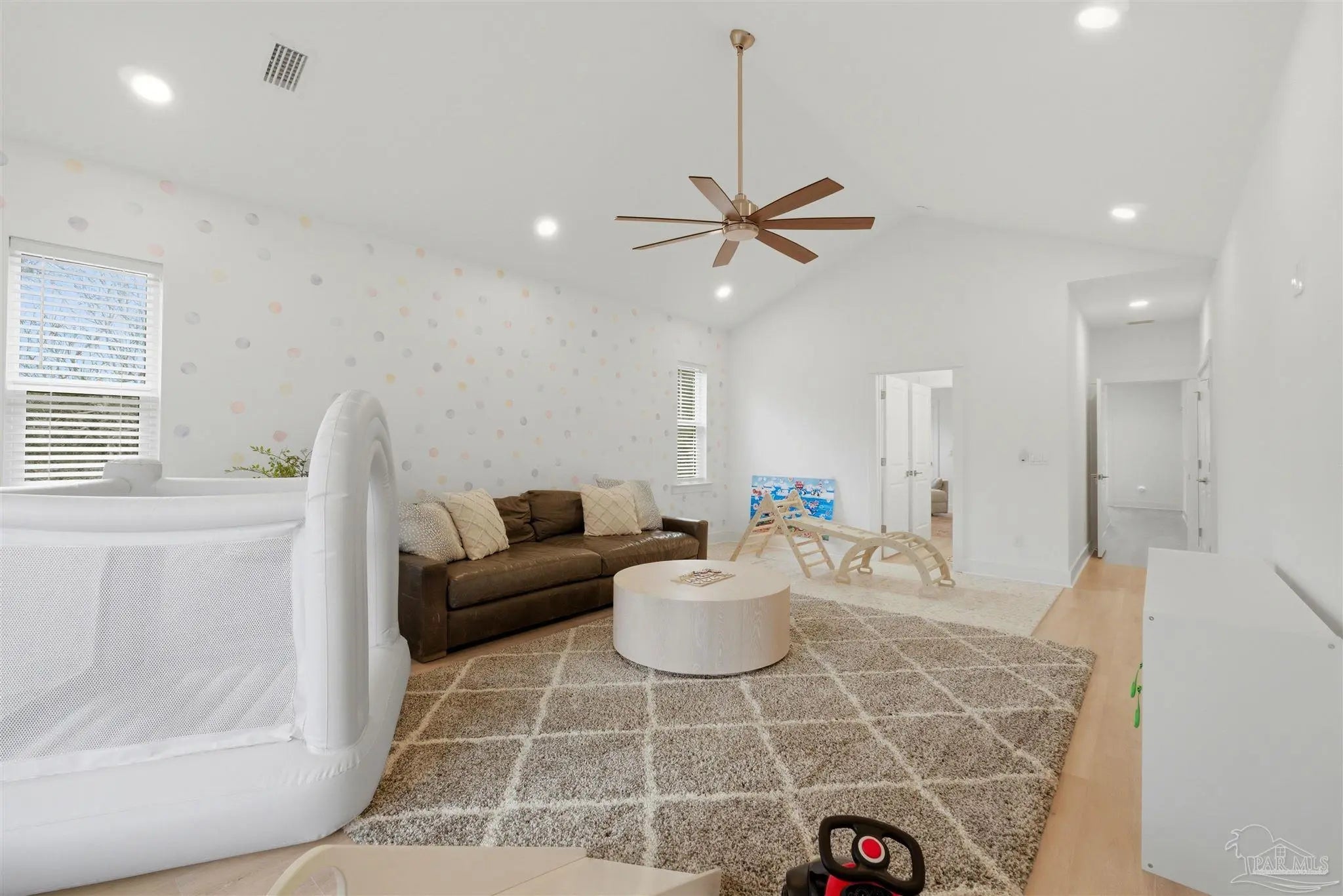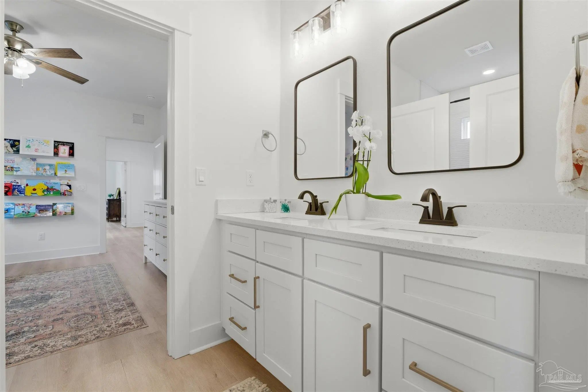In the heart of East Hill, where tree lined streets, neighborhood parks, and local favorites create one of Pensacola’s most beloved communities, this home captures the easy rhythm of the neighborhood perfectly. Morning walks to grab coffee or pastries, evenings meeting friends at nearby restaurants, and a quick drive down 9th Avenue to downtown or the mall. It is the kind of location people fall in love with and never want to leave. From the street, the curb appeal immediately stands out with lush Empire Zoysia sod, irrigation, and a beautifully finished exterior. Step inside and you are welcomed by 10 foot ceilings and a bright, open layout that immediately feels inviting. The family room, dining area, and kitchen flow seamlessly together, creating a spacious gathering space designed for everyday living and effortless entertaining. The kitchen anchors the room with quartz countertops, modern finishes, and a gas Wolf range with oven that will make any home chef smile. Just off the family room, a large covered patio extends the living space outdoors and overlooks a spacious, fully fenced backyard with a 6 foot privacy fence and gate. It is the perfect setting for outdoor dinner or weekend gatherings. The primary suite on the main level offers a private retreat with a recessed ceiling and sitting area, along with French doors that open directly to the covered patio. The spa inspired bath features a freestanding soaking tub, oversized double head shower, private water closet, and a walk in closet that conveniently connects to the laundry room, blending comfort and thoughtful design. Upstairs you will find four additional bedrooms and two full bathrooms, both featuring double vanities and tub and shower combos with tile extending to the ceiling. One of the bedrooms is oversized with a vaulted ceiling and its own back porch, offering incredible flexibility as a second primary suite, bonus room, home theater, or playroom. Enjoy East Hill Living!