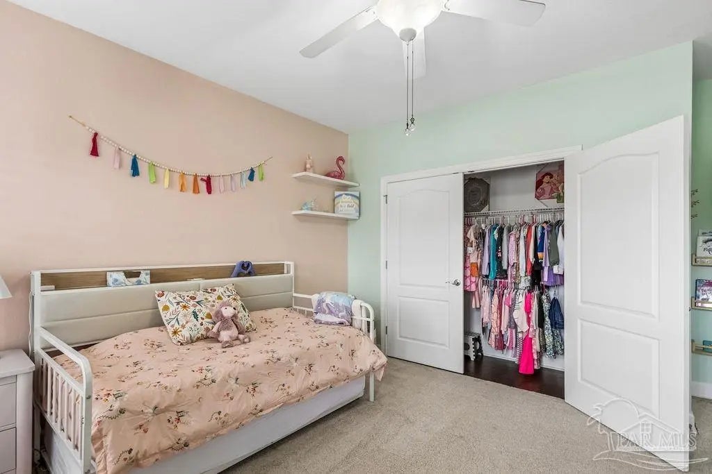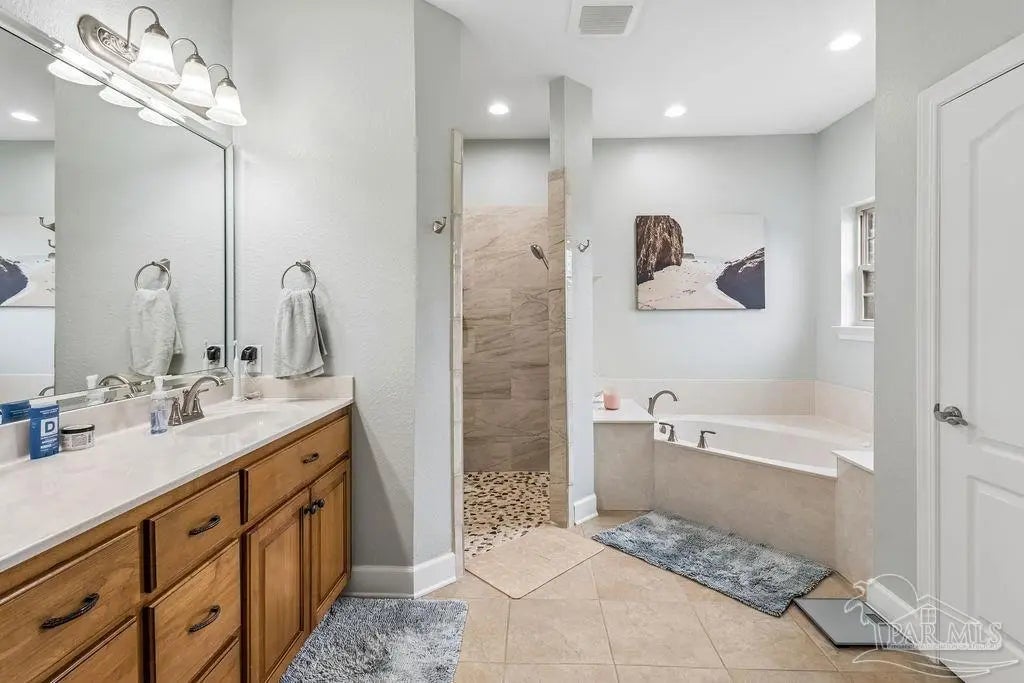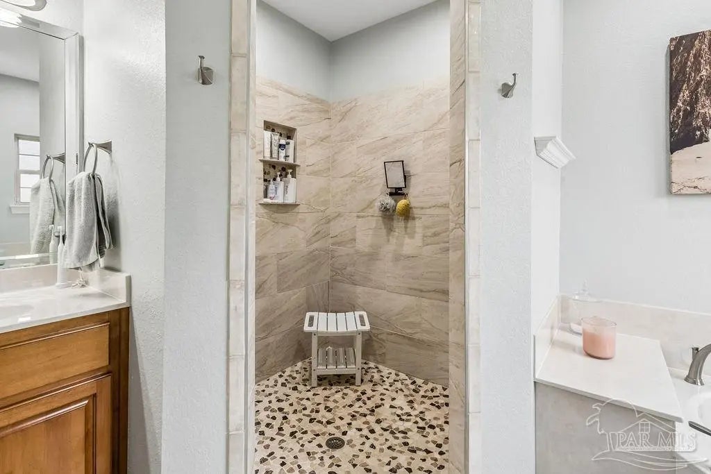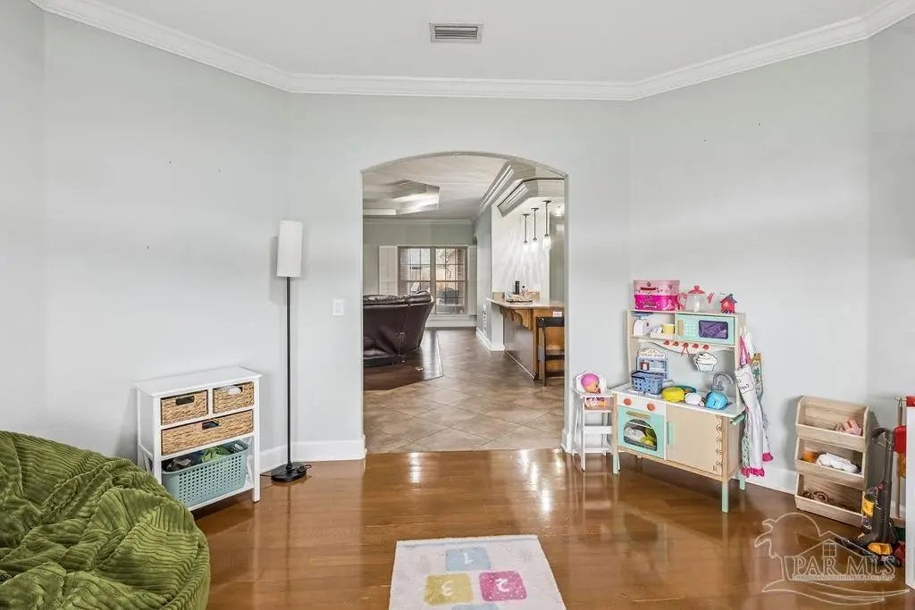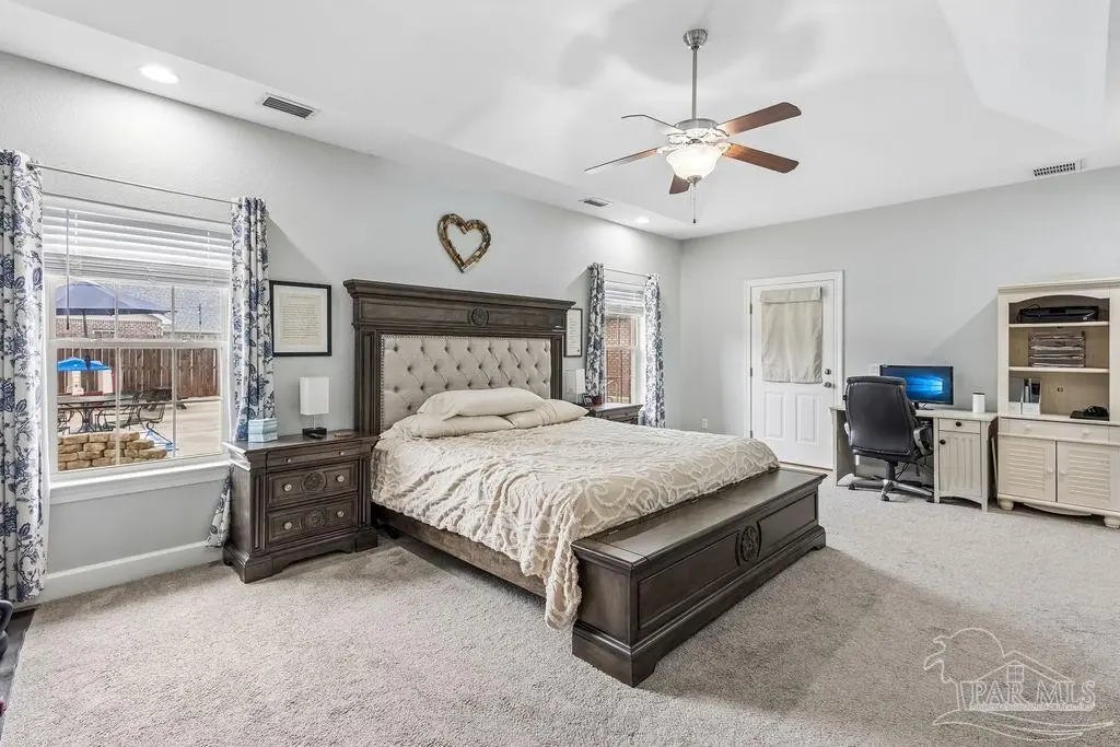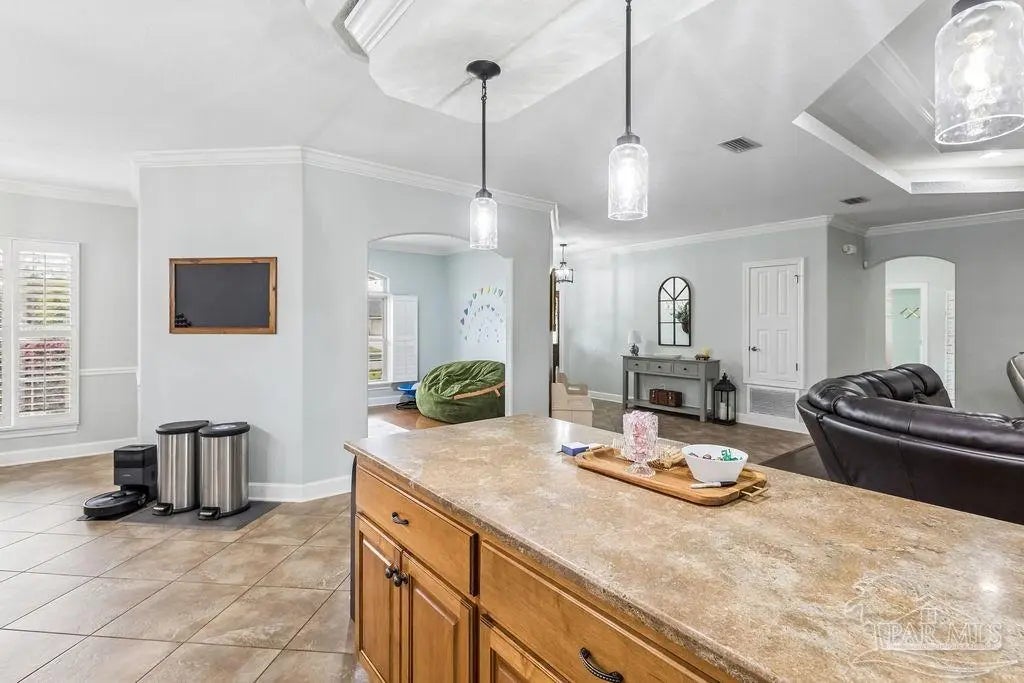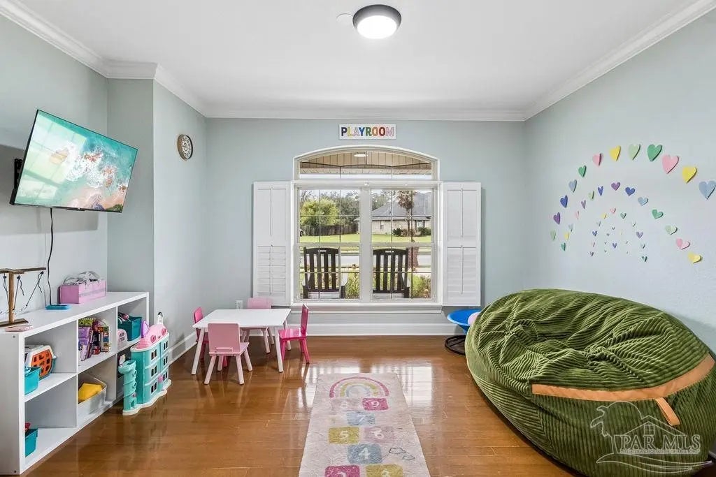 Welcome to this stunning Custom French Creole brick home in the highly sought-after Laurelwood Subdivision of Pace, FL. Perfectly designed for entertaining, this spacious residence features an open floor plan and a huge kitchen with abundant cabinet space, walk-in pantry, elegant travertine countertops, and stainless steel appliances. The large family room impresses with double tray ceilings, accent lighting, and a ceiling fan, creating a warm and inviting atmosphere. Enjoy the charm of custom plantation shutters throughout most of the home and a versatile study/formal dining room with hardwood floors and a bright window with transom. The expansive master suite boasts a tray ceiling, a generous walk-in closet, and a luxurious bath with double vanities, a walk-in shower, and an oversized jetted tub. Additional bedrooms include large closets, with the fourth bedroom ideal as a mother-in-law suite featuring a full bath and walk-in closet. Step outside to a screened porch with 2 fans, perfect for relaxing or entertaining. Pet lovers will appreciate the dedicated dog room, dog door, and fenced dog run. Over $150,000 in upgrades in the last 5 years include a new roof (to be installed by seller with buyer’s choice of shingle color), new HVAC, remodeled fireplace and master bath shower, updated water heaters, new garage door and opener, dishwasher, refrigerator, 18x36 pool with oversized concrete pad, front landscaping, interior paint, and added parking spots. Additional perks: garage fridge, pool security fence, and swing set all included. Flooring allowance at closing.