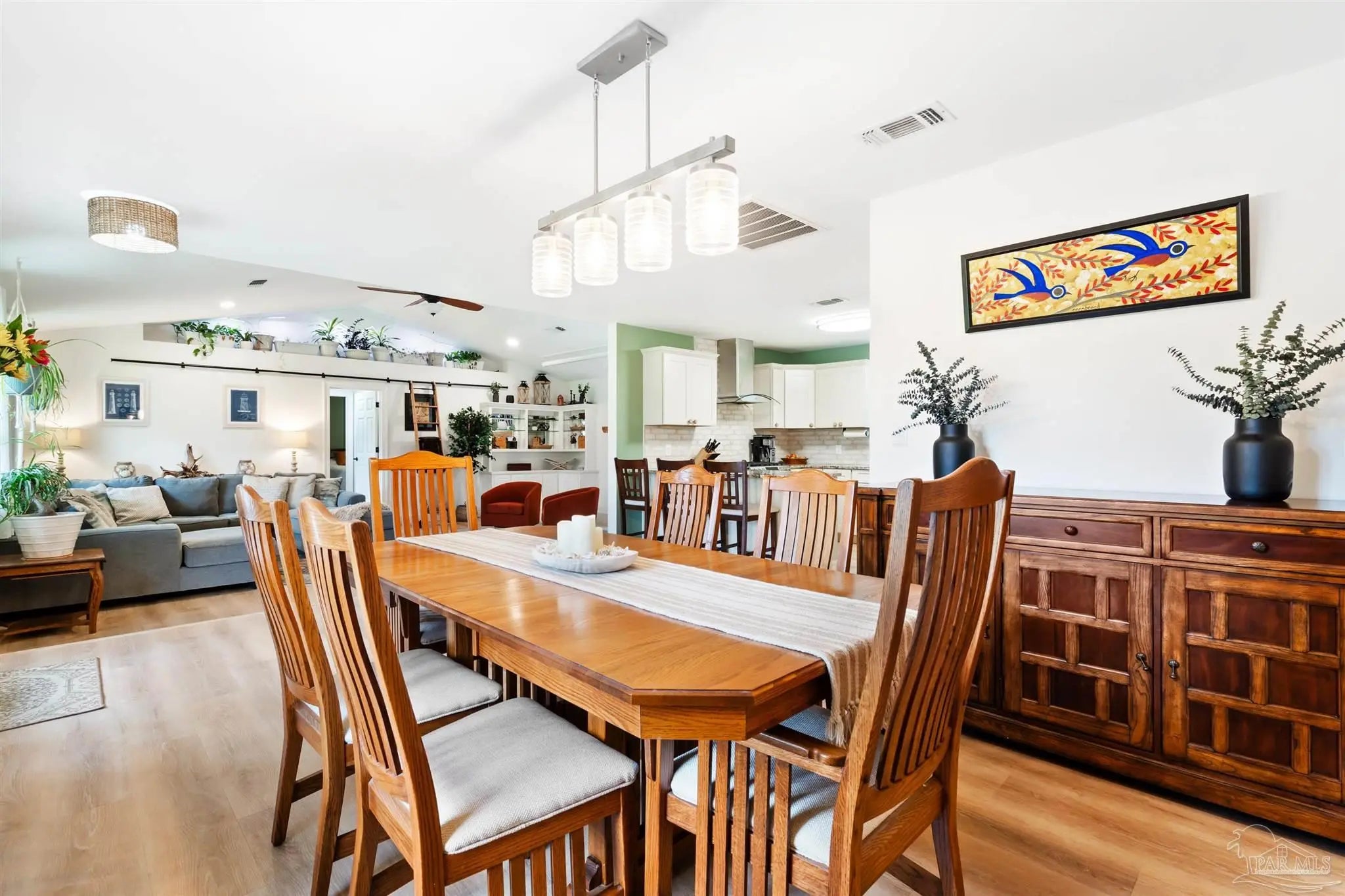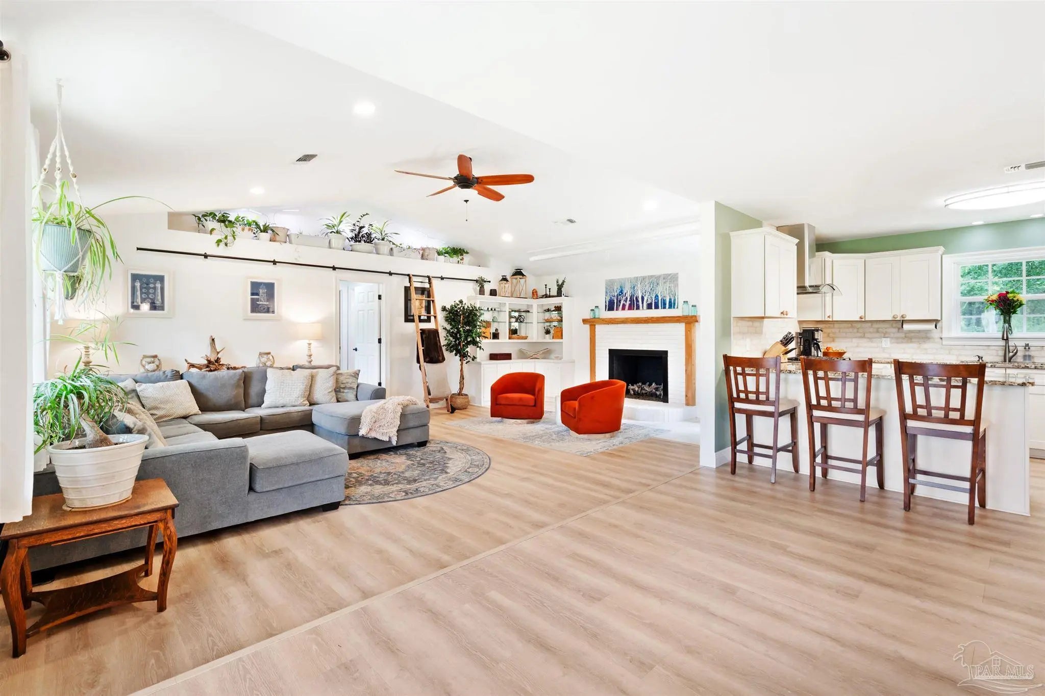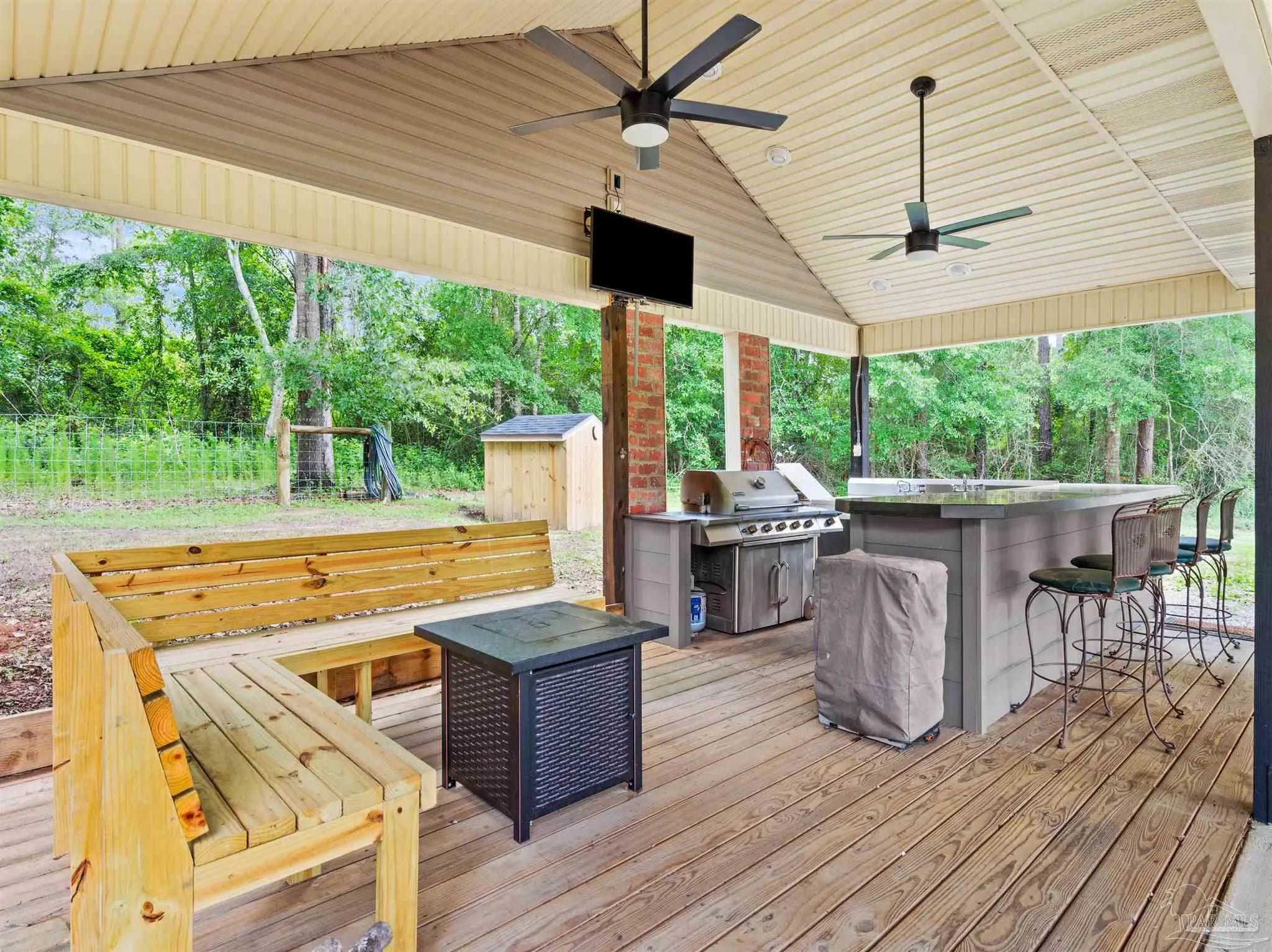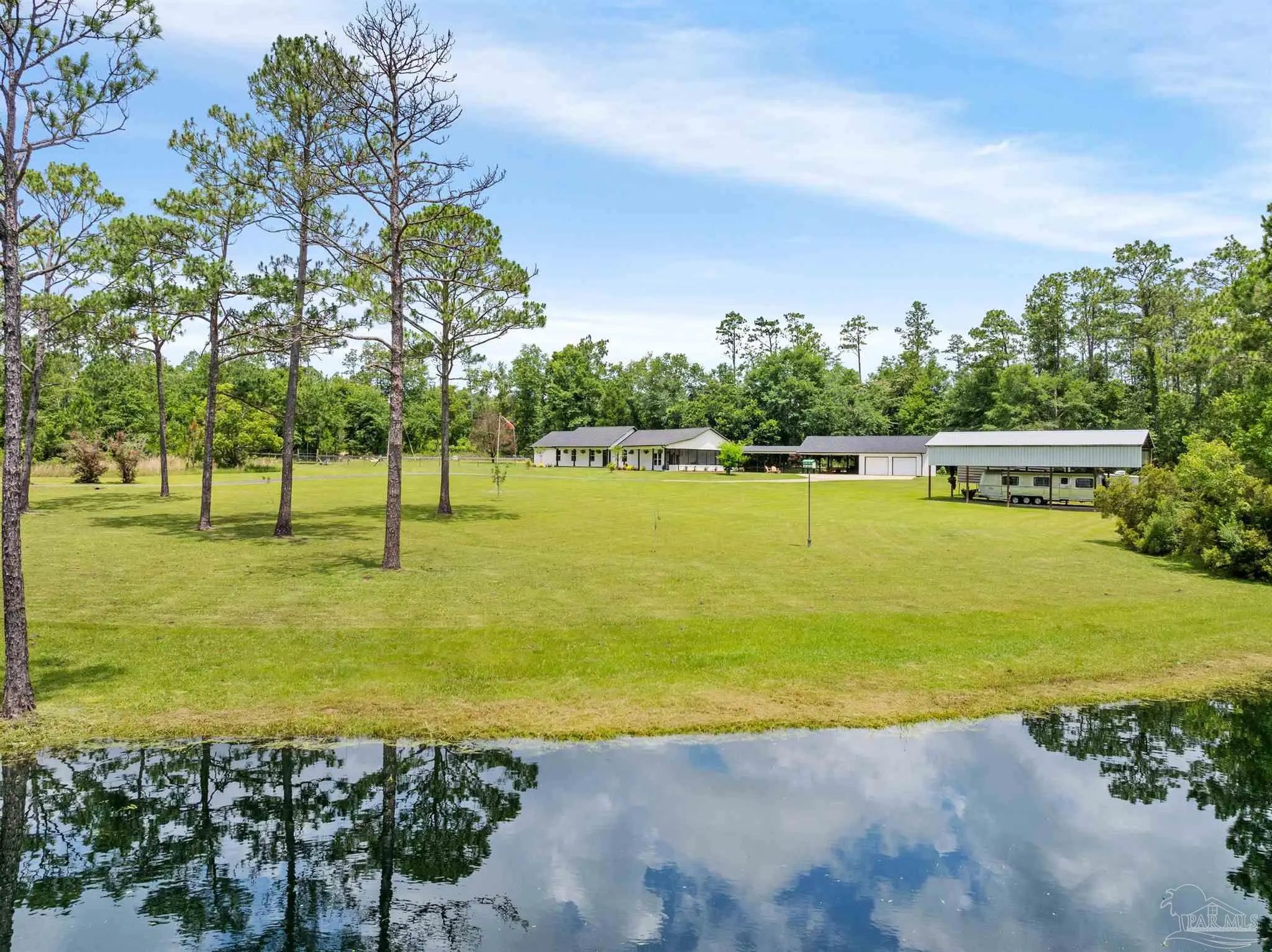 32 ACRES + FULLY RENOVATED HOME + STOCKED POND + BOAT & RV STORAGE + AIRBNB POTENTIAL + 20 MINUTES TO THE BEACHFully renovated private estate on 32 acres just 10 minutes from Hwy 90 & I-10, 20 minutes to the white sand beaches of Gulf Shores and Orange Beach. The beautifully updated 3 bedroom, 2 bath home features a bright open-concept floor plan with soaring ceilings, abundant natural light, and luxury vinyl plank flooring throughout. Quality craftsmanship is evident throughout with custom built-ins, designer finishes, and a gas fireplace anchoring the spacious living area.The chef’s kitchen is thoughtfully designed with granite countertops, custom cabinetry, and high-end appliances, seamlessly connecting the kitchen, dining, and living spaces—perfect for entertaining.The primary suite serves as a private retreat featuring a large walk-in closet, electric fireplace, spa-style bathroom with dual vanities, custom tiled shower, and a relaxing jacuzzi soaking tub. A private screened porch off the suite overlooks the scenic acreage and peaceful landscape.Step outside to an incredible covered outdoor kitchen and entertainment area complete with grill, double sink, refrigerator, mounted TV, sound system, and ample storage, making it ideal for year-round entertaining.The property also includes a detached garage, covered carport, and dedicated covered boat and RV storage, providing exceptional space for vehicles, equipment, and recreational toys.Enjoy landscaped grounds, a fully stocked pond with bass and brim, raised garden beds for organic gardening, and abundant wildlife, creating a true private countryside retreat.With 32 acres, privacy, outdoor amenities, and proximity to the Gulf Coast, this property would also make an excellent Airbnb or short-term rental opportunity, perfect for guests seeking a peaceful getaway near the beaches. Buyer to verify all information during due diligence period. Buyer to verify all information during due diligence.